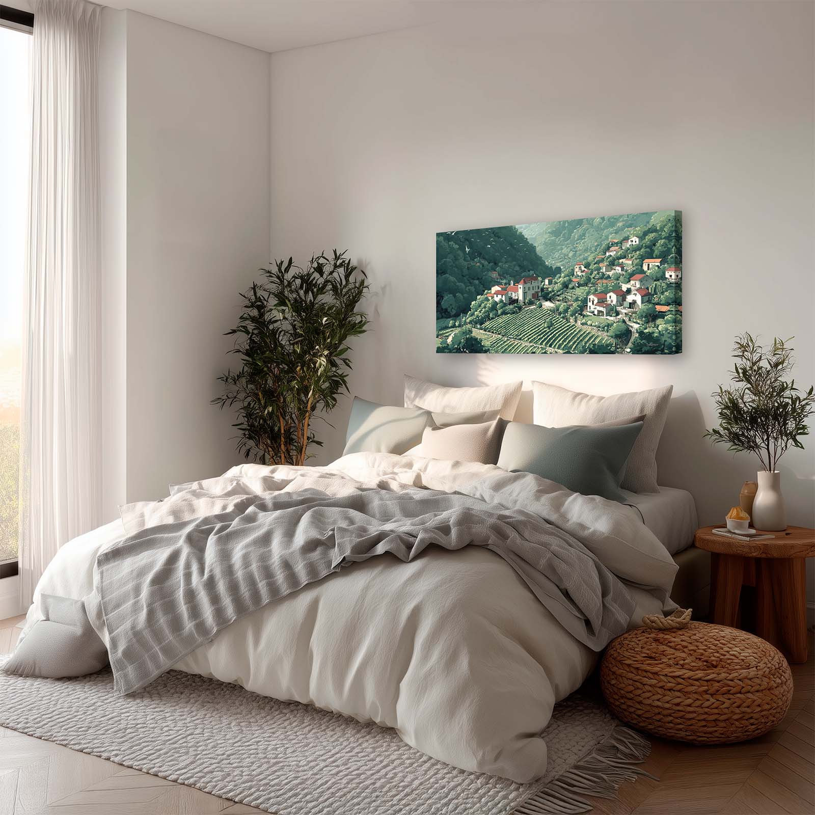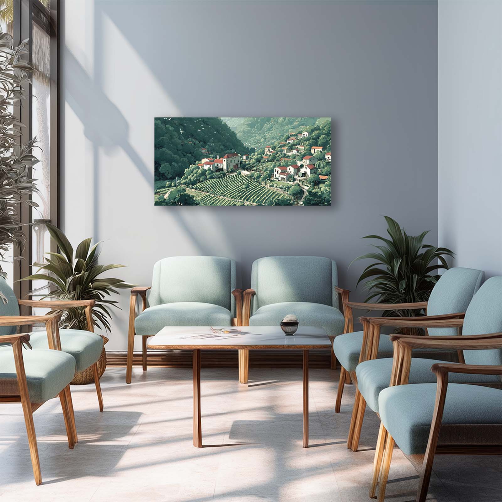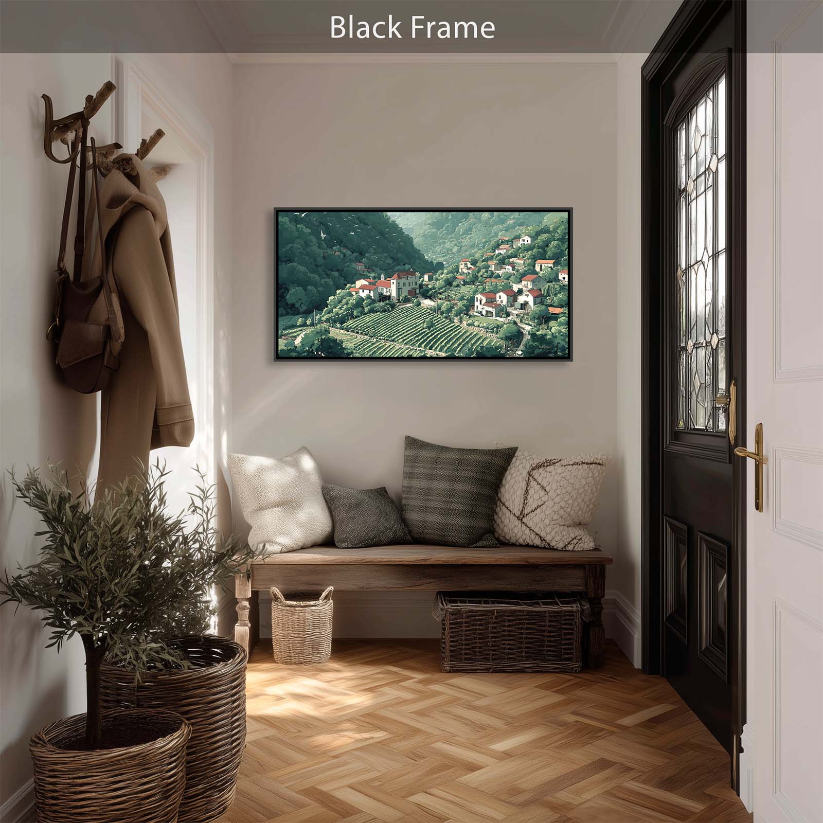 The scene’s gentle forms and harmonious palette bring a refined touch of nature and culture into your home or office, blending easily with a wide range of interior styles. Full of thoughtful detail, this piece celebrates the quiet bounty of life in a mountain village.