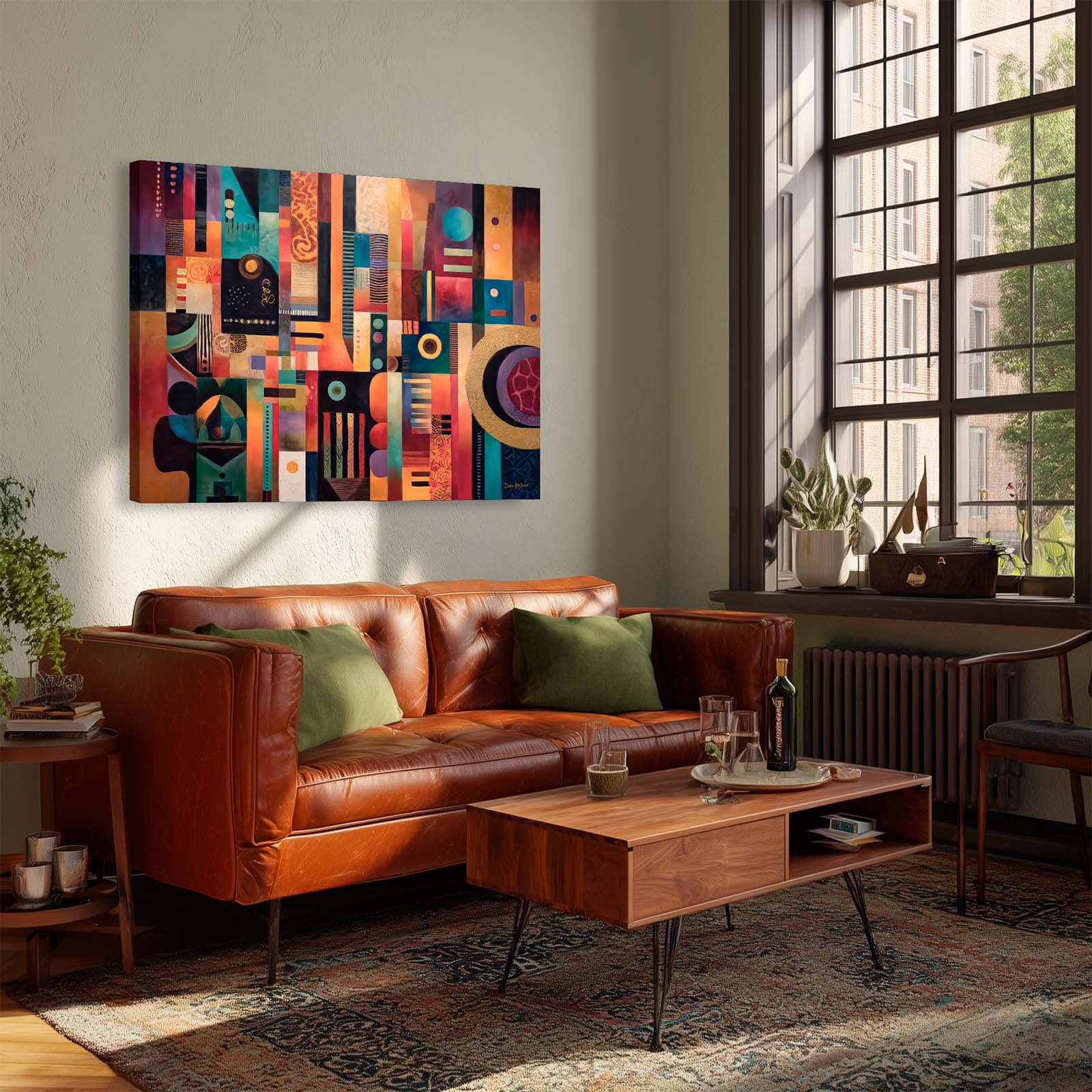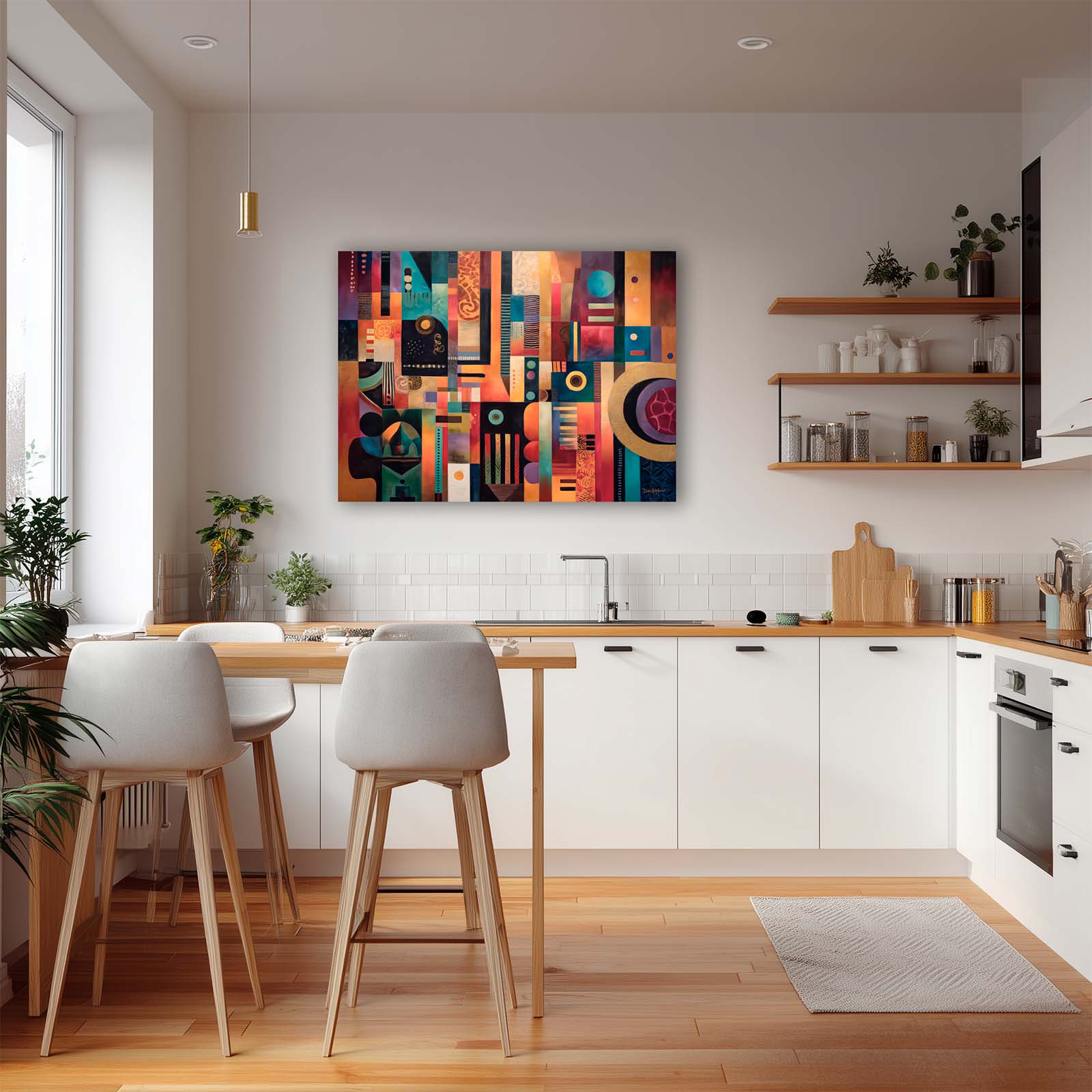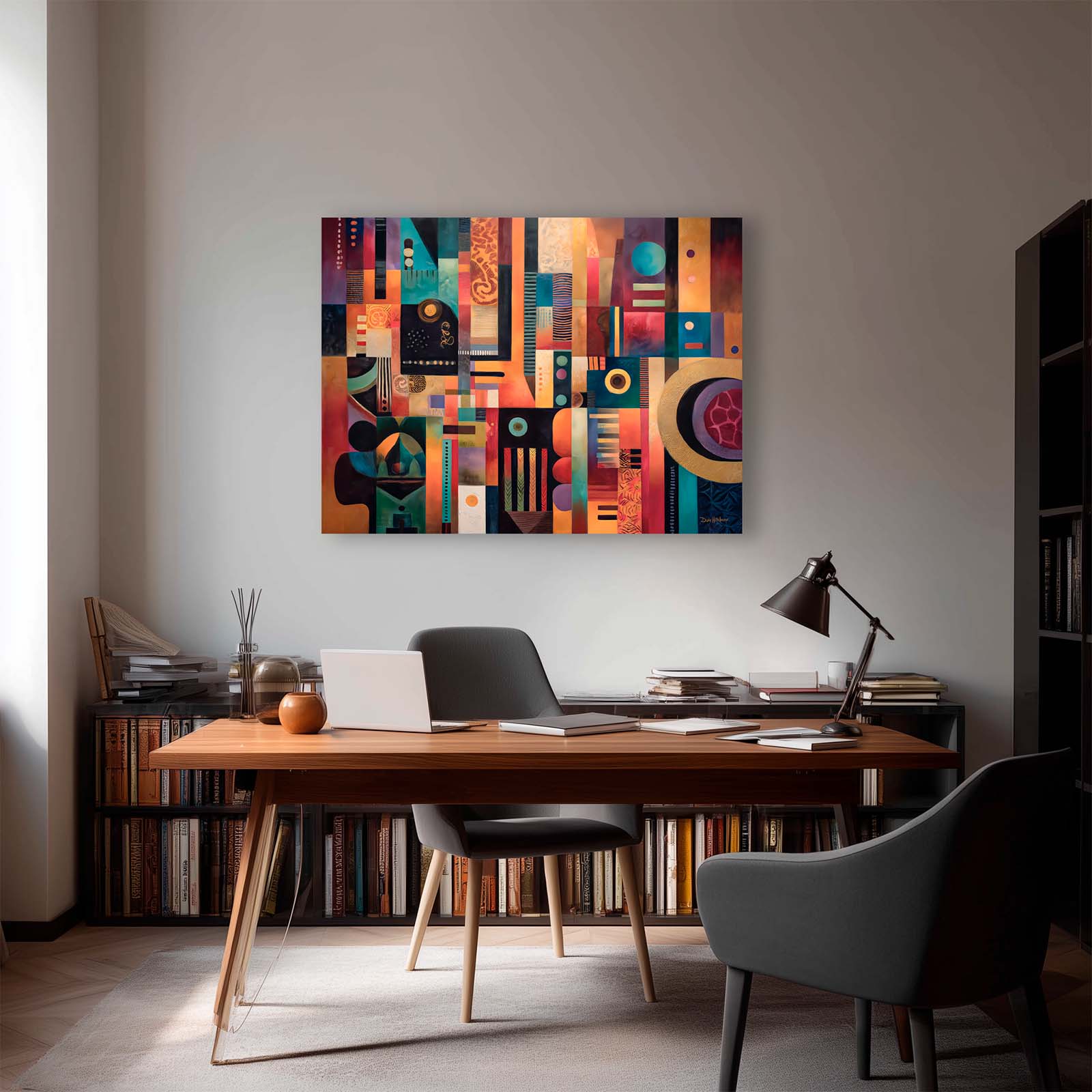 Add a splash of joy to your space with this lively abstract canvas print. Playful shapes and vibrant colors create a cheerful, informal vibe that brightens any room and complements a variety of decor styles. Printed on premium giclée canvas, it brings warmth, energy, and creativity to your home or office.