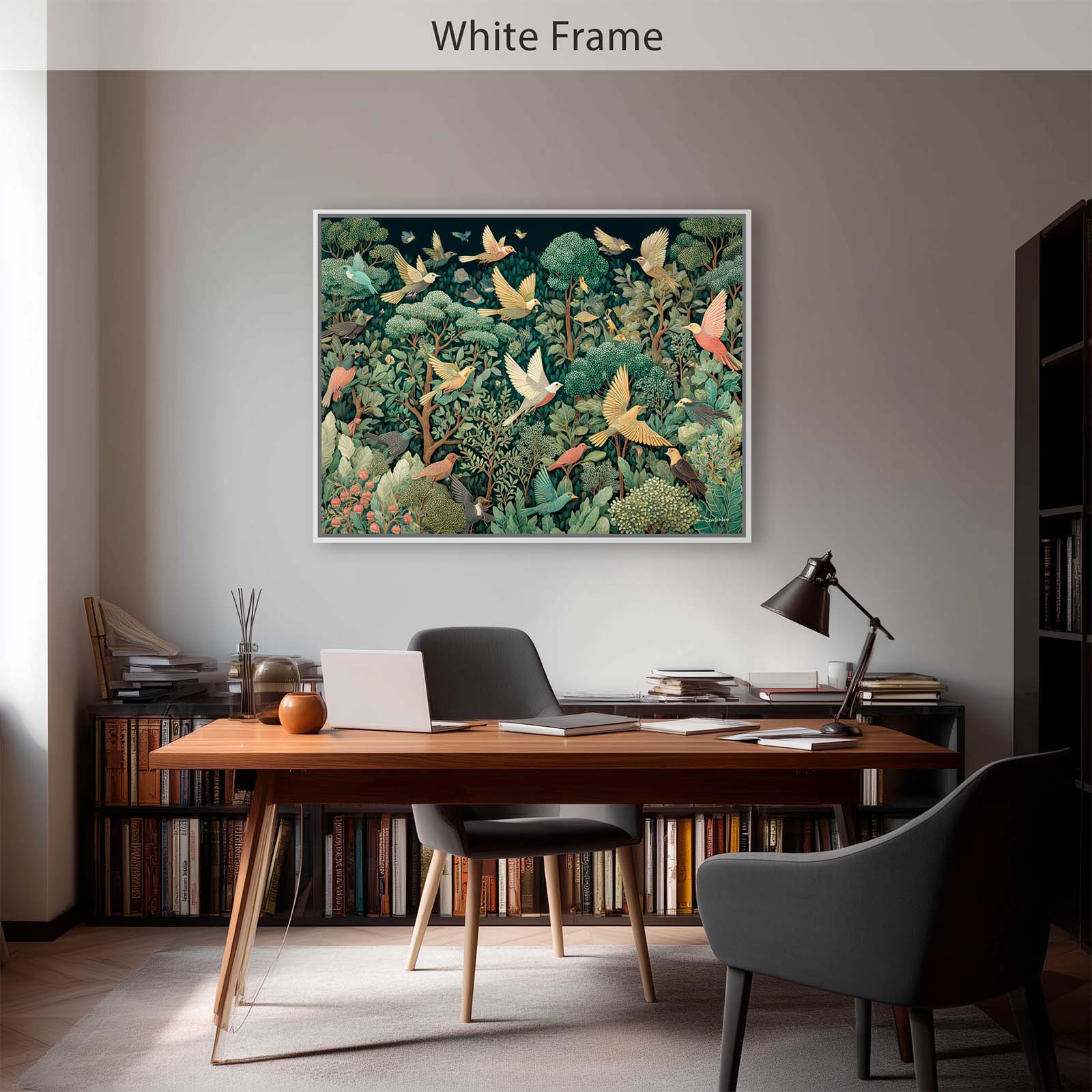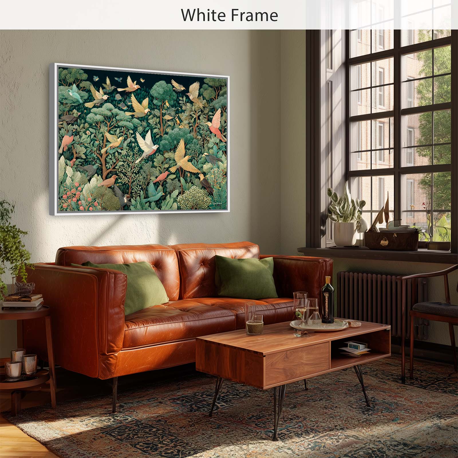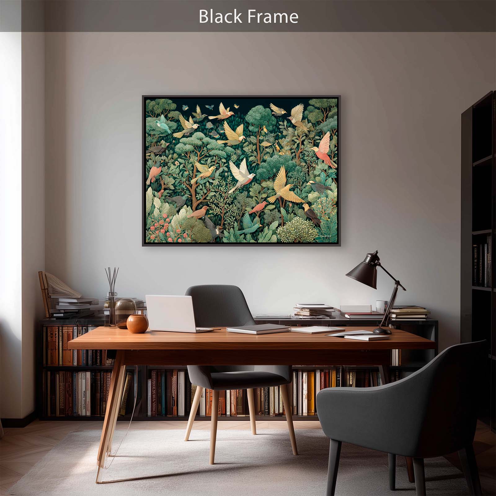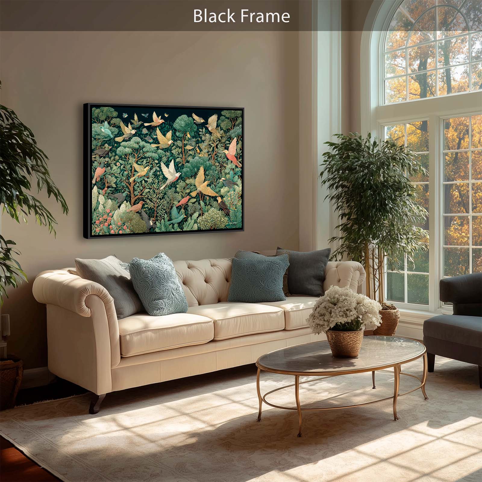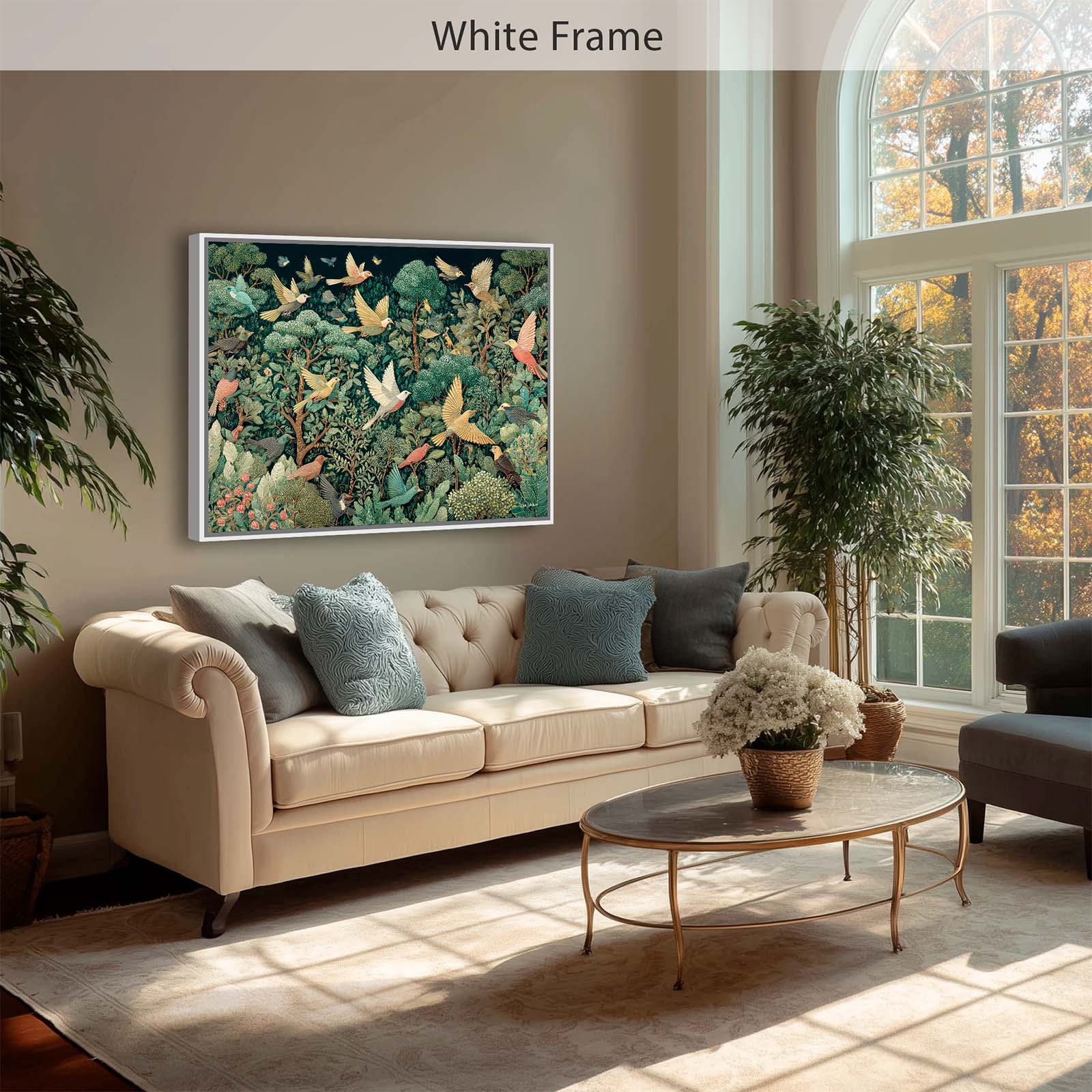 This print brings birds, foliage and organic forms to life with intricate detail and refined color. The result is a timeless piece that adds depth, elegance, and a touch of wonder to any home or office.