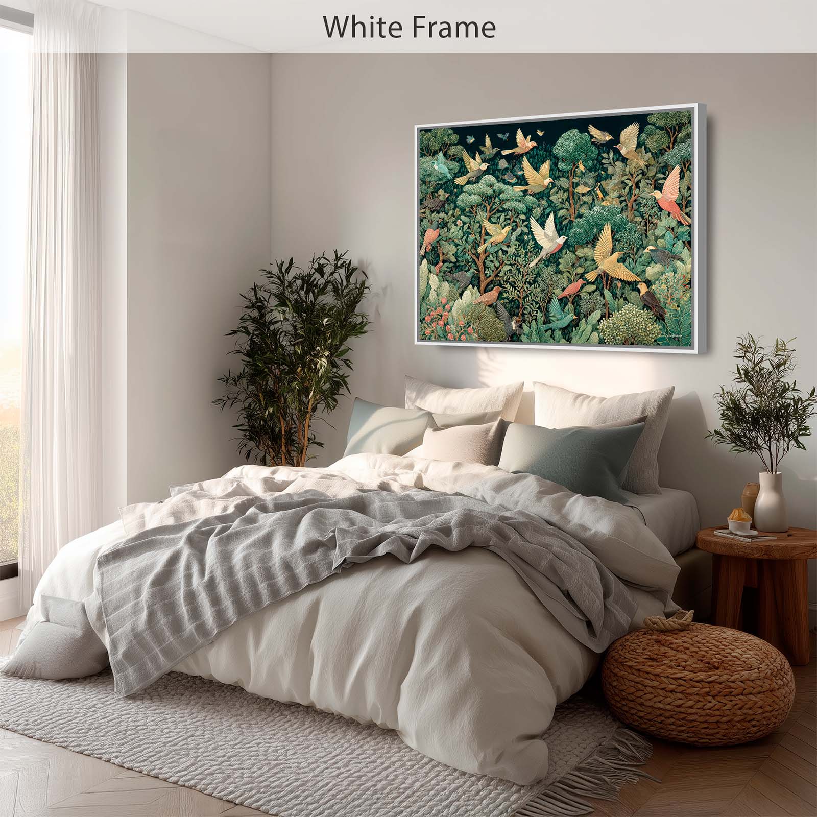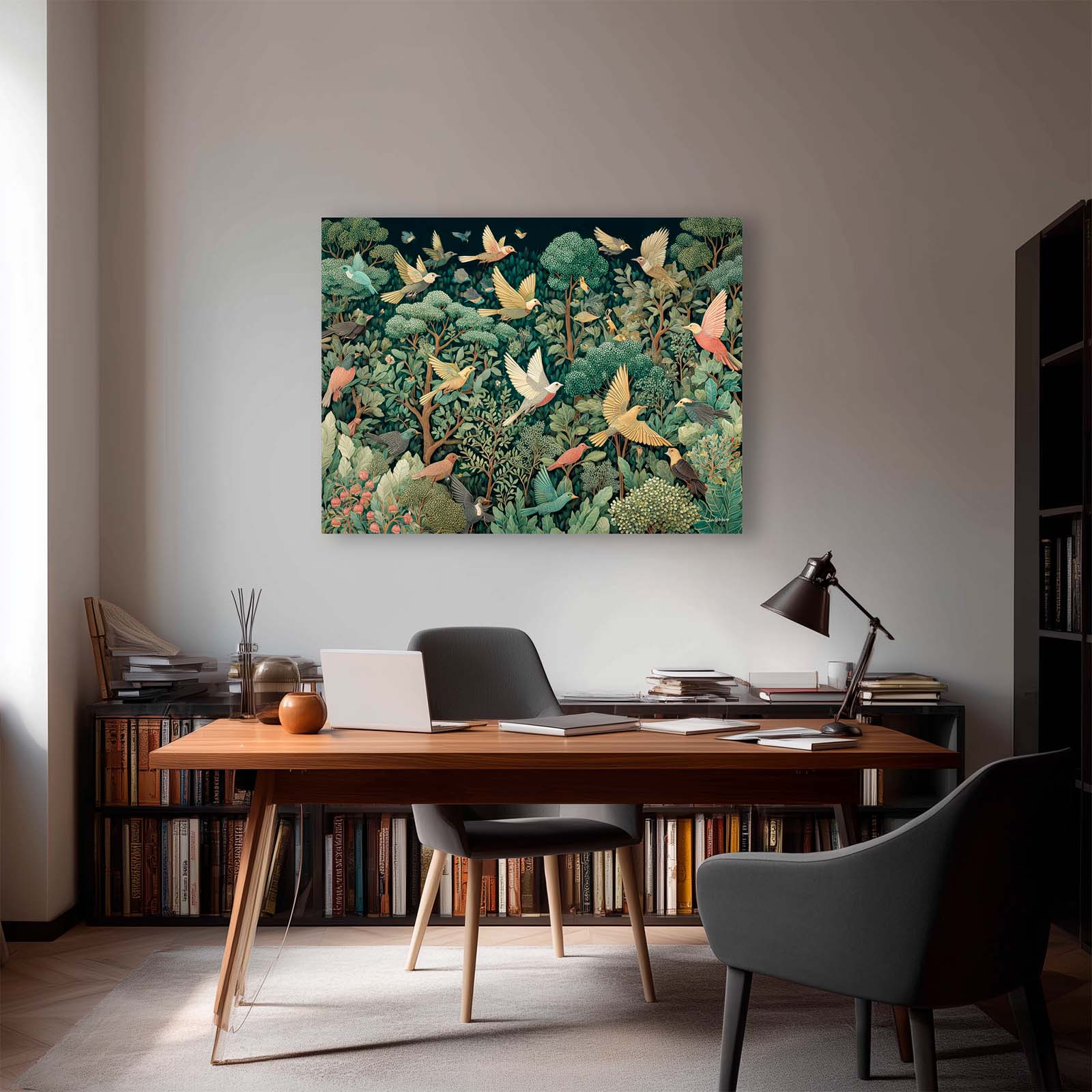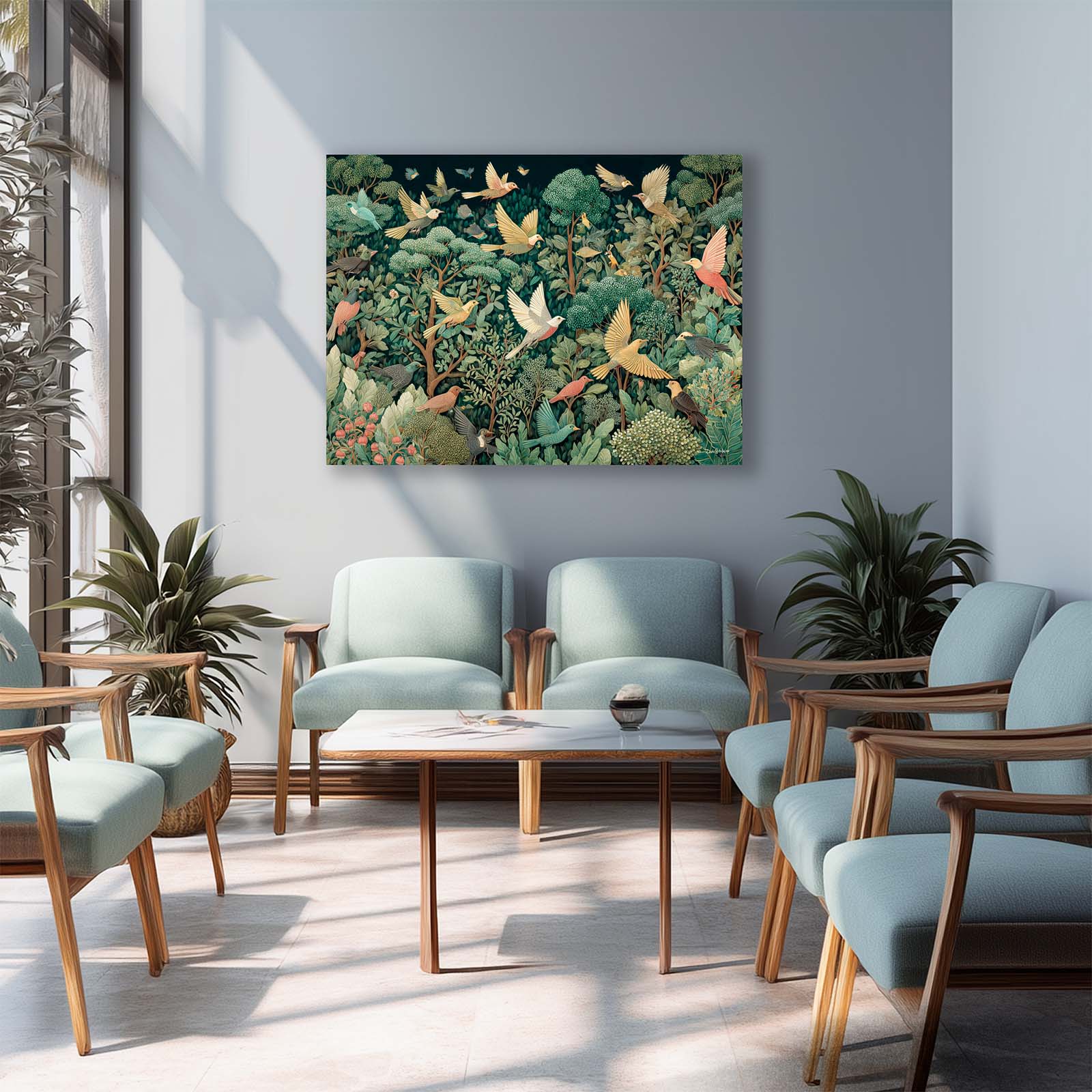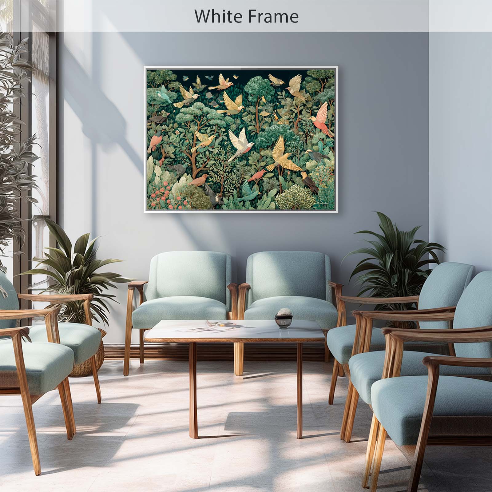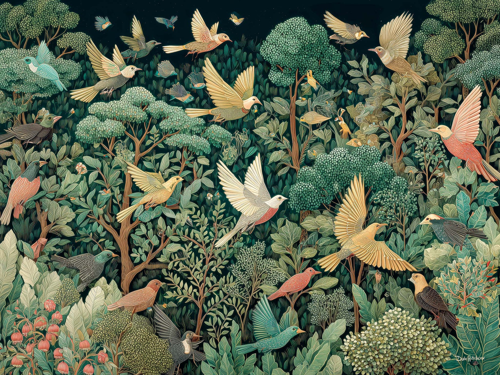 This print brings birds, foliage and organic forms to life with intricate detail and refined color. The result is a timeless piece that adds depth, elegance, and a touch of wonder to any home or office.