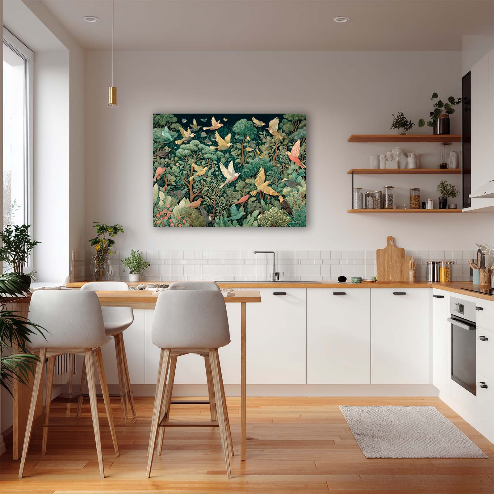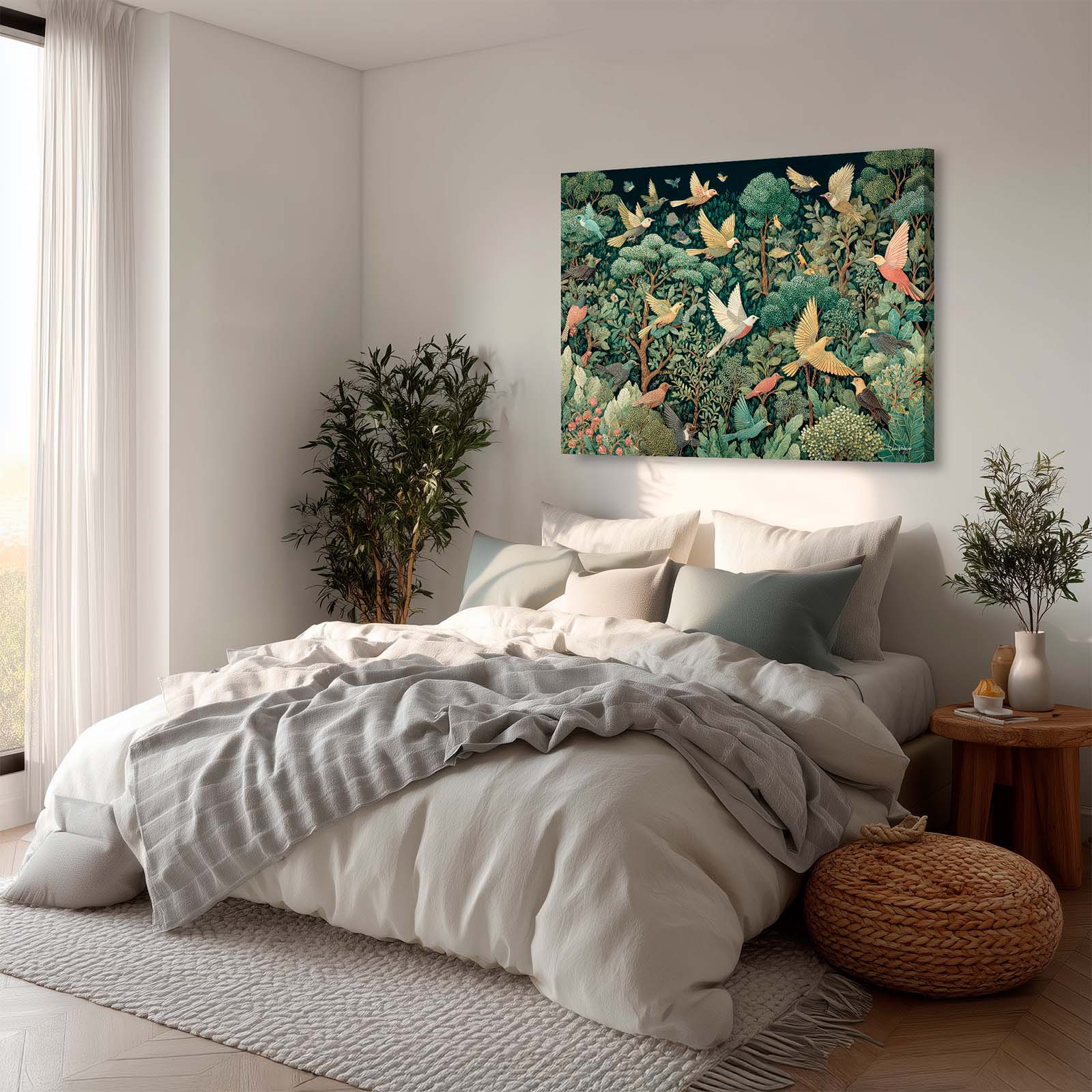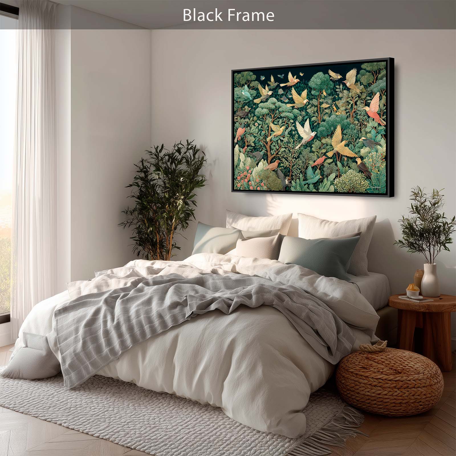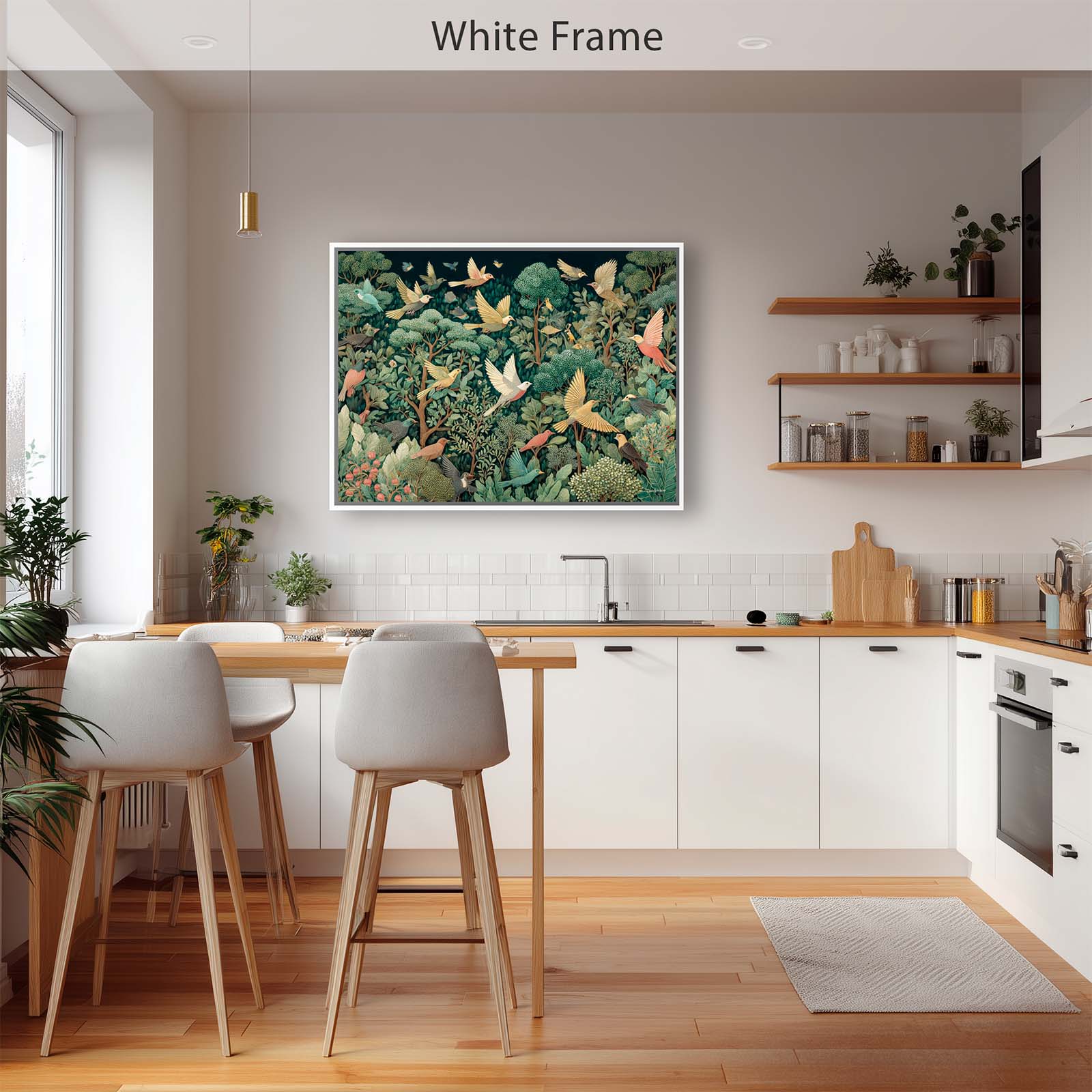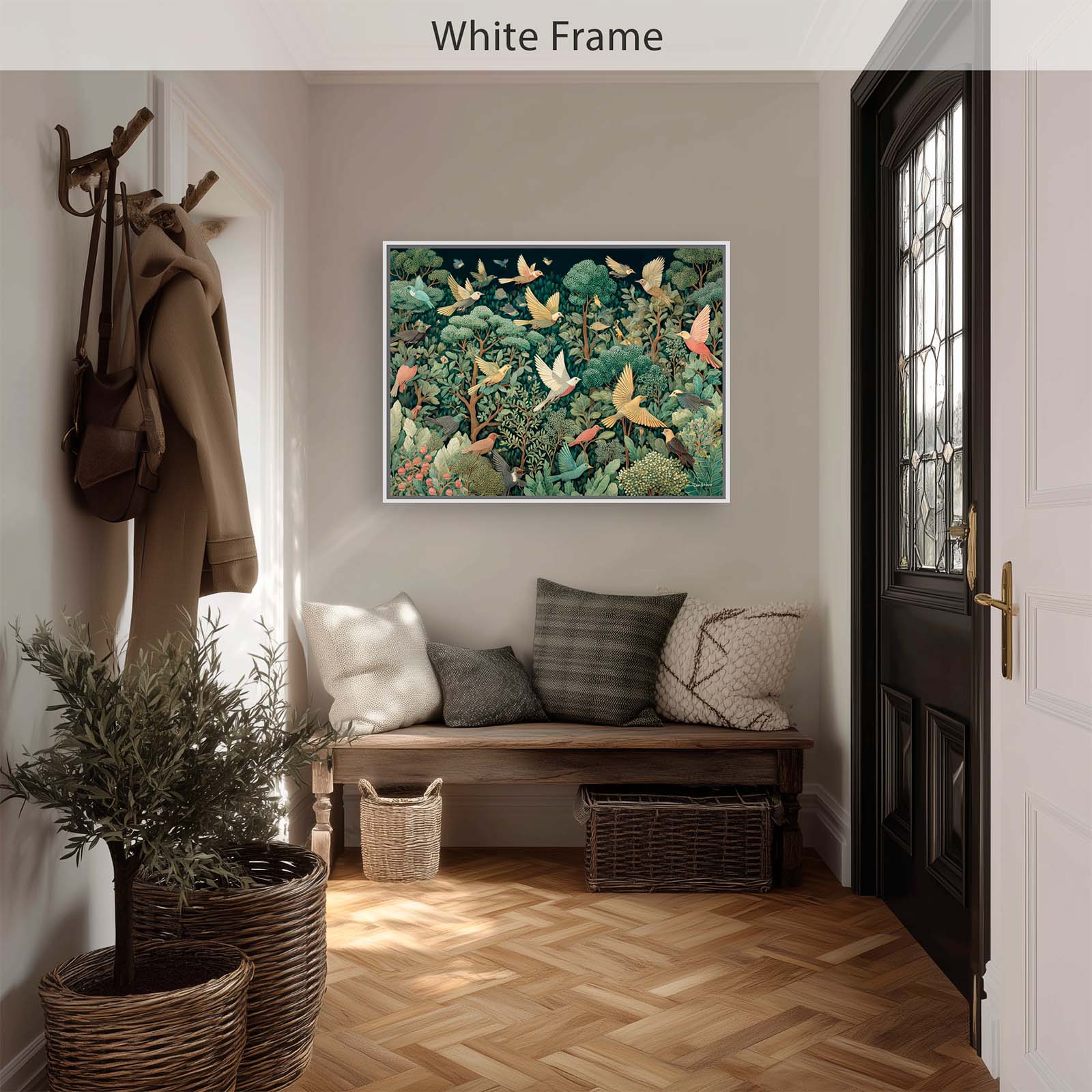 This print brings birds, foliage and organic forms to life with intricate detail and refined color. The result is a timeless piece that adds depth, elegance, and a touch of wonder to any home or office.