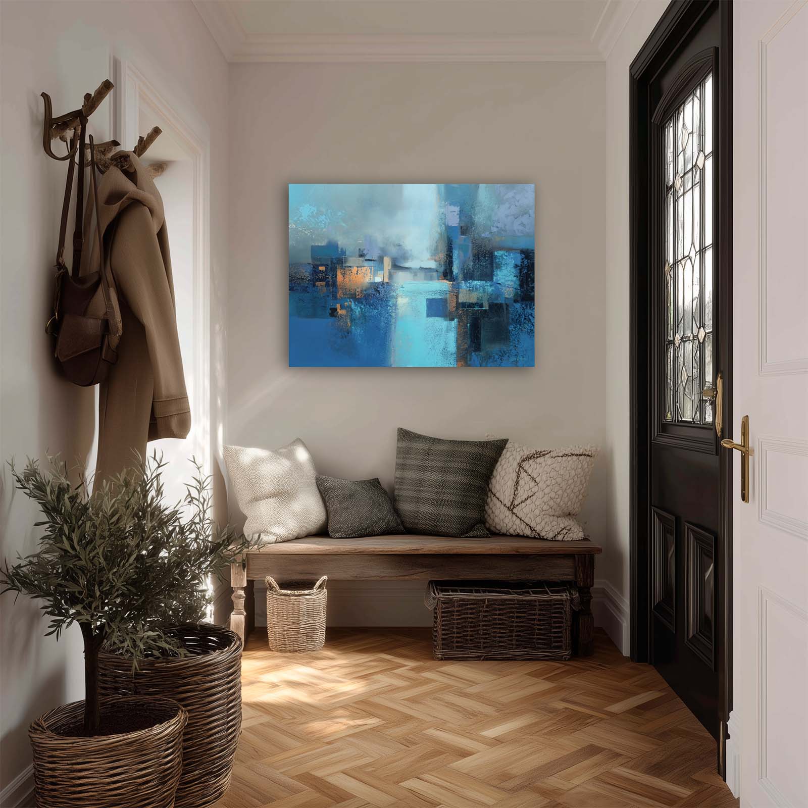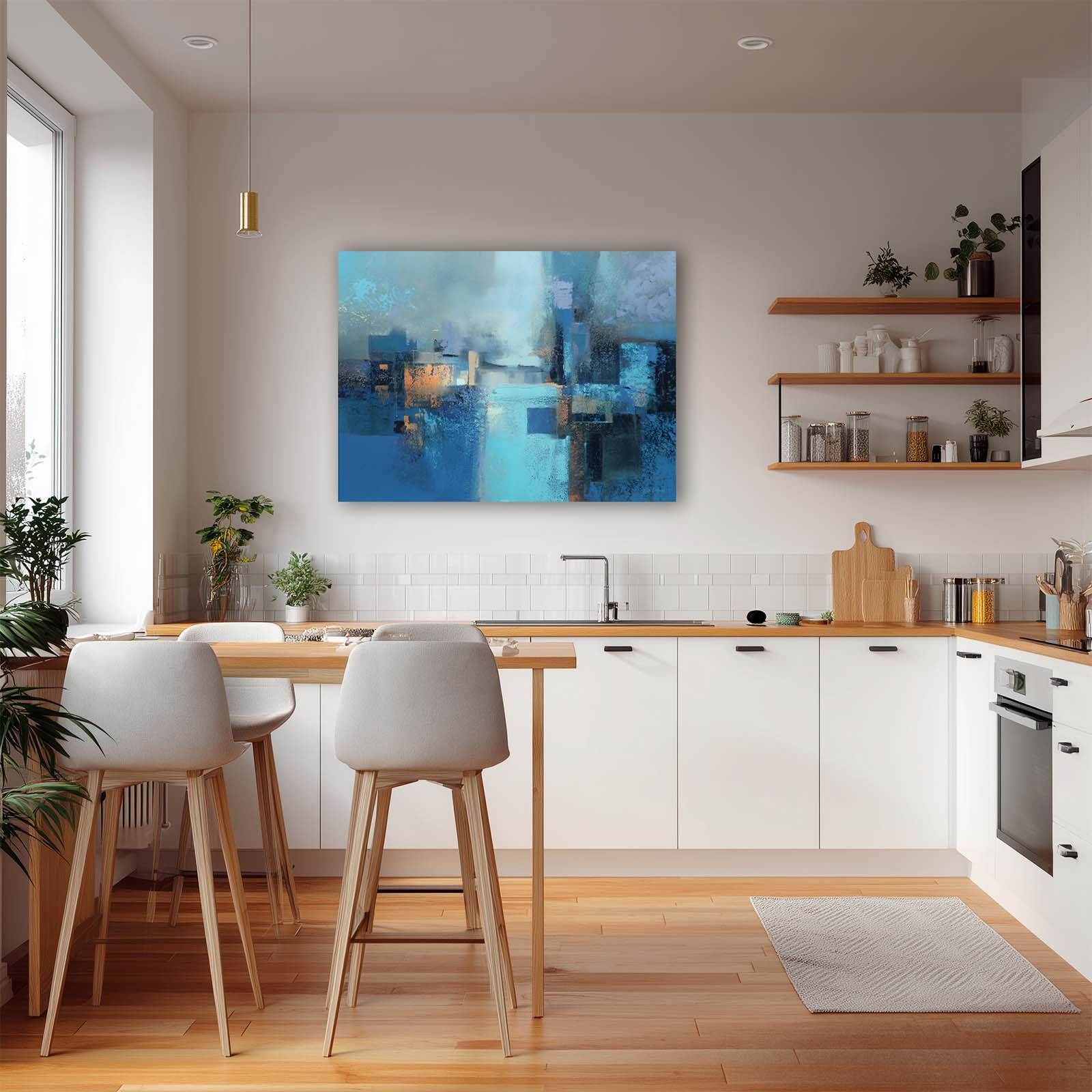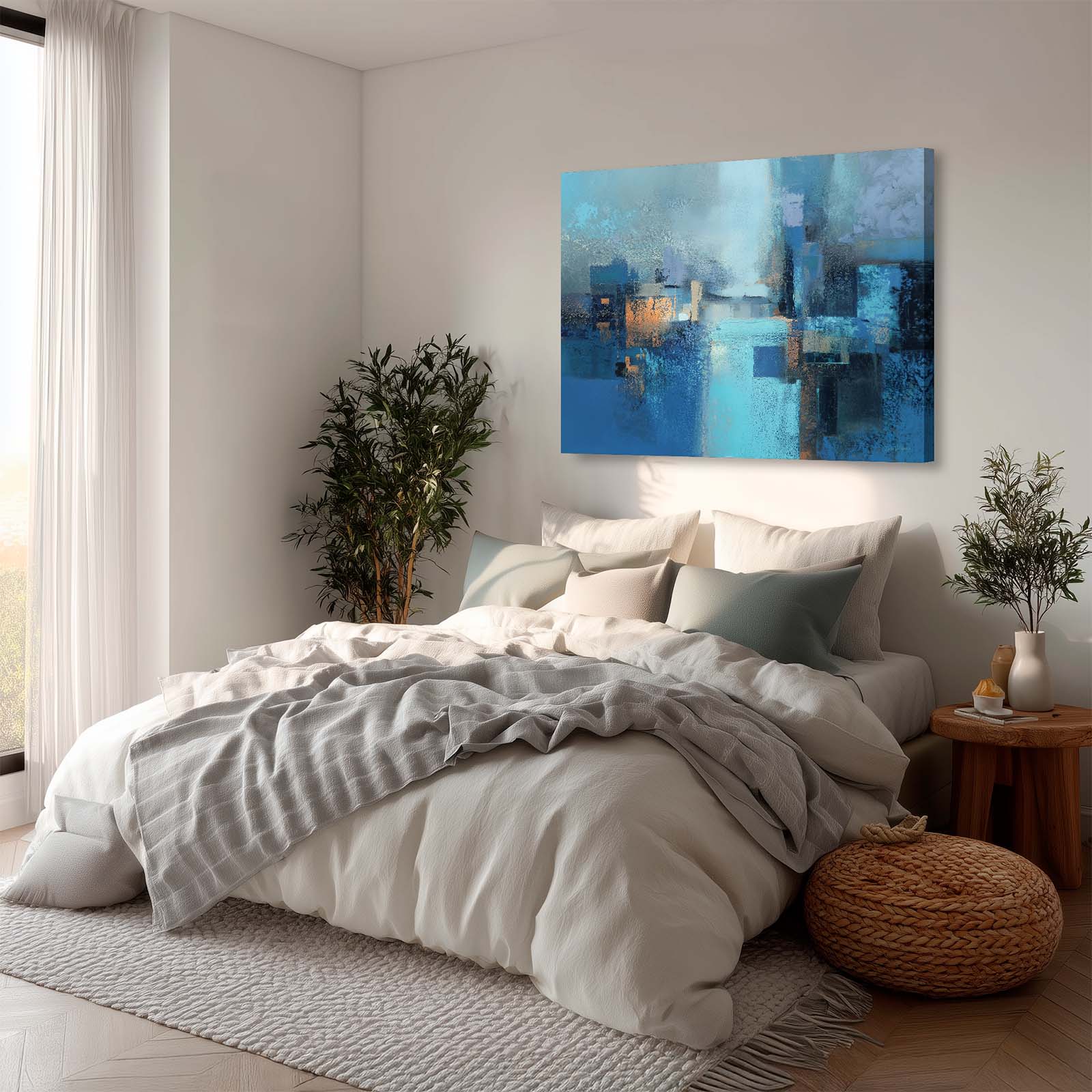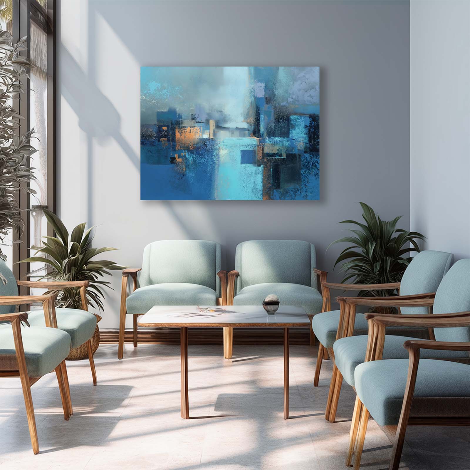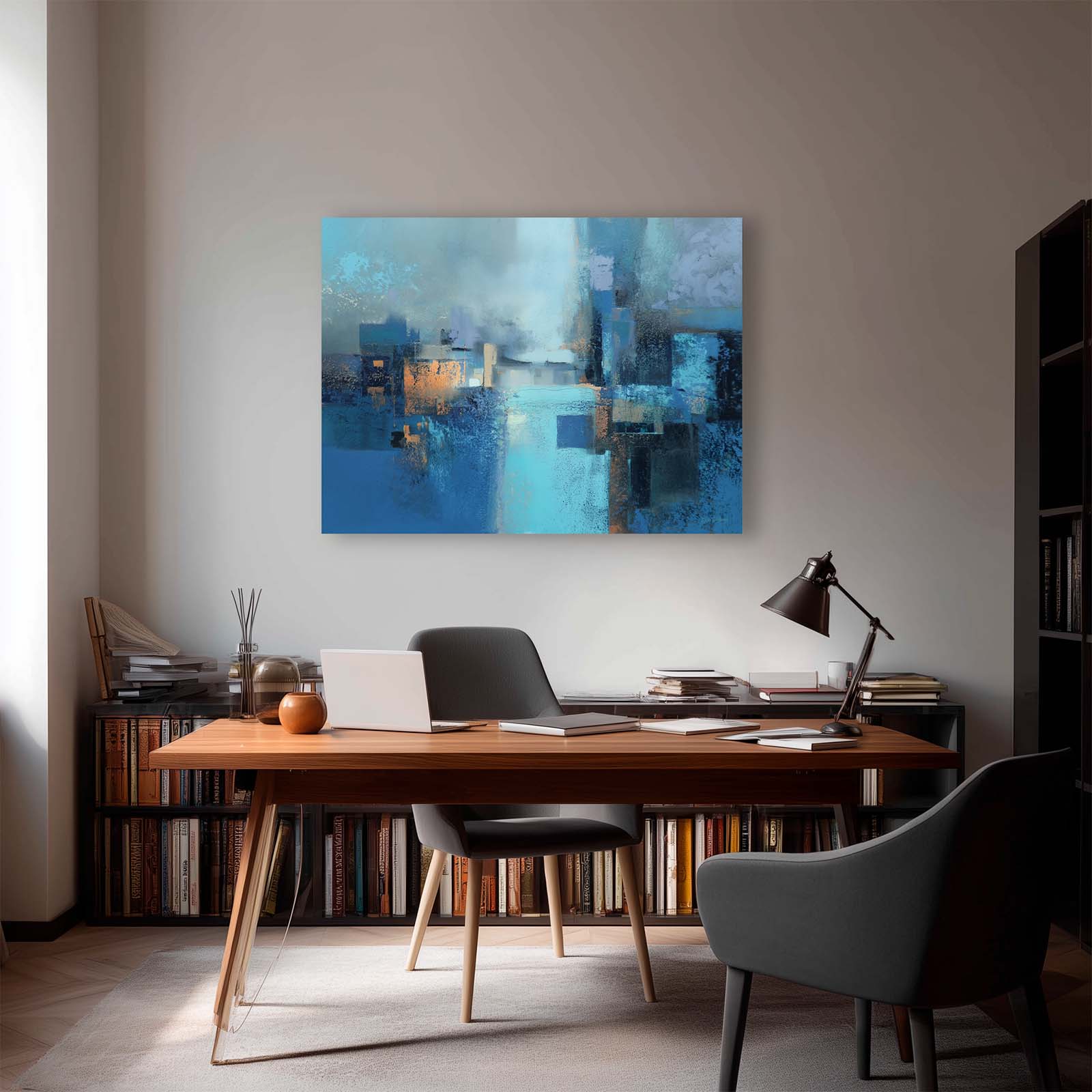 Invite calm and reflection with this mesmerizing blue abstract canvas print. Its flowing forms and serene hues draw the eye and inspire contemplation, enhancing the ambiance of any room. Printed on premium giclée canvas, it brings sophistication, depth, and timeless beauty to your home or office decor.