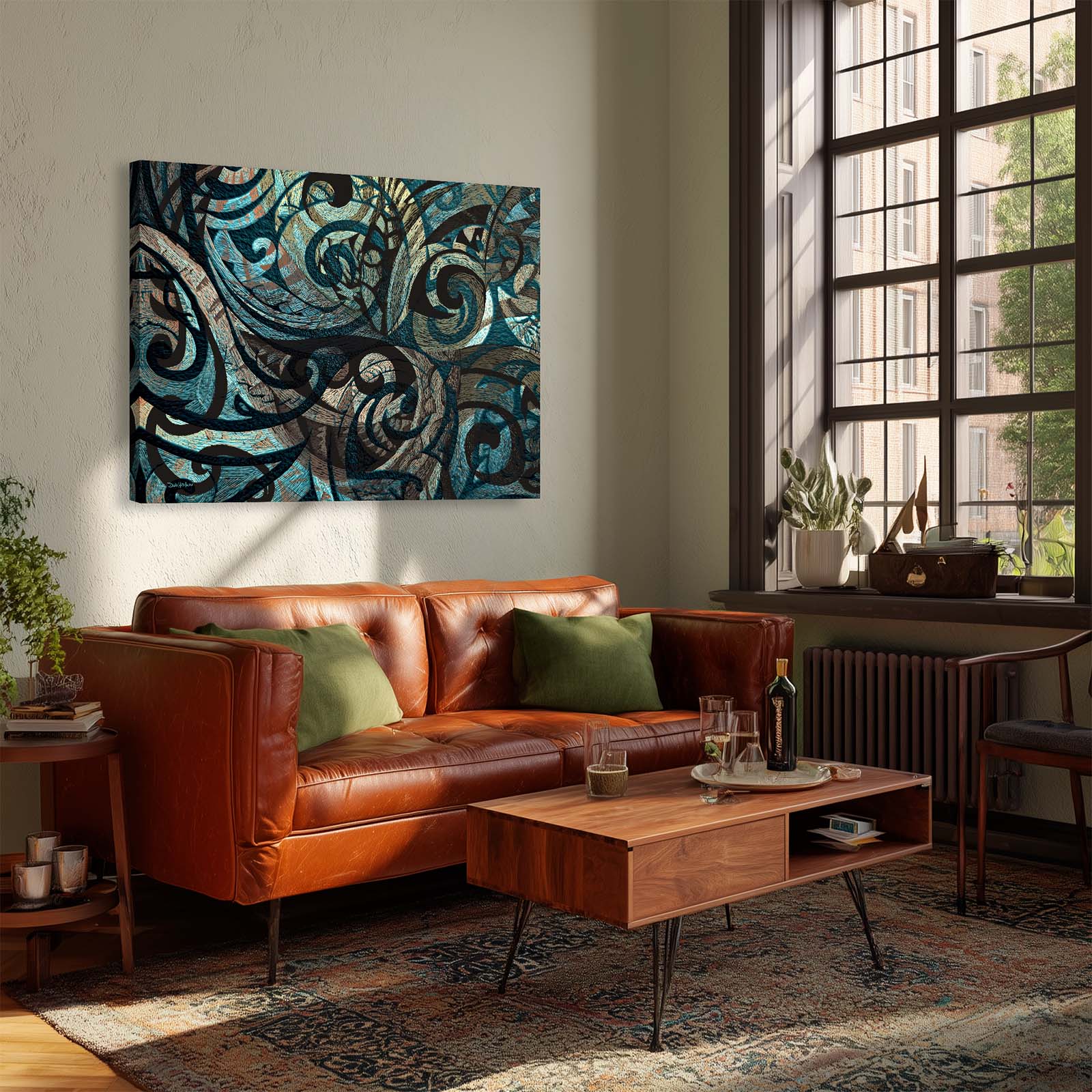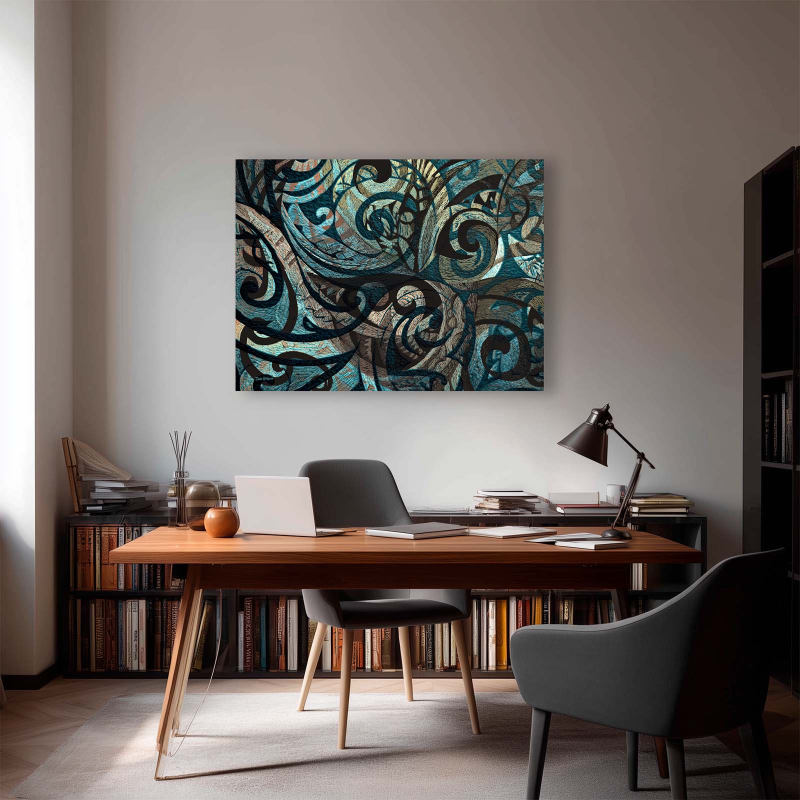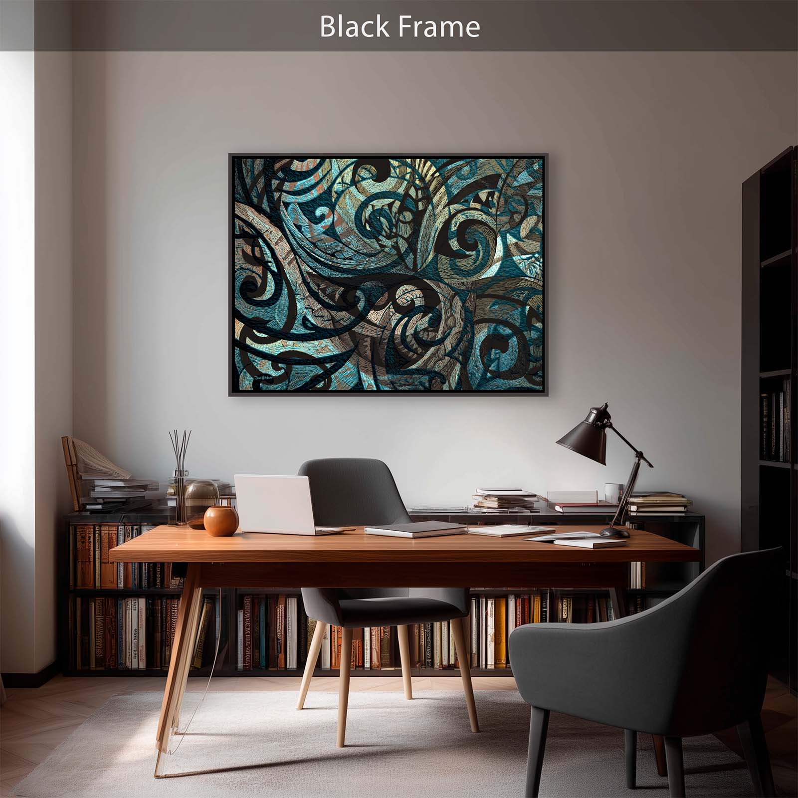Unleash bold elegance with this striking abstract canvas print. Its black and blue tones, inspired by the sleek patterns of big cats, create a dynamic, captivating presence that enhances any room. Printed on premium giclée canvas, it brings sophistication, energy, and artistic intrigue to your home or office decor.