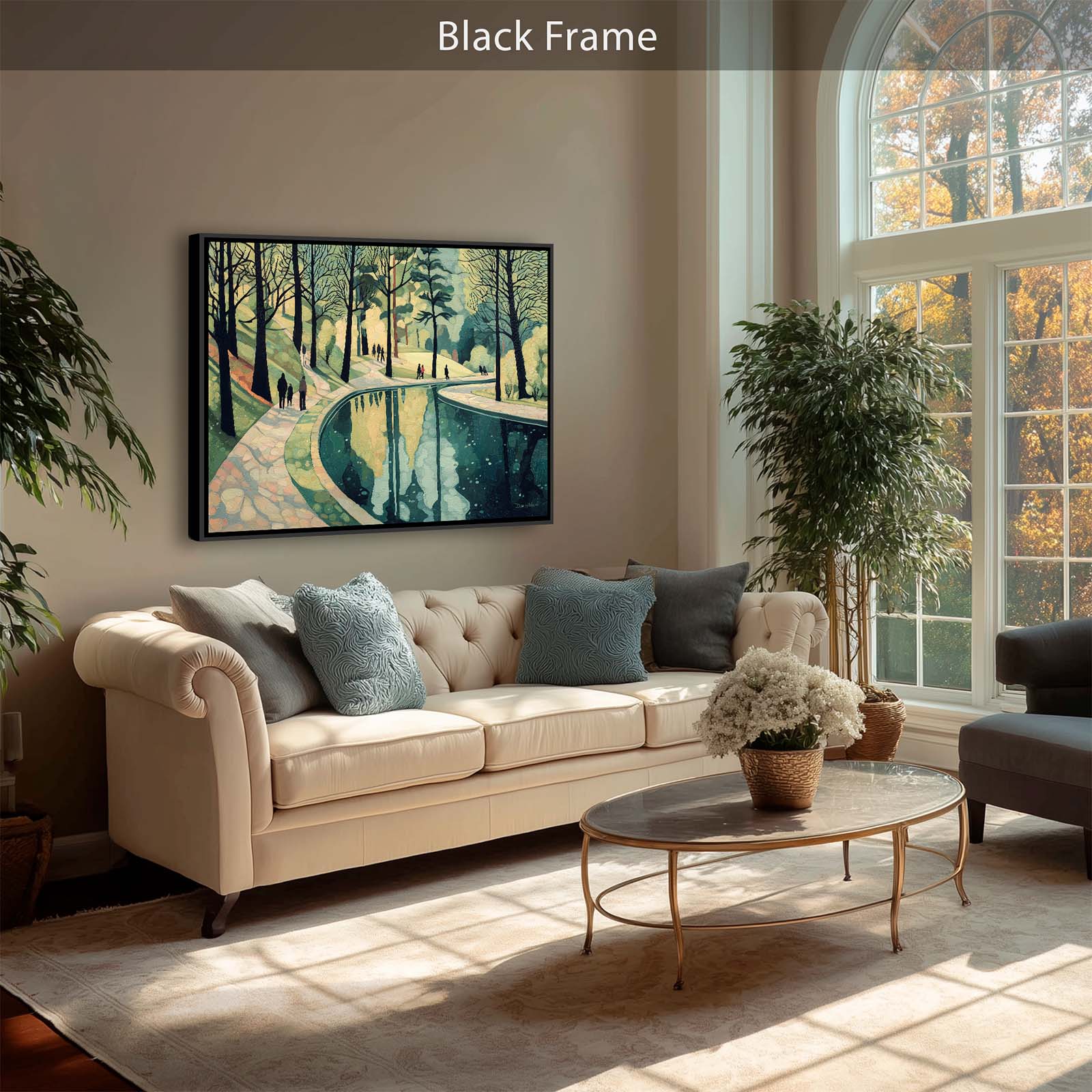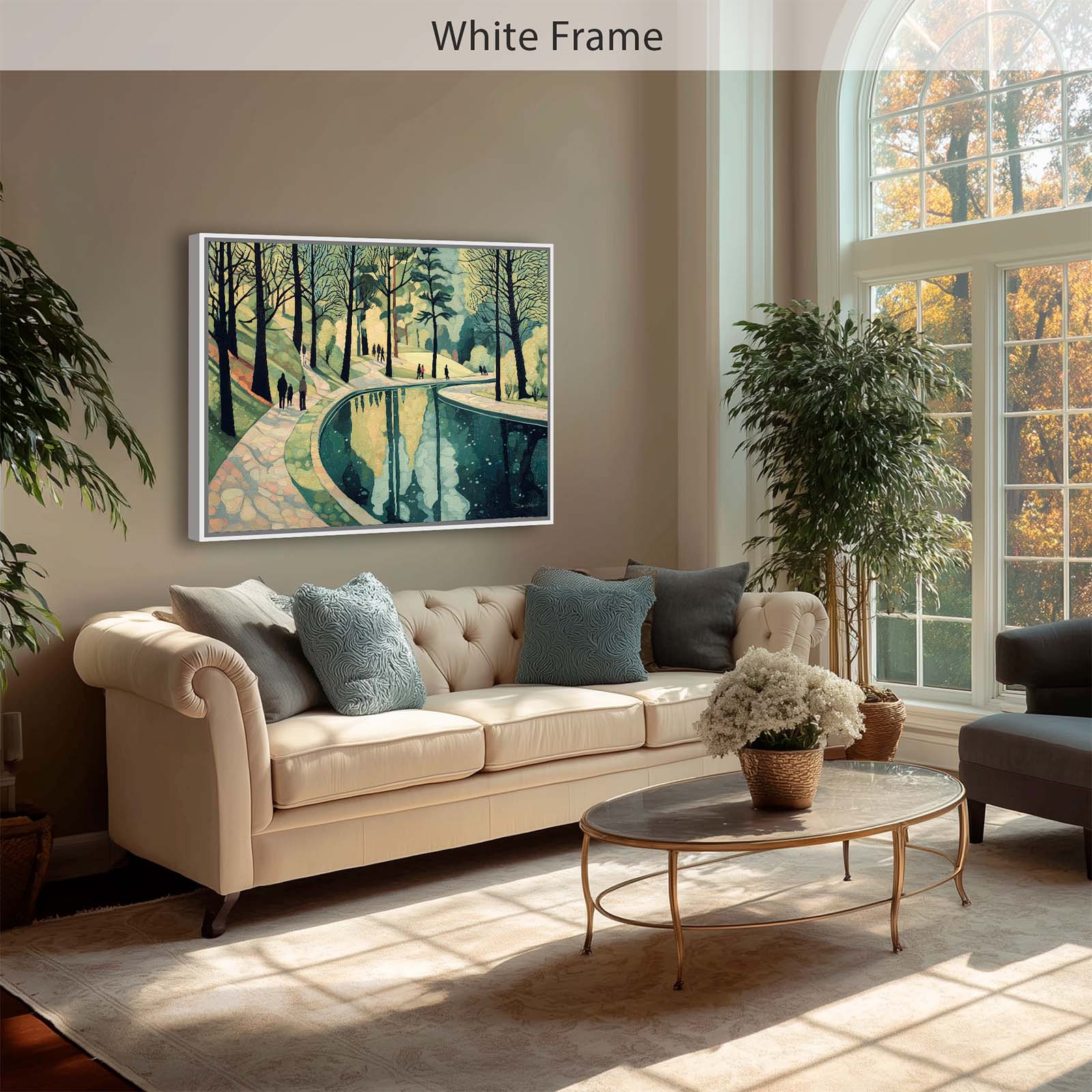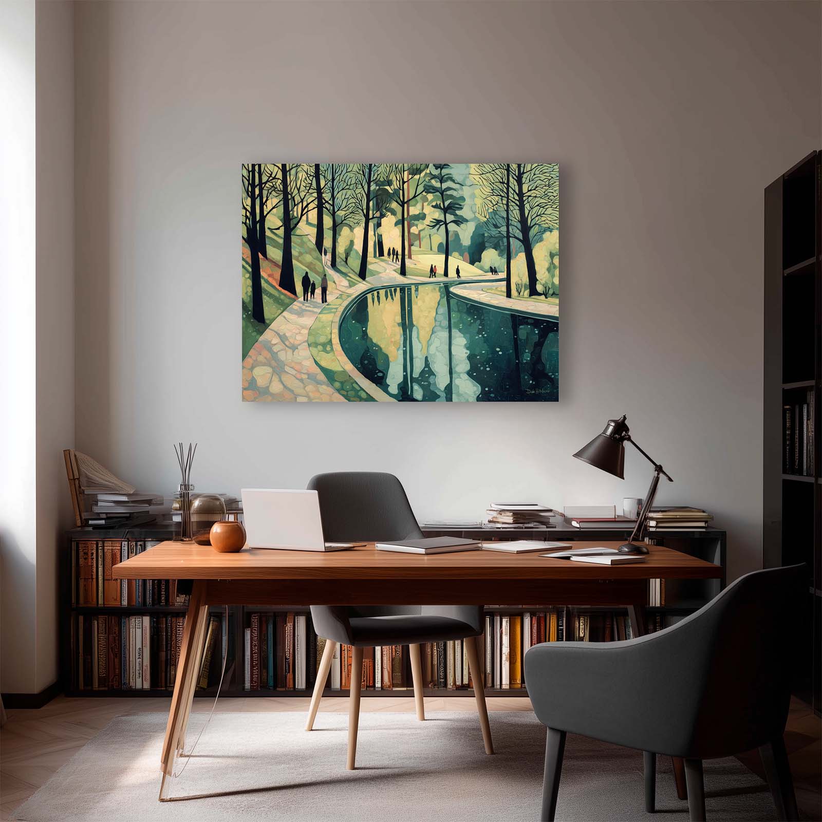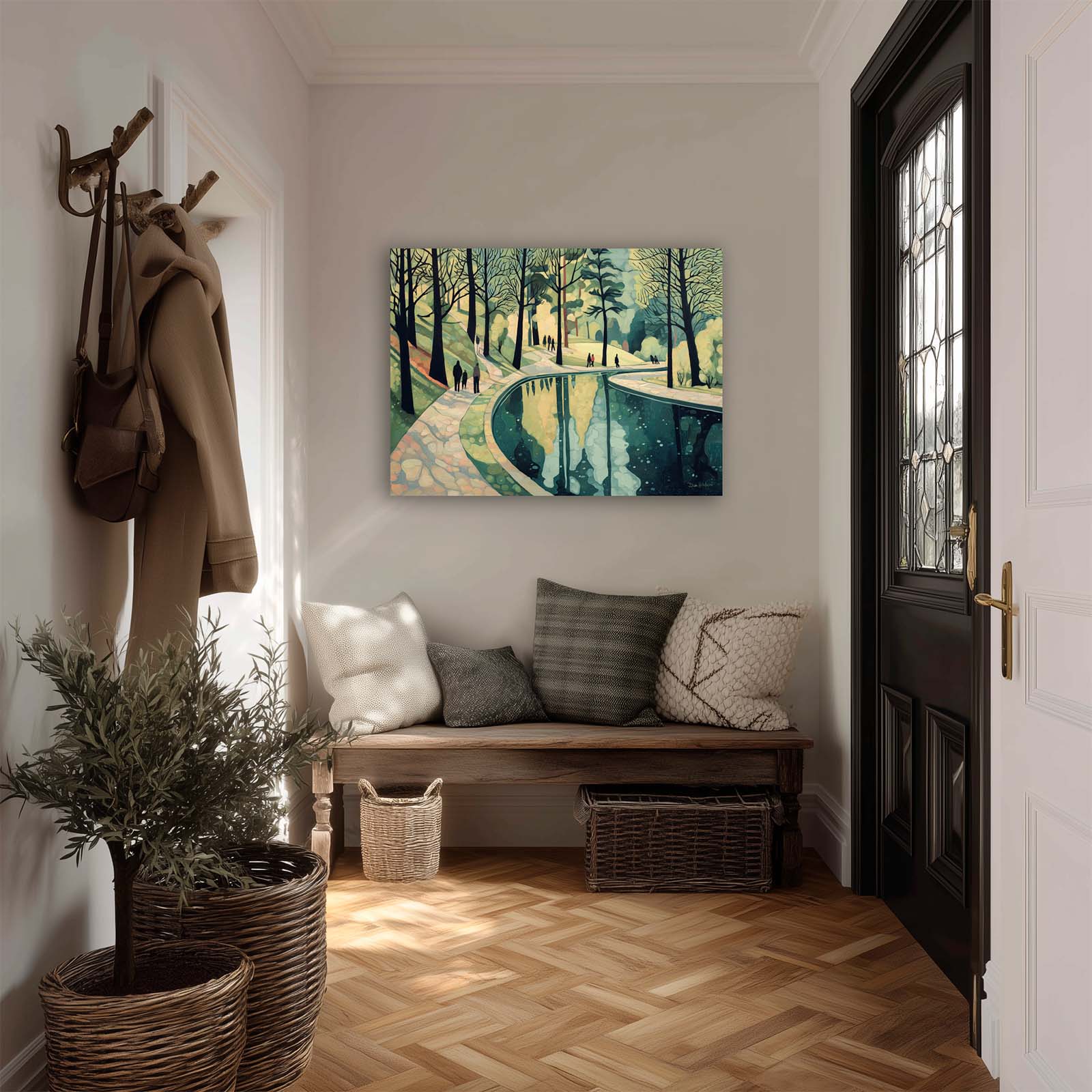 Capture the joy of a perfect summer day with this impressionistic canvas print. People strolling beside a shimmering stream in a lush city park bring warmth, life, and serene beauty to any room. Printed on premium giclée canvas, it enhances your home or office with timeless charm and a touch of peaceful elegance.