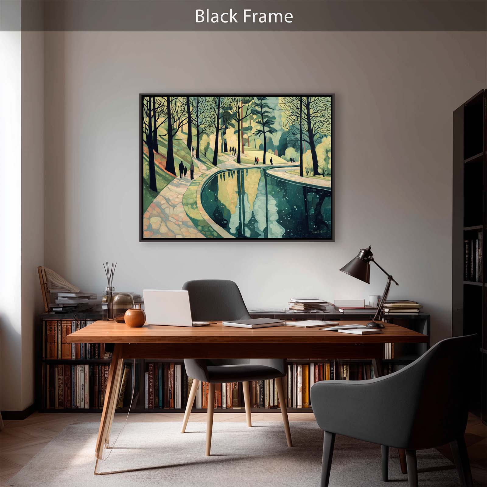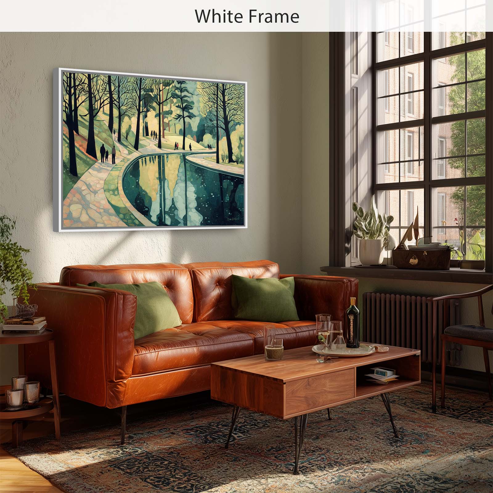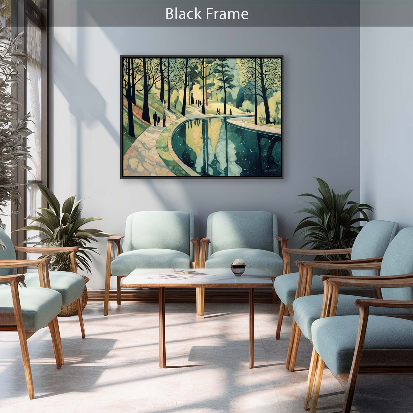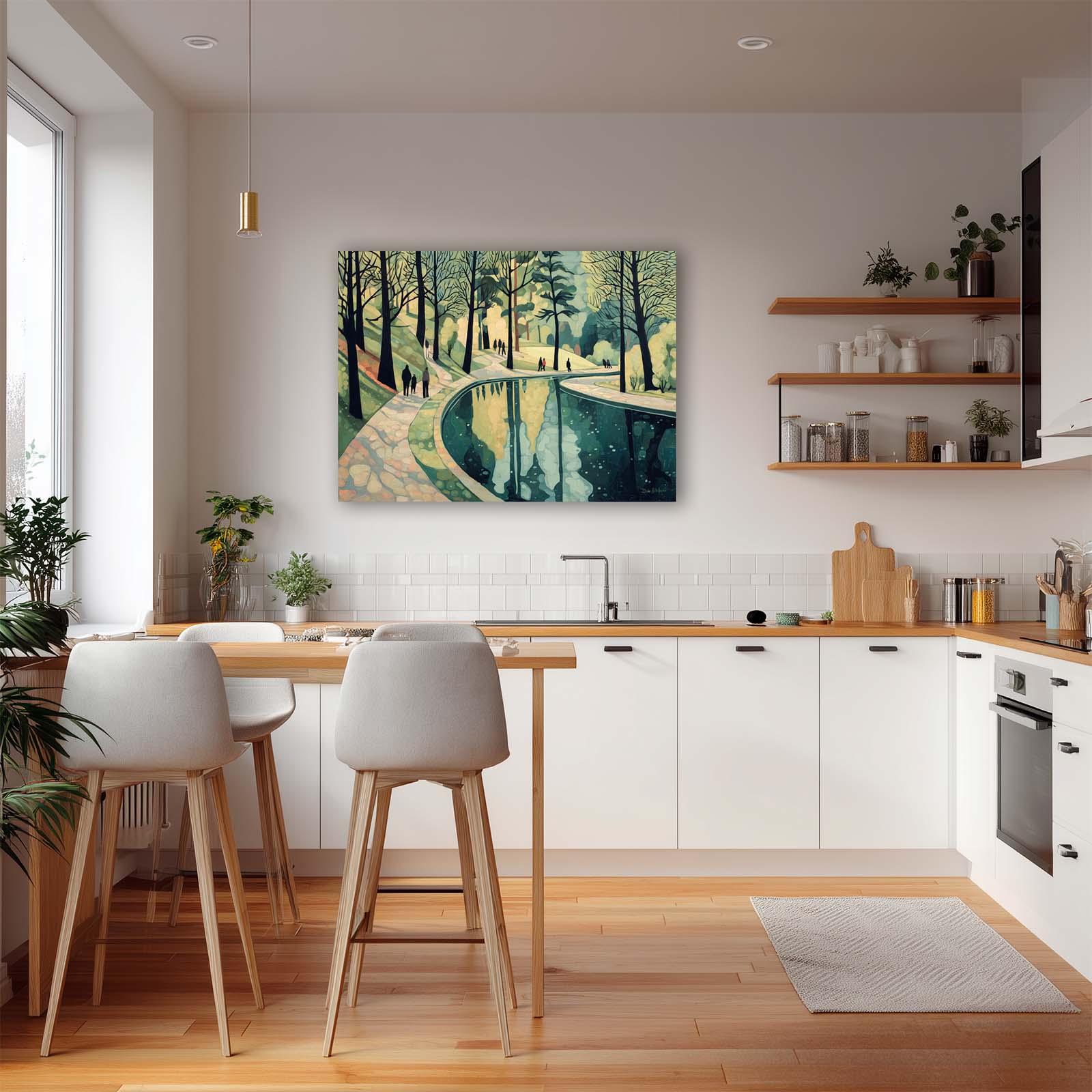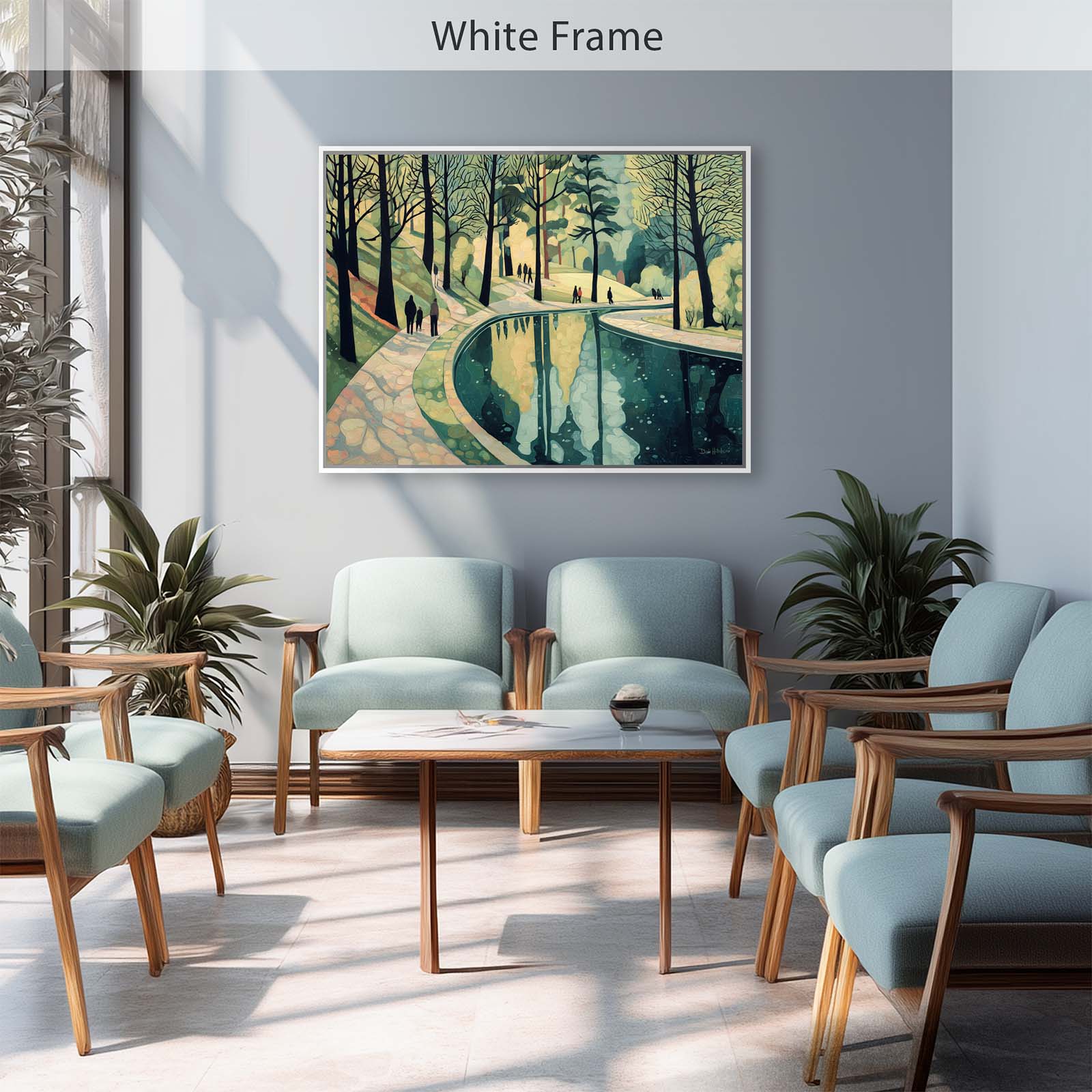 Capture the joy of a perfect summer day with this impressionistic canvas print. People strolling beside a shimmering stream in a lush city park bring warmth, life, and serene beauty to any room. Printed on premium giclée canvas, it enhances your home or office with timeless charm and a touch of peaceful elegance.