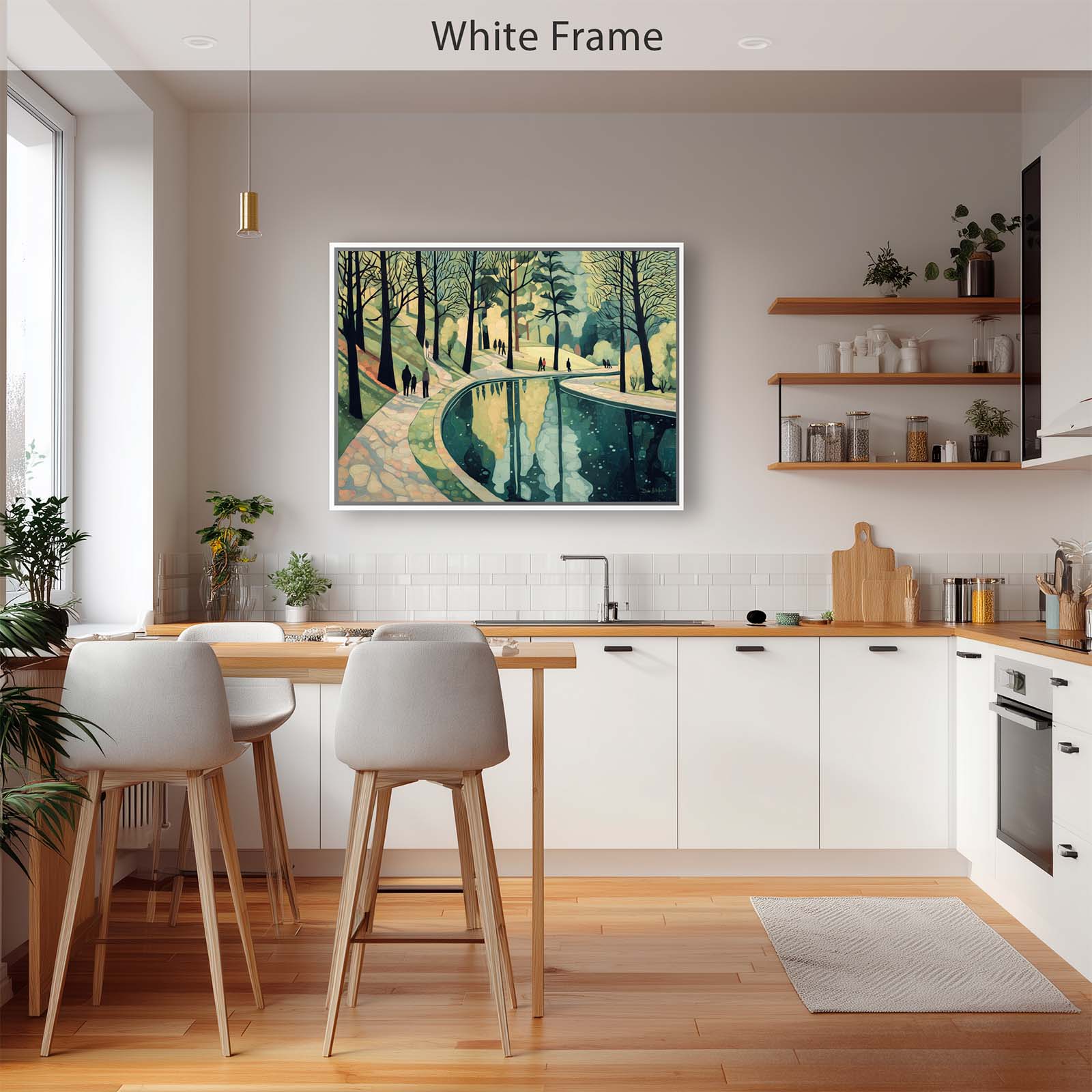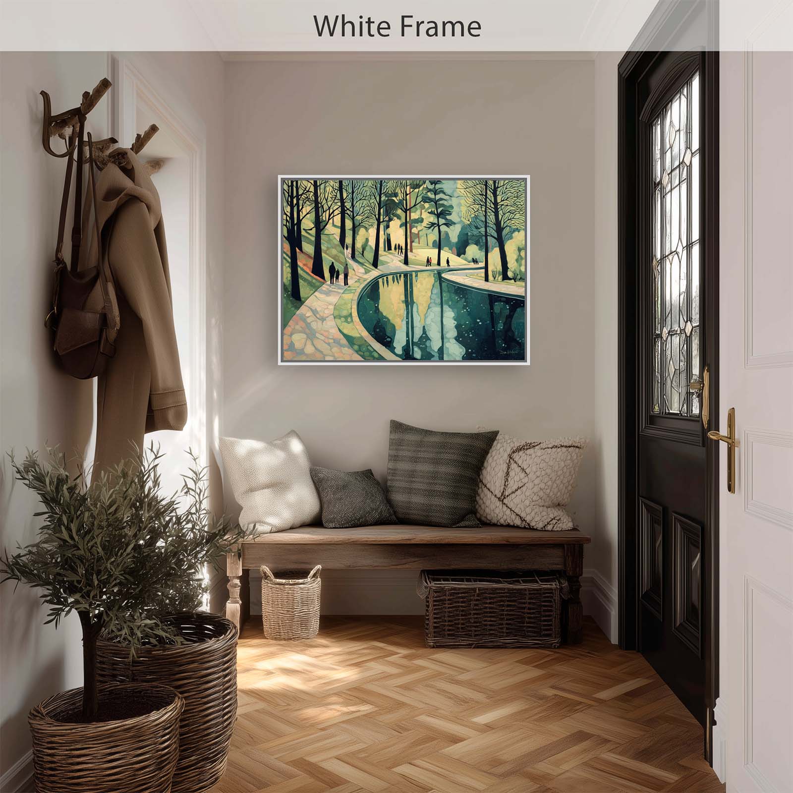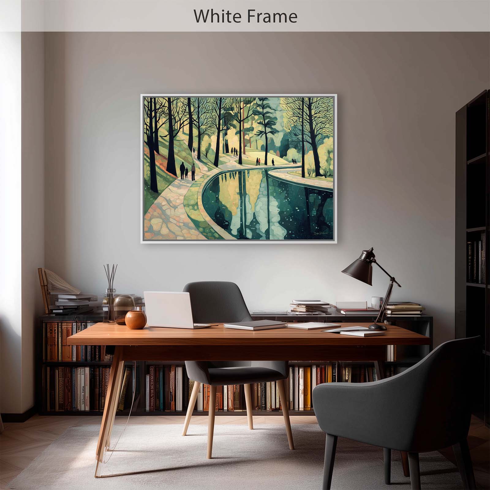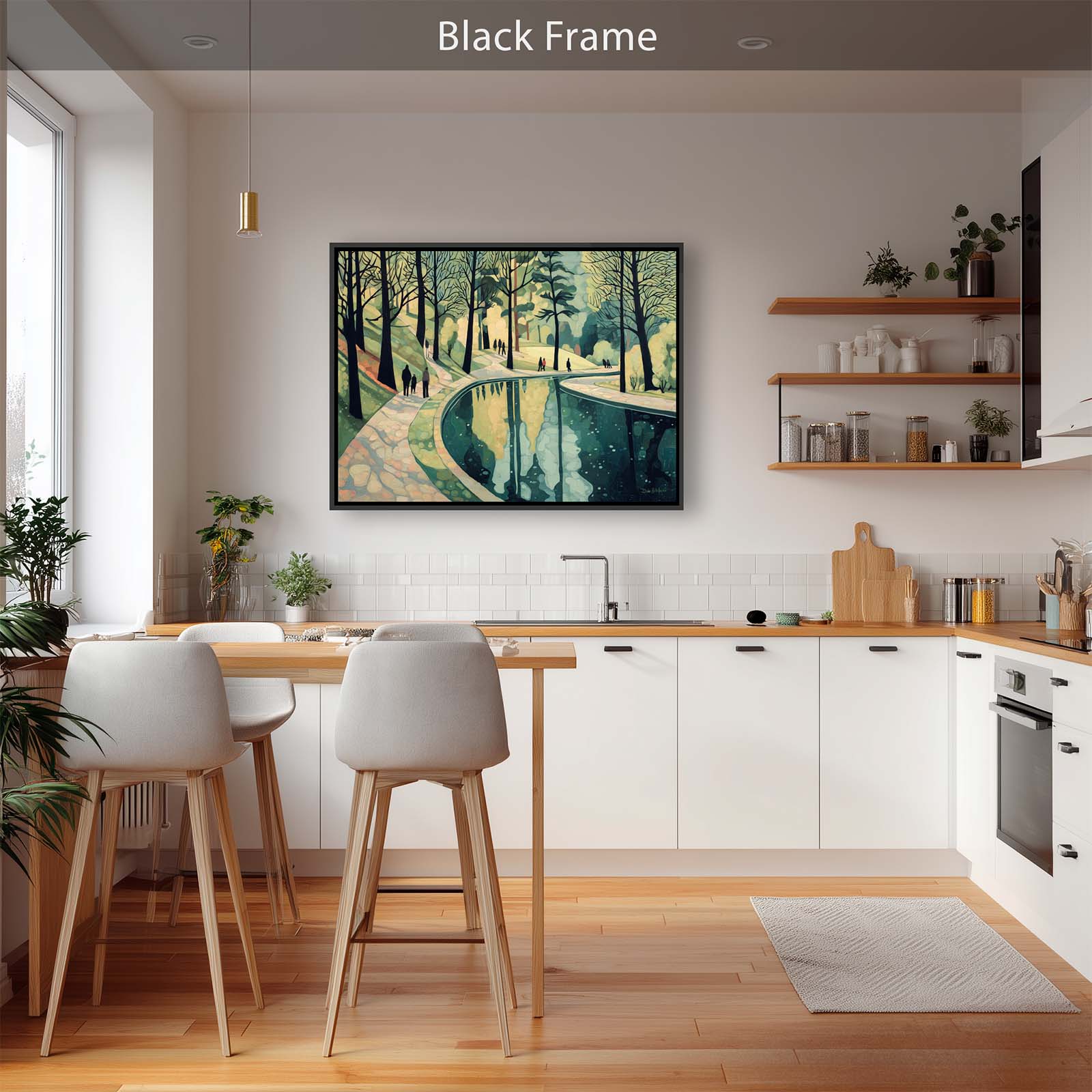 Capture the joy of a perfect summer day with this impressionistic canvas print. People strolling beside a shimmering stream in a lush city park bring warmth, life, and serene beauty to any room. Printed on premium giclée canvas, it enhances your home or office with timeless charm and a touch of peaceful elegance.