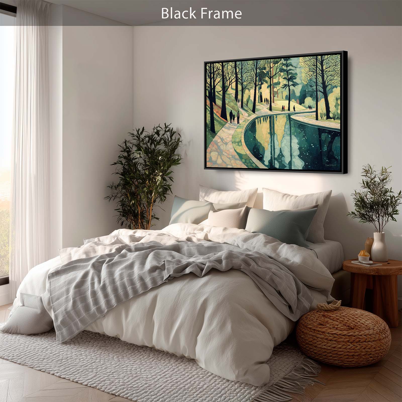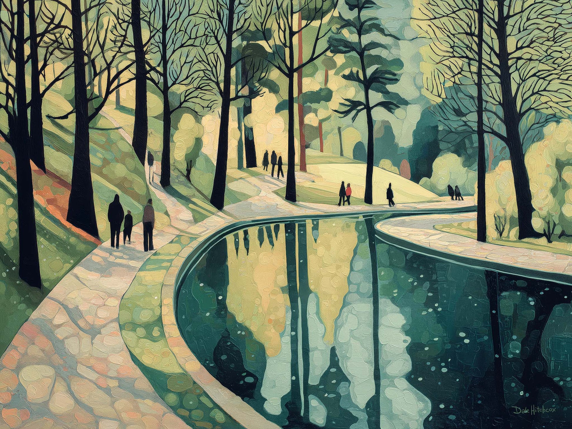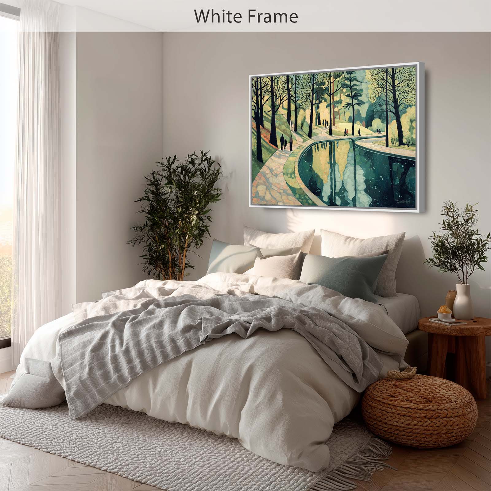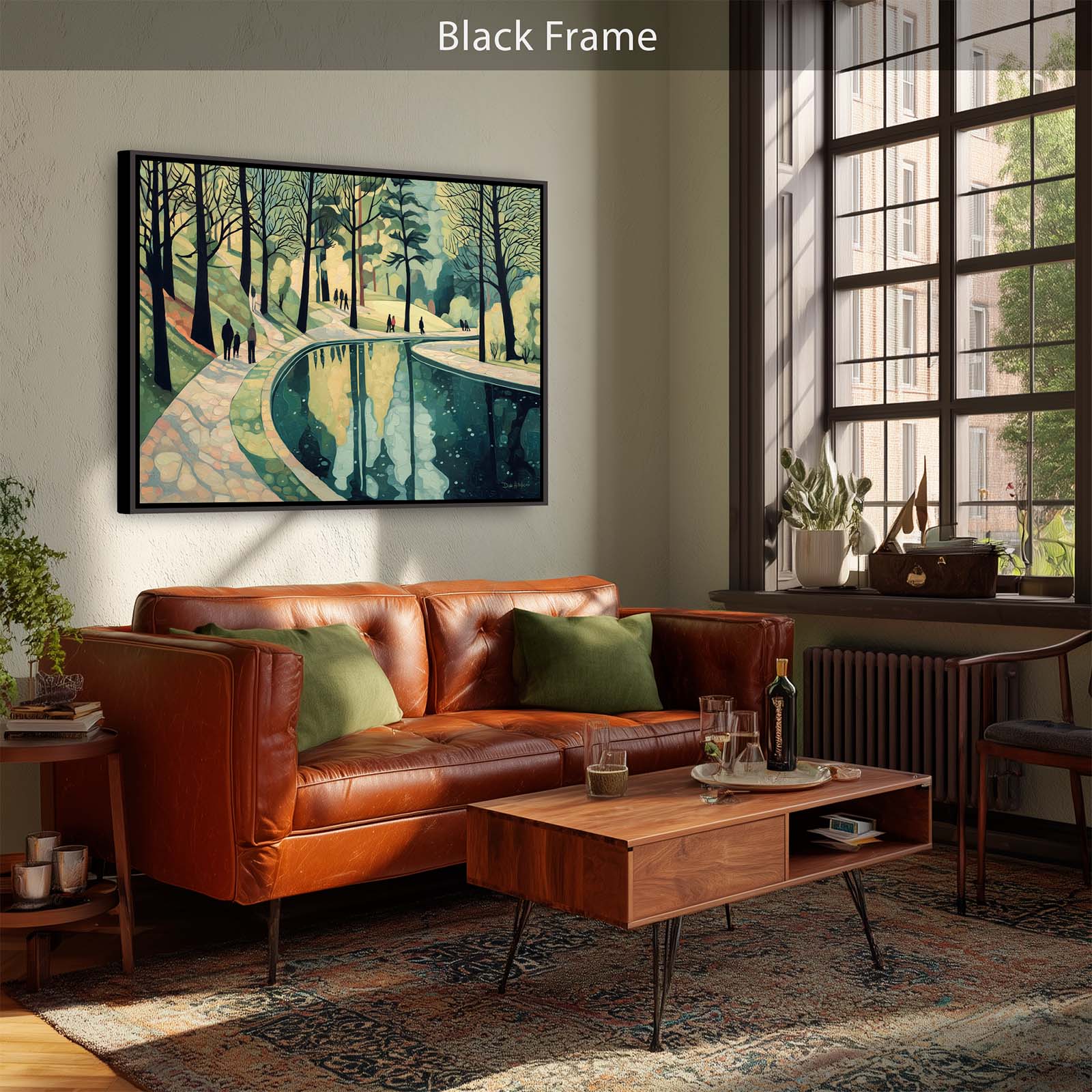 Capture the joy of a perfect summer day with this impressionistic canvas print. People strolling beside a shimmering stream in a lush city park bring warmth, life, and serene beauty to any room. Printed on premium giclée canvas, it enhances your home or office with timeless charm and a touch of peaceful elegance.
