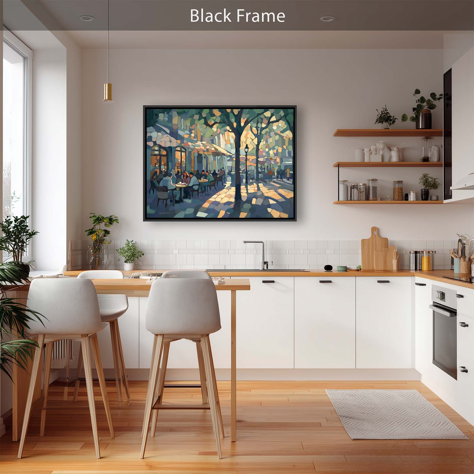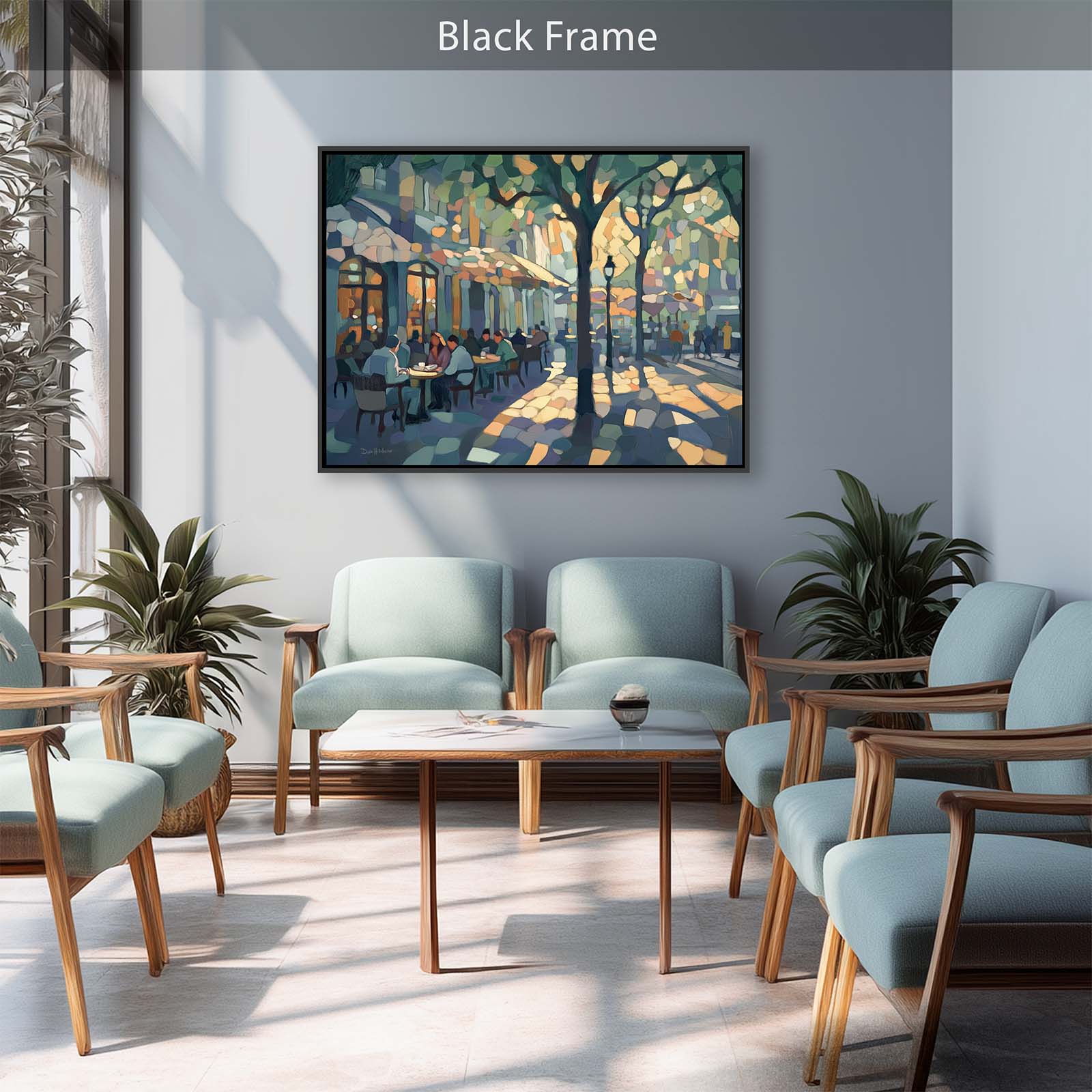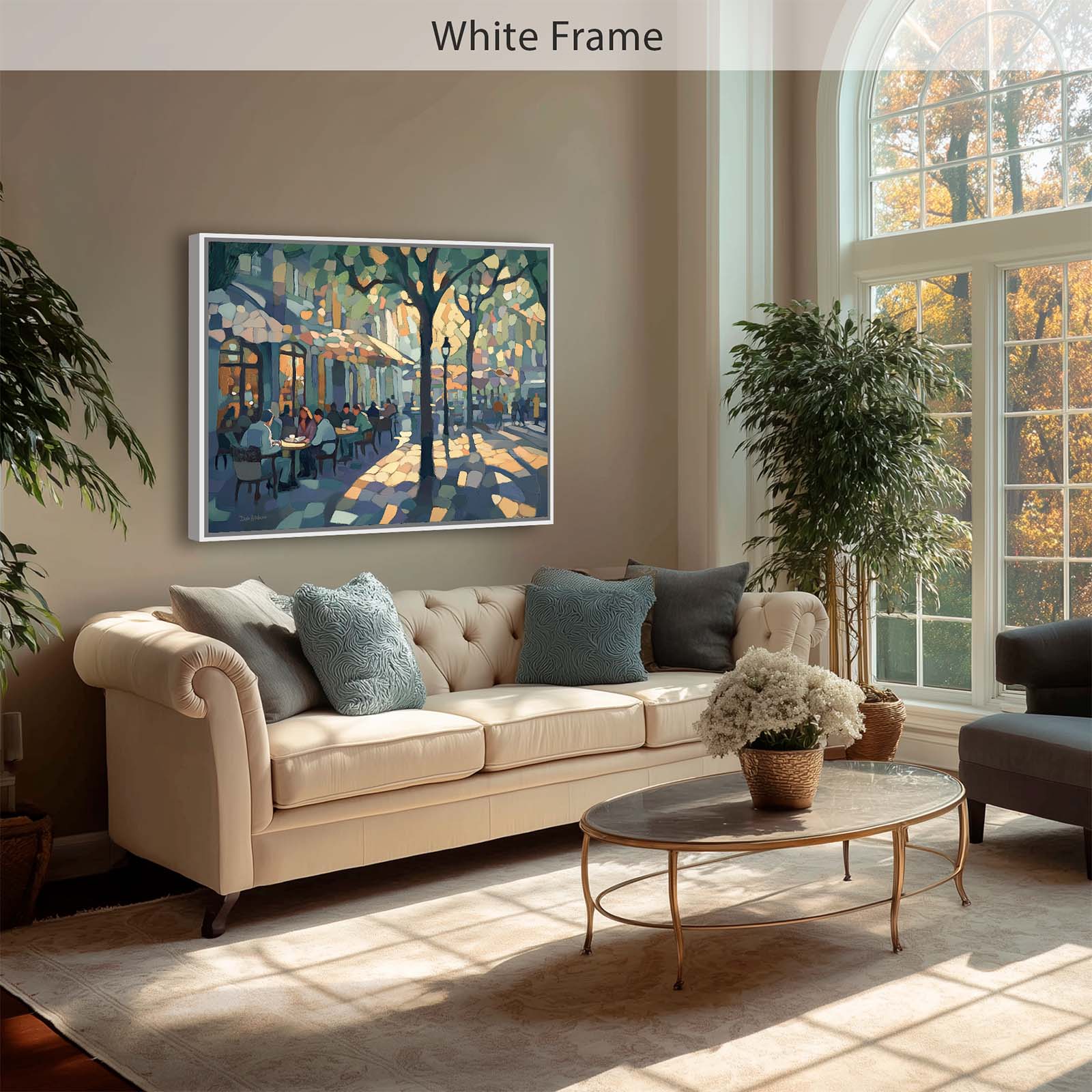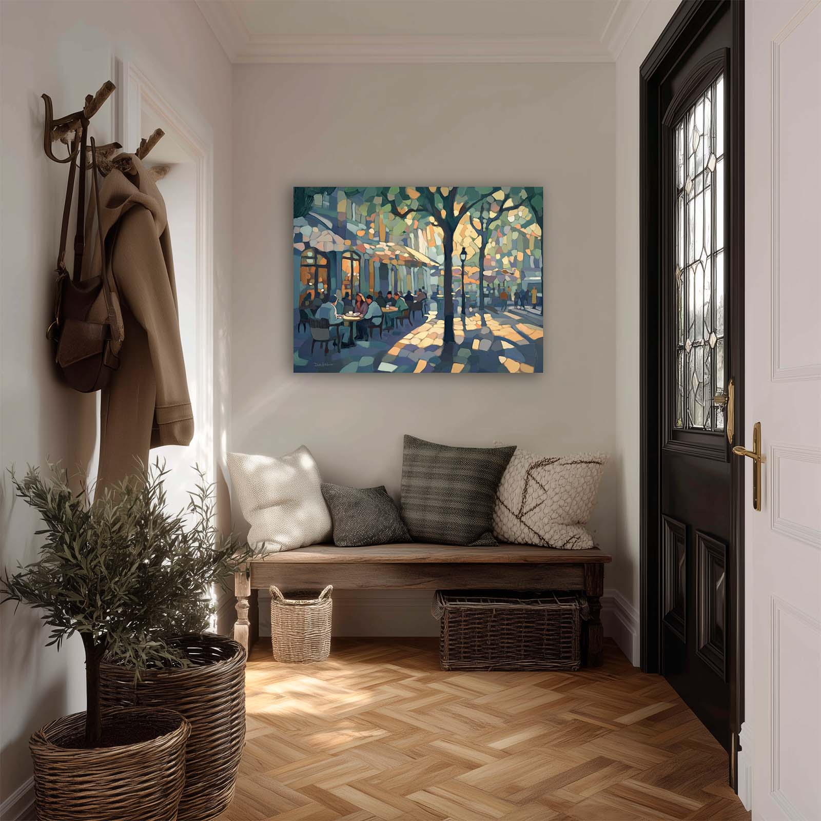 Experience the charm of a sunlit summer day in an old-town café with this impressionistic canvas print. Sunlight filters through trees onto cobblestones as people enjoy leisurely moments, bringing warmth, life, and timeless beauty to any room. Printed on premium giclée canvas, it enhances your home or office with elegance, character, and inviting ambiance.