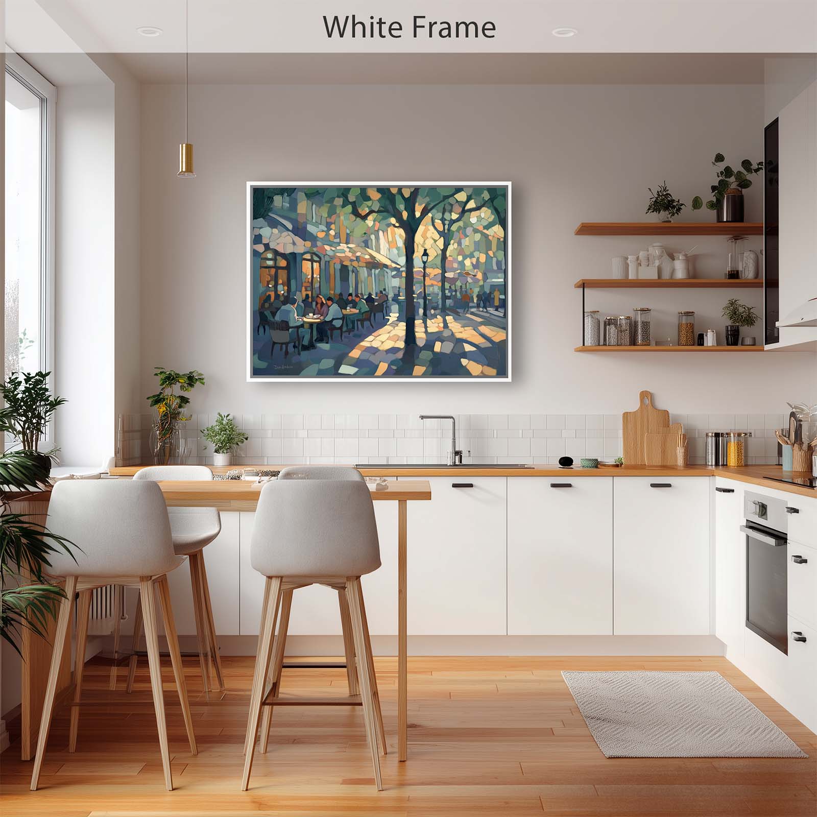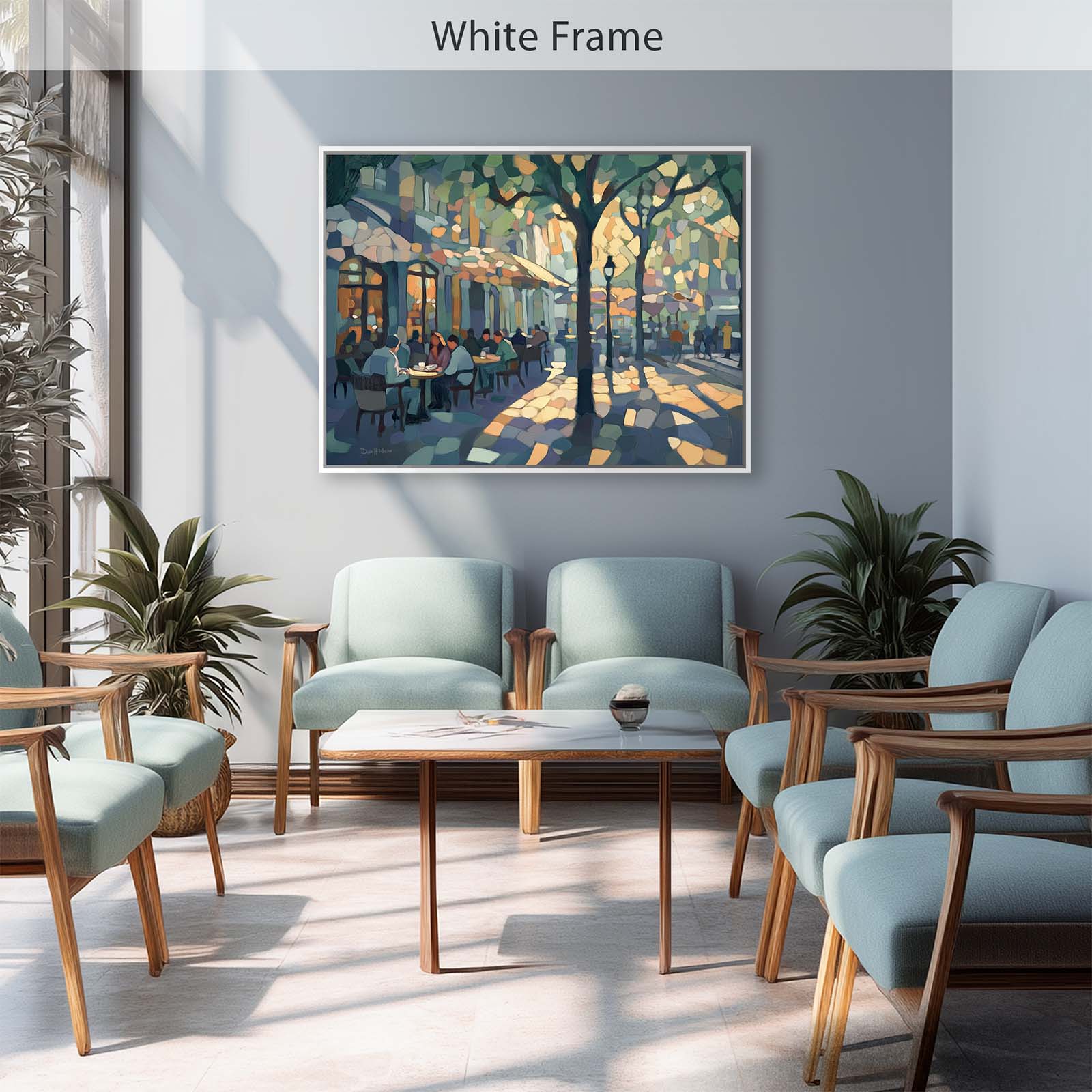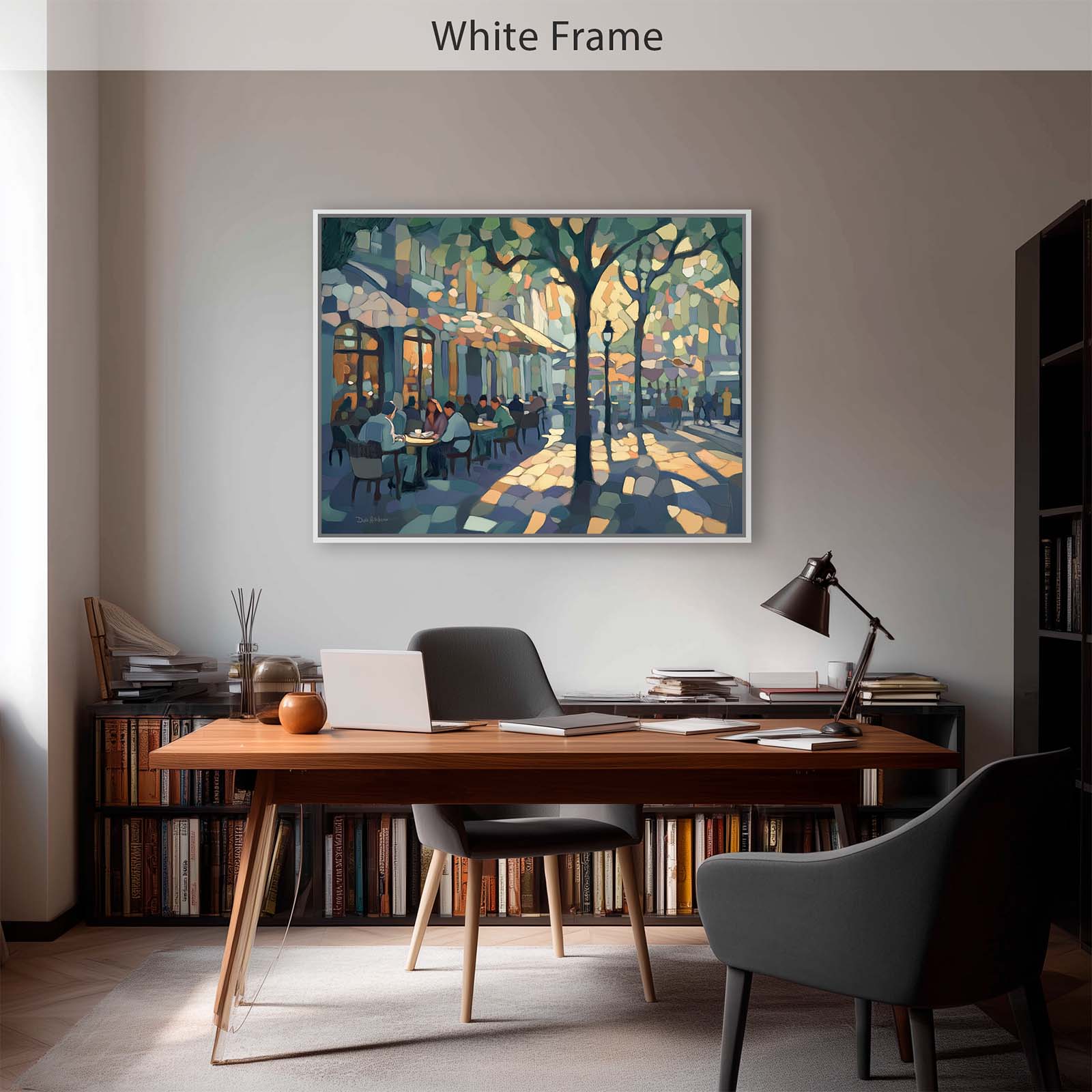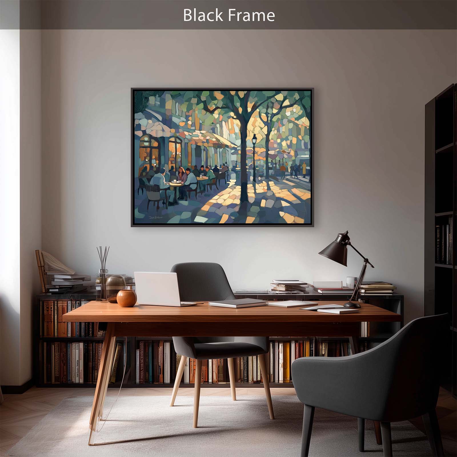 Experience the charm of a sunlit summer day in an old-town café with this impressionistic canvas print. Sunlight filters through trees onto cobblestones as people enjoy leisurely moments, bringing warmth, life, and timeless beauty to any room. Printed on premium giclée canvas, it enhances your home or office with elegance, character, and inviting ambiance.