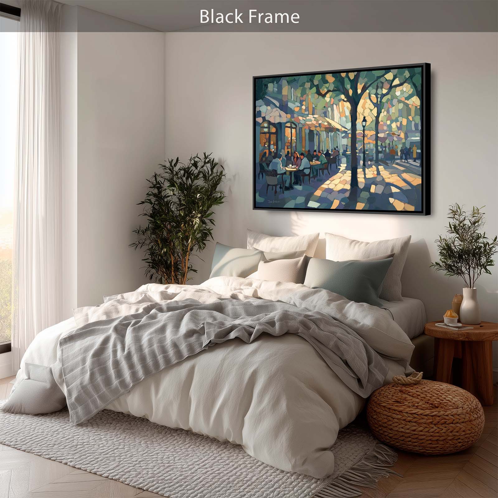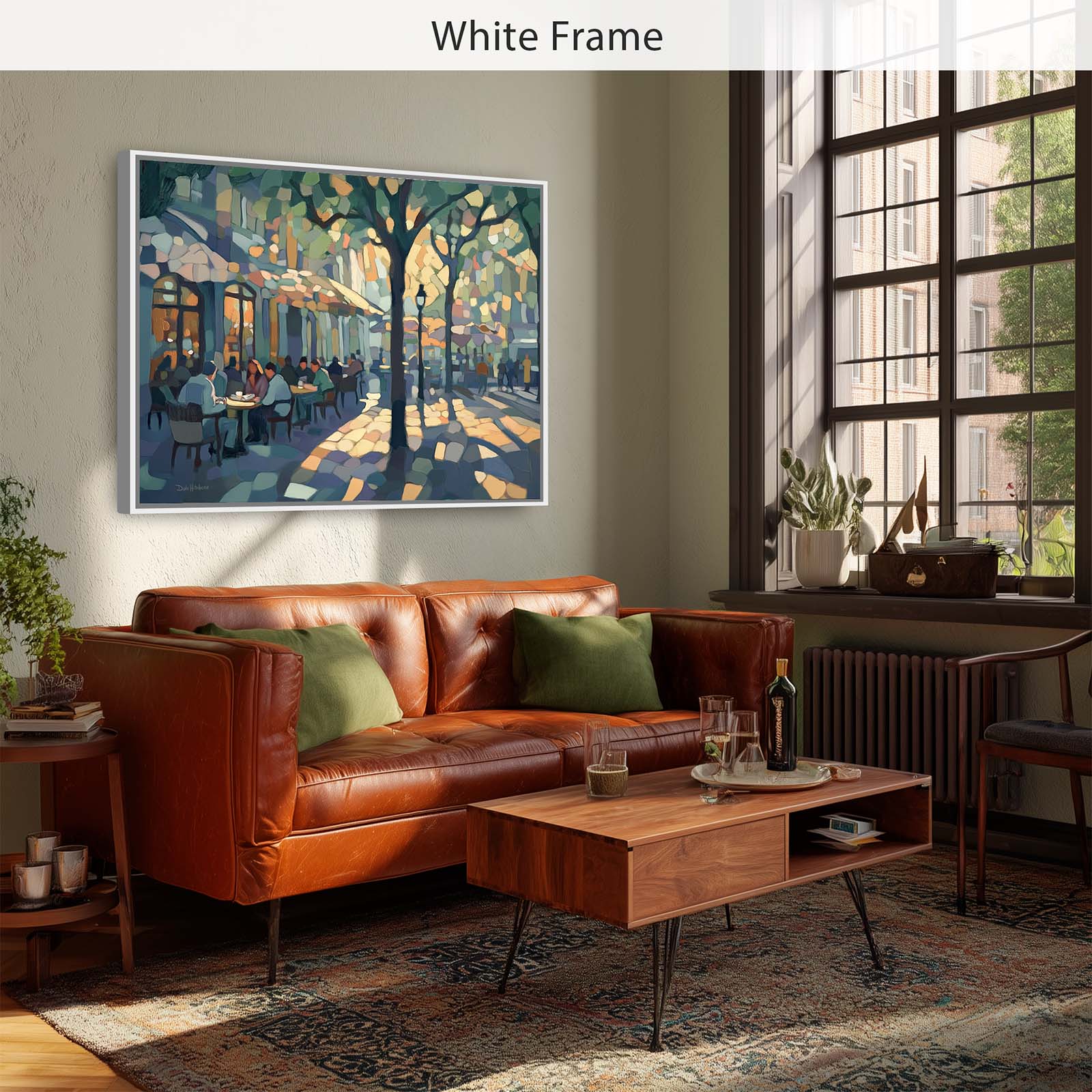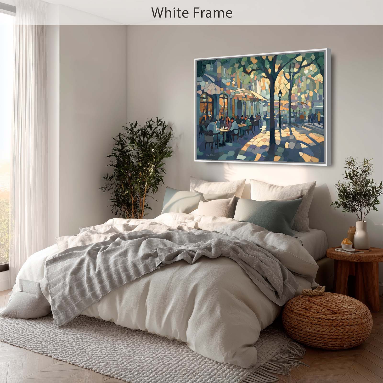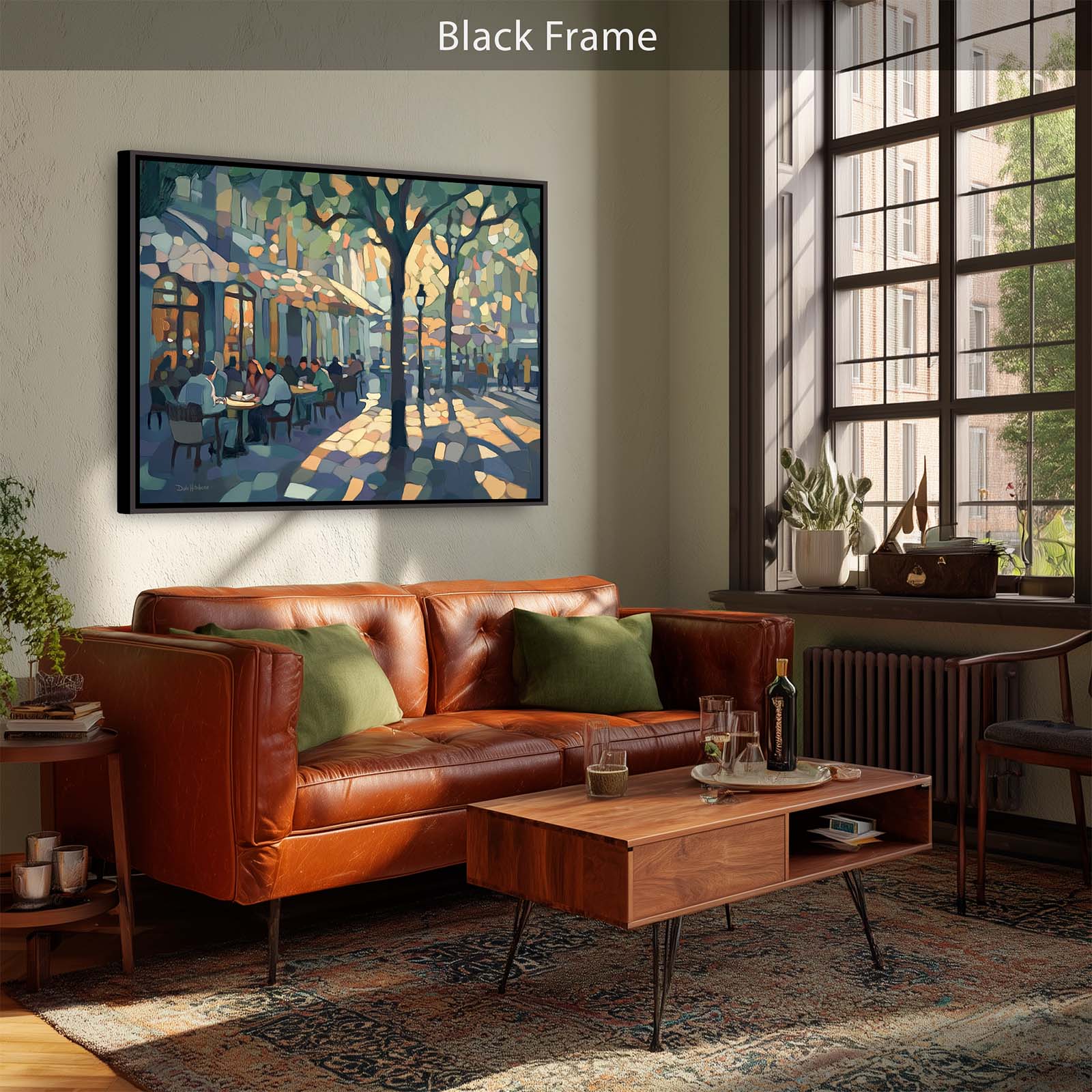 Experience the charm of a sunlit summer day in an old-town café with this impressionistic canvas print. Sunlight filters through trees onto cobblestones as people enjoy leisurely moments, bringing warmth, life, and timeless beauty to any room. Printed on premium giclée canvas, it enhances your home or office with elegance, character, and inviting ambiance.
