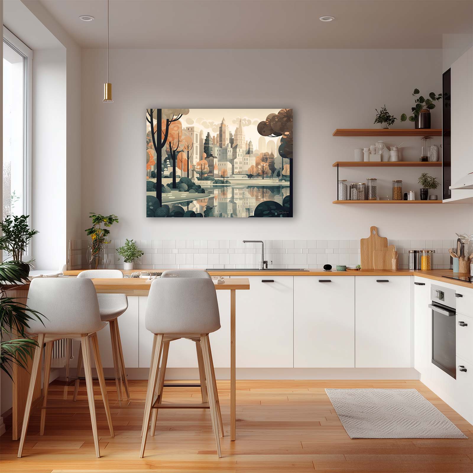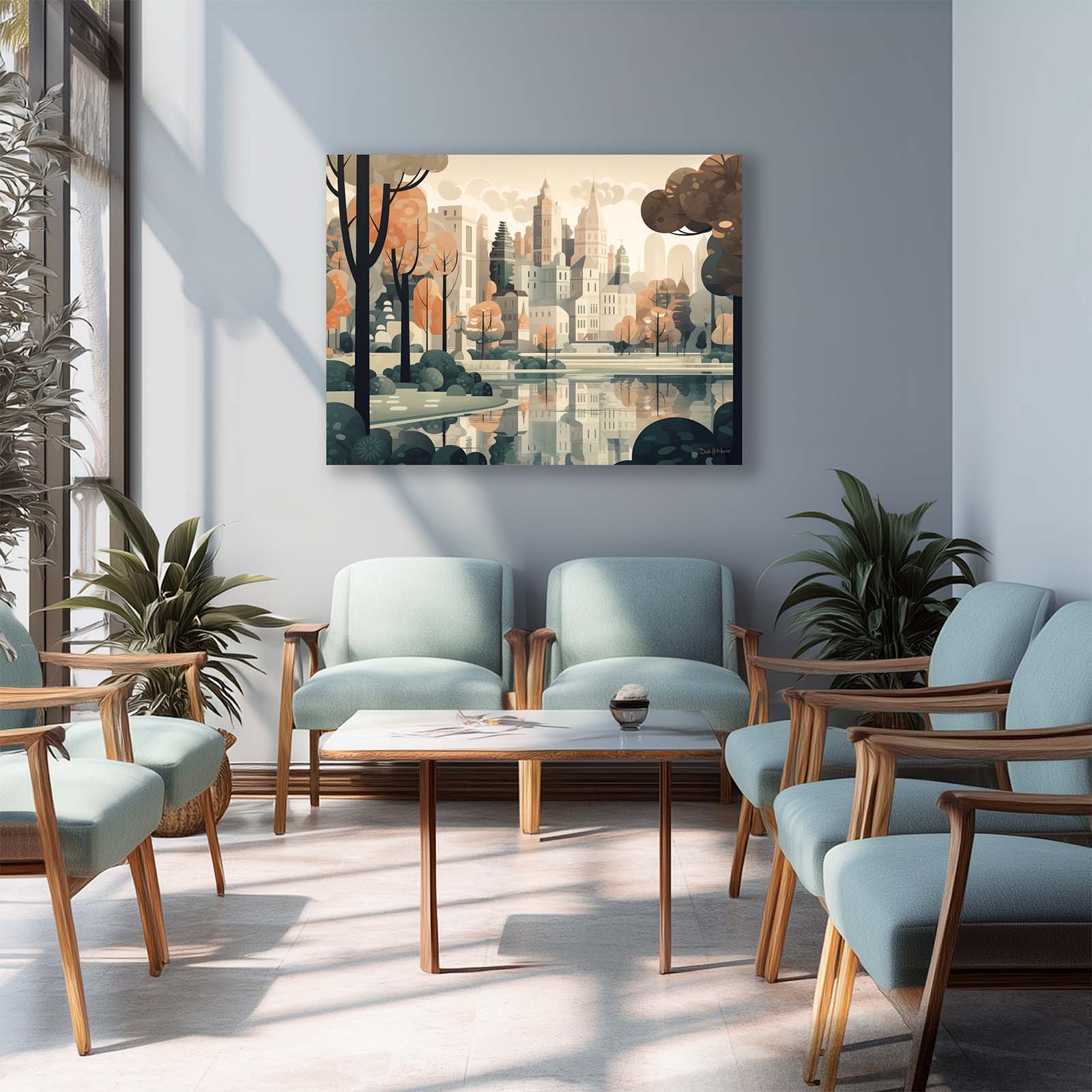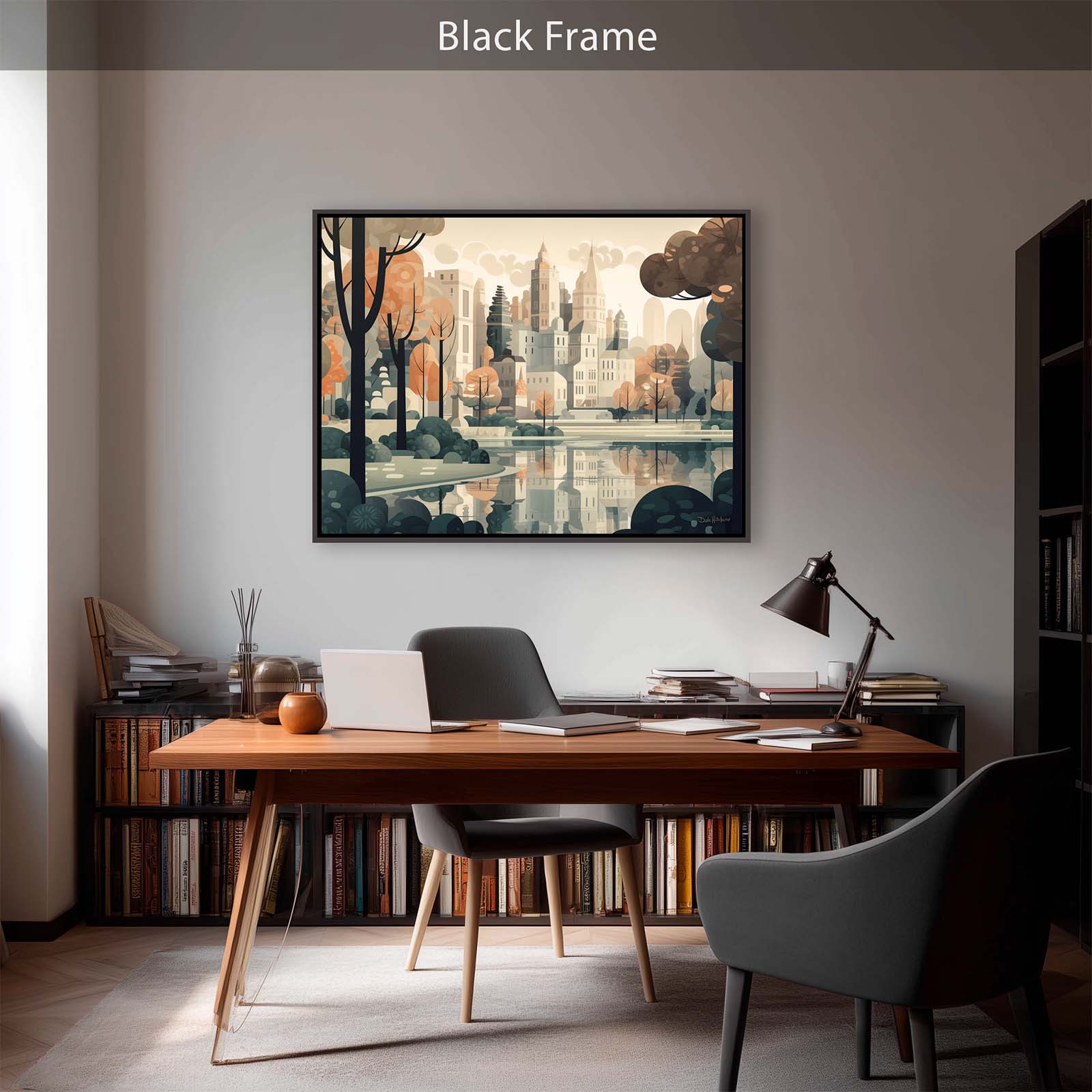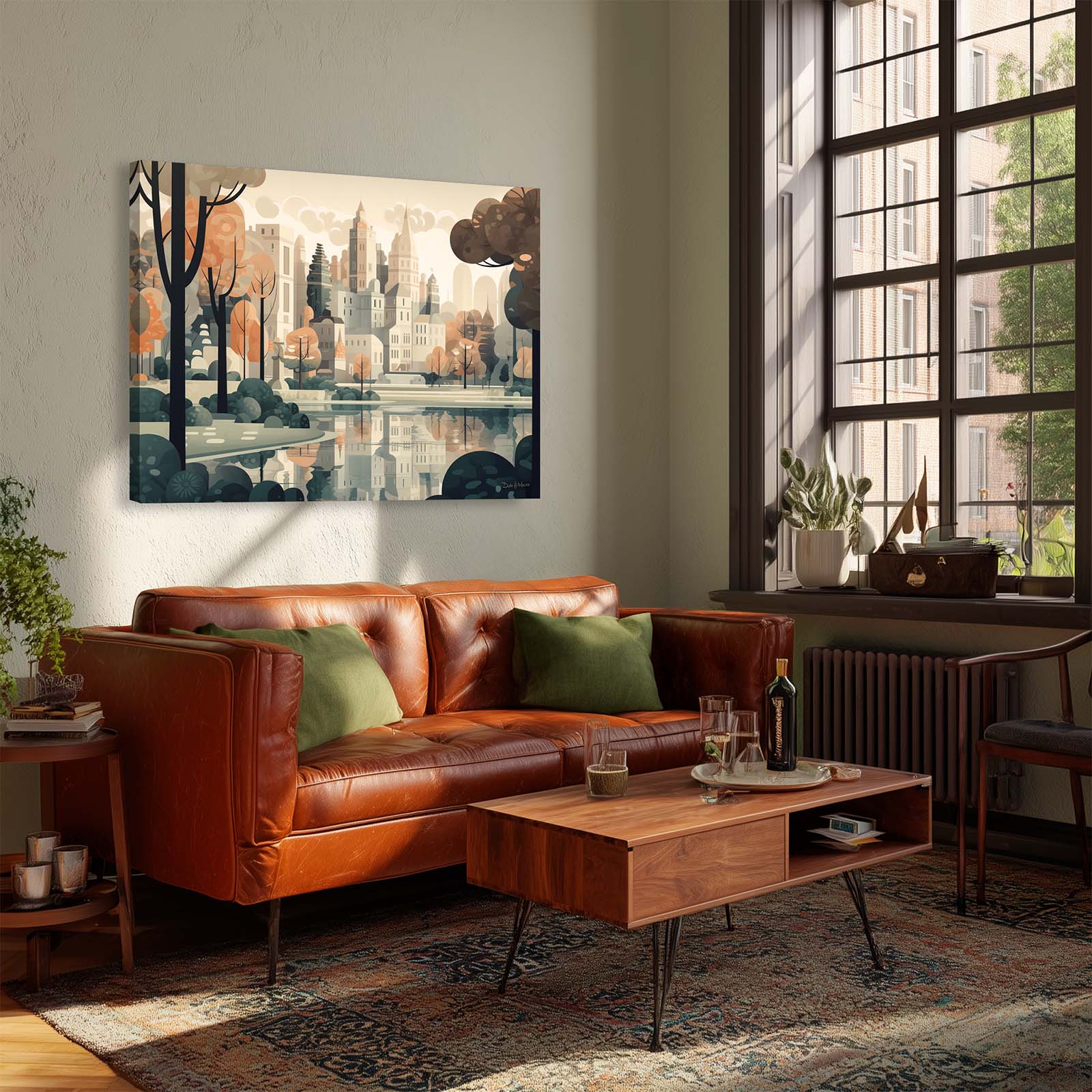 Celebrate the harmony of city and nature with Central Park, a stretched-canvas art print in an animated abstract impressionist style. From the vantage point of the lake, the city’s iconic skyline rises gracefully above the trees, capturing the essence of the City’s most beloved park. The scene balances the energy of urban architecture with the calm of water and greenery.