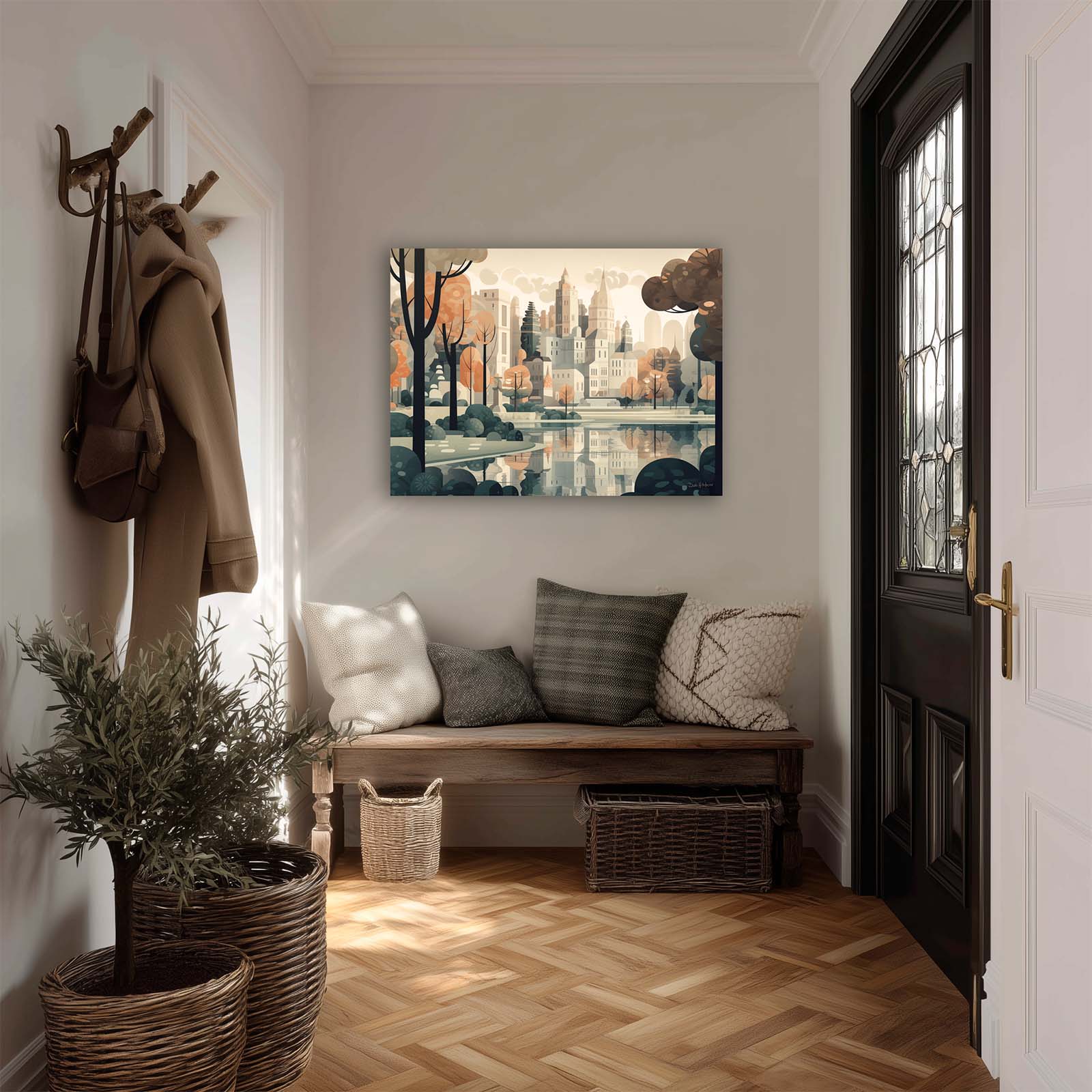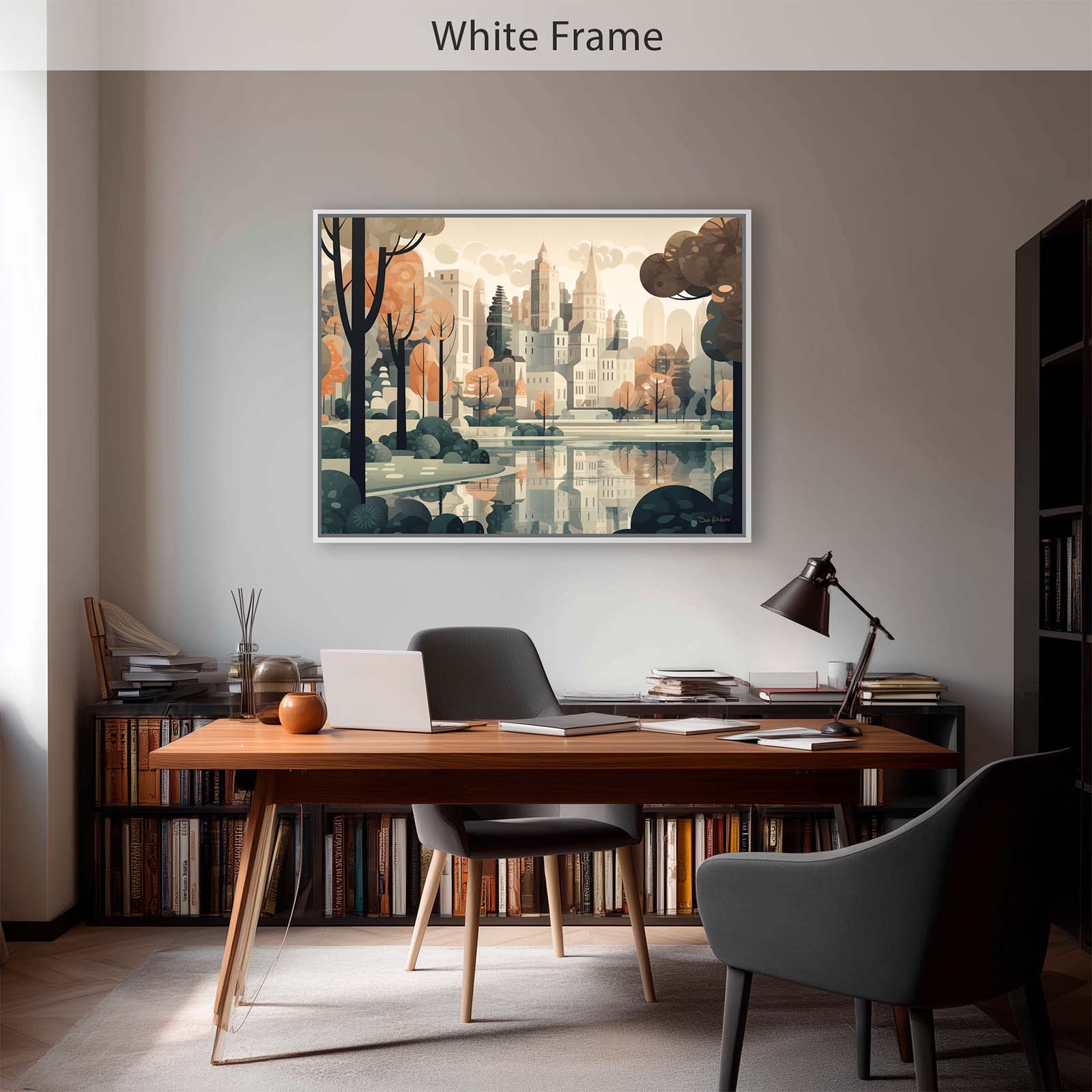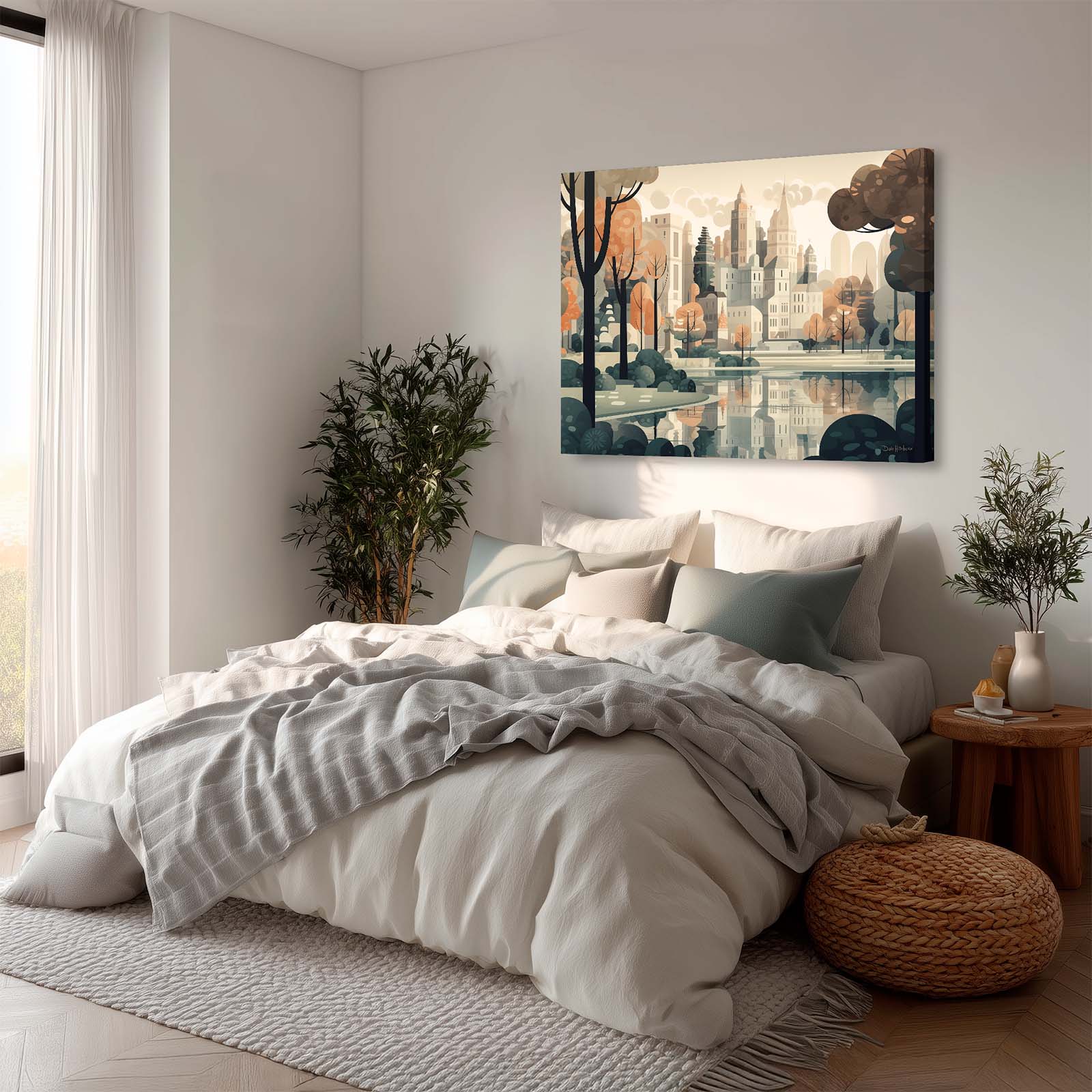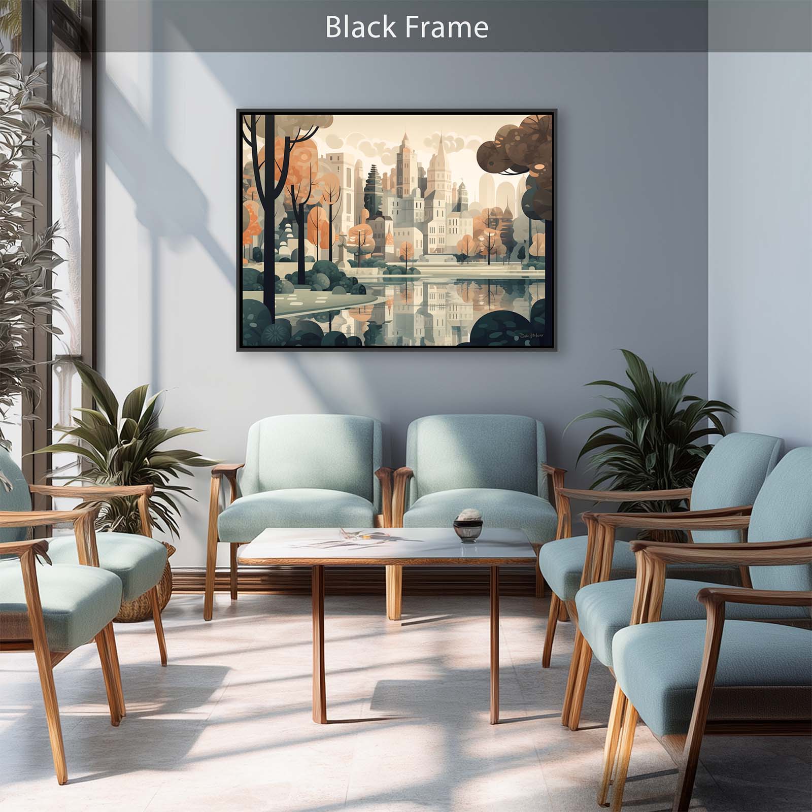 Celebrate the harmony of city and nature with Central Park, a stretched-canvas art print in an animated abstract impressionist style. From the vantage point of the lake, the city’s iconic skyline rises gracefully above the trees, capturing the essence of the City’s most beloved park. The scene balances the energy of urban architecture with the calm of water and greenery.