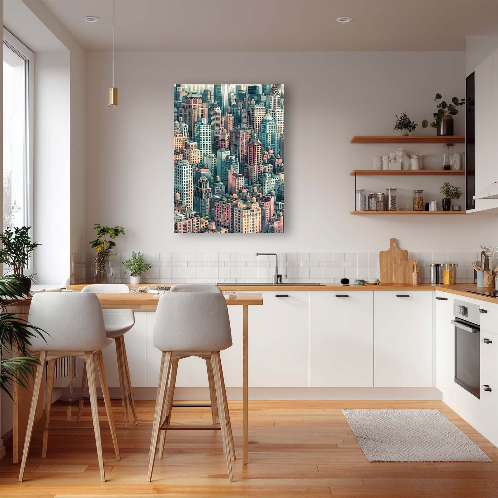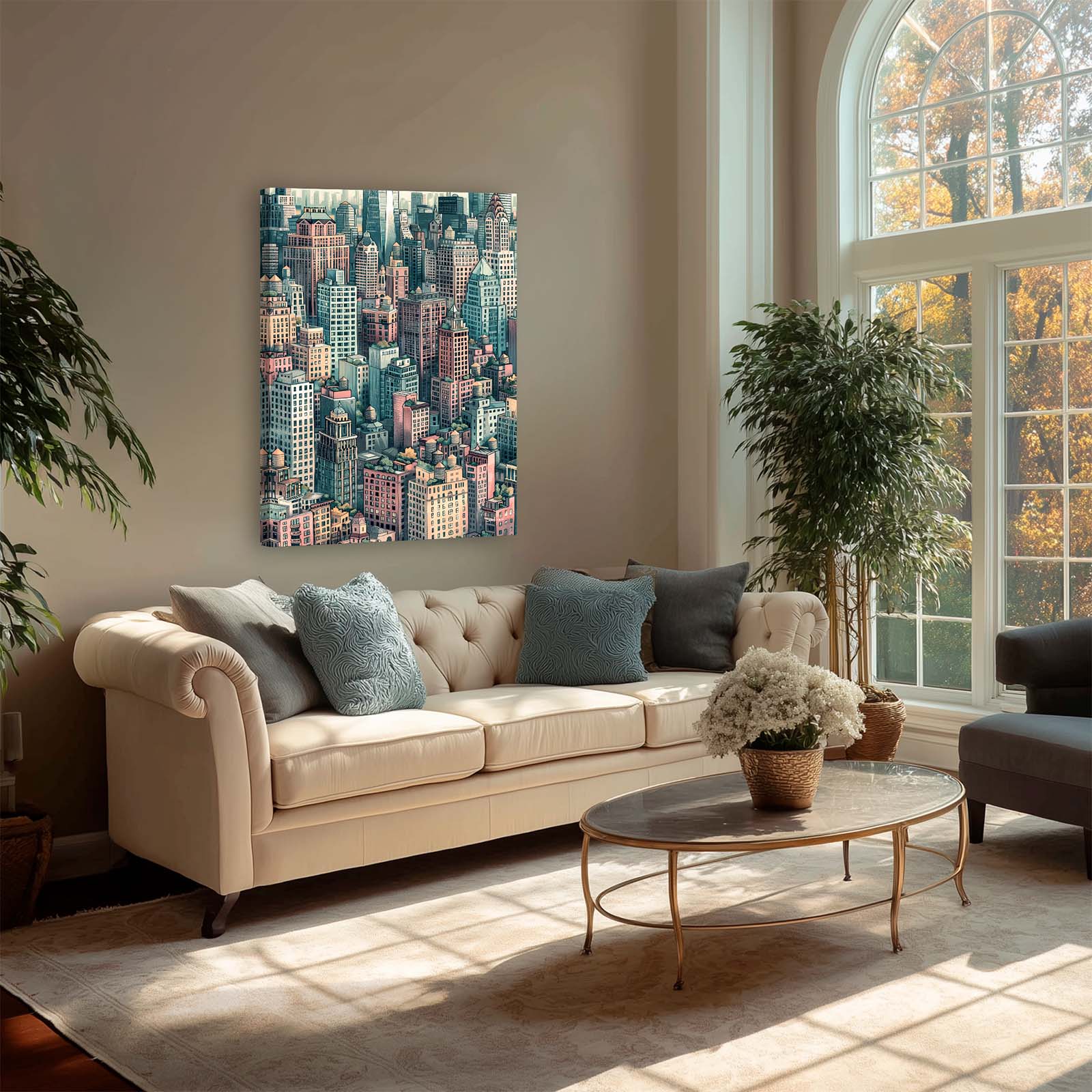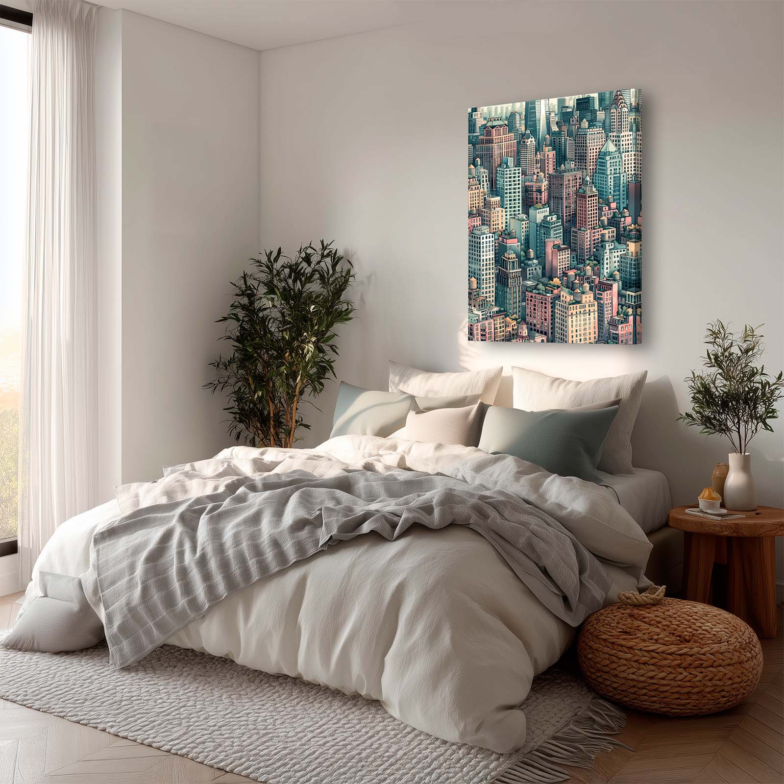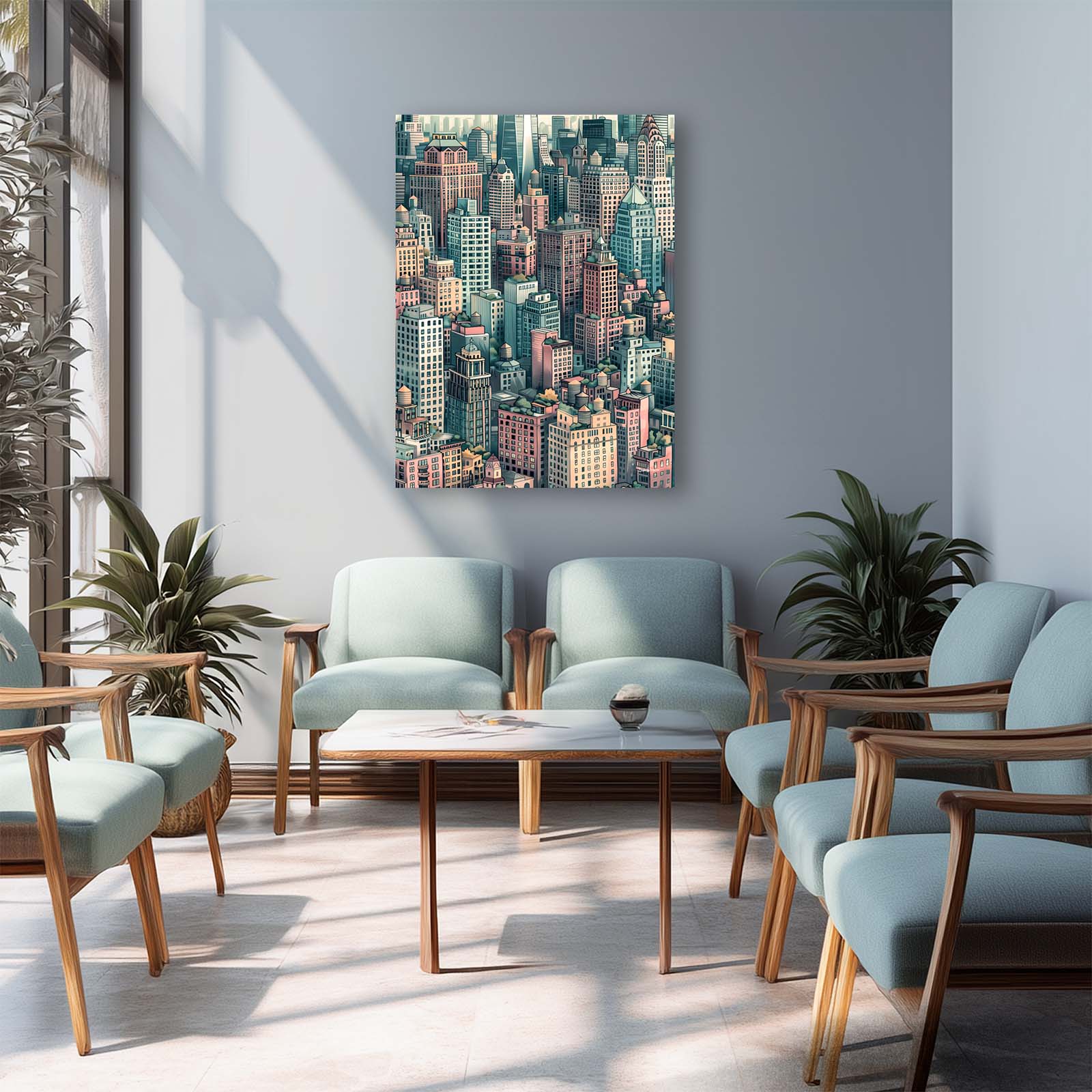 Celebrate the striking architecture of urban life with this captivating cityscape canvas print. Illustrating the dynamic forms of high-rise buildings, it could add modern sophistication, visual interest, and artistic flair to just the right room. Printed on premium giclée canvas, it enhances your home or office with style, depth, and contemporary charm.