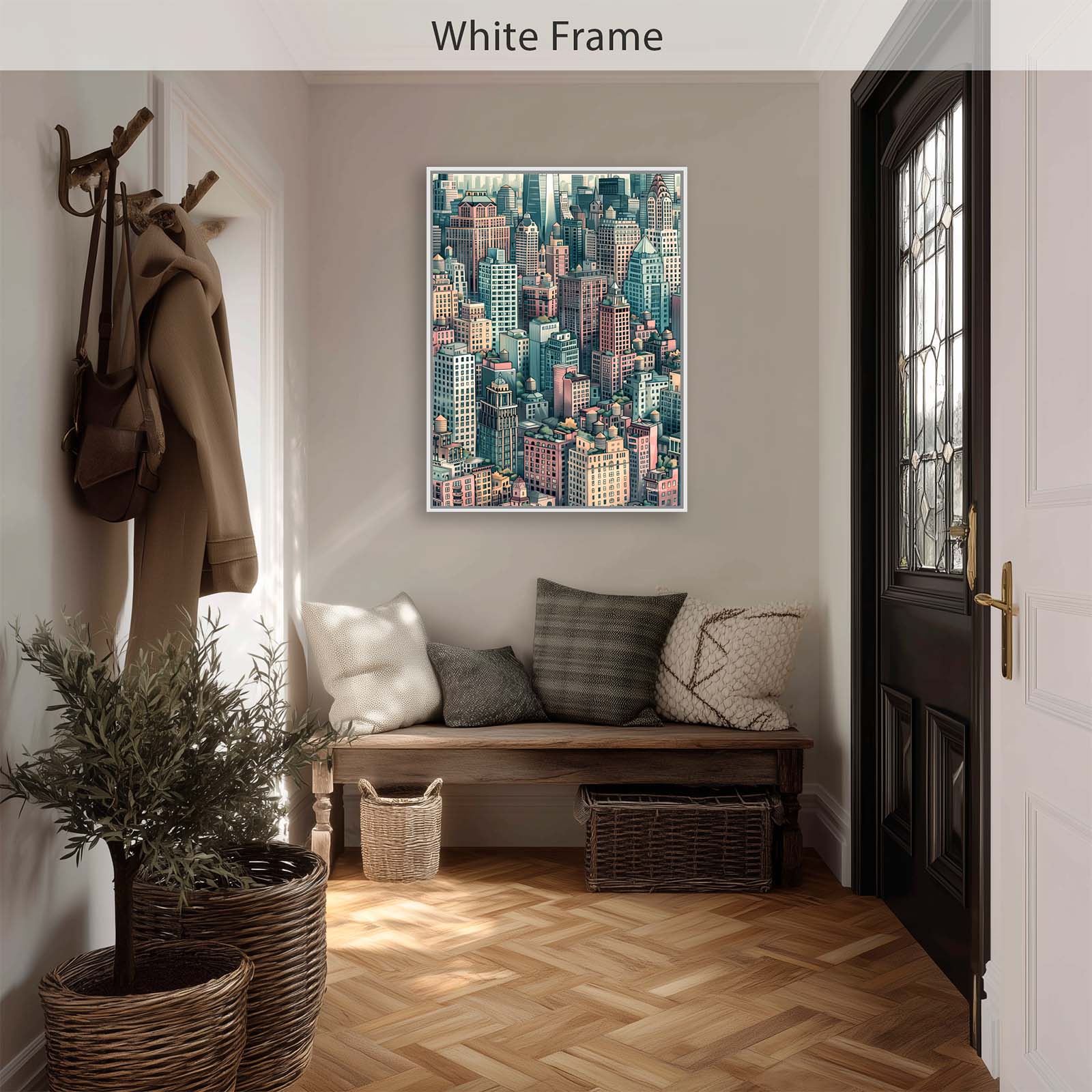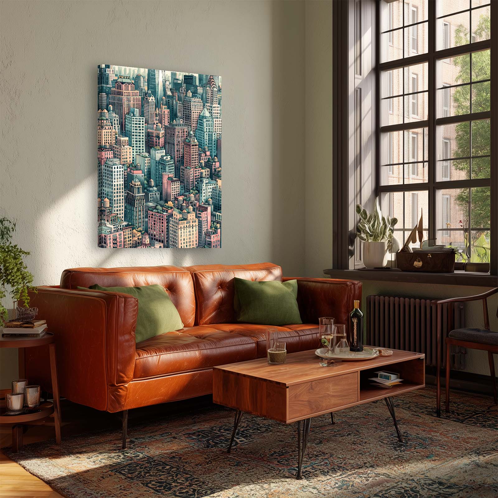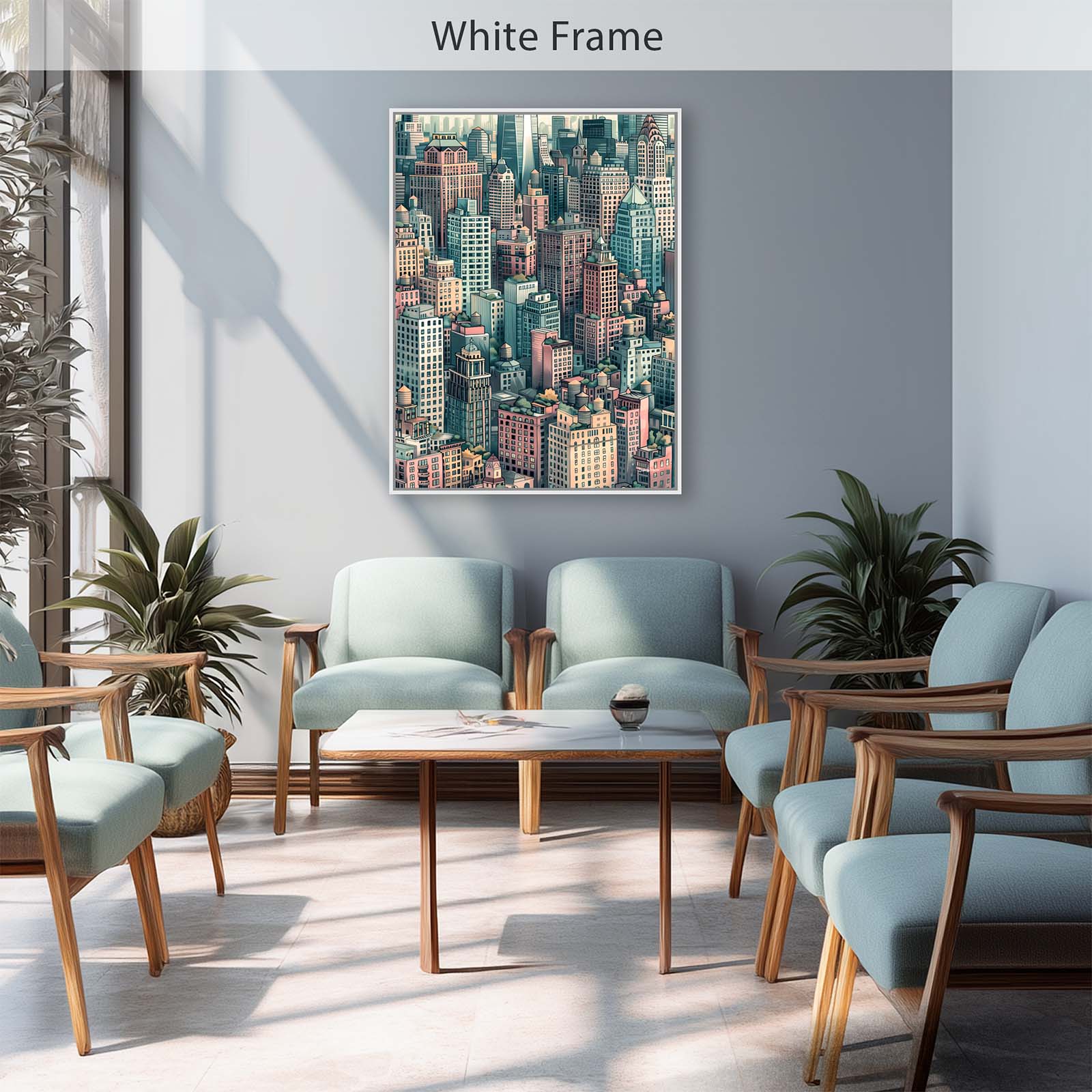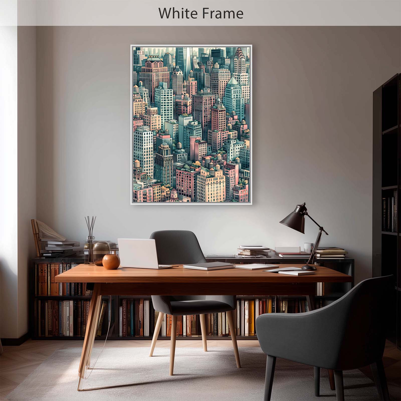 Celebrate the striking architecture of urban life with this captivating cityscape canvas print. Illustrating the dynamic forms of high-rise buildings, it could add modern sophistication, visual interest, and artistic flair to just the right room. Printed on premium giclée canvas, it enhances your home or office with style, depth, and contemporary charm.