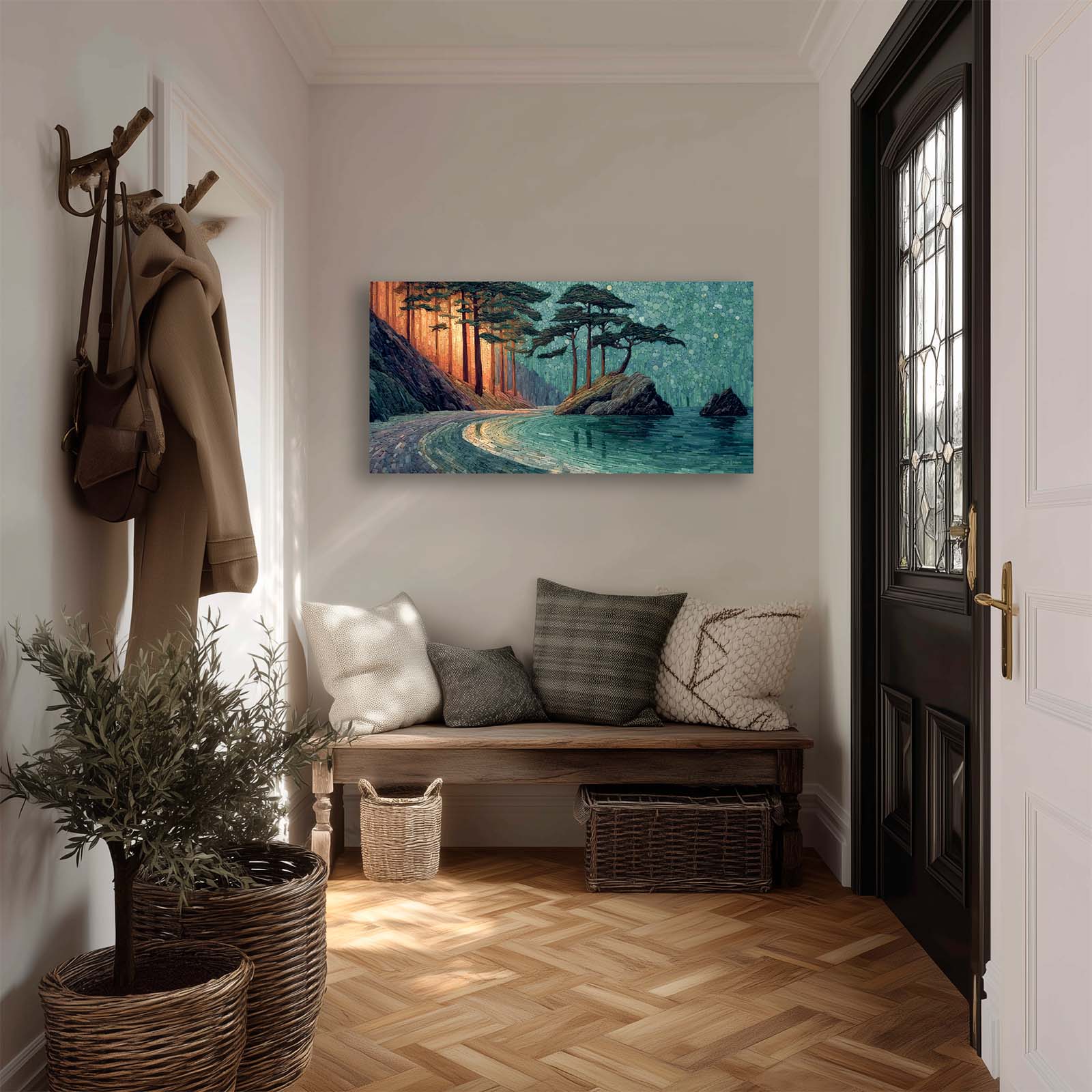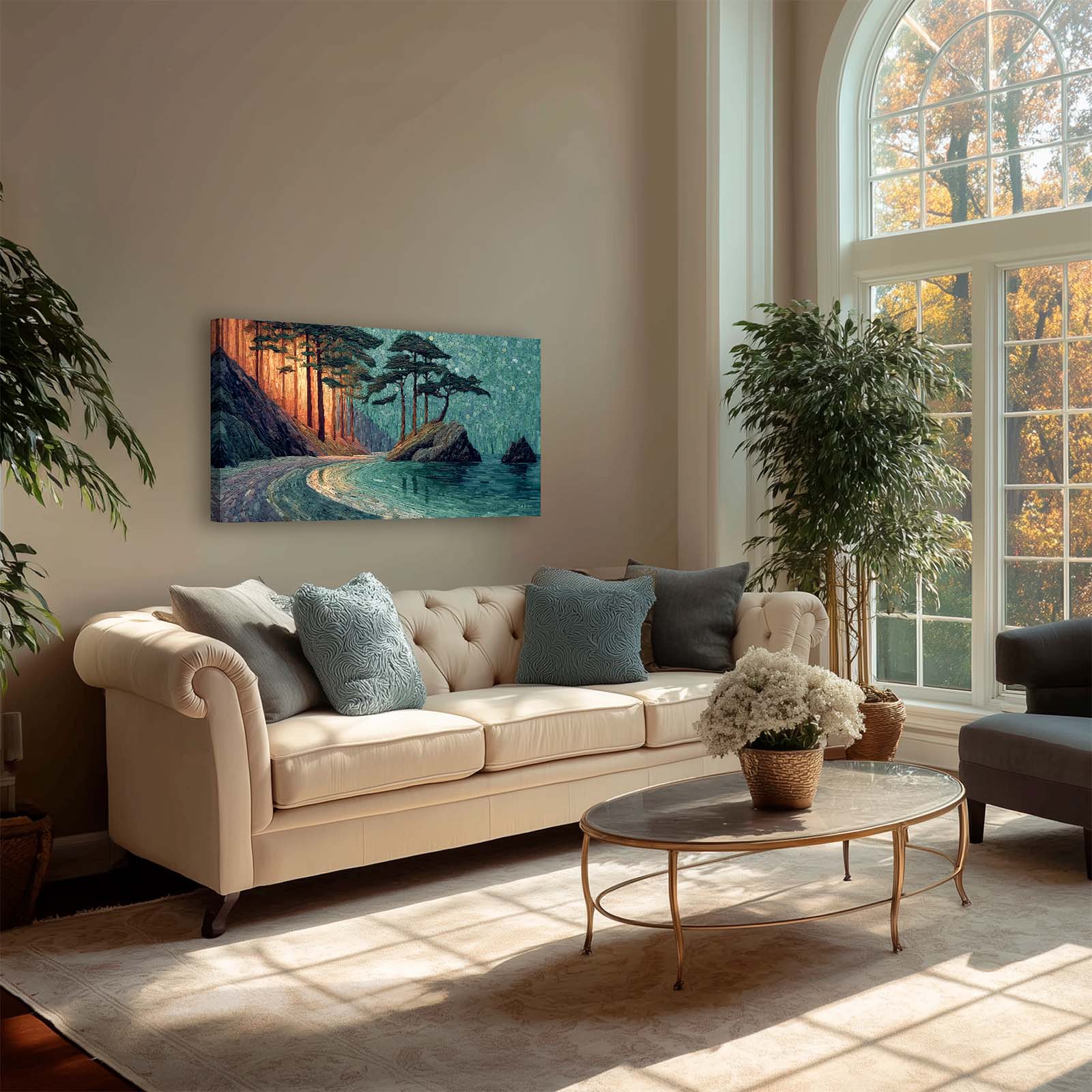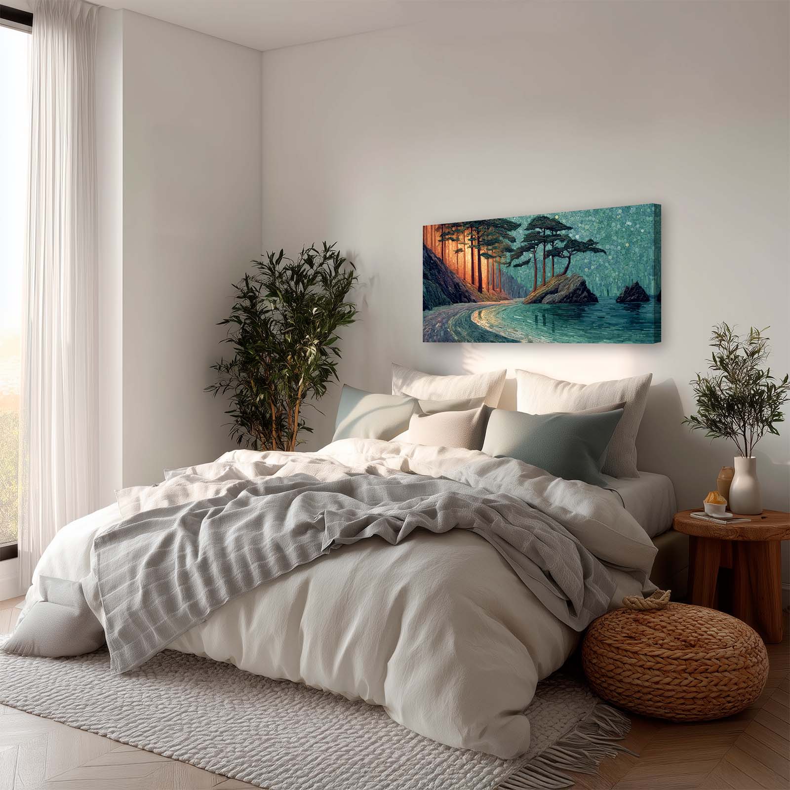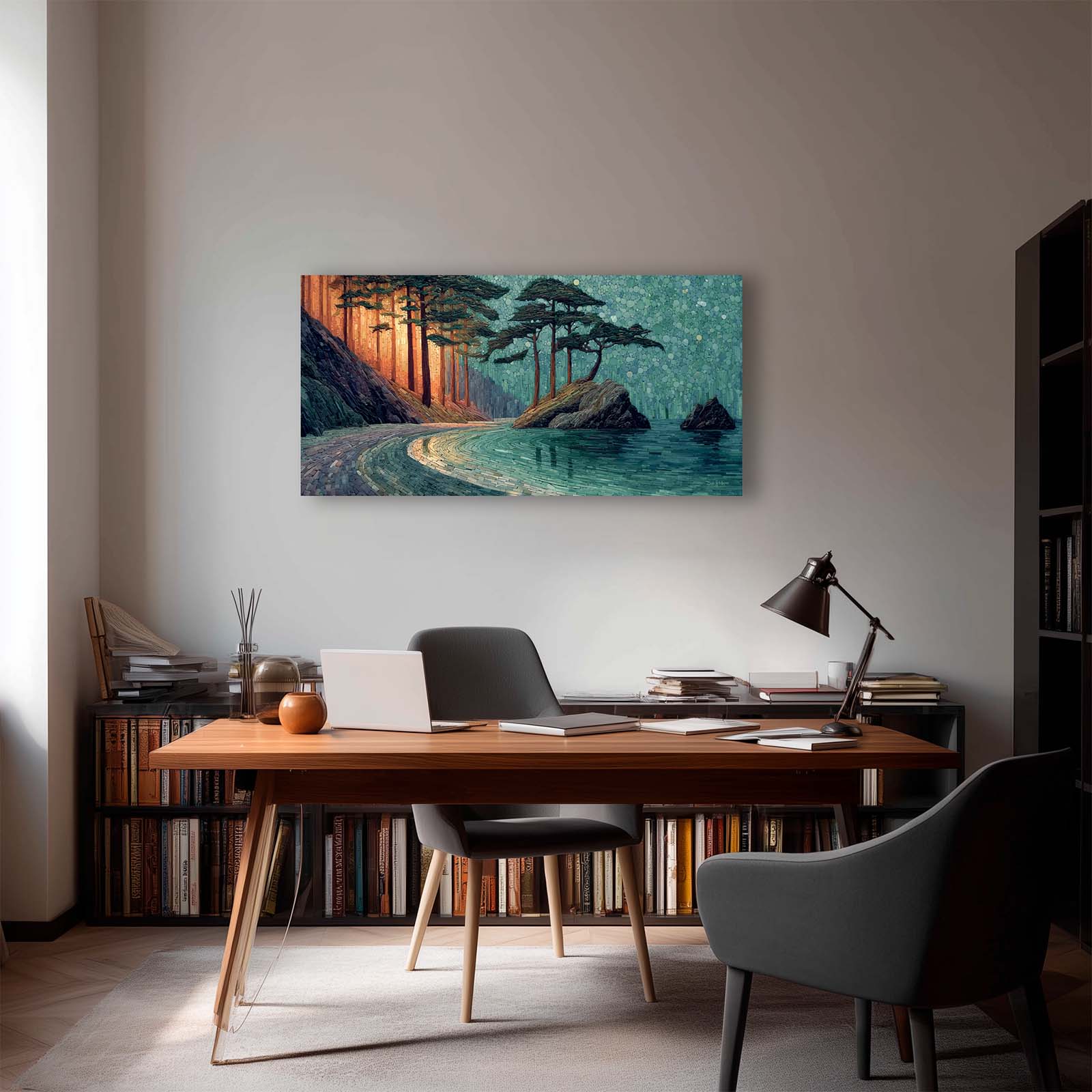 Illuminate your space with the enchanting beauty of this mosaic canvas print. A radiant glow emerges from a forest, spreading into the wilderness night, creating a sense of mystery and wonder. Printed on premium giclée canvas, it adds depth, intrigue, and captivating artistry to any home or office decor.
