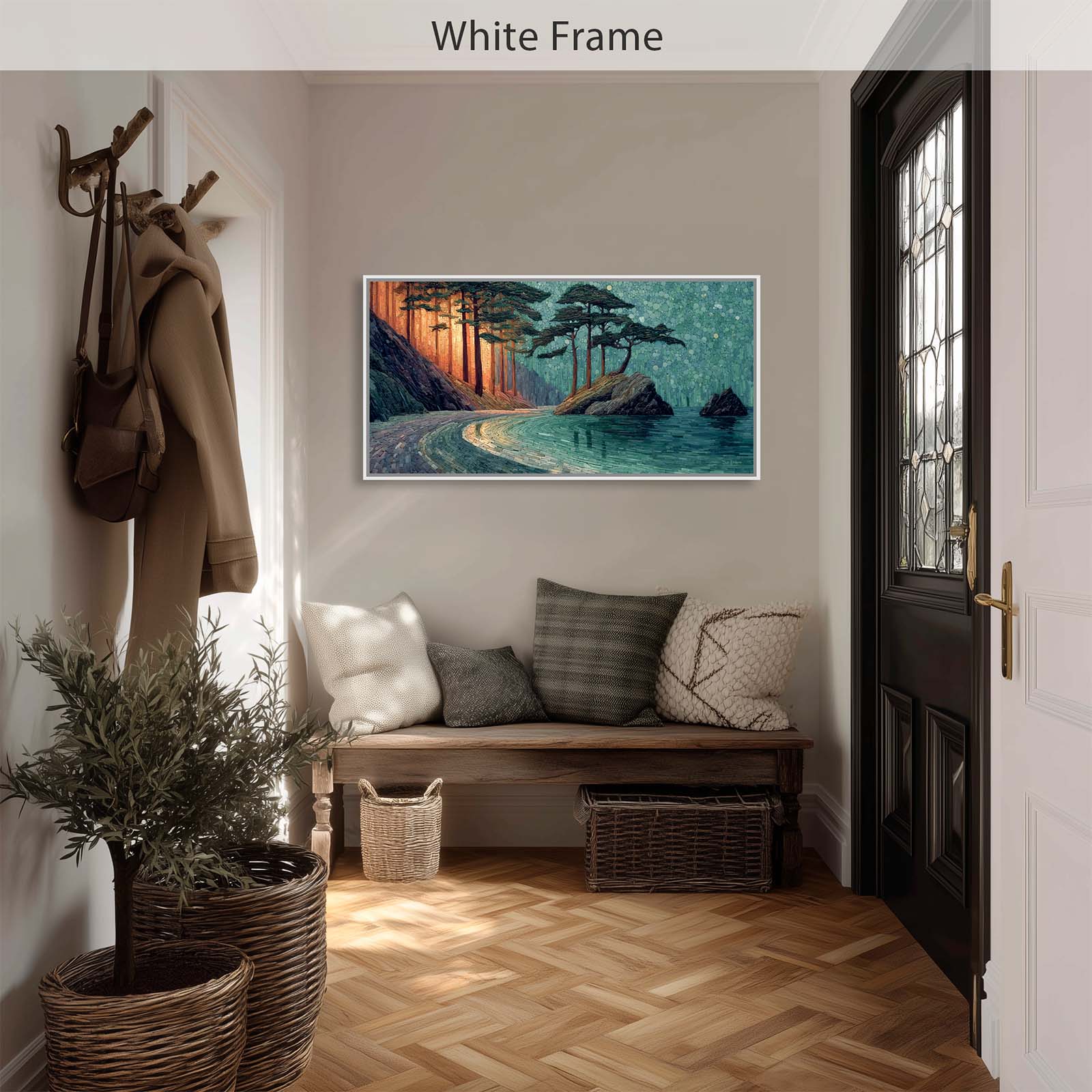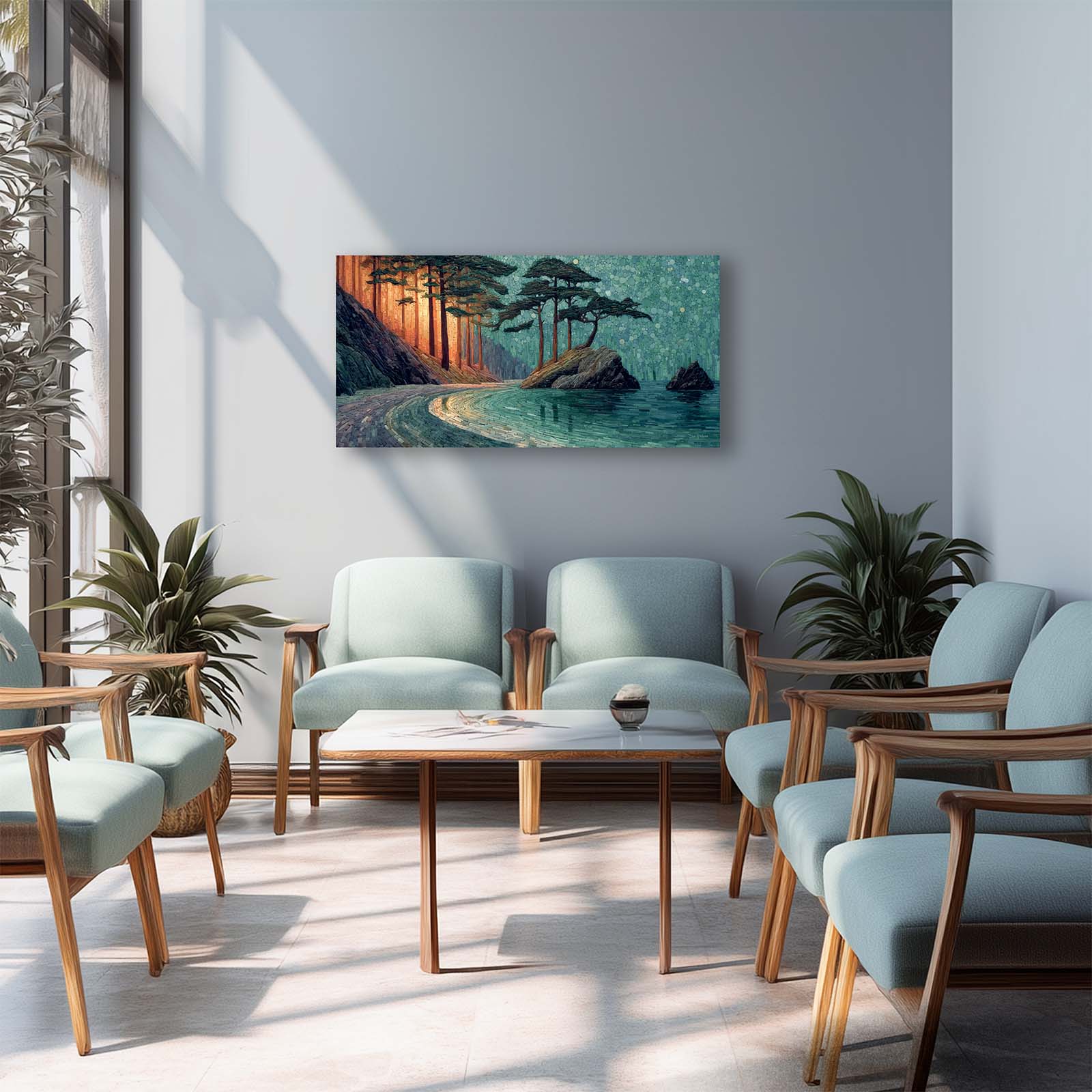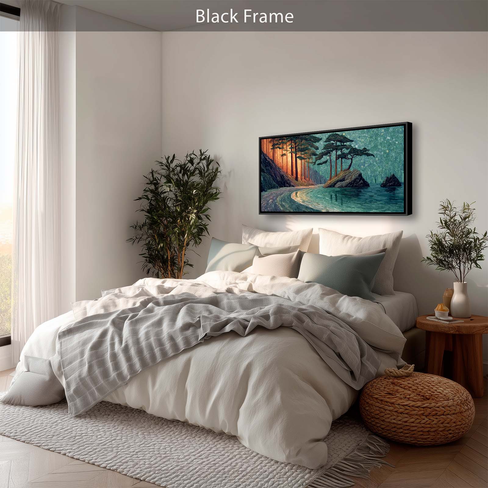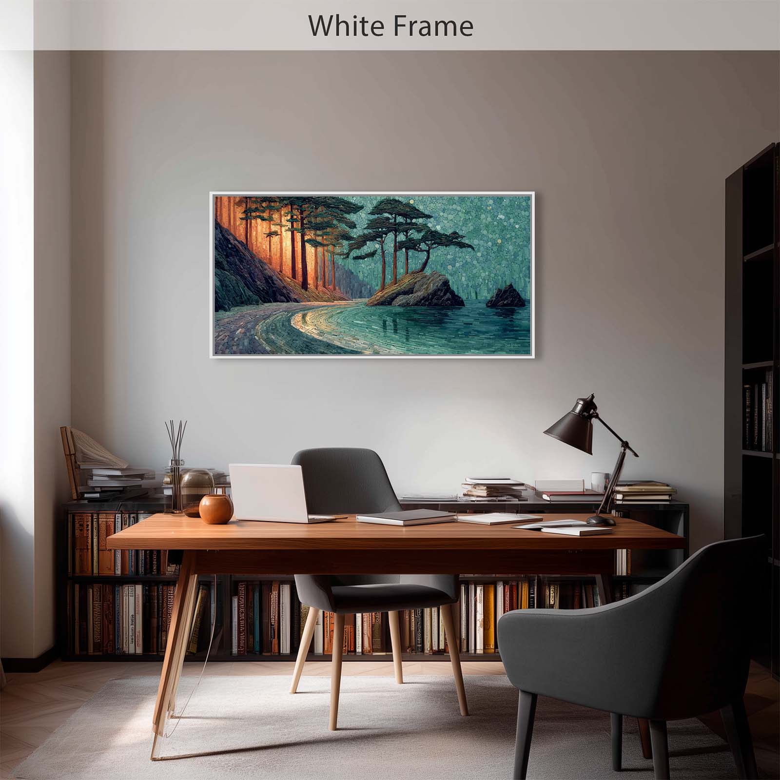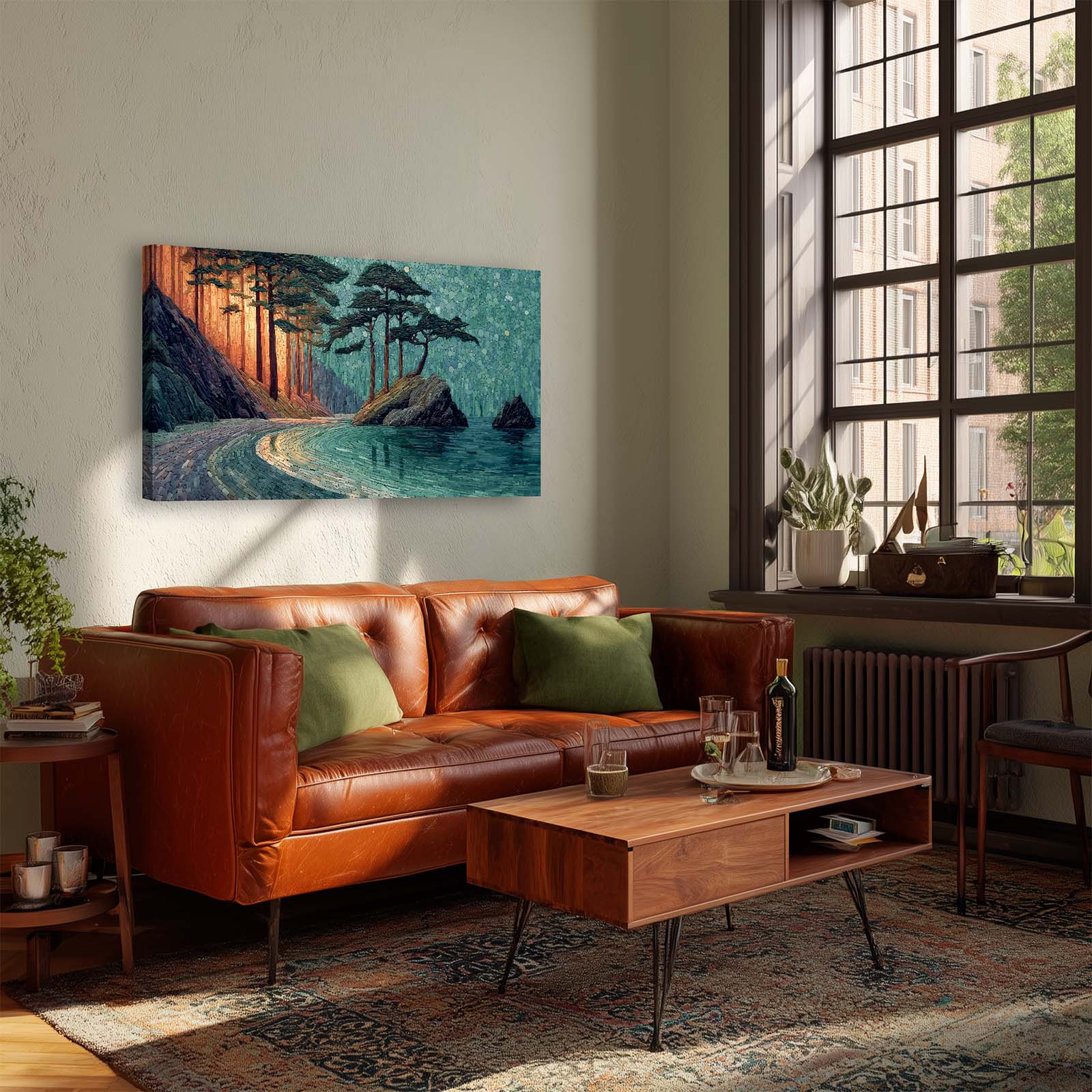 Illuminate your space with the enchanting beauty of this mosaic canvas print. A radiant glow emerges from a forest, spreading into the wilderness night, creating a sense of mystery and wonder. Printed on premium giclée canvas, it adds depth, intrigue, and captivating artistry to any home or office decor.
