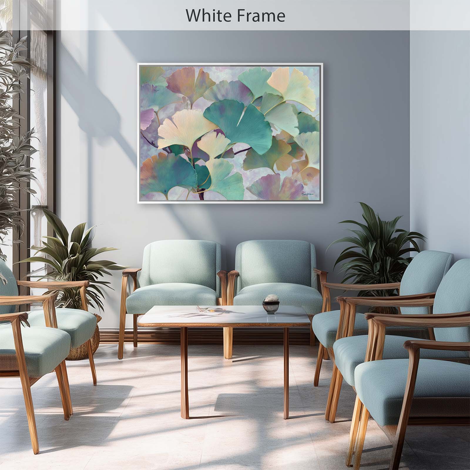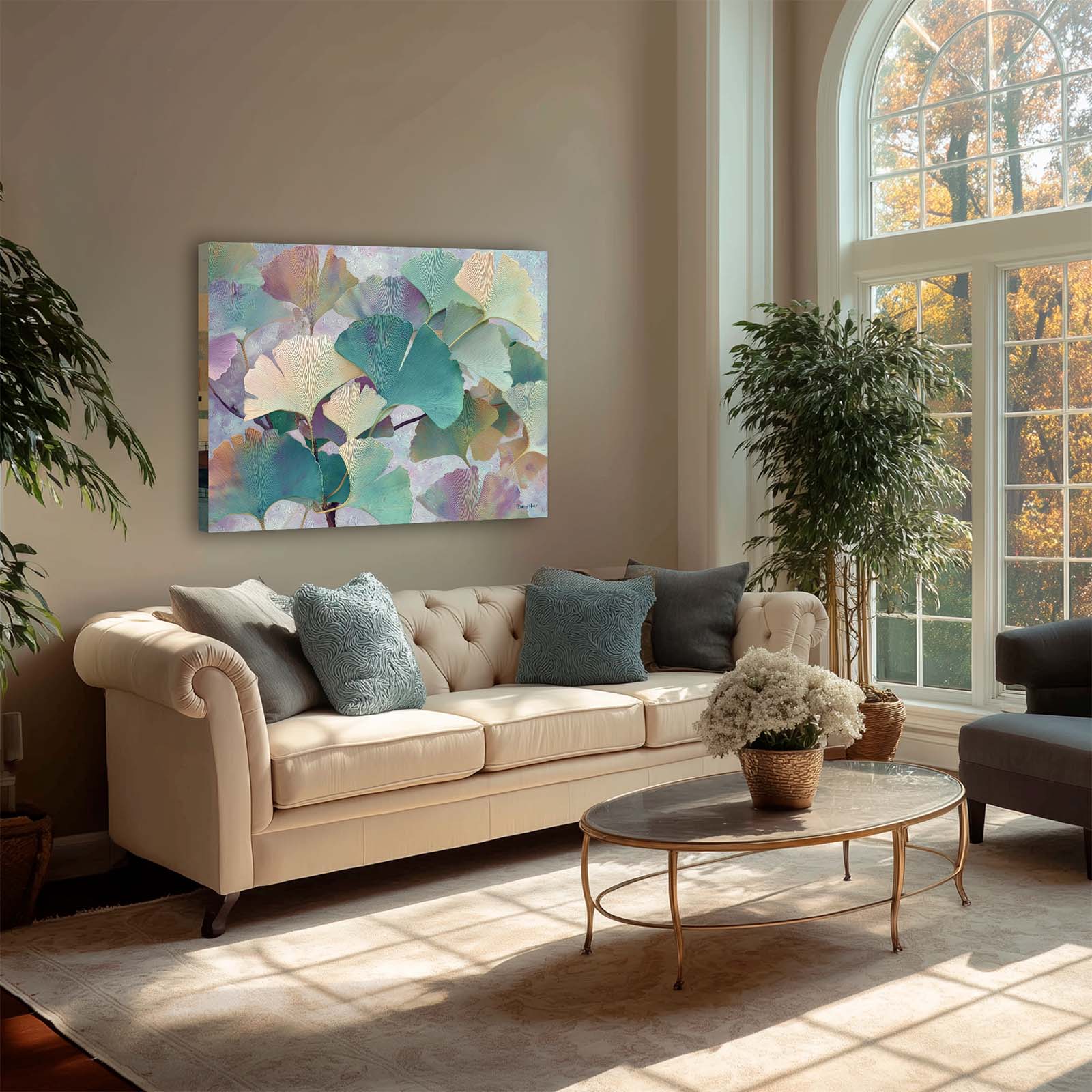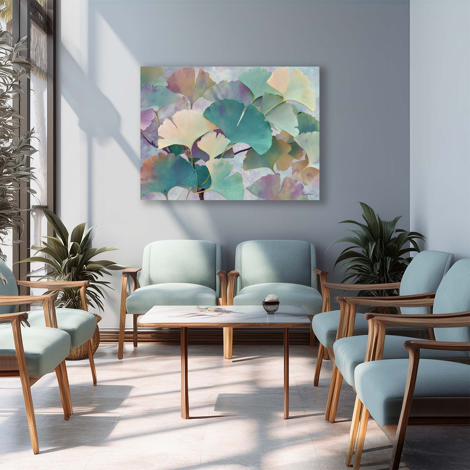 Bring calm and harmony into your space with this decorative canvas print. Featuring healing ginkgo leaves and natural elements, its soothing design evokes wellness, balance, and serenity. Printed on premium giclée canvas, it adds elegance, visual interest, and a touch of nature-inspired artistry to any home or office decor.