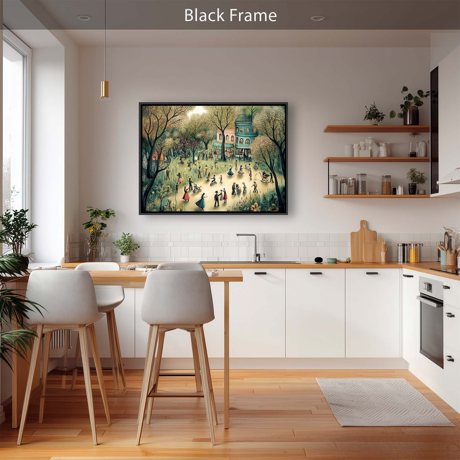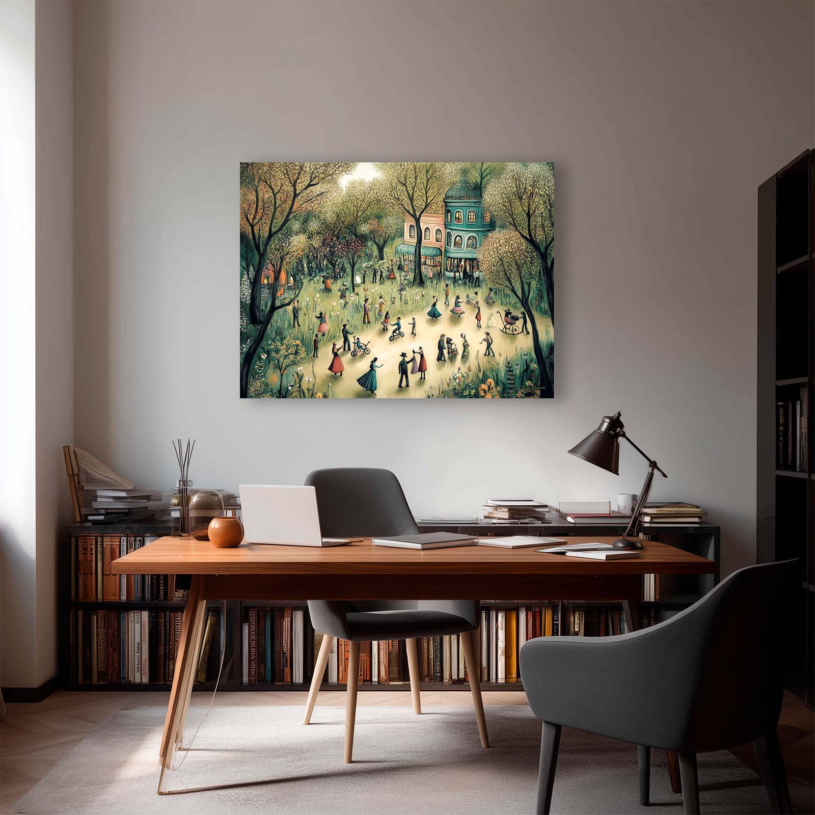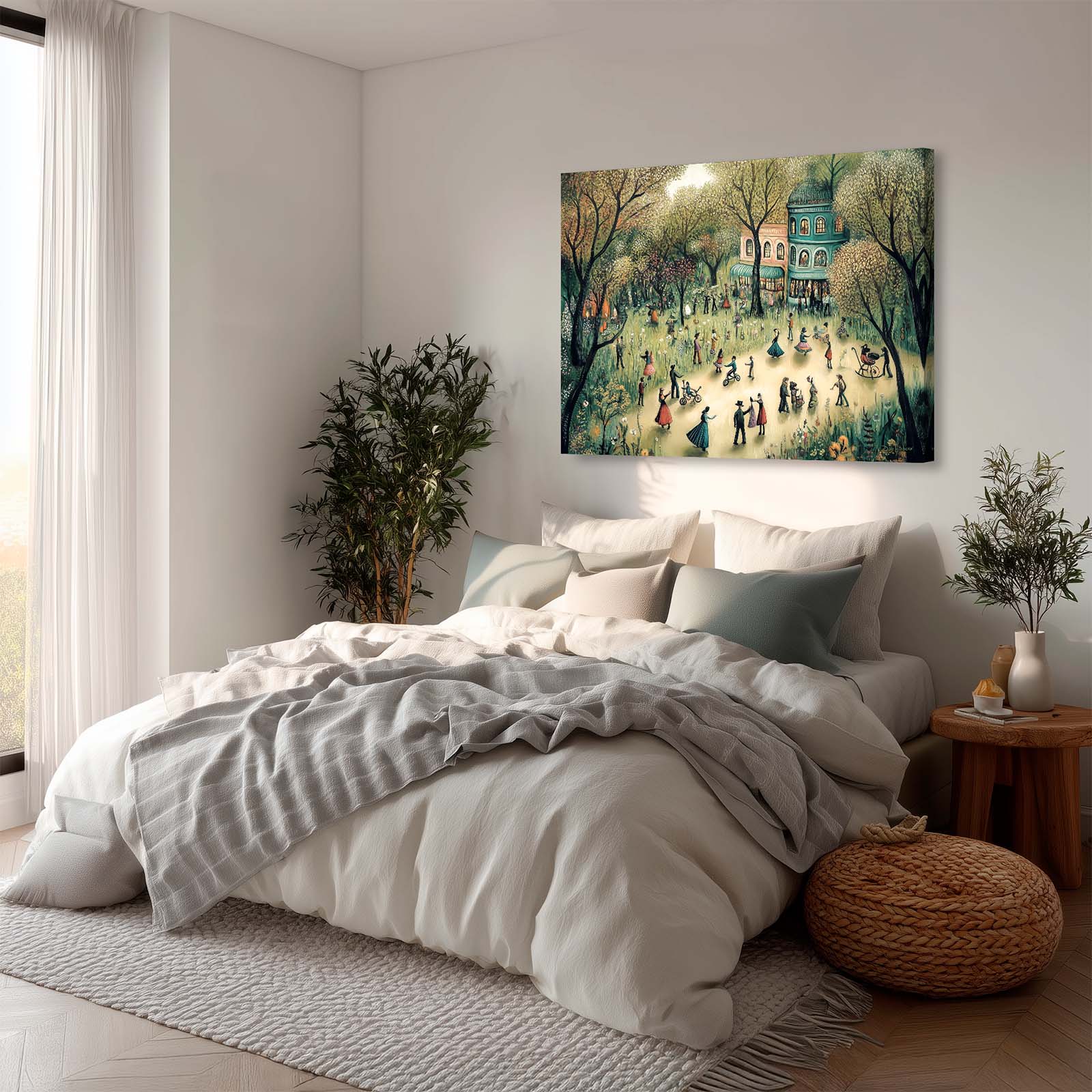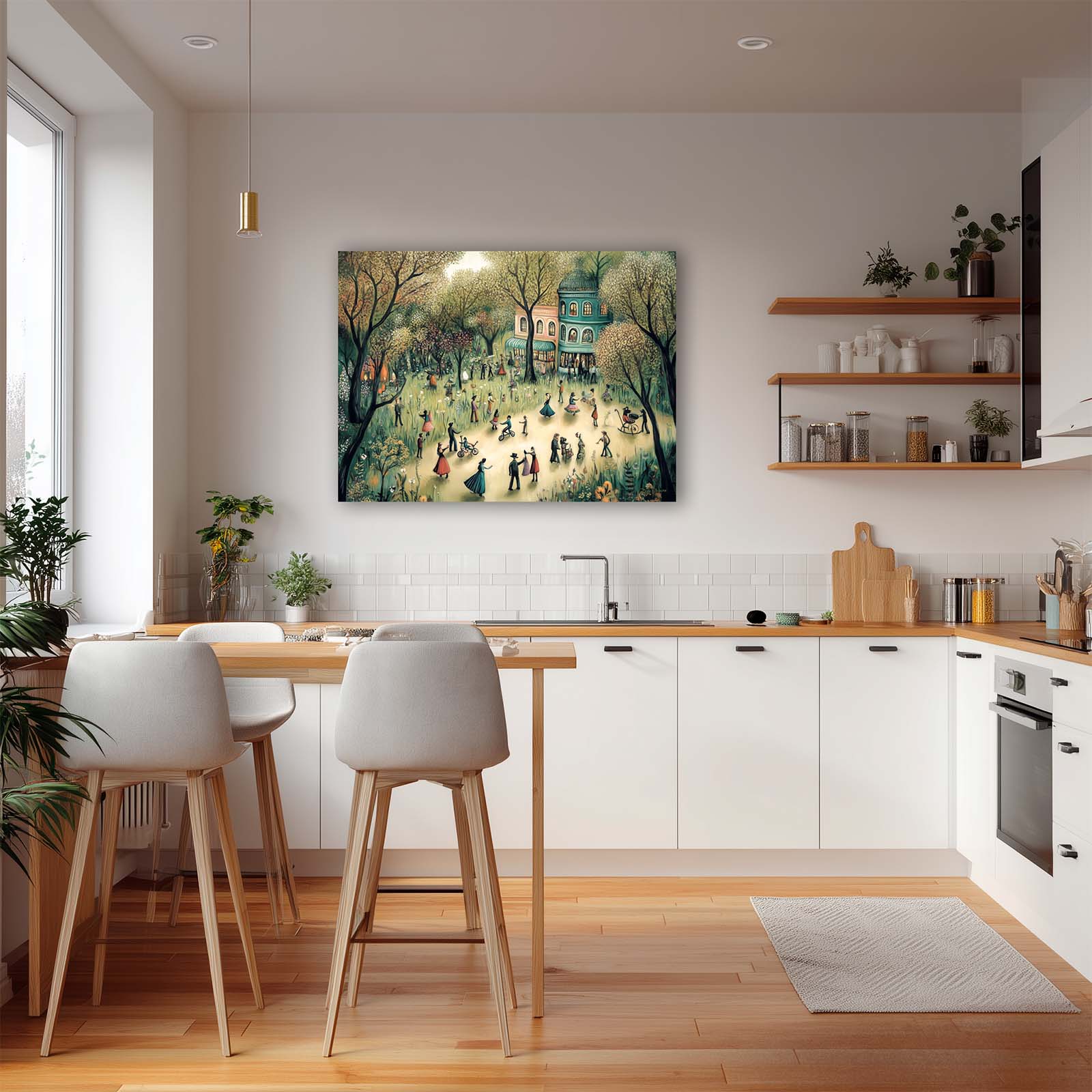 Put your hoe down! It's time to party! Bring energy and joy into your space with this lively canvas print. A community dances together in a vibrant folk art style, capturing the spirit of celebration and togetherness. Printed on premium giclée canvas, it adds warmth, charm, and playful personality to any home or office decor.