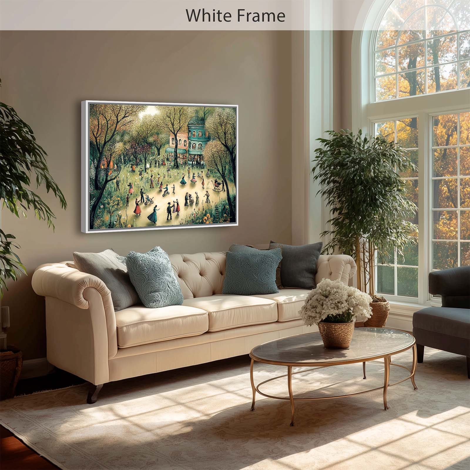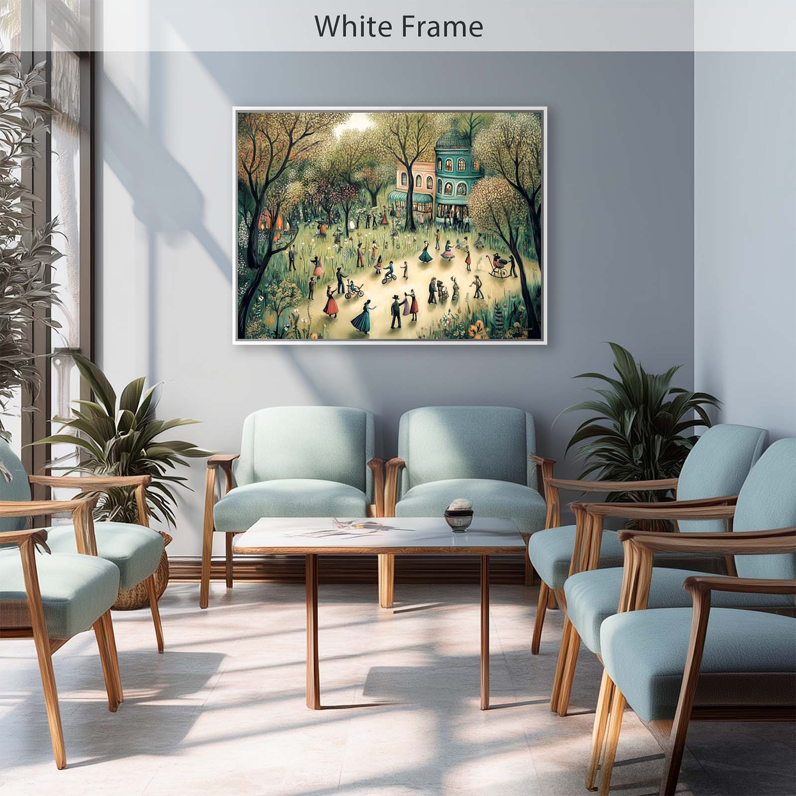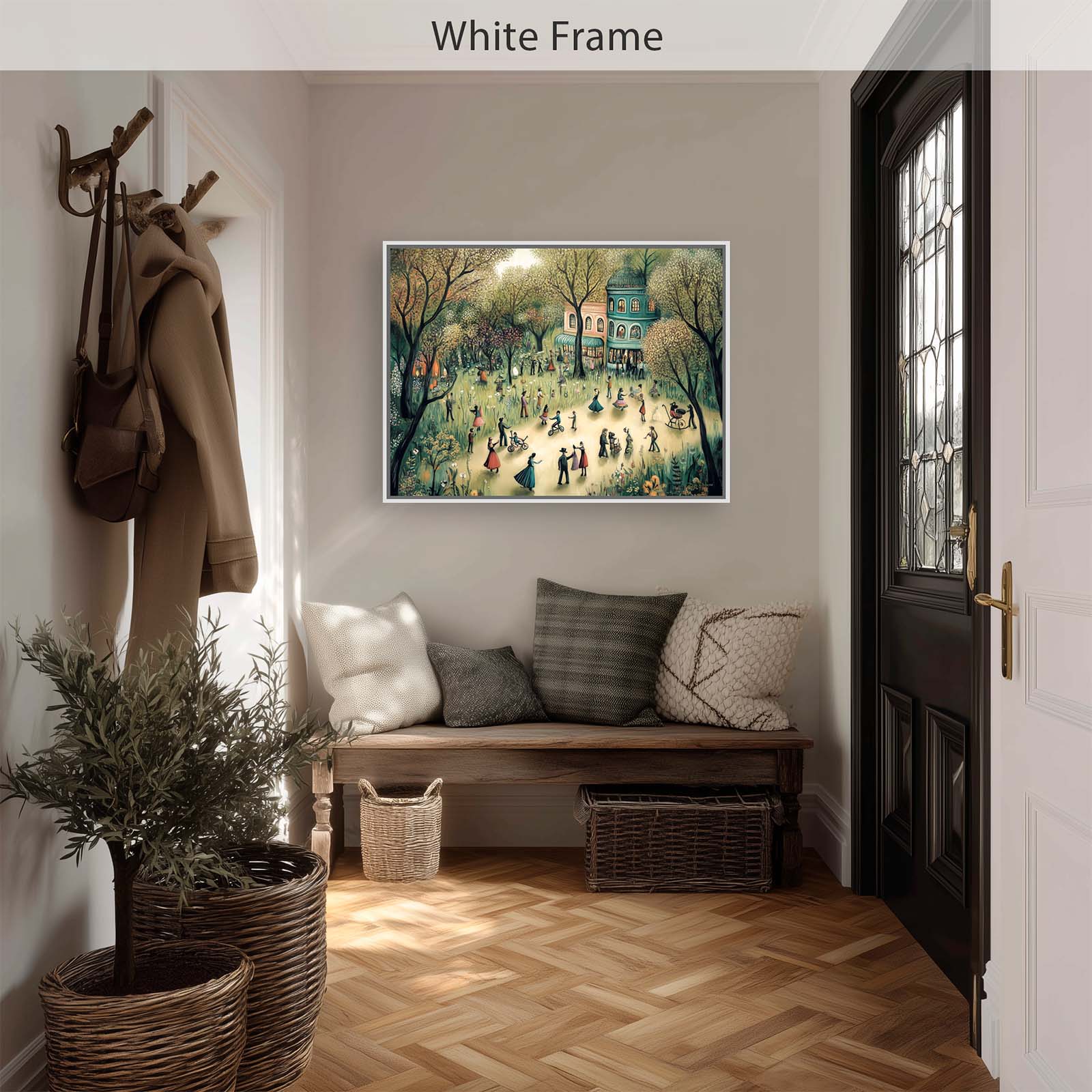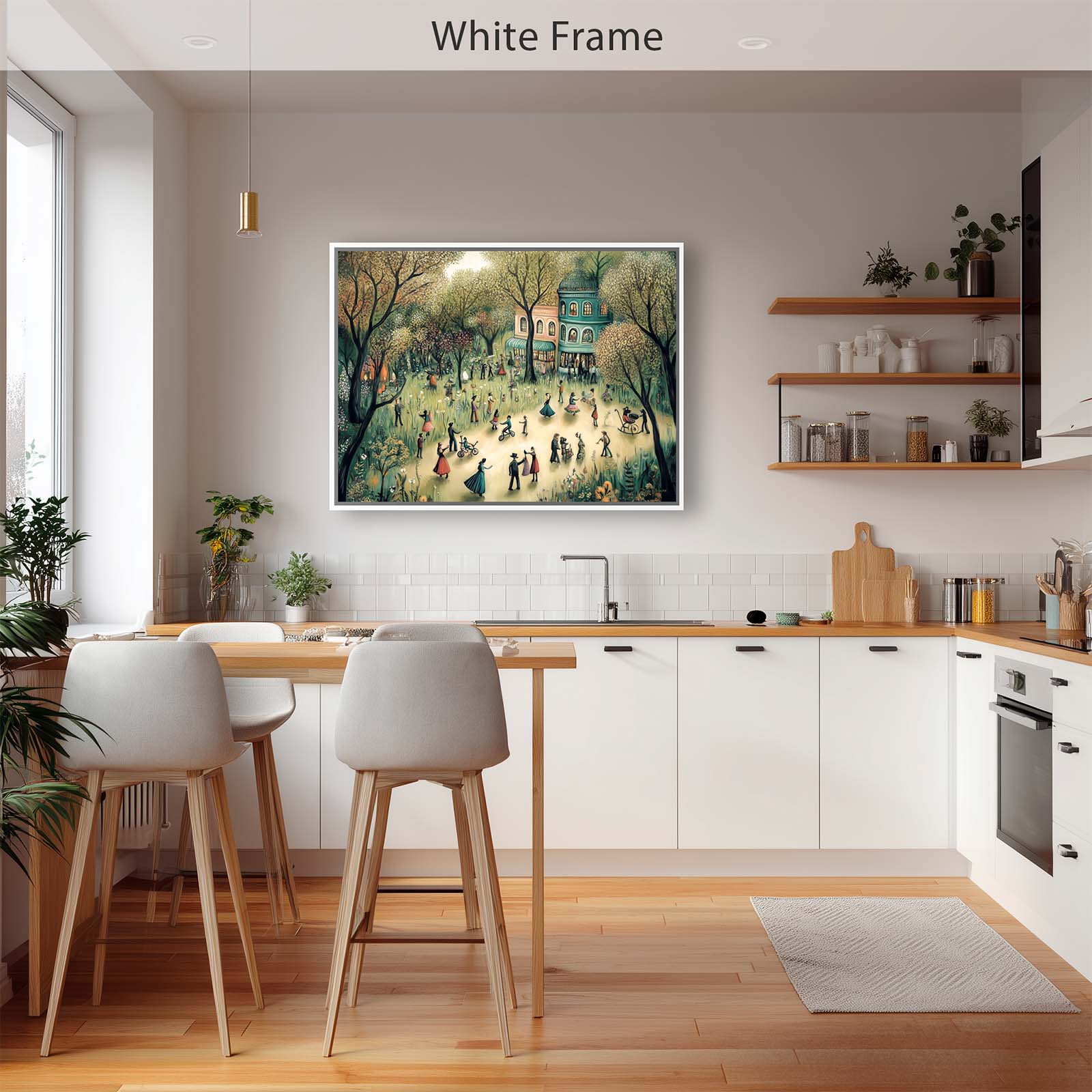 Put your hoe down! It's time to party! Bring energy and joy into your space with this lively canvas print. A community dances together in a vibrant folk art style, capturing the spirit of celebration and togetherness. Printed on premium giclée canvas, it adds warmth, charm, and playful personality to any home or office decor.