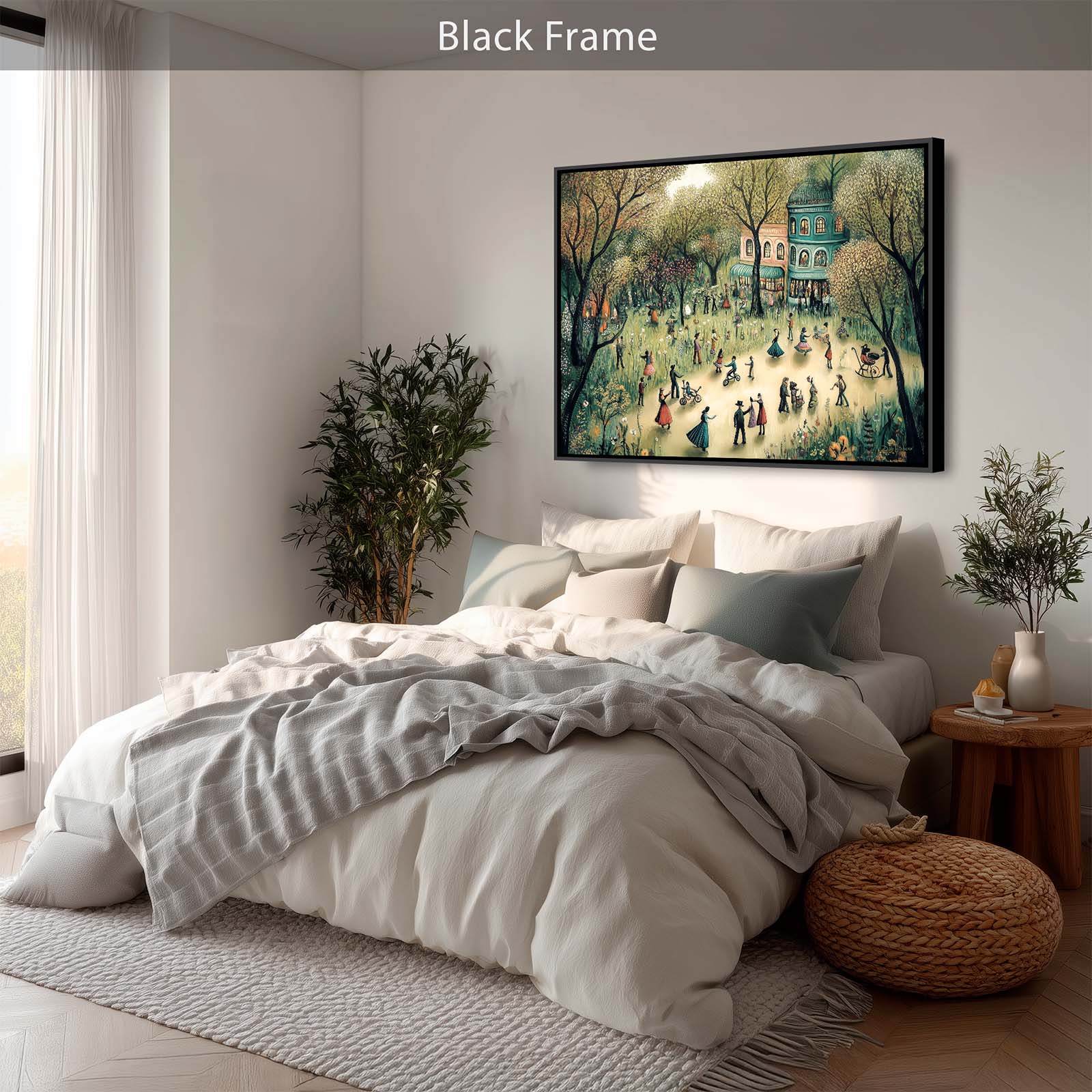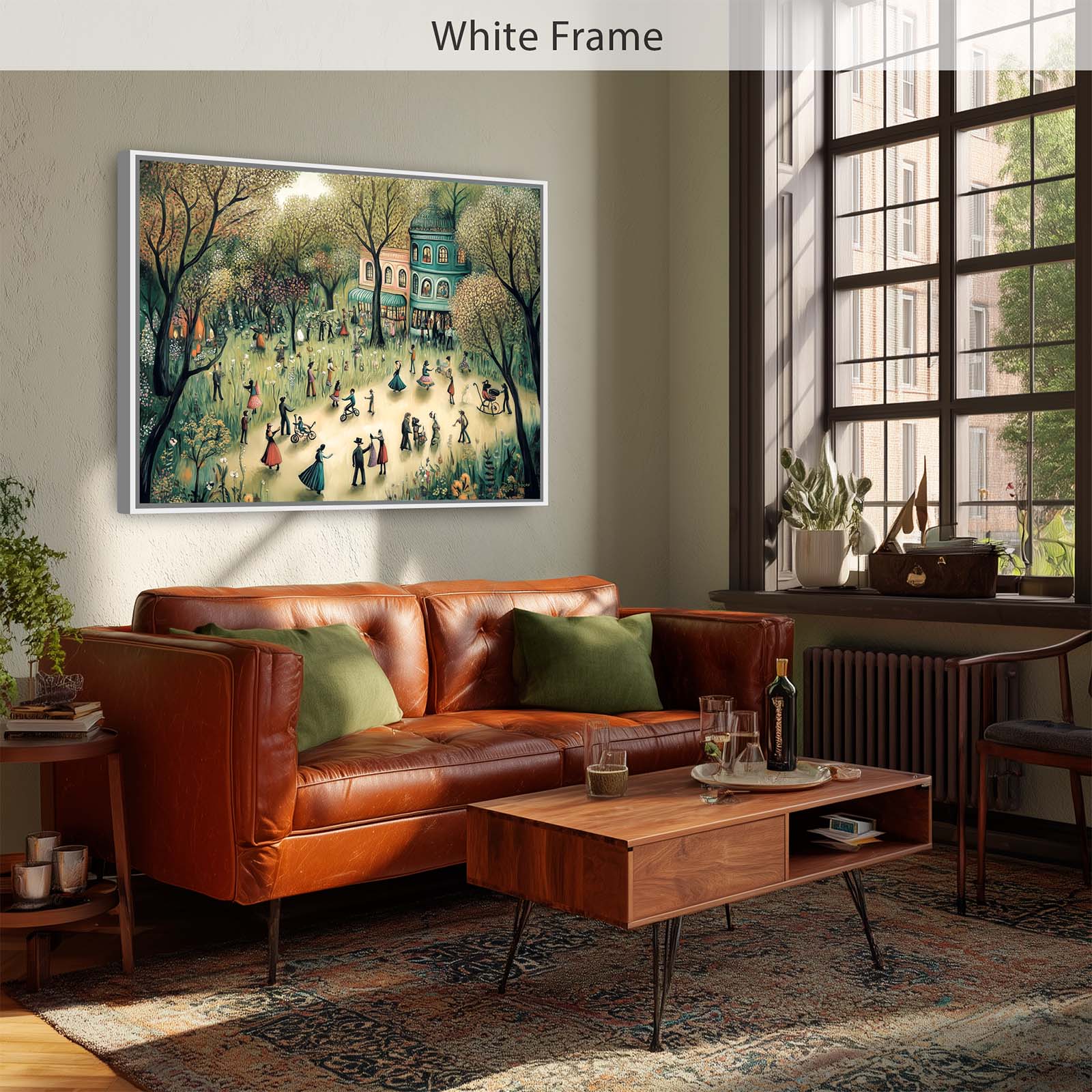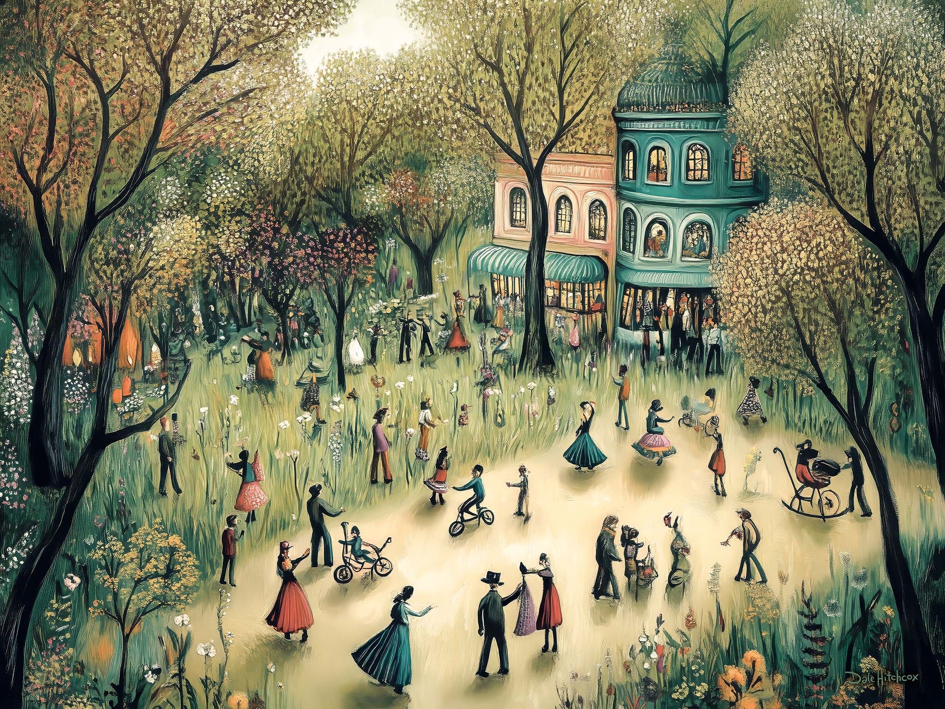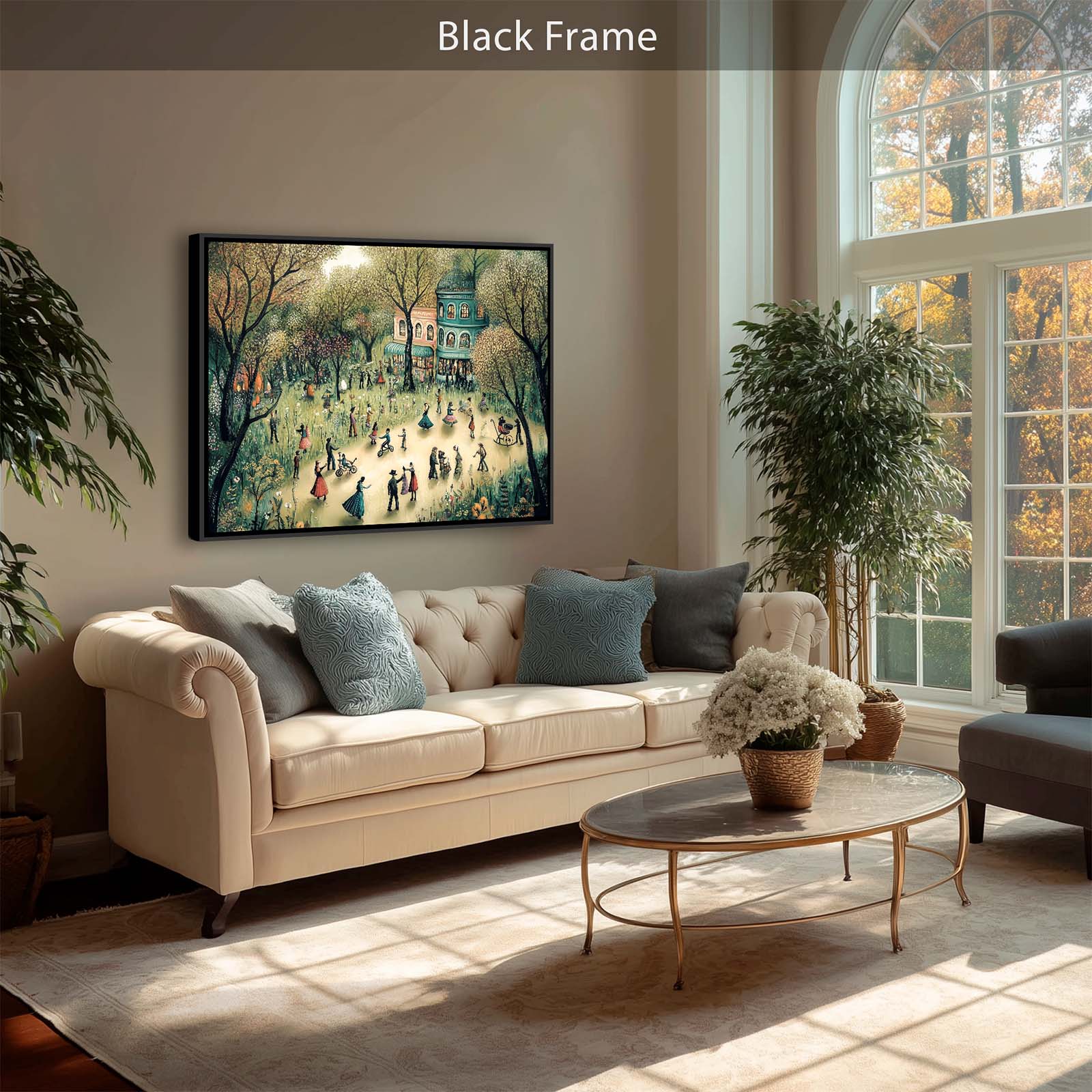 Put your hoe down! It's time to party! Bring energy and joy into your space with this lively canvas print. A community dances together in a vibrant folk art style, capturing the spirit of celebration and togetherness. Printed on premium giclée canvas, it adds warmth, charm, and playful personality to any home or office decor.