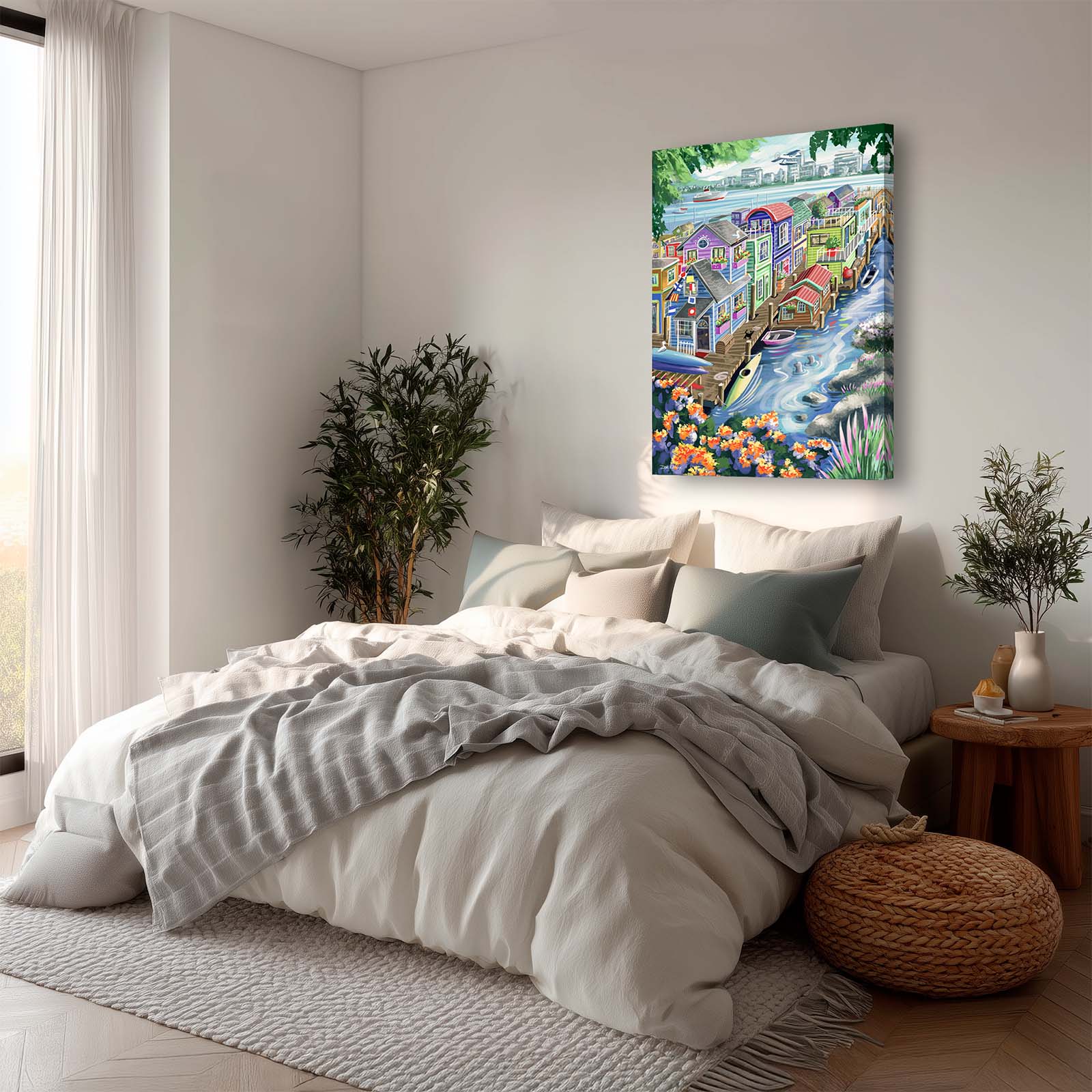 With its straight-from-the-tube color palette, Houseboats radiates warmth, energy, and fun—perfect for brightening up any space that could use a splash of personality. Printed on premium stretched canvas, this piece is both durable and ready to hang, bringing long-lasting artistry to your home.
