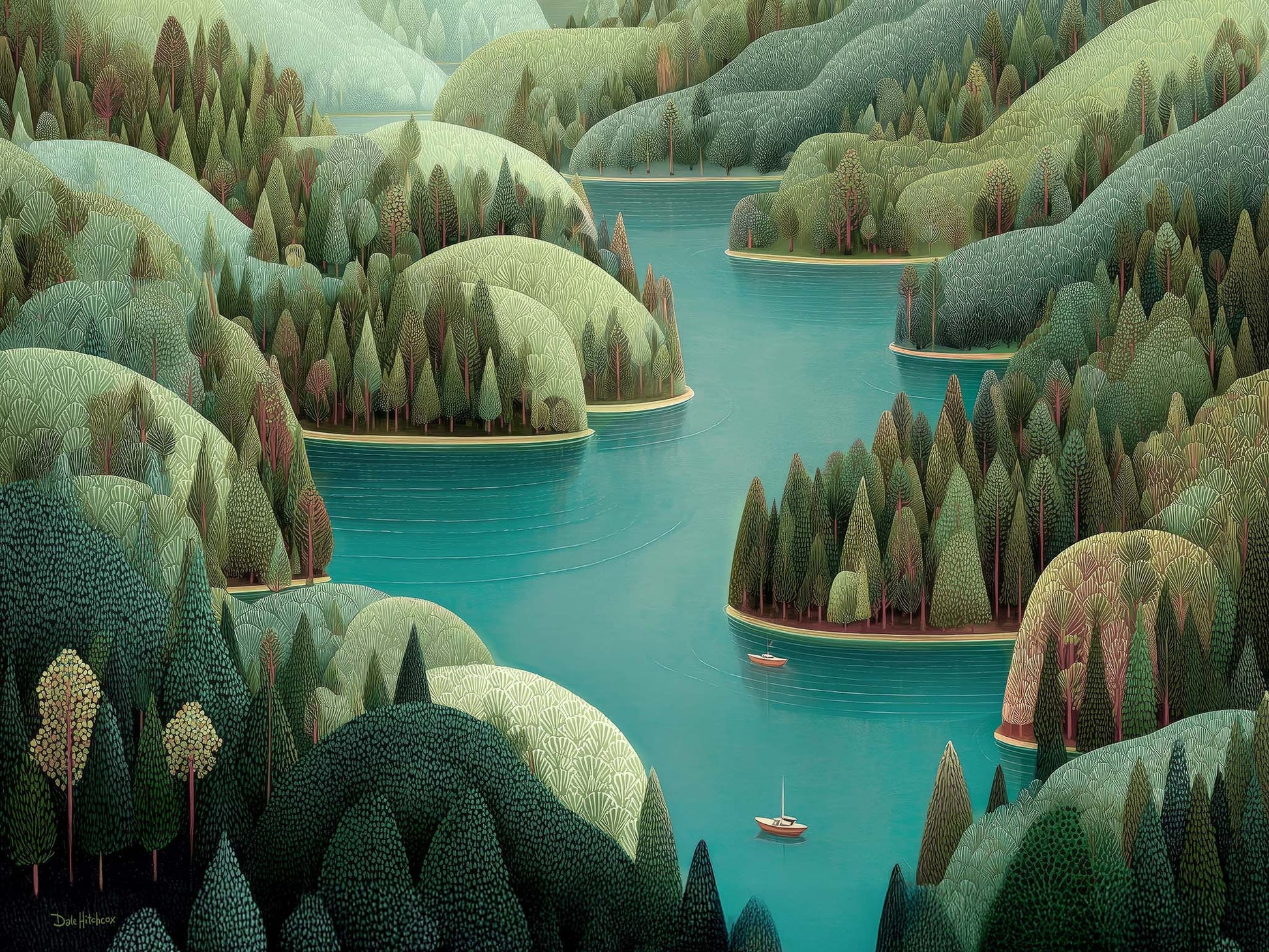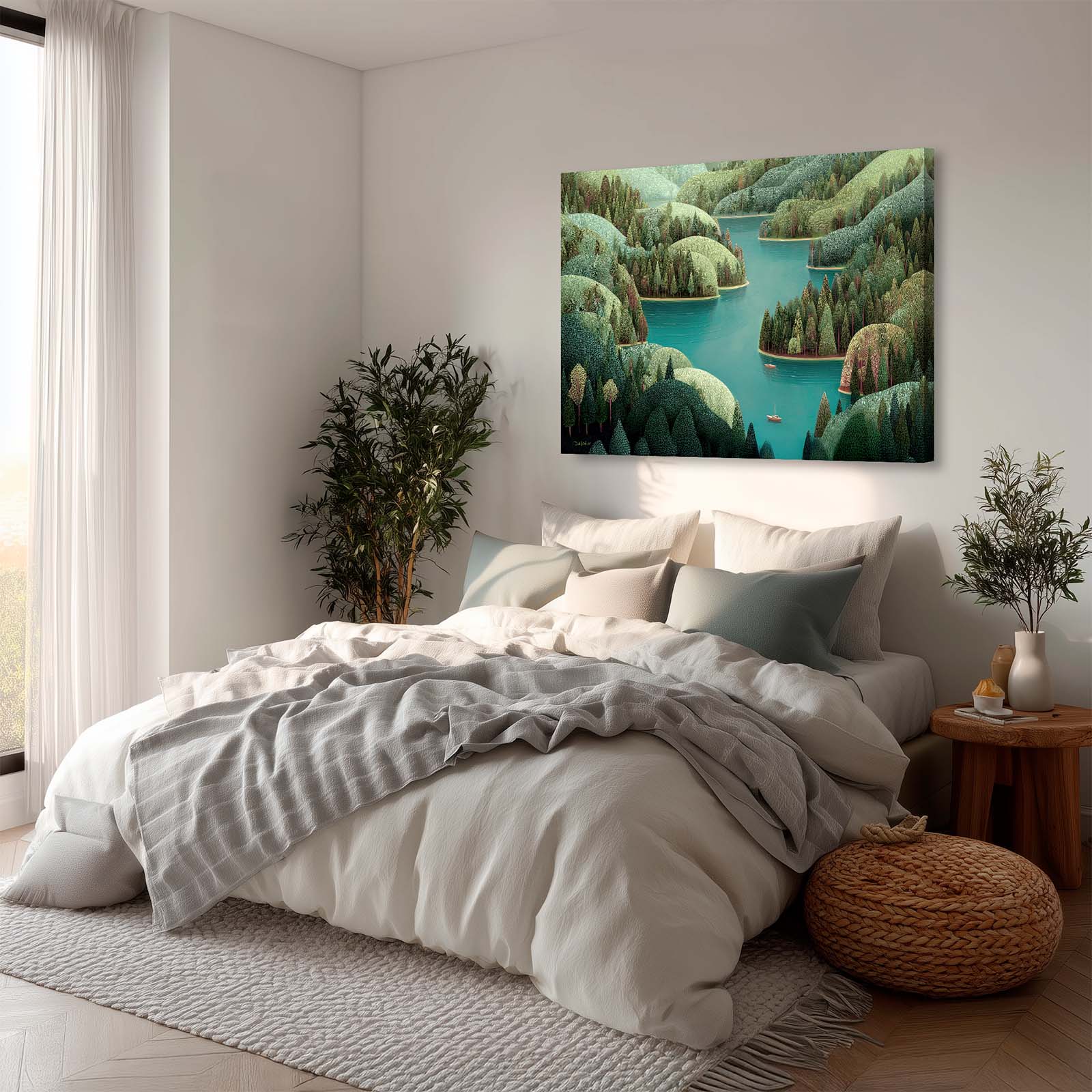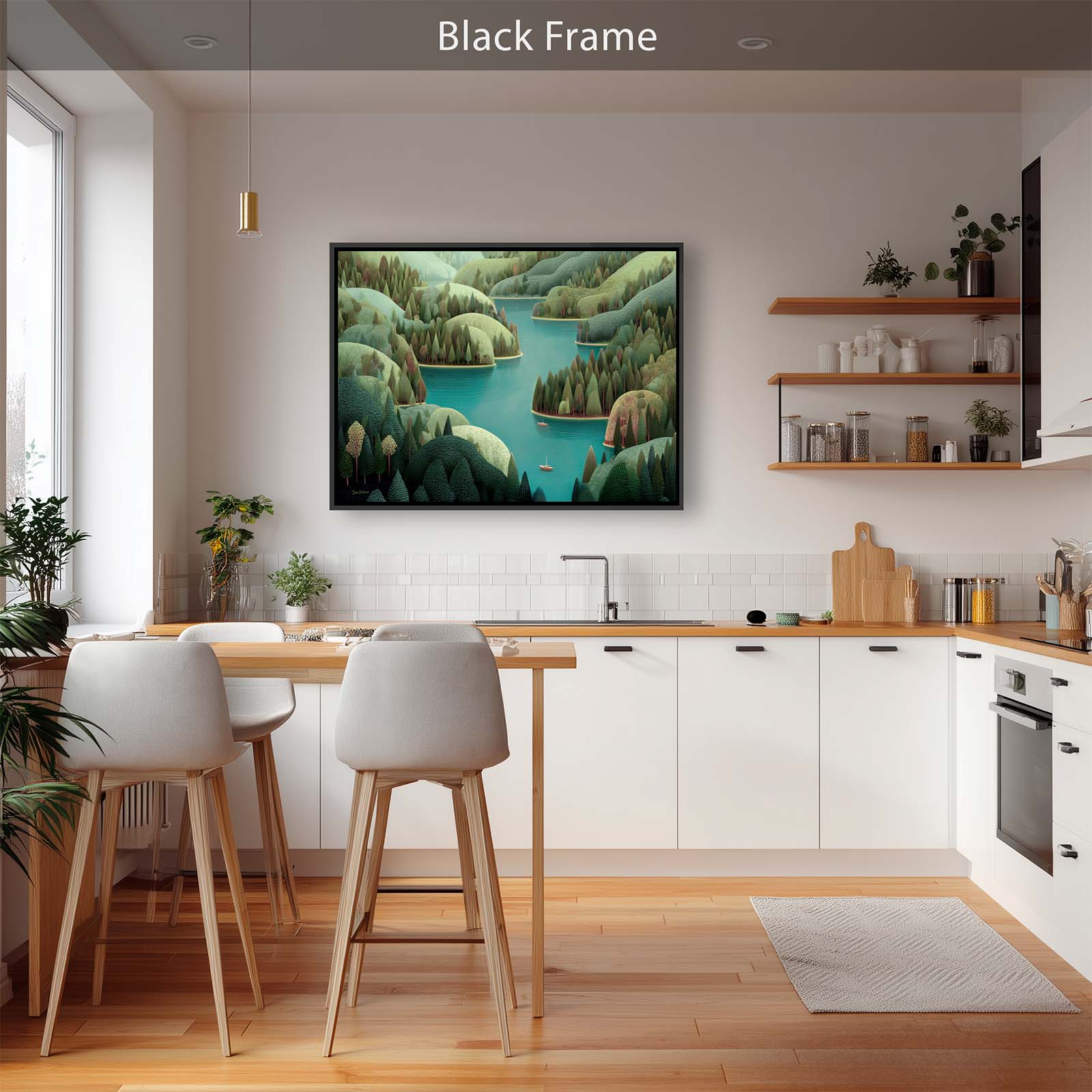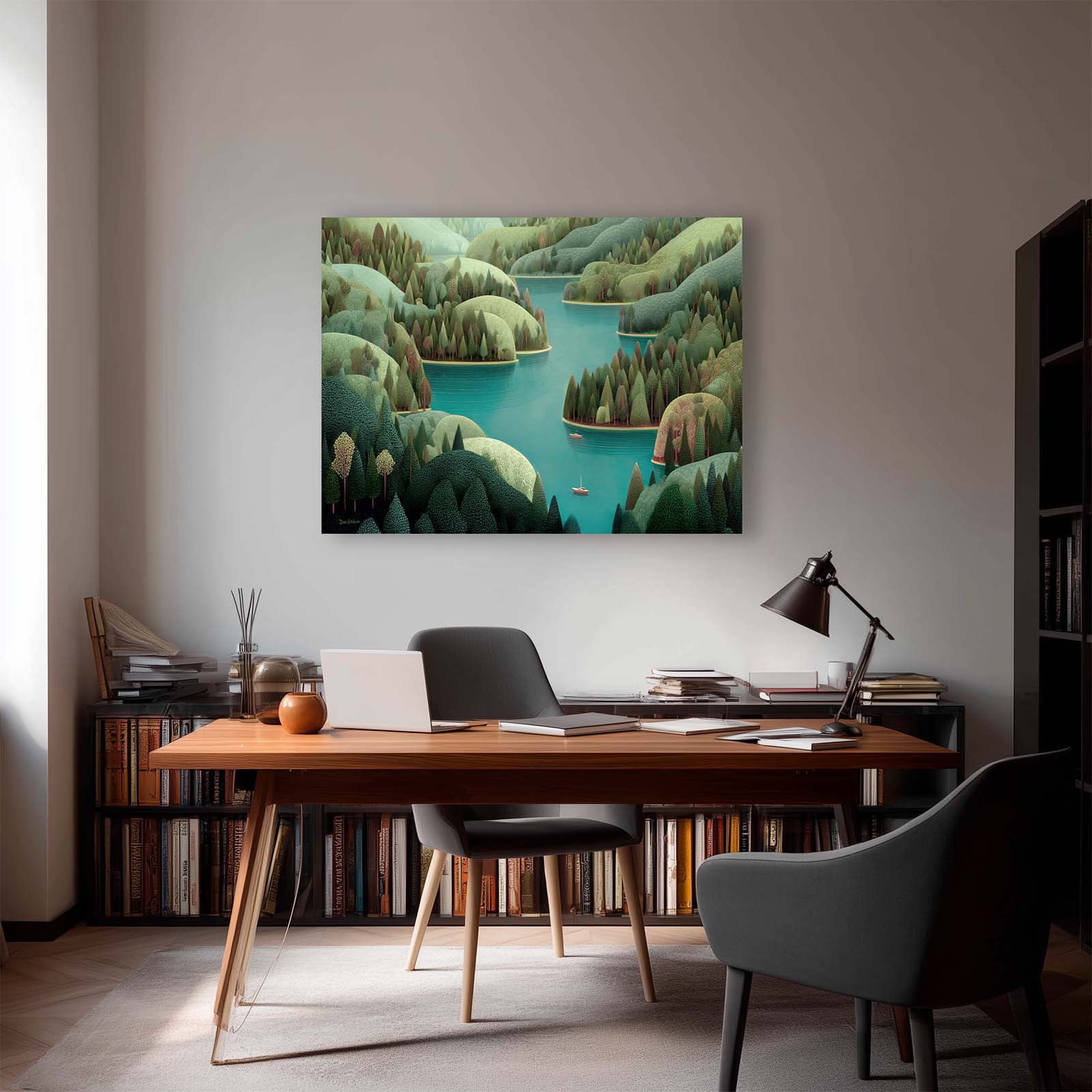 Peaceful and inviting, this playful rendition of two tiny boats anchored in a forested inlet captures the quiet charm of nature at rest. Soft tones and gentle detail make it a perfect fit for nearly any décor—modern, rustic, or coastal. Printed on premium stretched canvas (giclée), it brings warmth, beauty, and a sense of calm to your home or office.