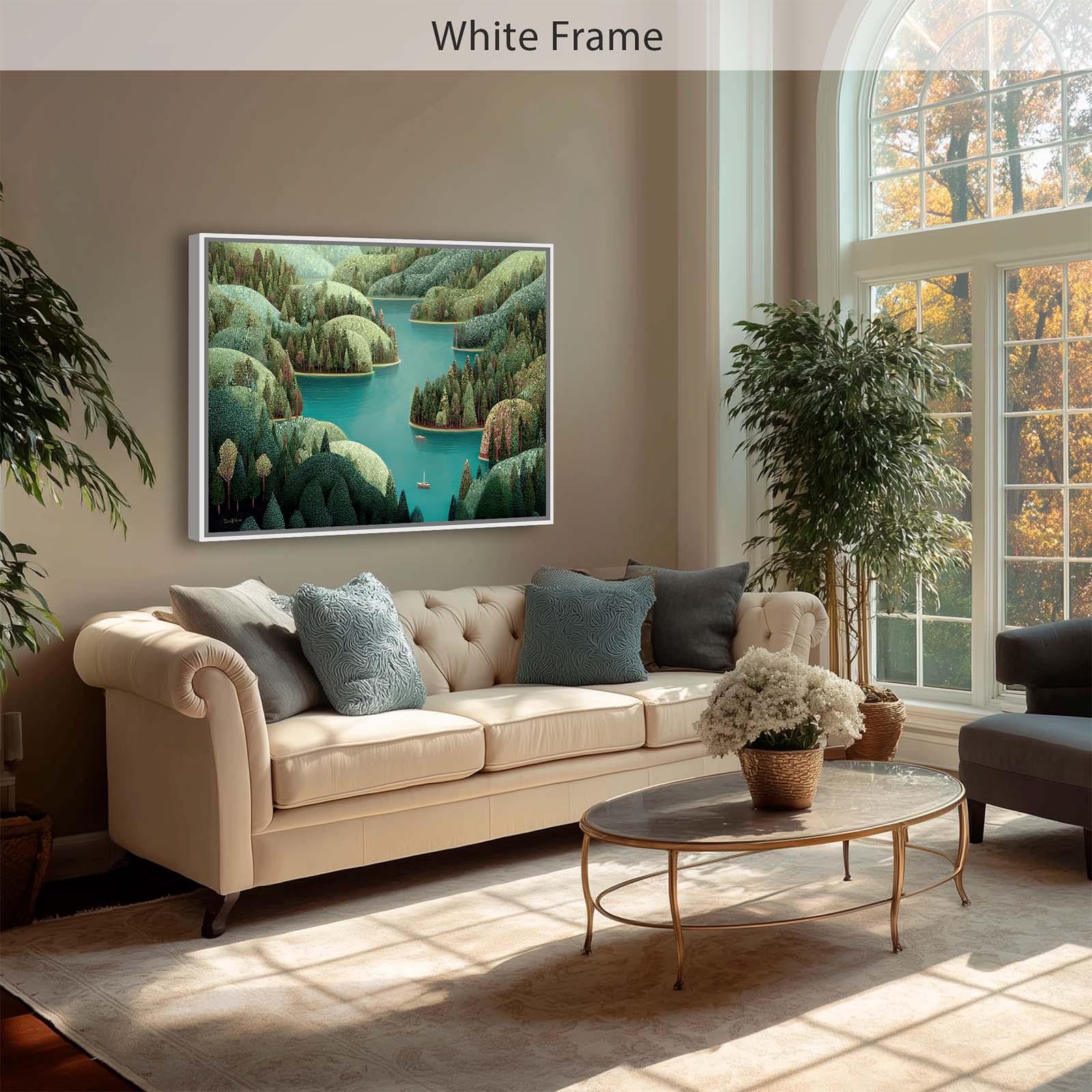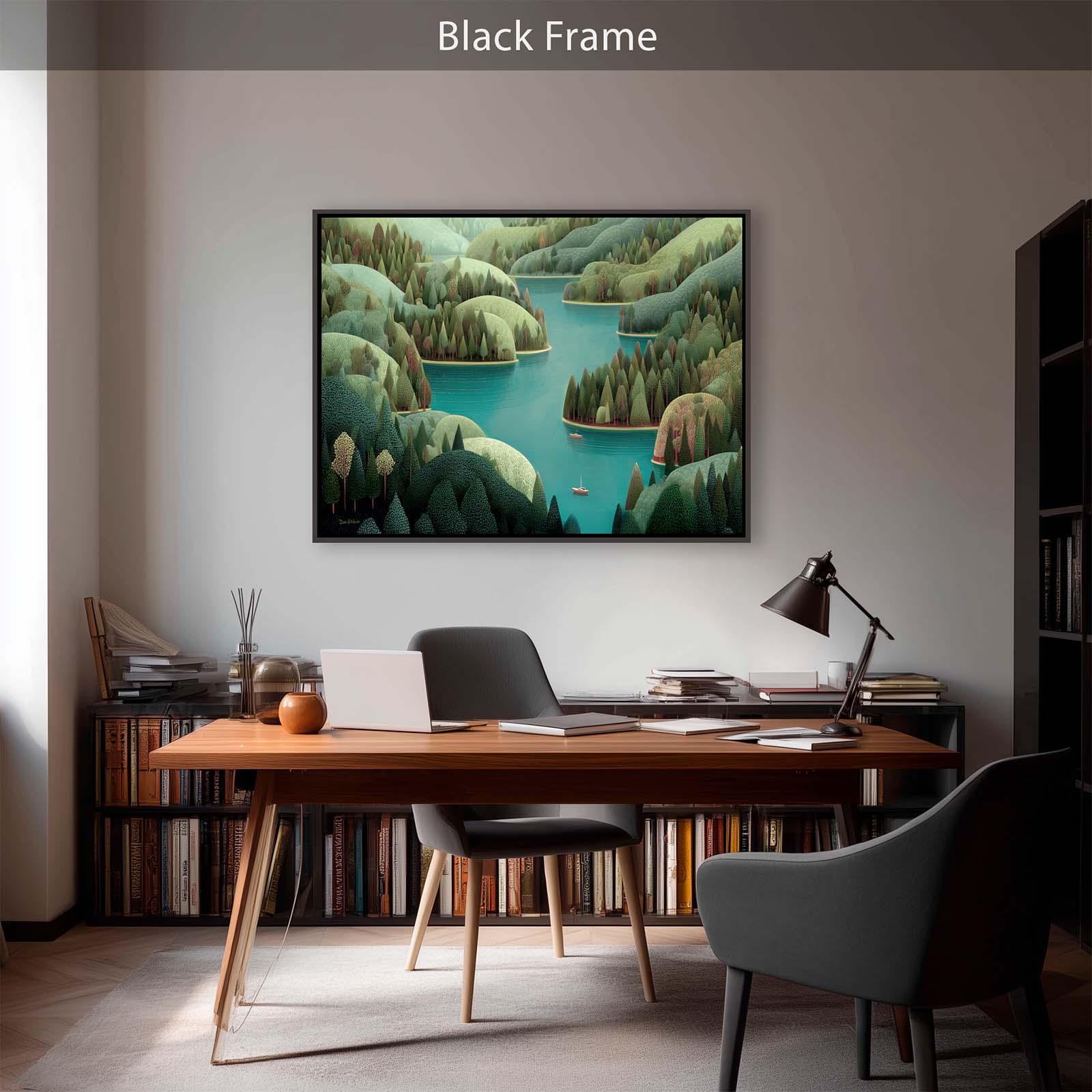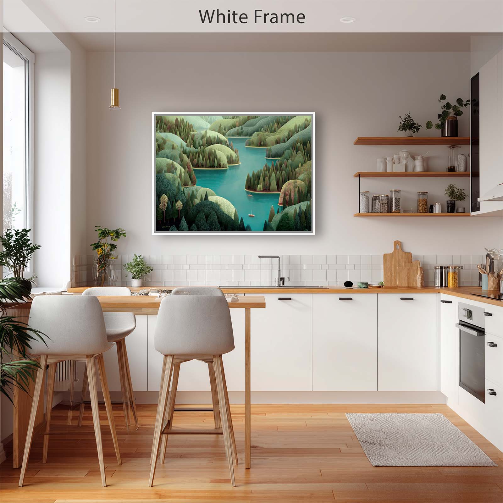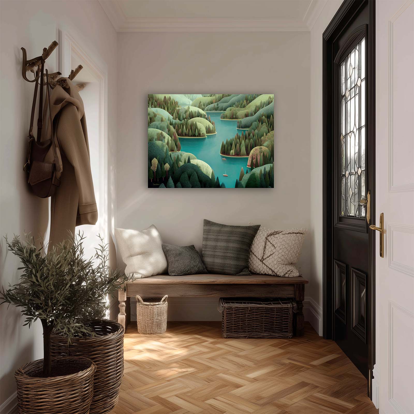 Peaceful and inviting, this playful rendition of two tiny boats anchored in a forested inlet captures the quiet charm of nature at rest. Soft tones and gentle detail make it a perfect fit for nearly any décor—modern, rustic, or coastal. Printed on premium stretched canvas (giclée), it brings warmth, beauty, and a sense of calm to your home or office.