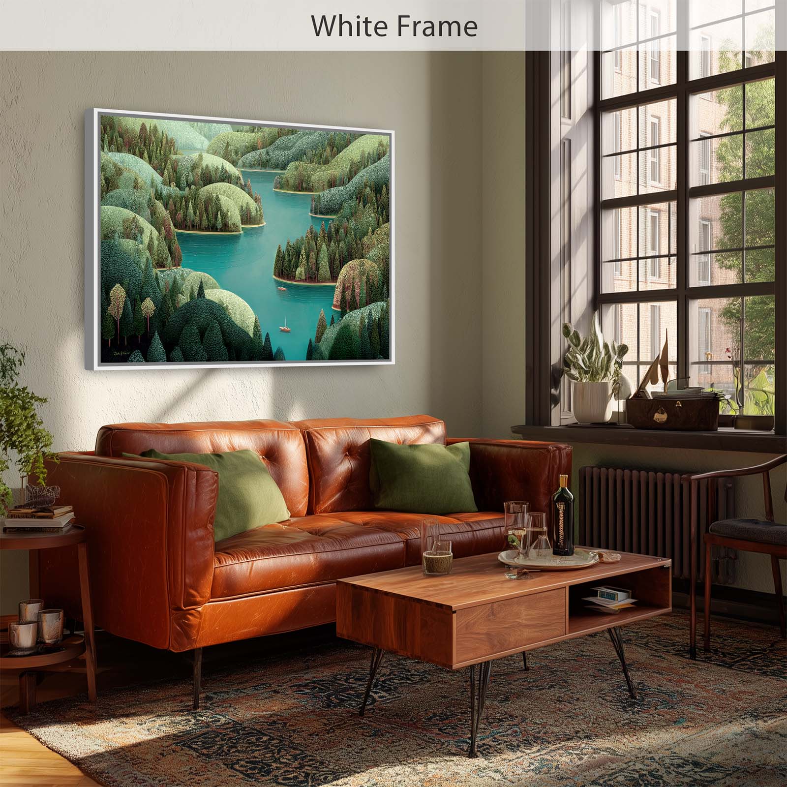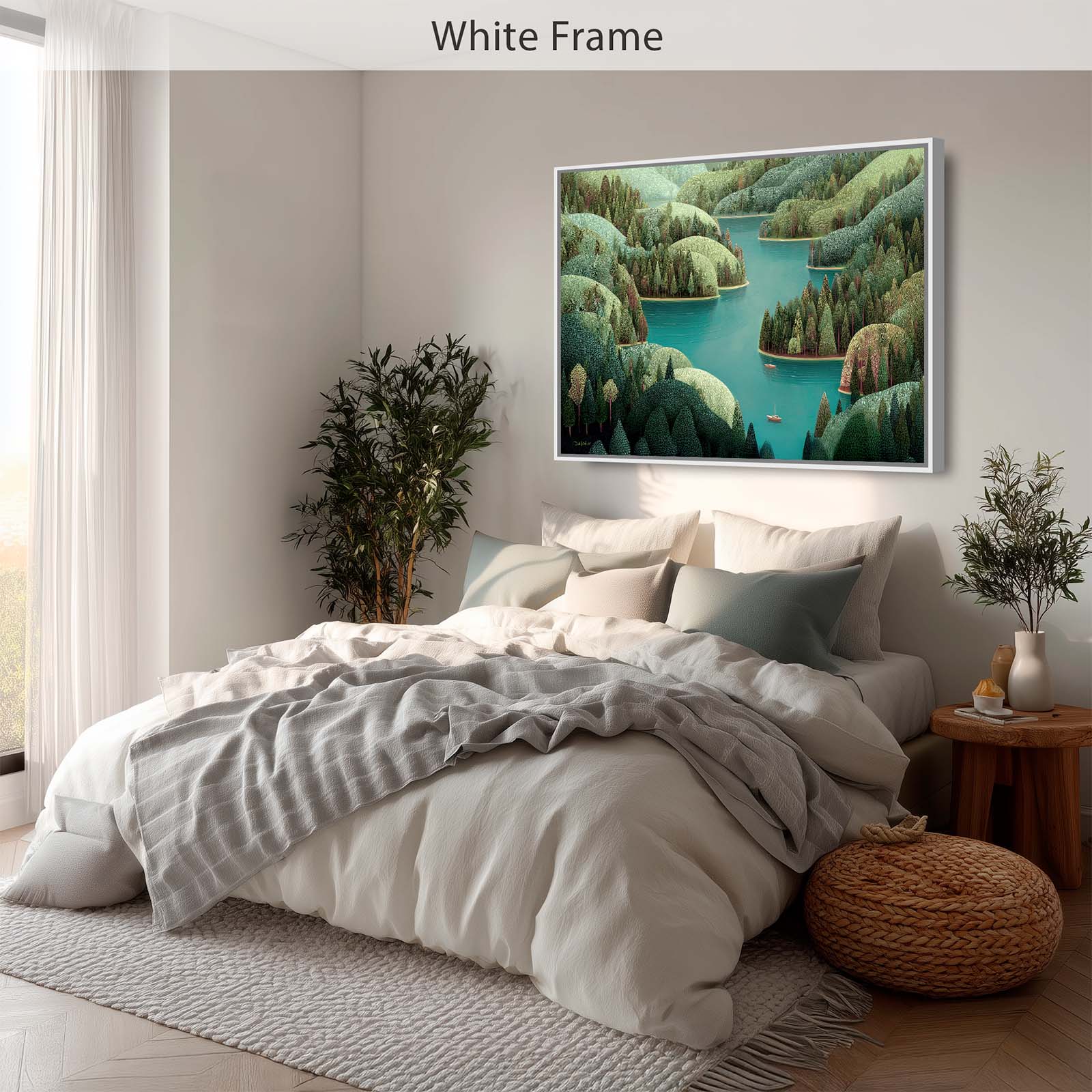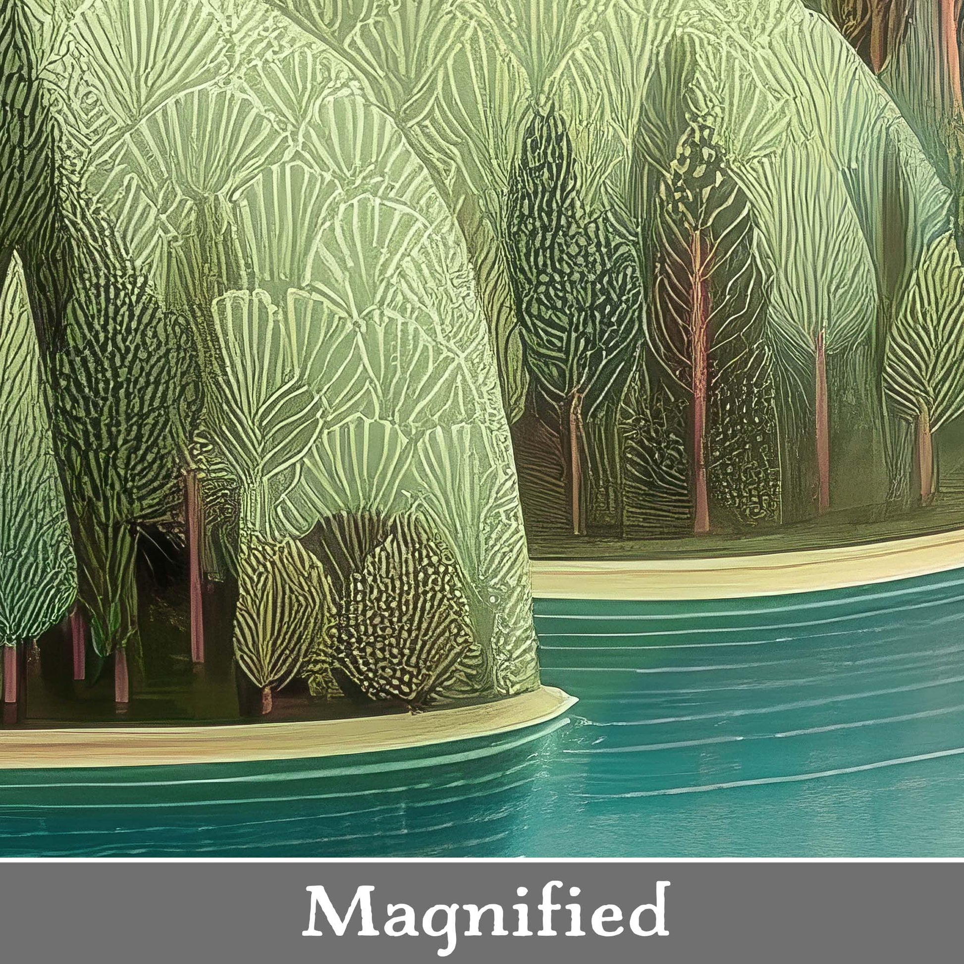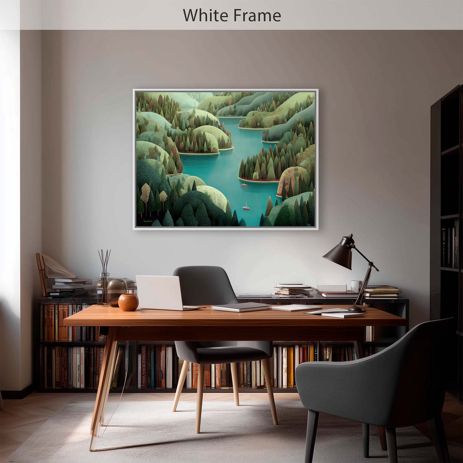 Peaceful and inviting, this playful rendition of two tiny boats anchored in a forested inlet captures the quiet charm of nature at rest. Soft tones and gentle detail make it a perfect fit for nearly any décor—modern, rustic, or coastal. Printed on premium stretched canvas (giclée), it brings warmth, beauty, and a sense of calm to your home or office.