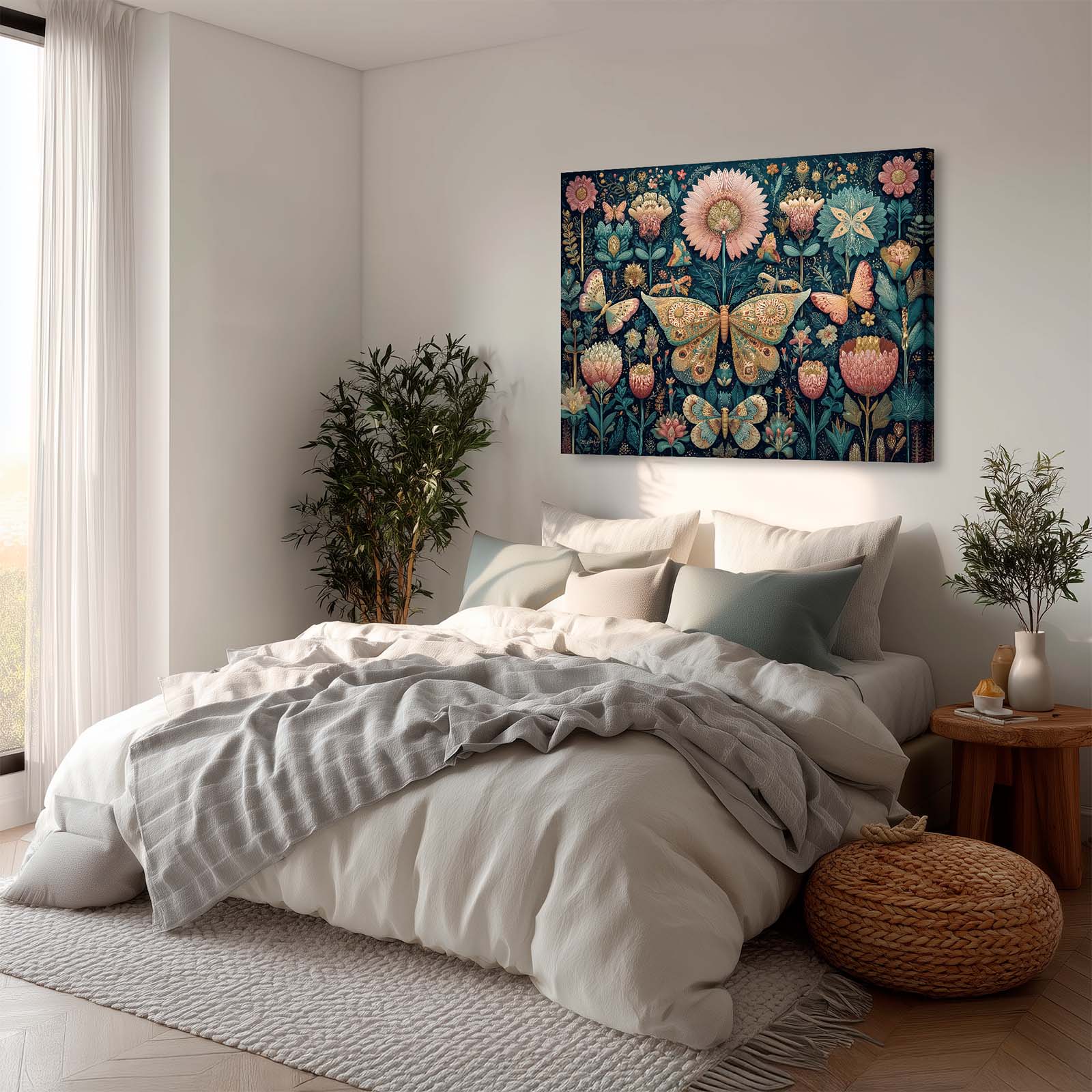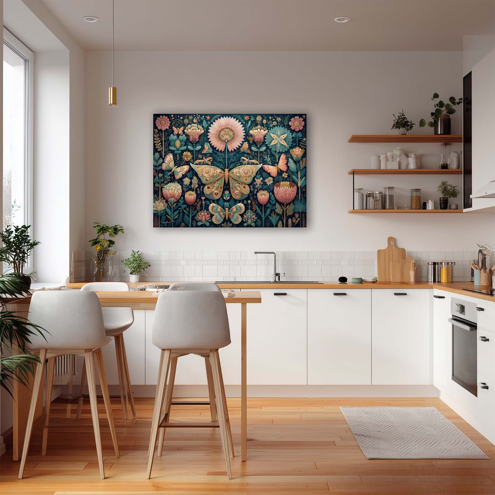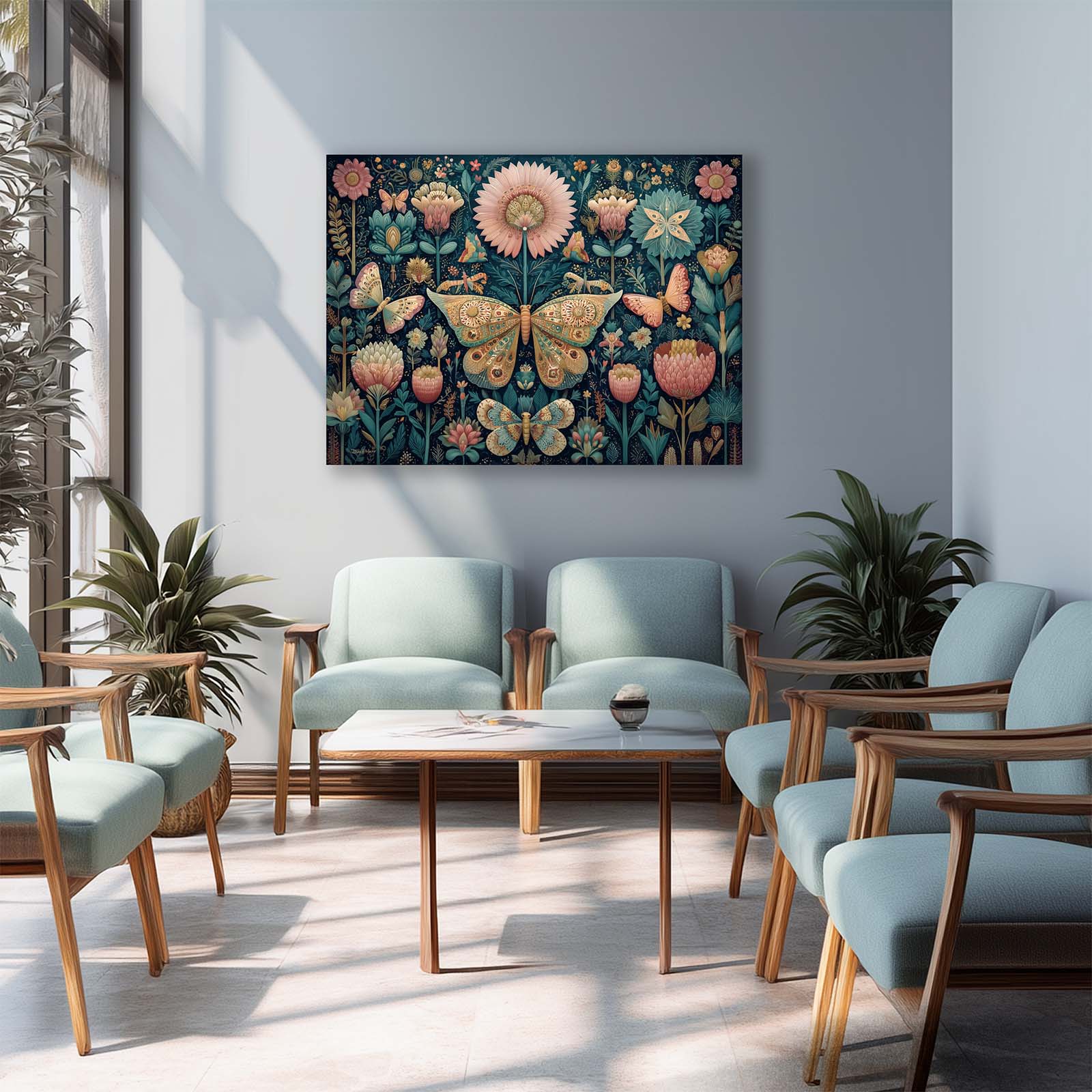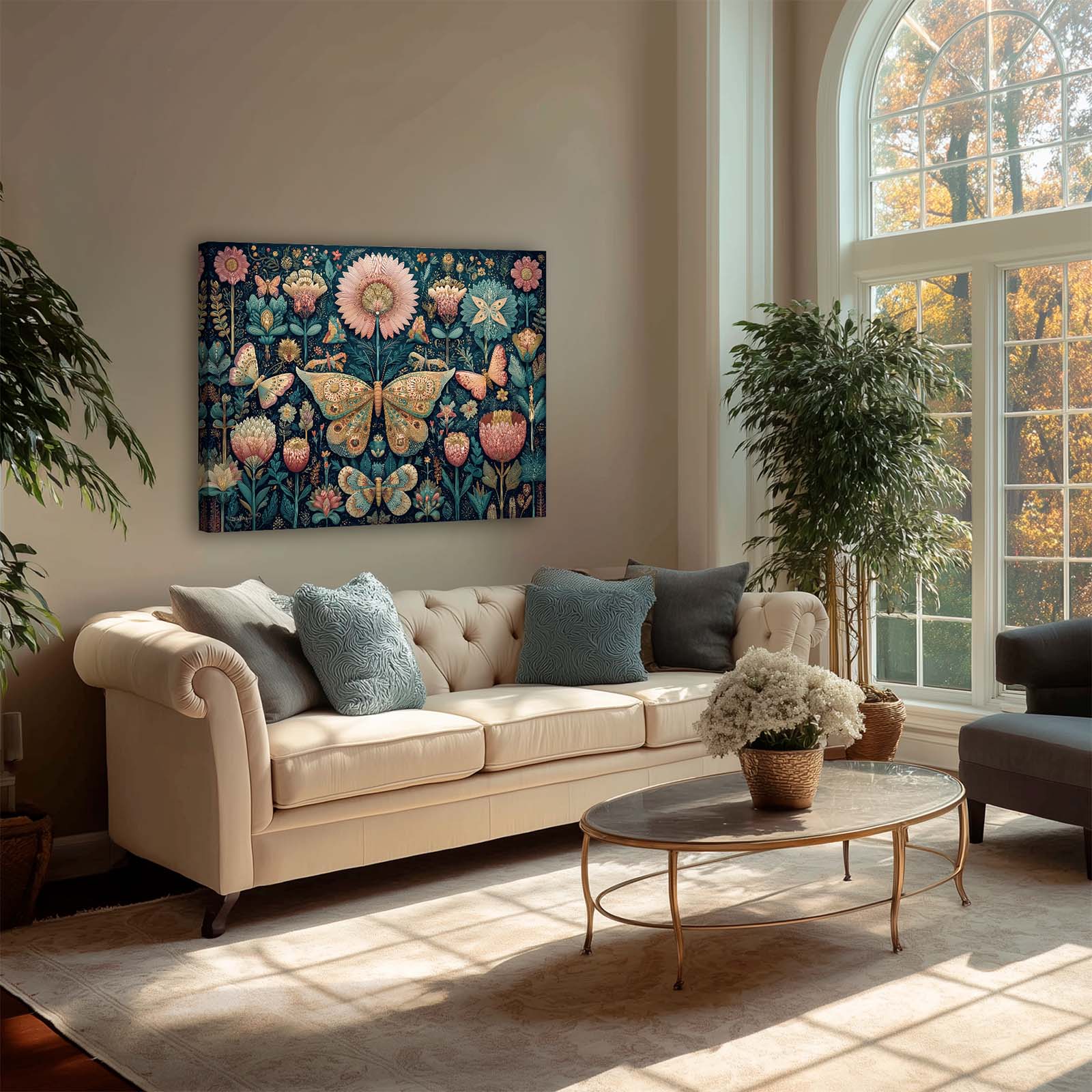 Add elegance and charm to your space with this decorative canvas print. Butterflies and flowers are rendered in a refined, upmarket style, bringing color, sophistication, and beauty to any room. Printed on premium giclée canvas, it enhances your home or office with timeless artistry and visual interest.