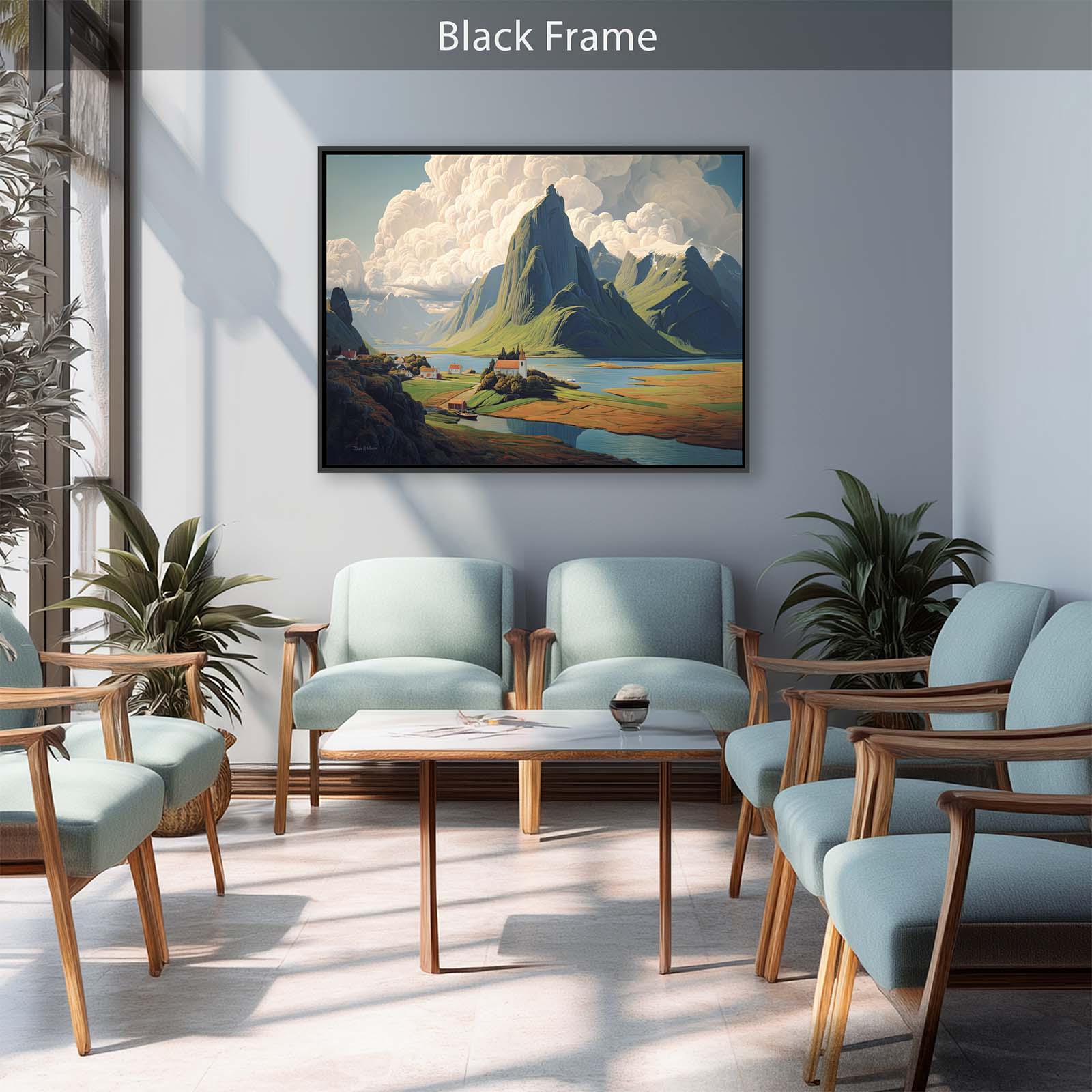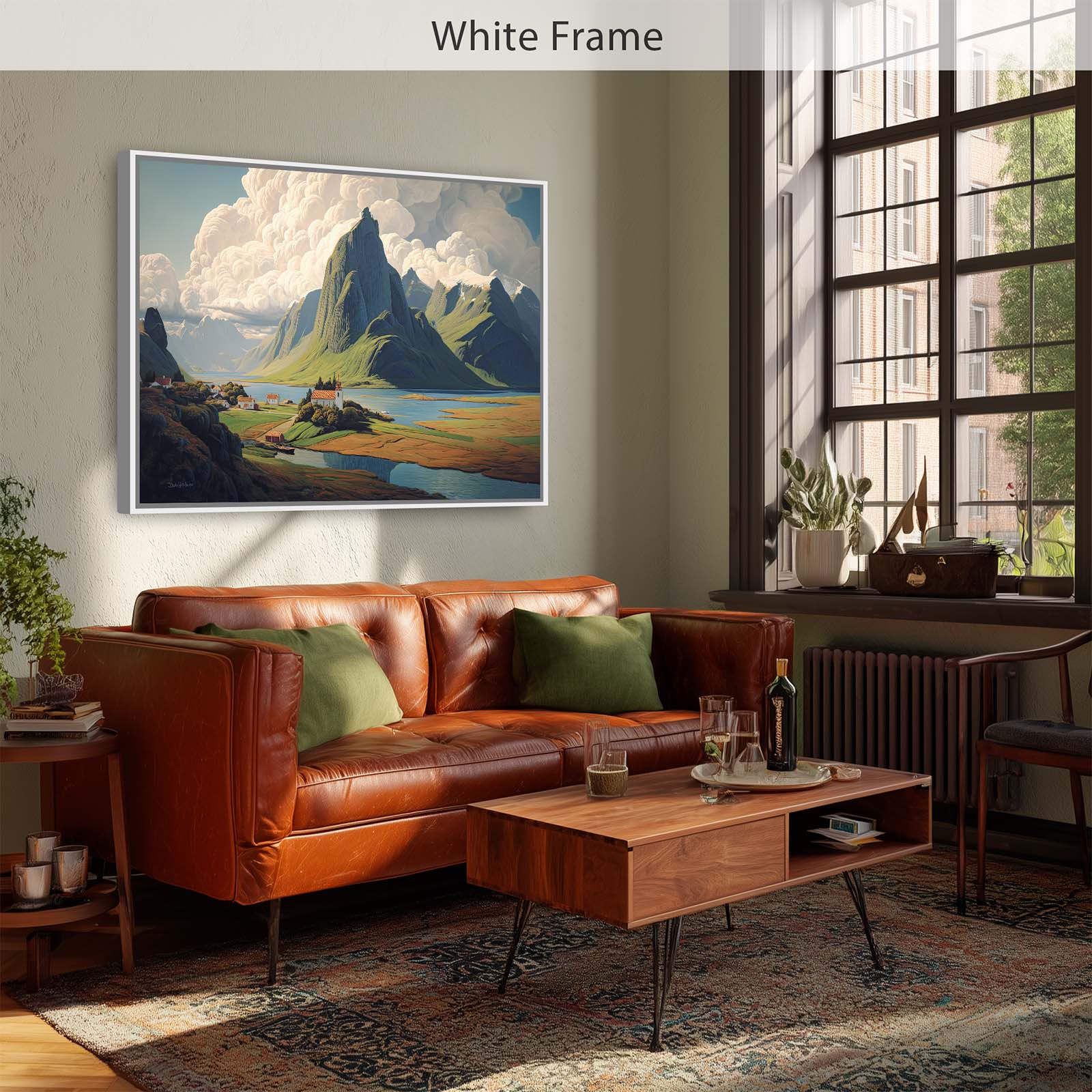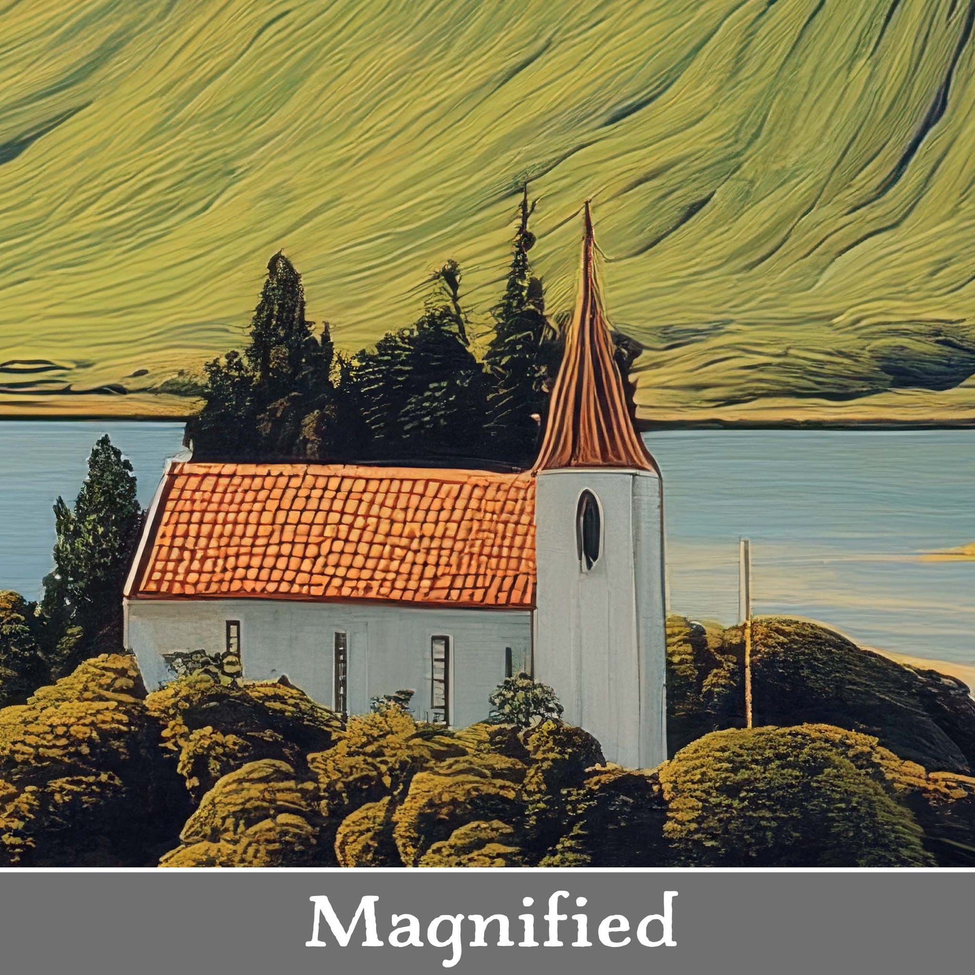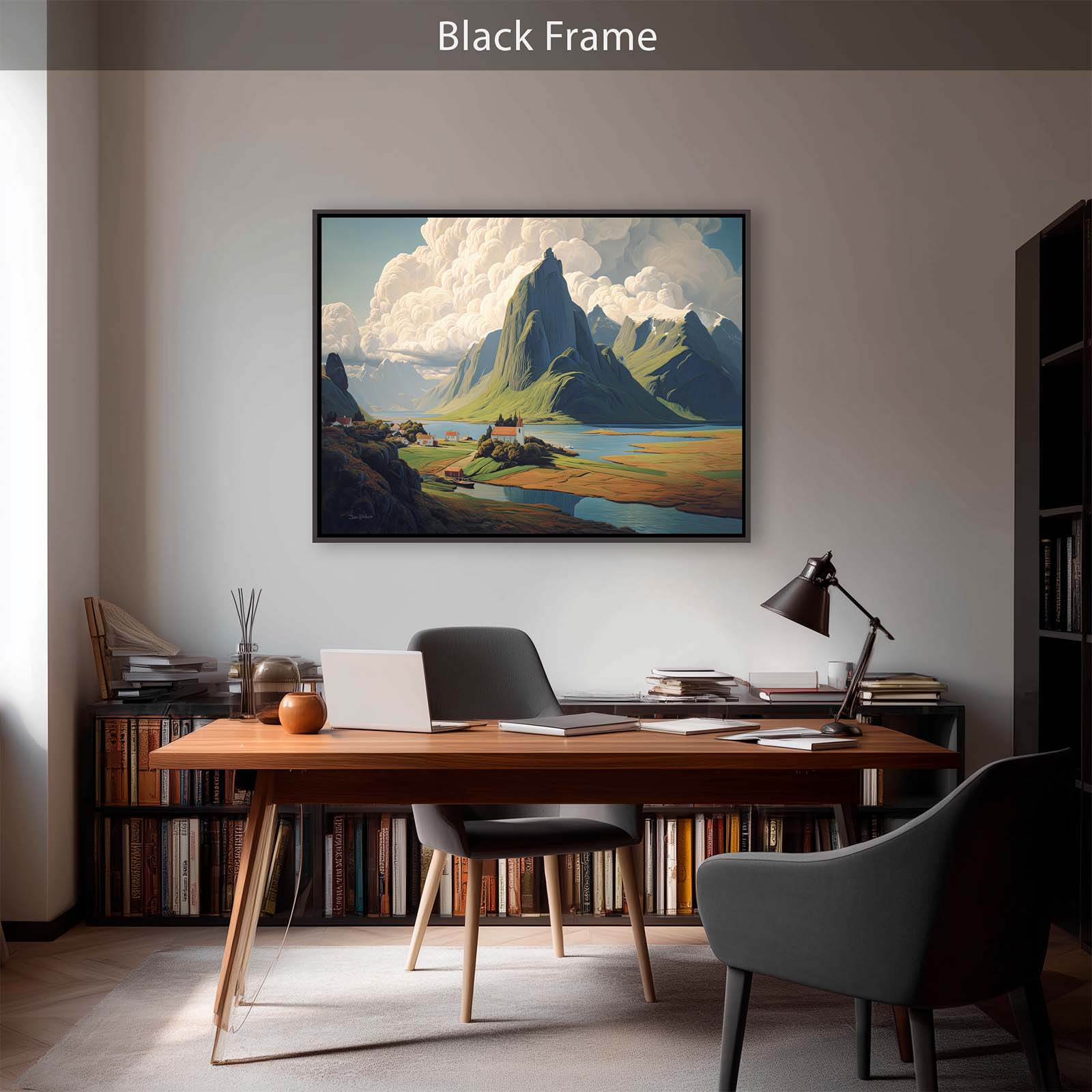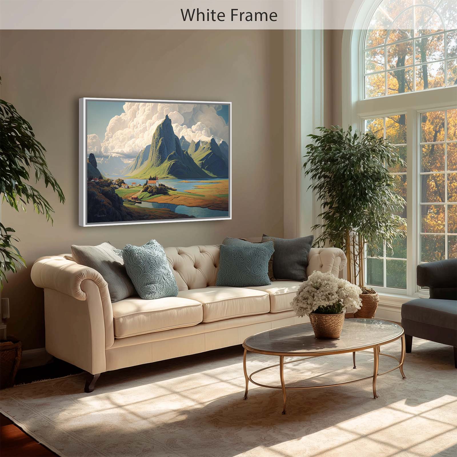 Bring serene beauty and charm to your space with this canvas print. A church nestled in a Scandinavian fjord is captured on a beautiful day, evoking tranquility, cultural elegance, and the majesty of nature. Printed on premium giclée canvas, it adds sophistication, visual interest, and timeless artistry to any home or office decor.