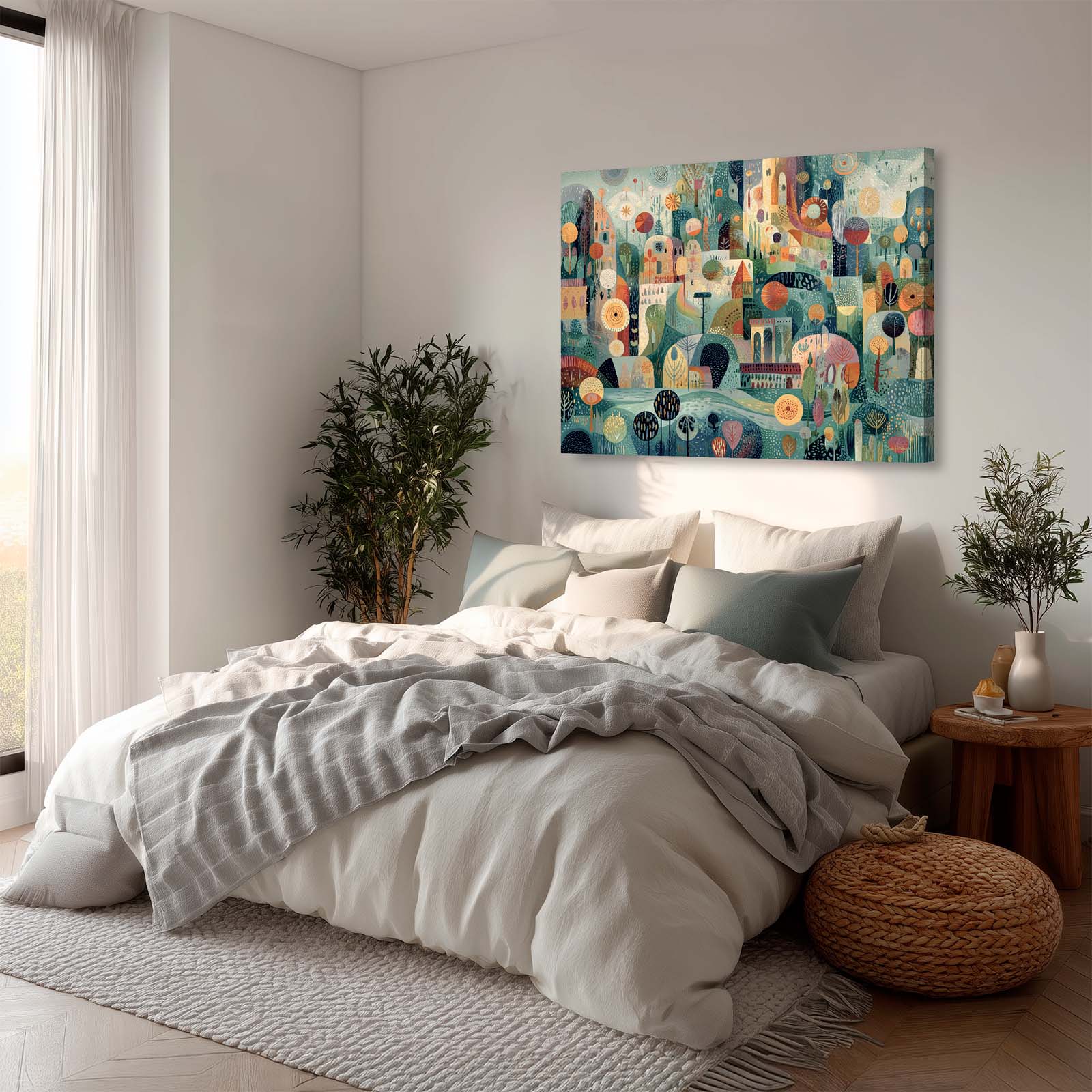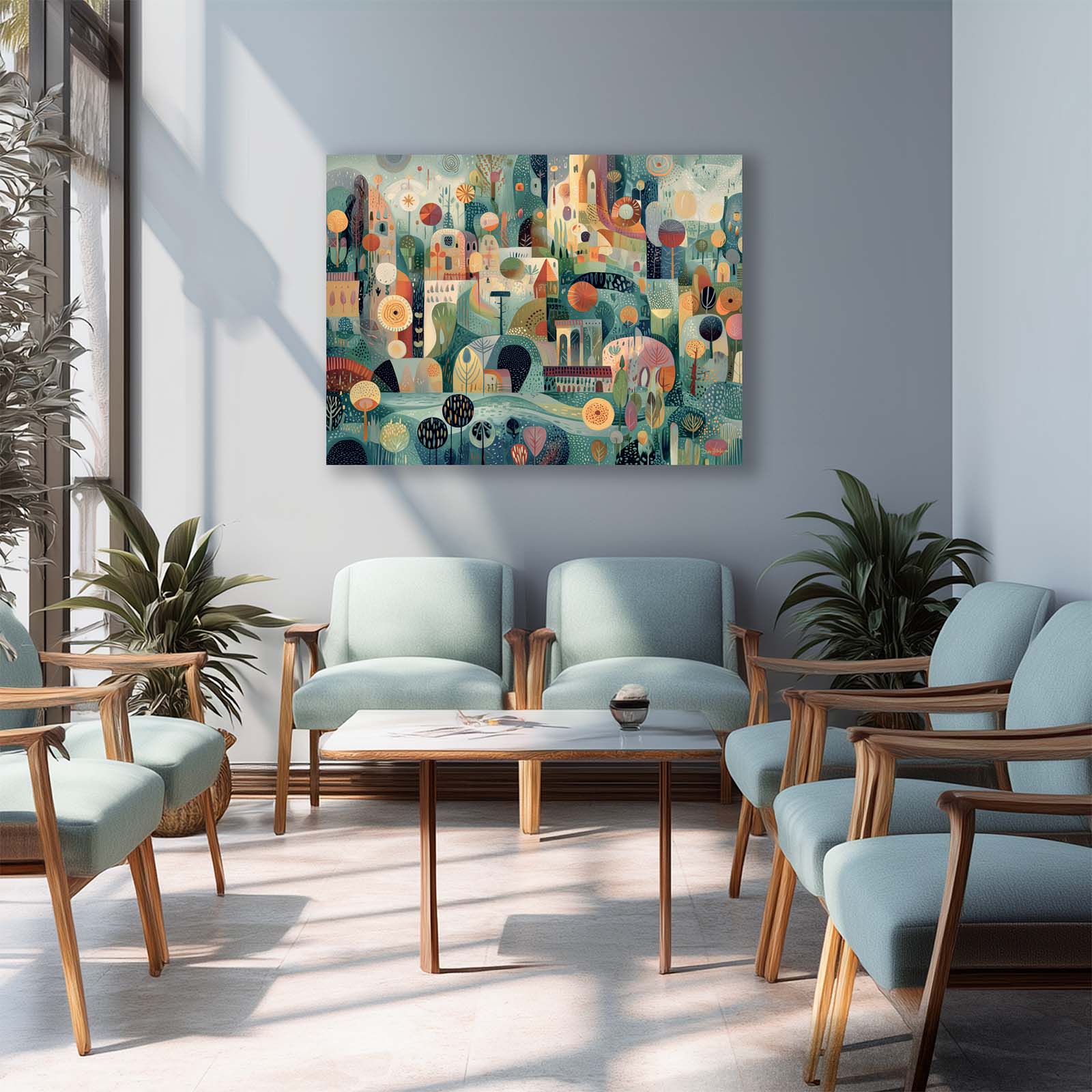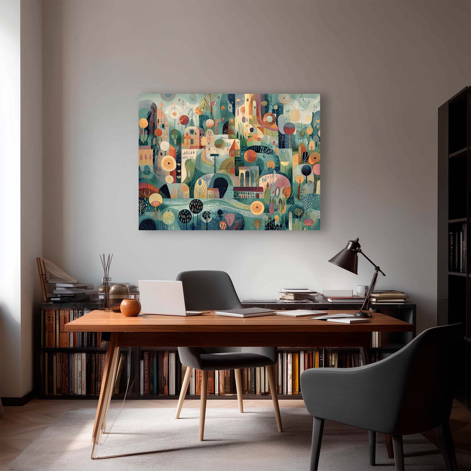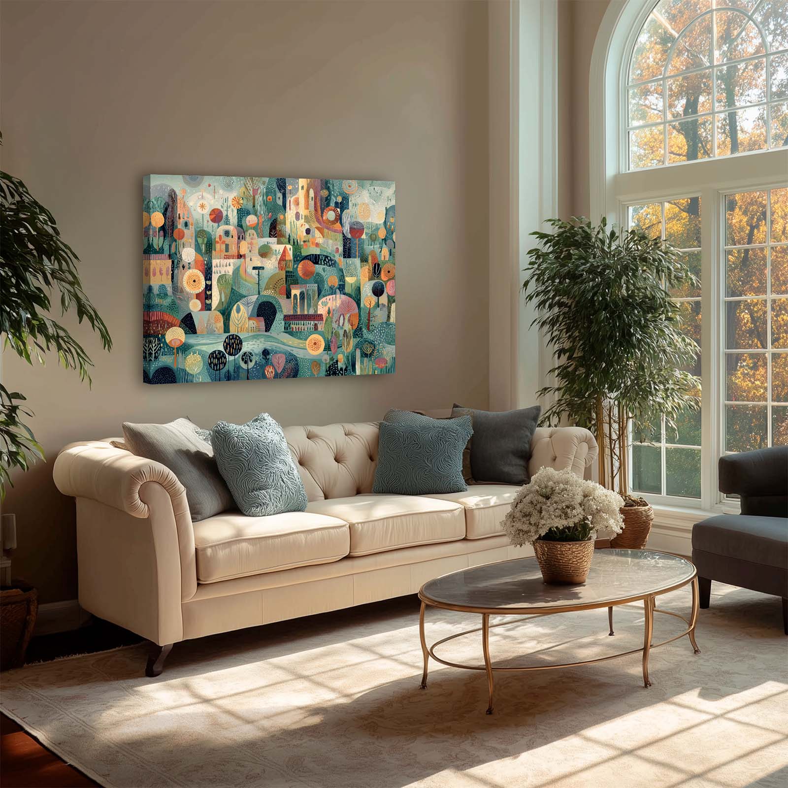 Bring playful charm and vibrant energy to your space with this whimsical canvas print. A town dotted with lollipop-shaped trees is rendered in a lively, expressionistic style, adding color, delight, and visual interest to any room. Printed on premium giclée canvas, it enhances your home or office with artistic flair and joyful personality.