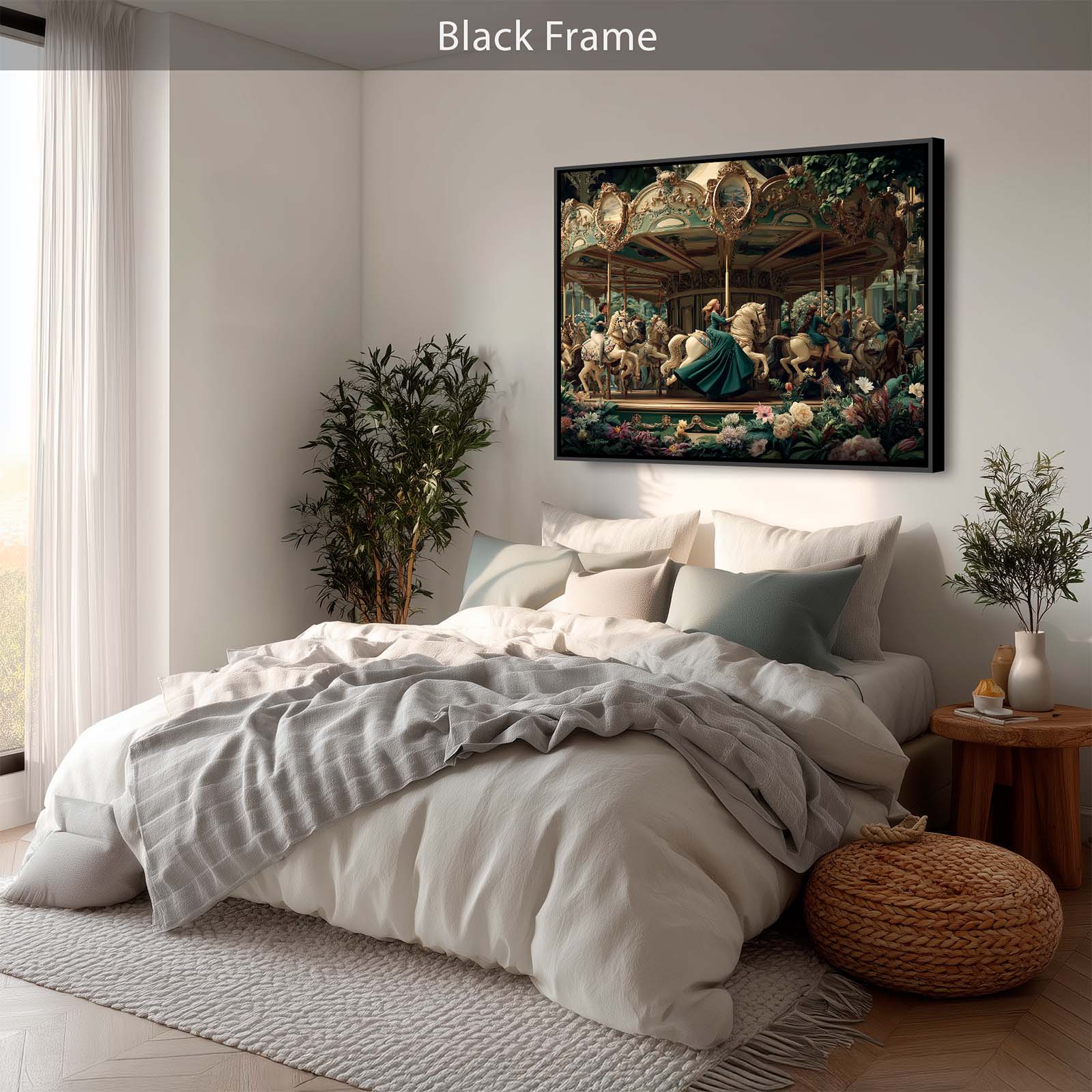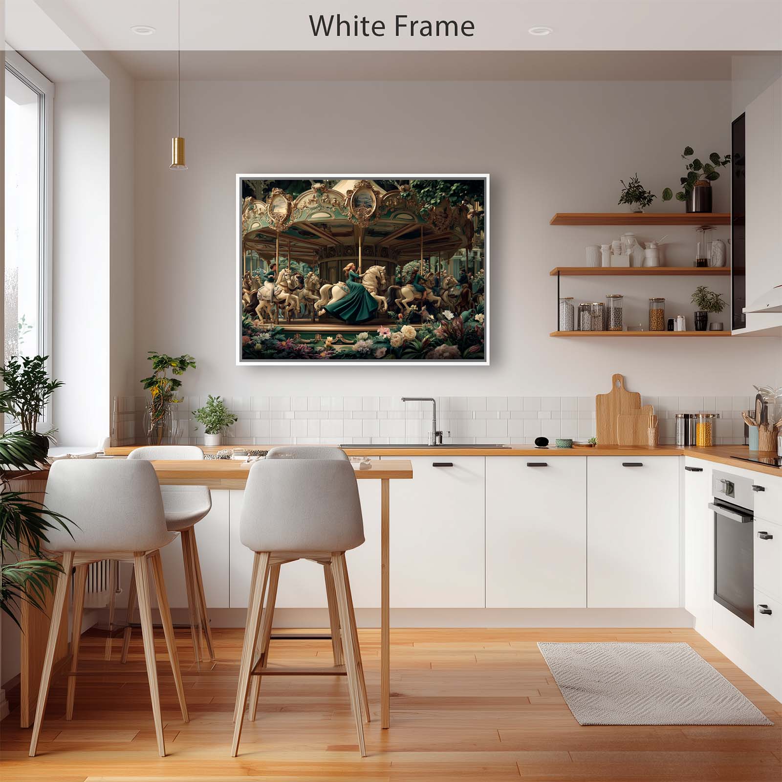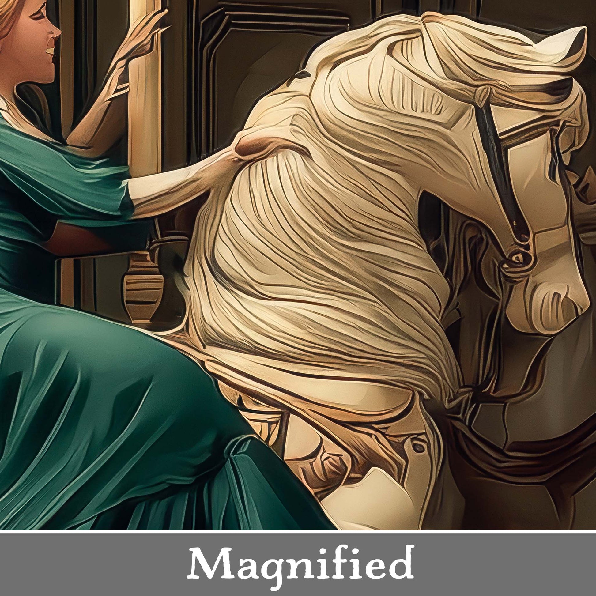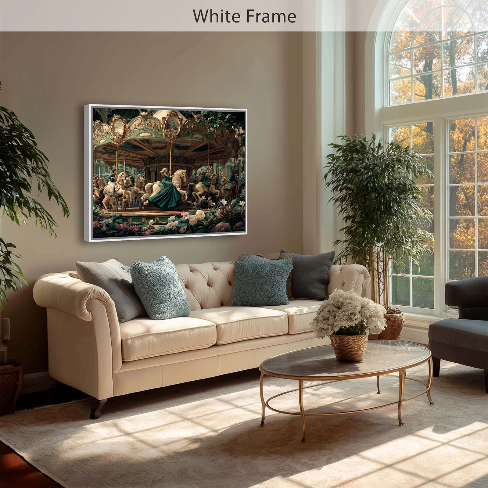 Step back in time with this beautifully romantic stretched-canvas art print. Featuring a young woman riding an elegant, ornate merry-go-round, this image captures grace, nostalgia, and timeless charm. Rendered in a realistic, romantic style, it adds warmth and refinement to any room. Perfect for classic, vintage, or eclectic interiors, this premium giclée print brings a touch of old-world beauty to your home or office décor.