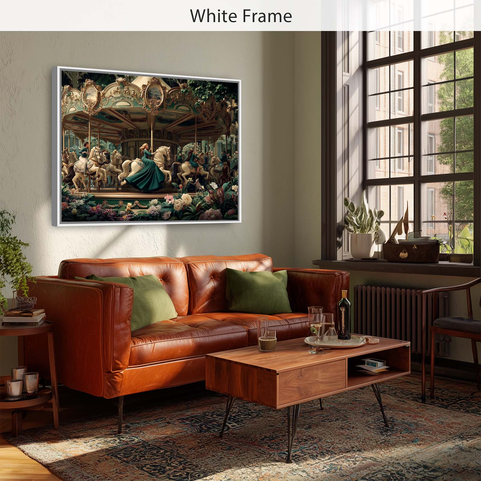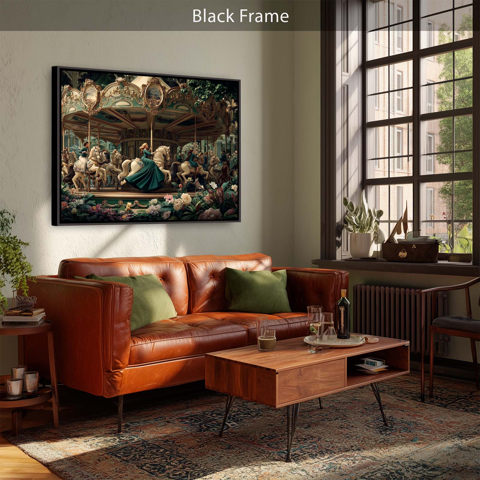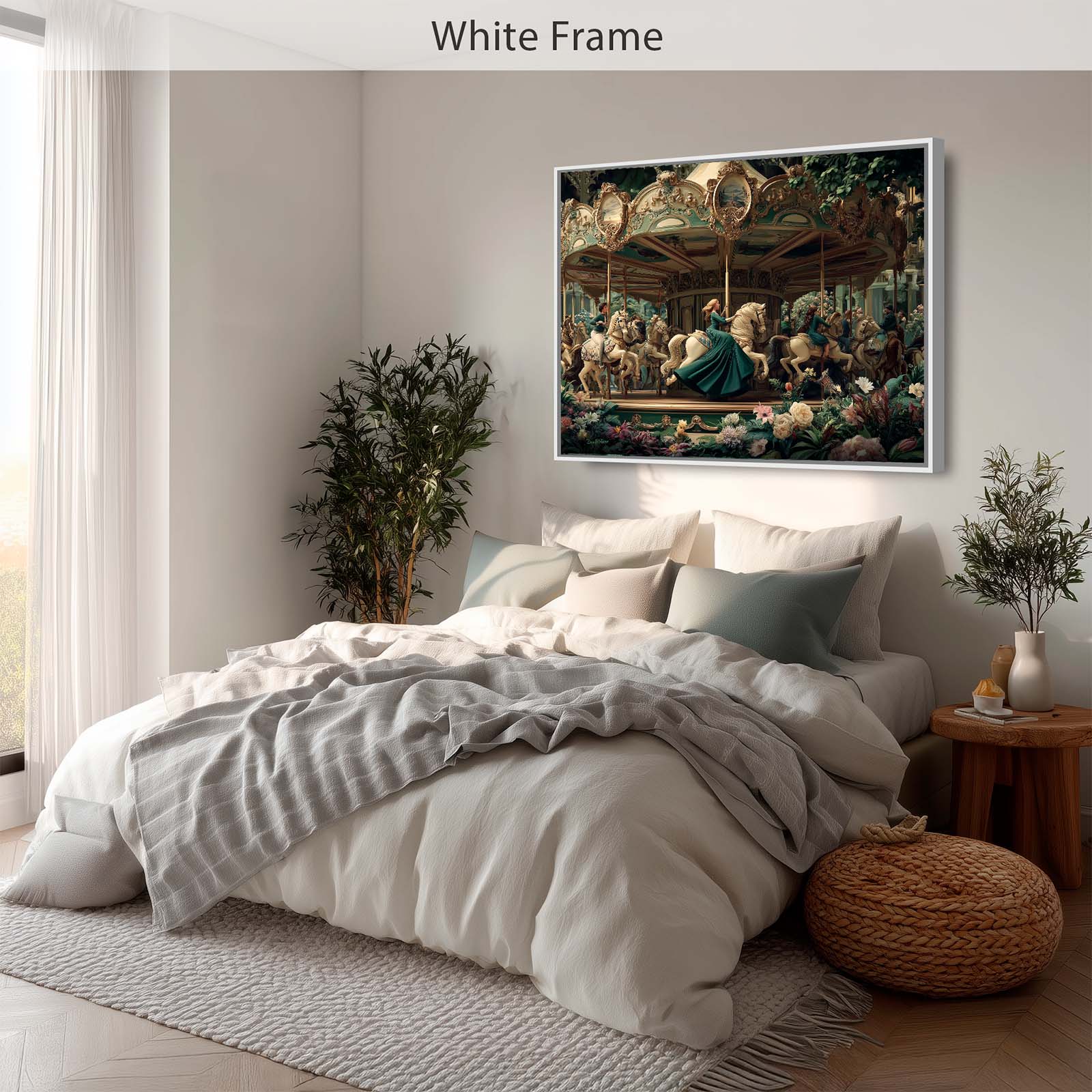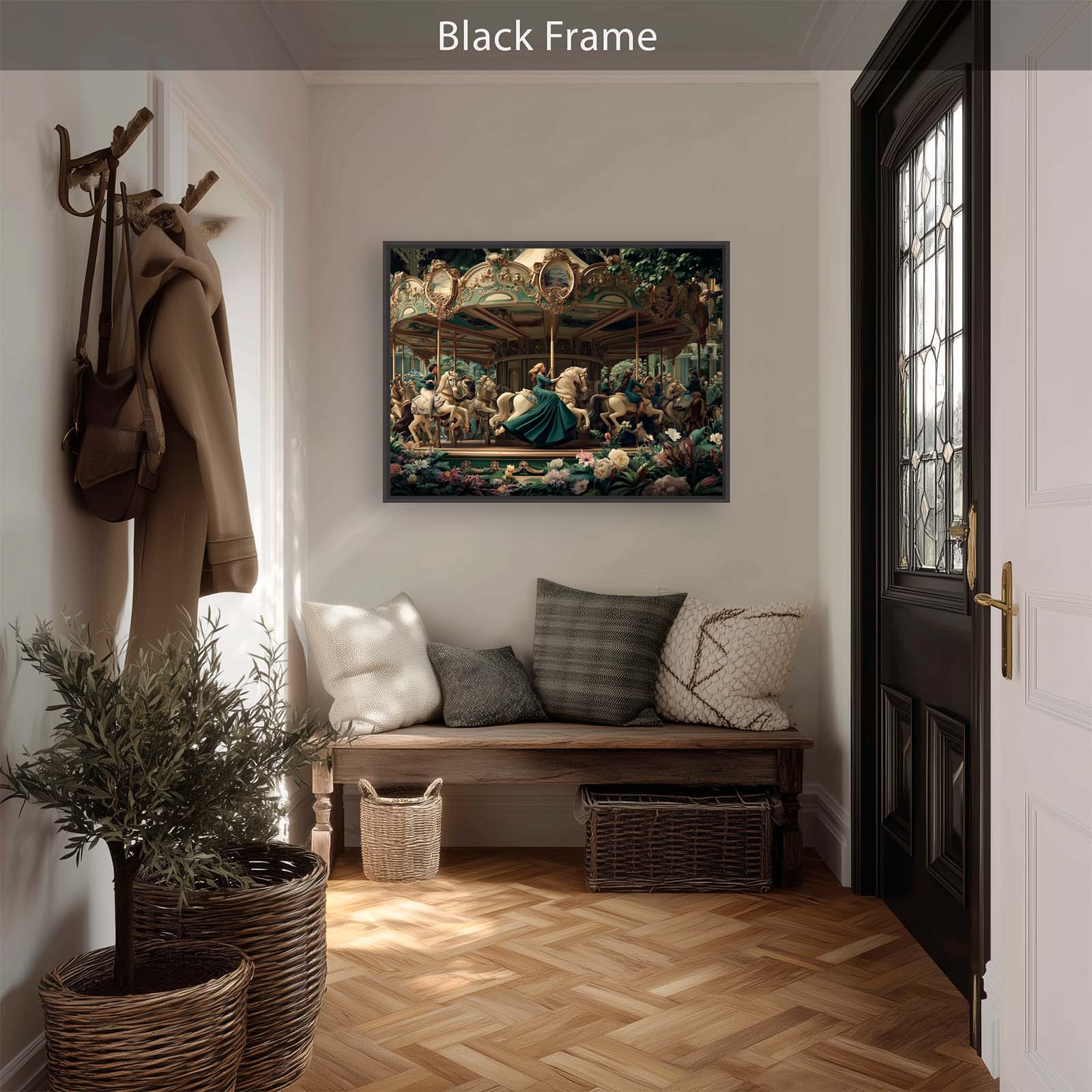 Step back in time with this beautifully romantic stretched-canvas art print. Featuring a young woman riding an elegant, ornate merry-go-round, this image captures grace, nostalgia, and timeless charm. Rendered in a realistic, romantic style, it adds warmth and refinement to any room. Perfect for classic, vintage, or eclectic interiors, this premium giclée print brings a touch of old-world beauty to your home or office décor.