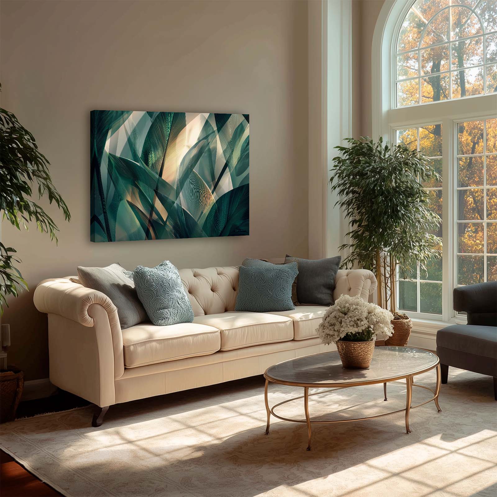 Bring tropical elegance and artistic flair to your space with this stretched-canvas art print. Featuring palm leaves rendered in a semi-abstract, decorative style, this piece combines natural beauty with sophisticated design. Printed on premium giclée canvas, it adds texture, color, and visual interest to any home or office décor, enhancing walls with contemporary charm and understated sophistication.