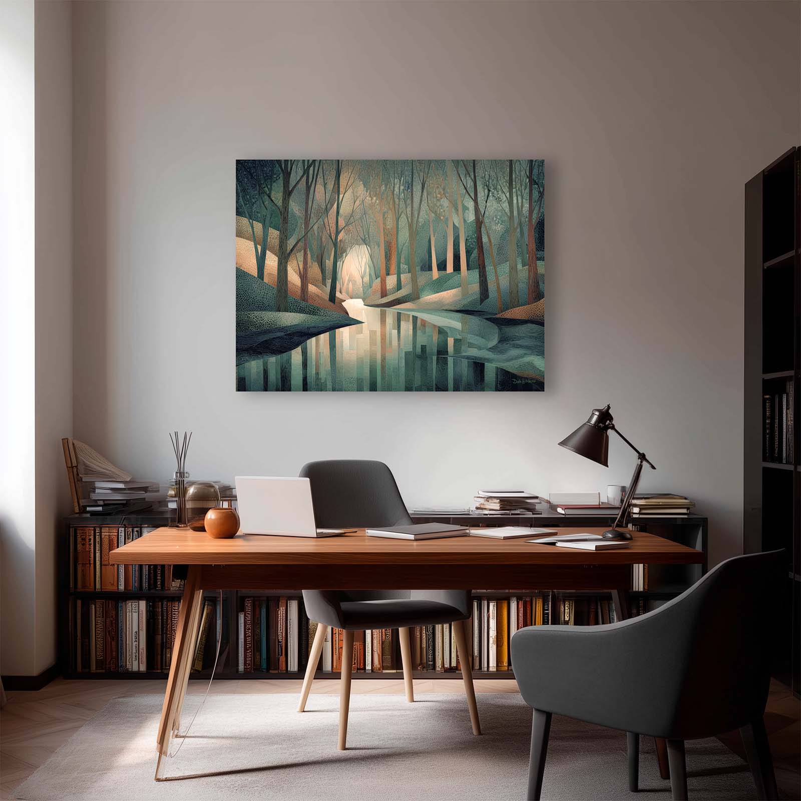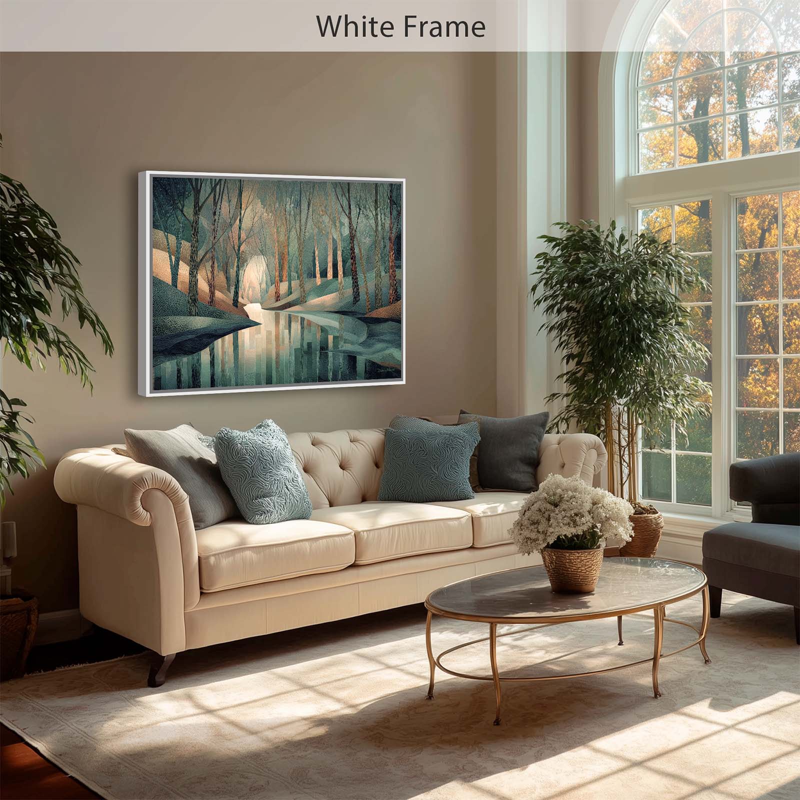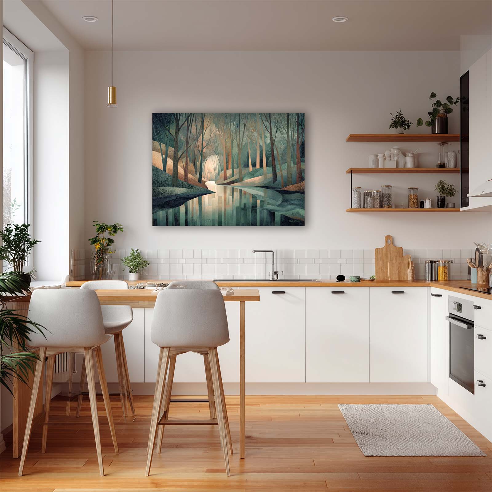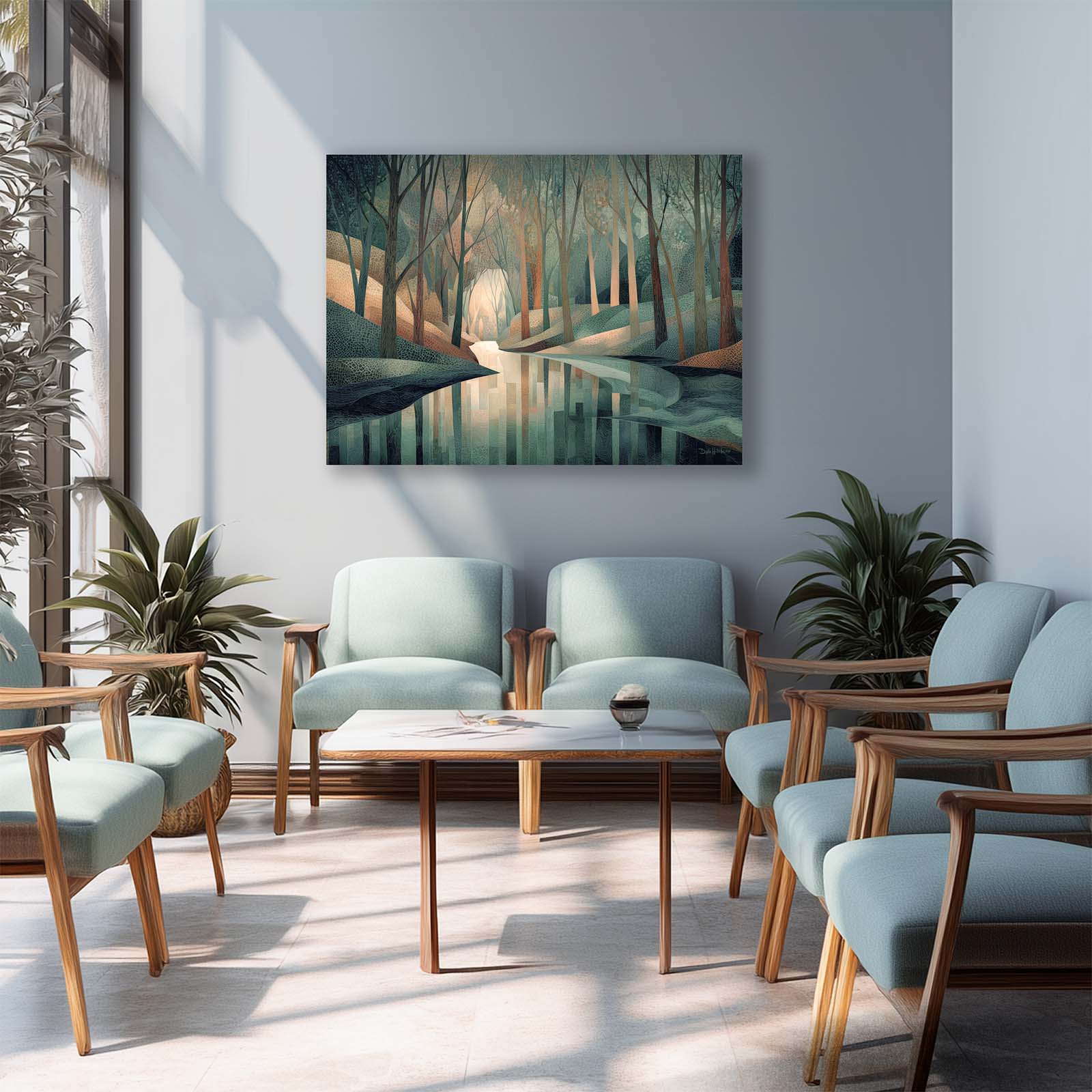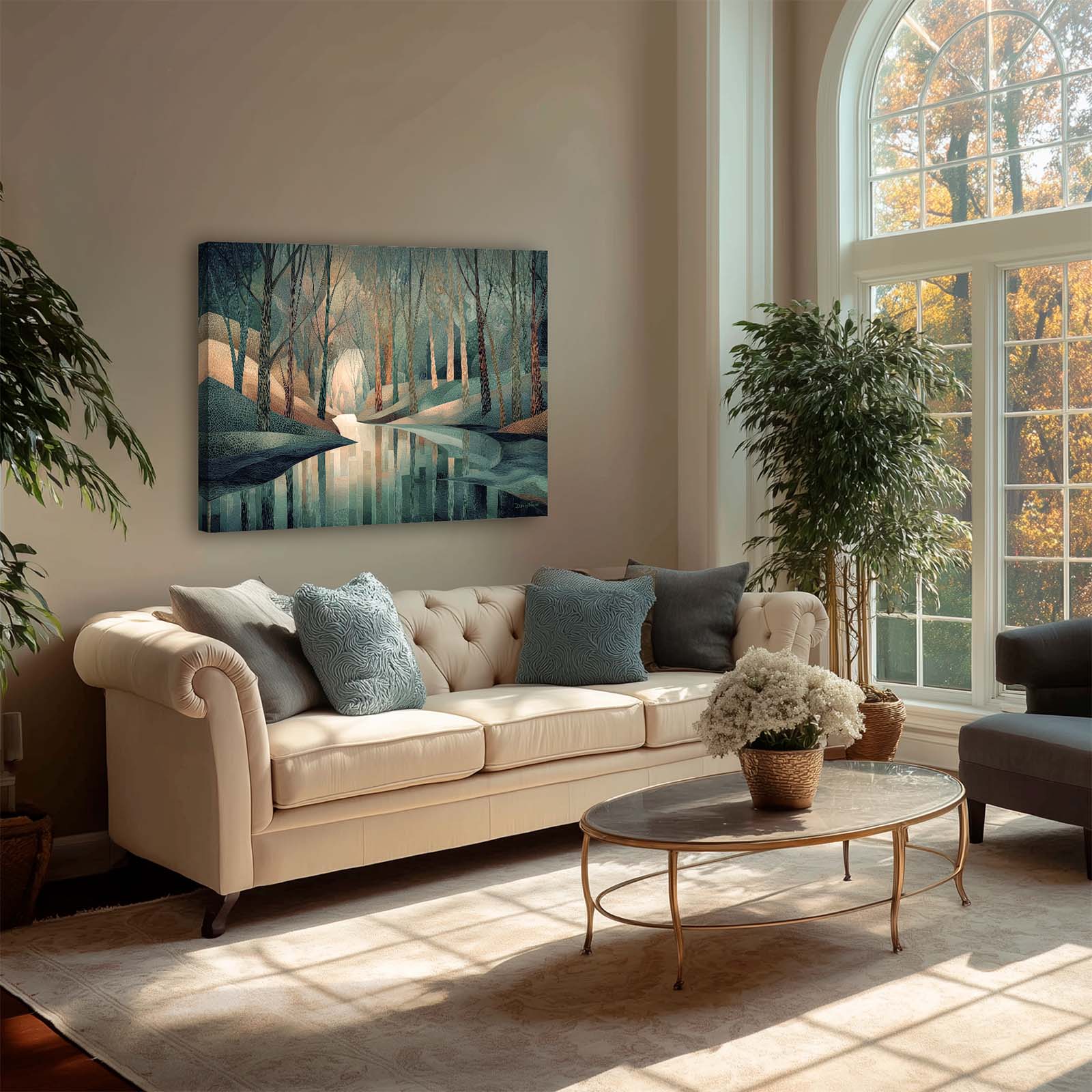 Bring tranquility and artistic charm to your space with this stretched-canvas art print. Featuring a peaceful park stream rendered in a mosaic illustration style, it combines natural serenity with decorative flair. Printed on premium giclée canvas, this piece adds texture, visual interest, and timeless elegance to any home or office décor.