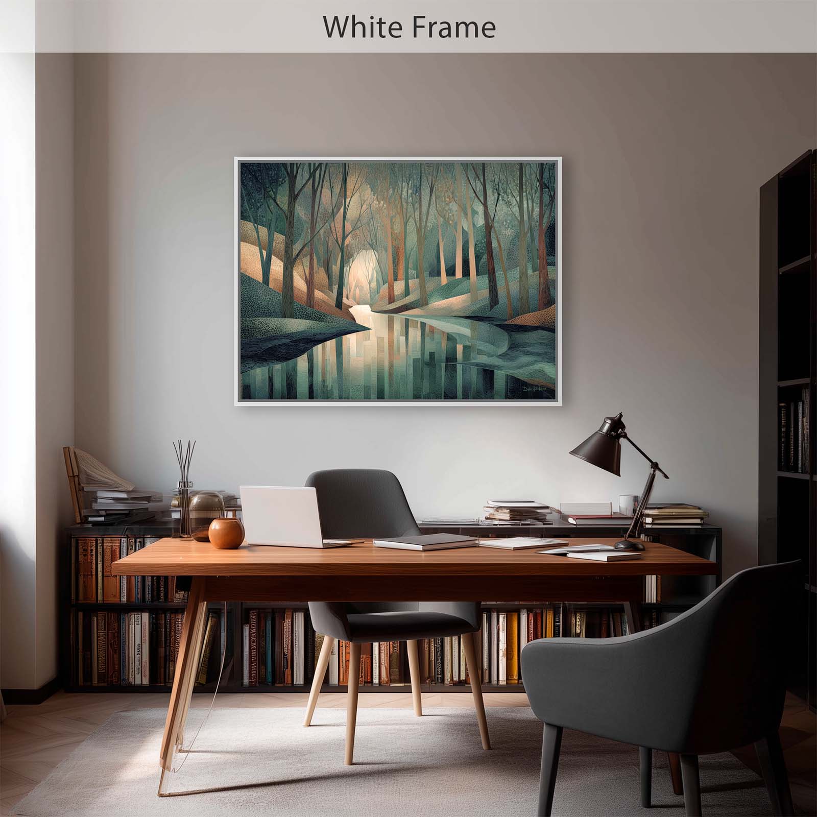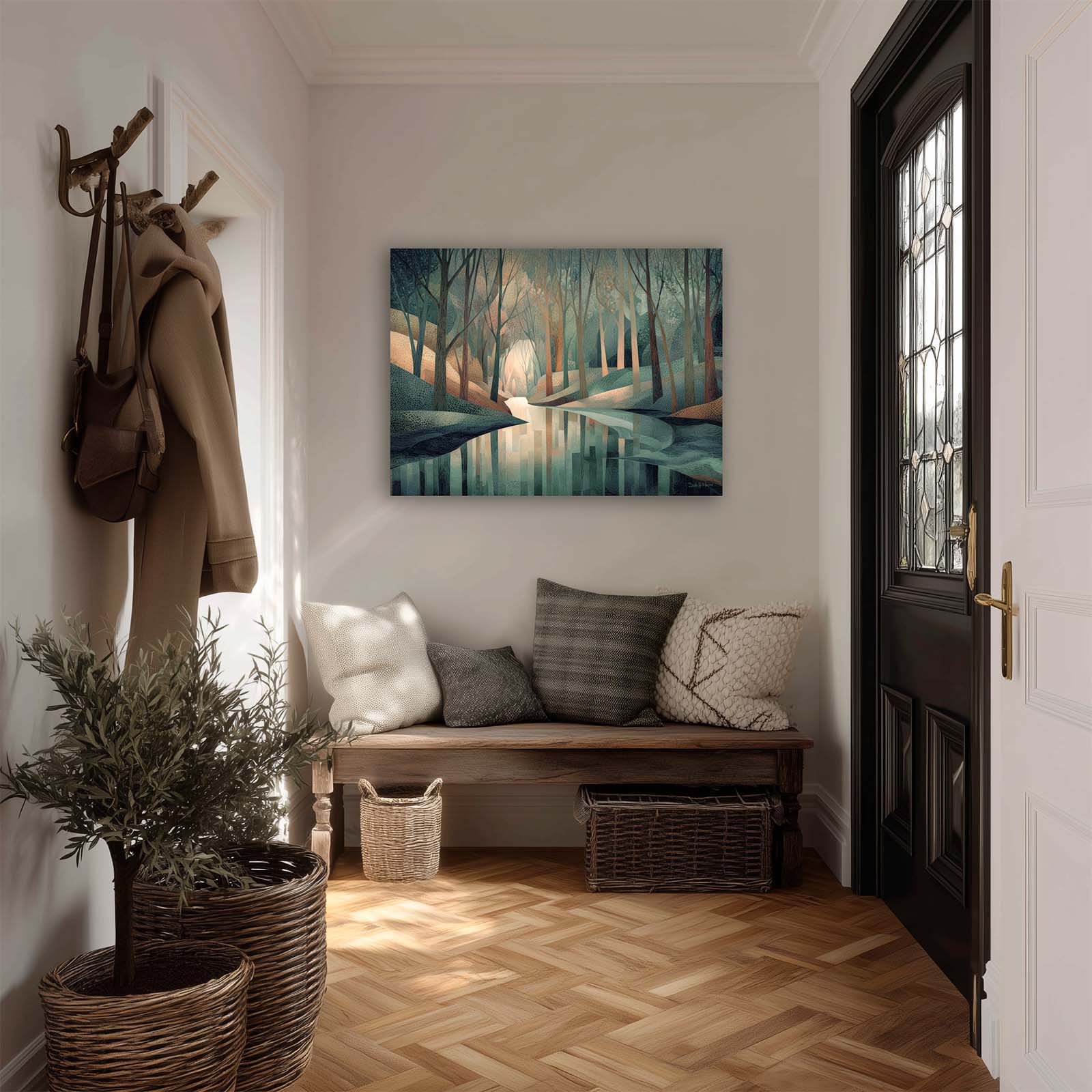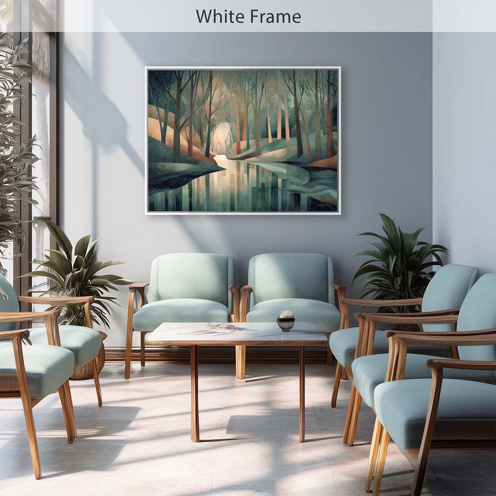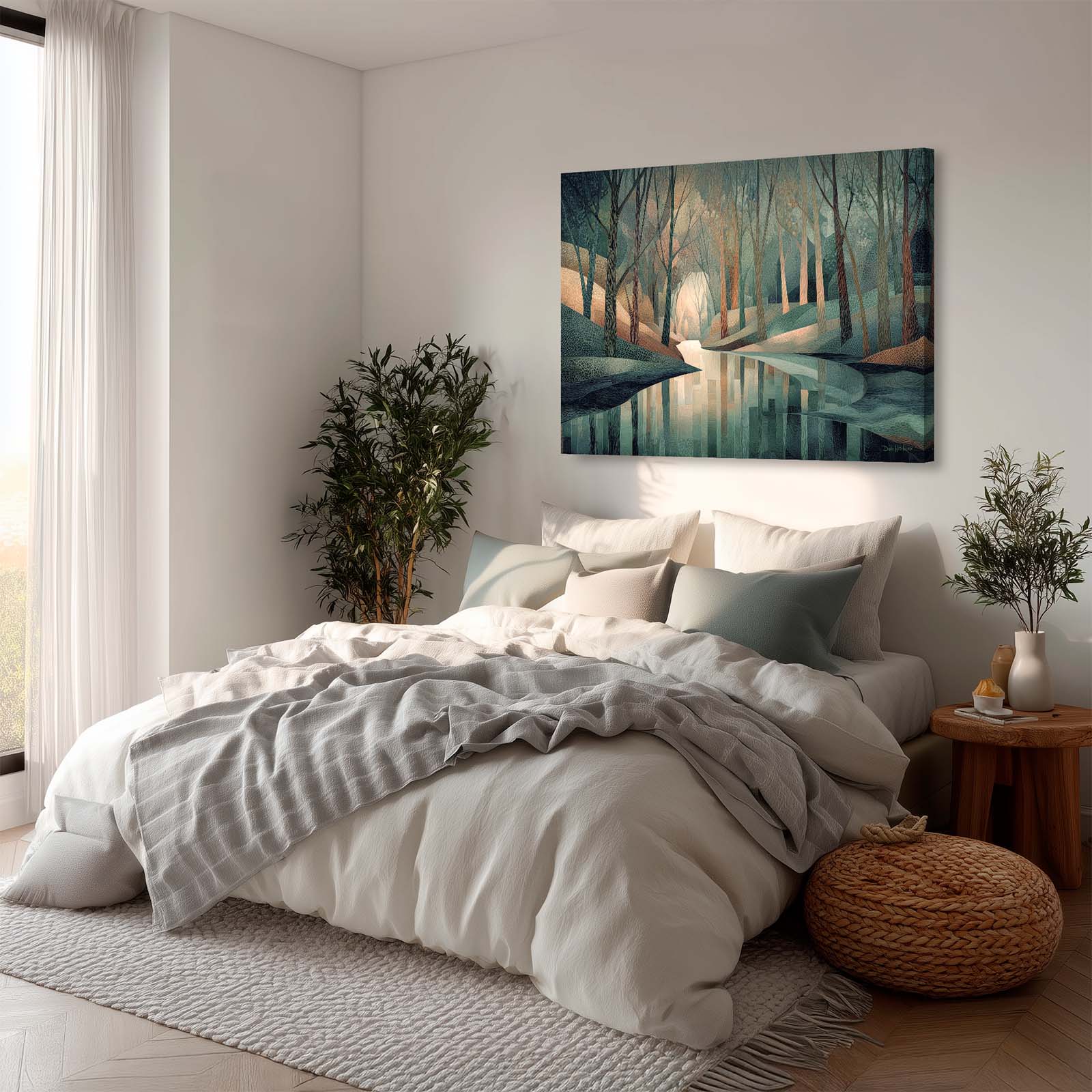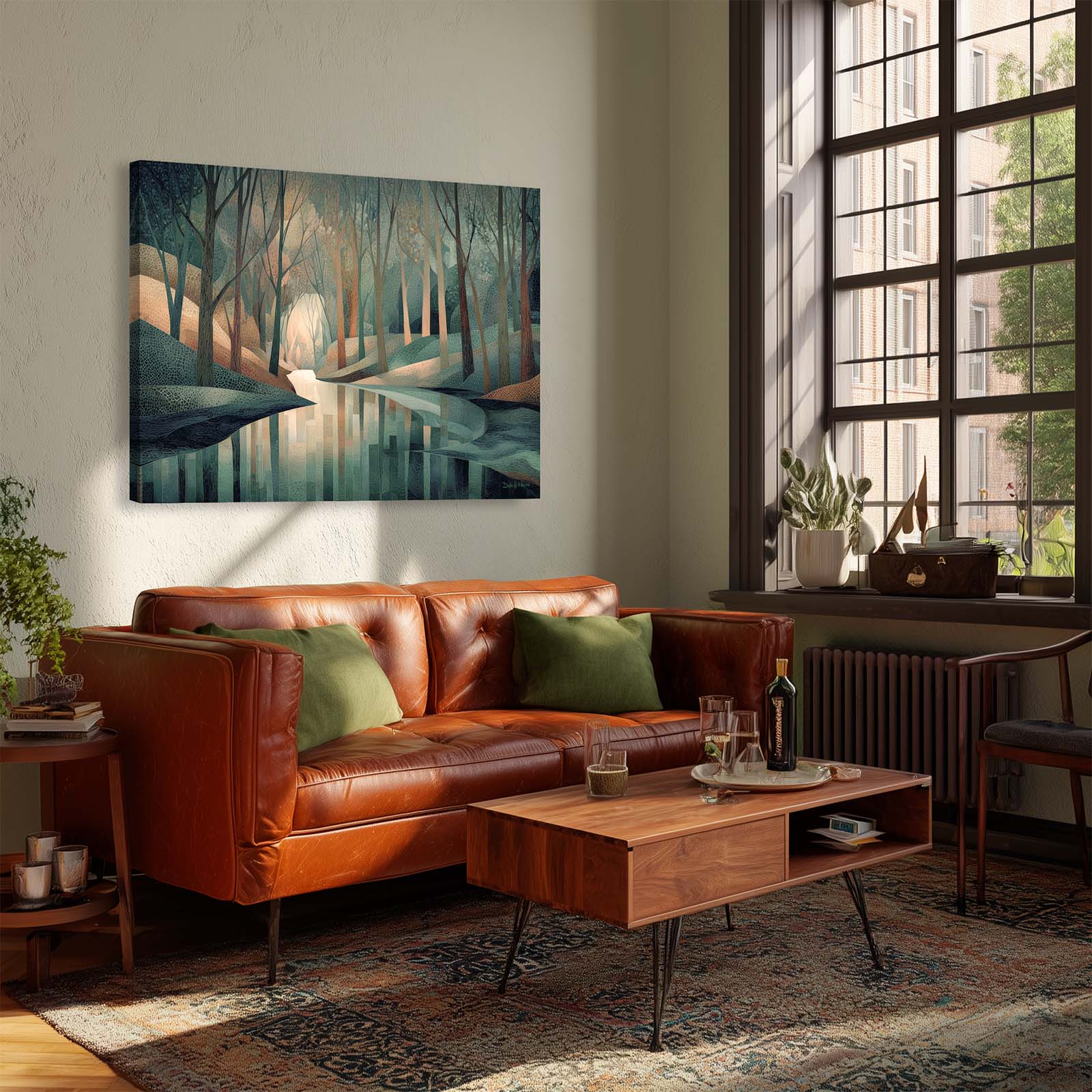 Bring tranquility and artistic charm to your space with this stretched-canvas art print. Featuring a peaceful park stream rendered in a mosaic illustration style, it combines natural serenity with decorative flair. Printed on premium giclée canvas, this piece adds texture, visual interest, and timeless elegance to any home or office décor.