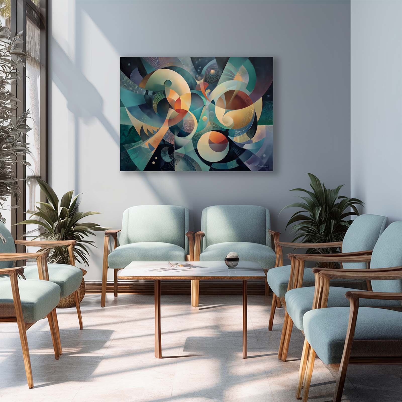 Add vibrant energy and visual intrigue to your space with this stretched-canvas art print. Featuring an explosion of colorful, abstract phantasmagoric forms, it captivates the eye and sparks imagination. Printed on premium giclée canvas, this piece brings bold color, dynamic movement, and contemporary flair to any home or office décor.