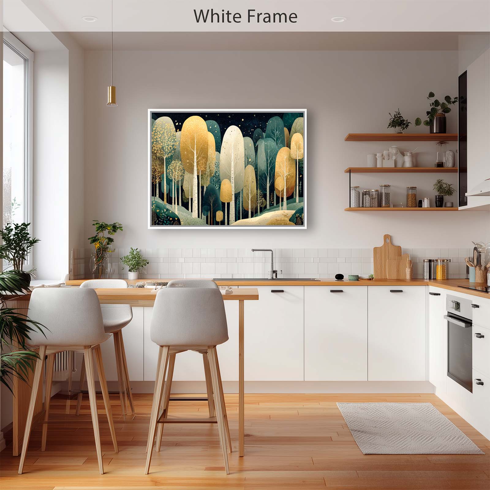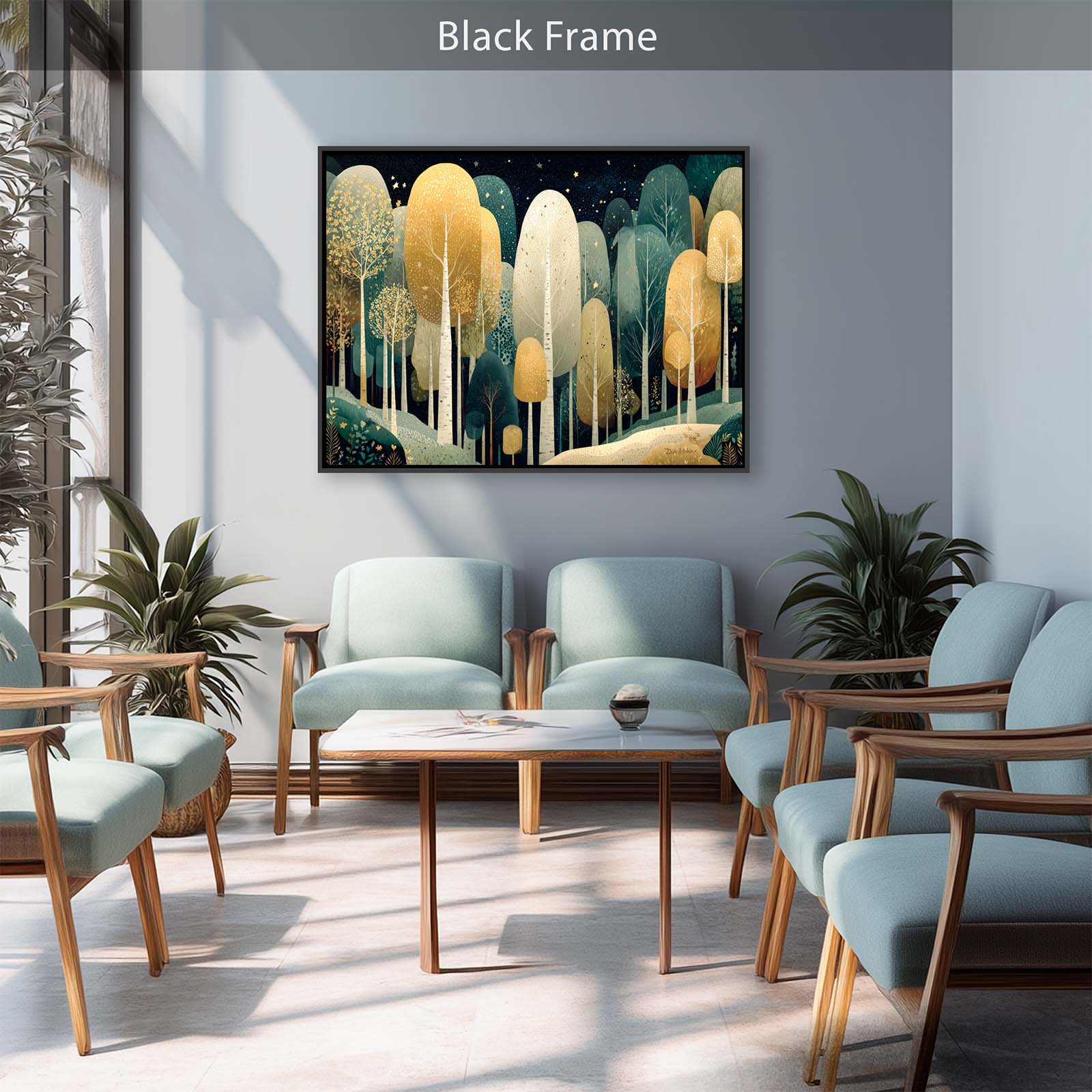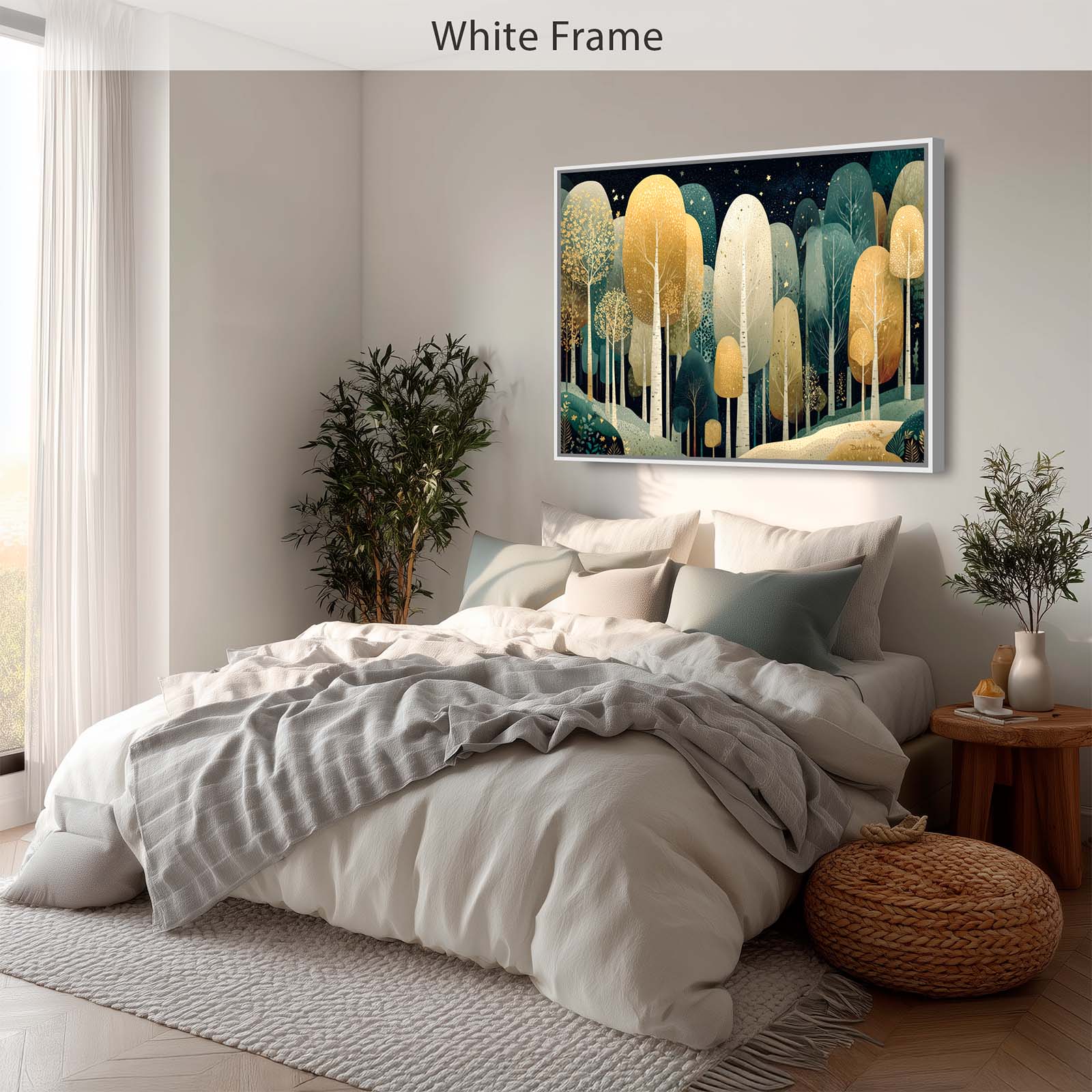 A forest bathed in starlight, where organic geometric forms weave together in a poetic interplay of light and shadow. The delicate, harmonious colors lend the scene a gentle glow, while the composition invites you to imagine yourself walking beneath the trees, surrounded by stillness and wonder.