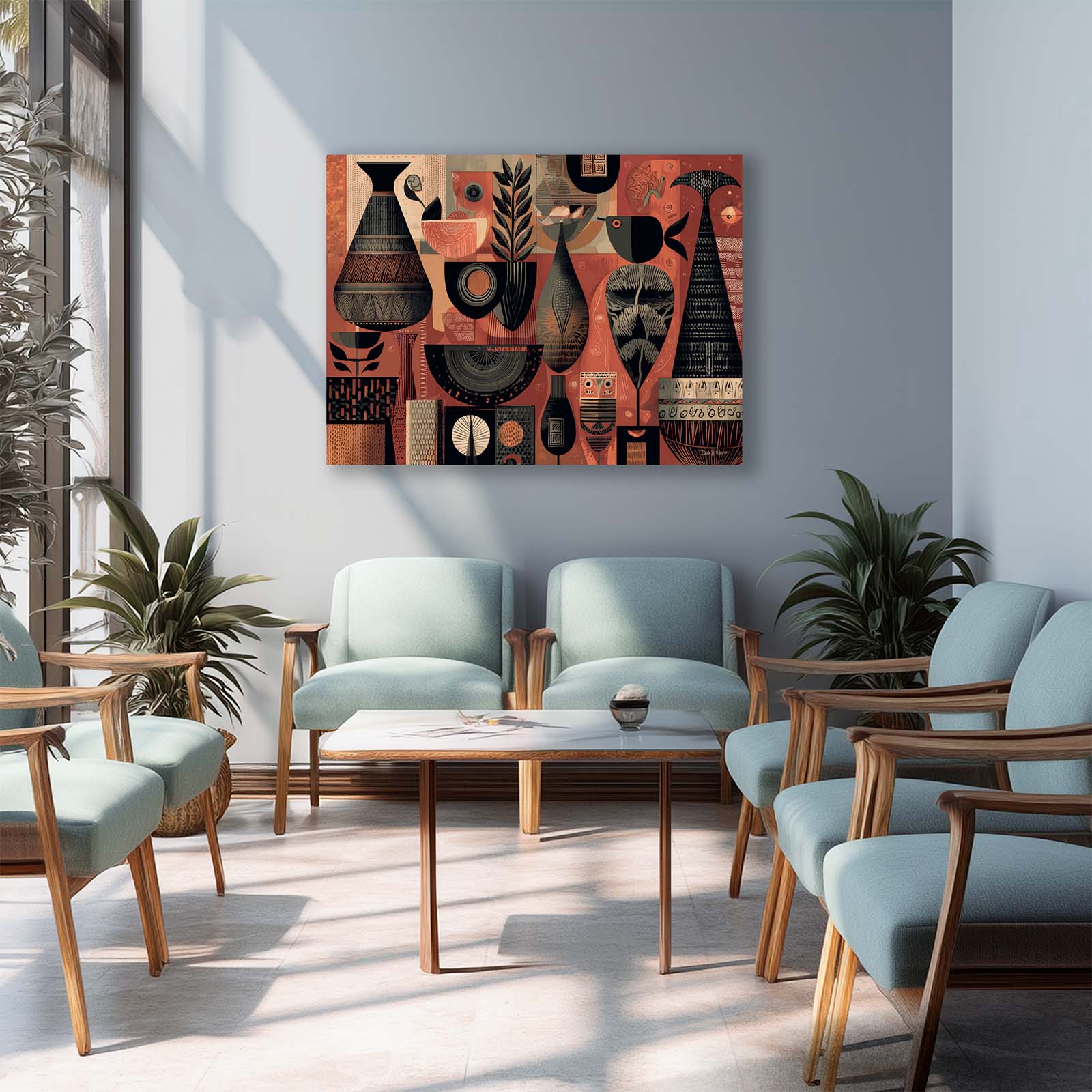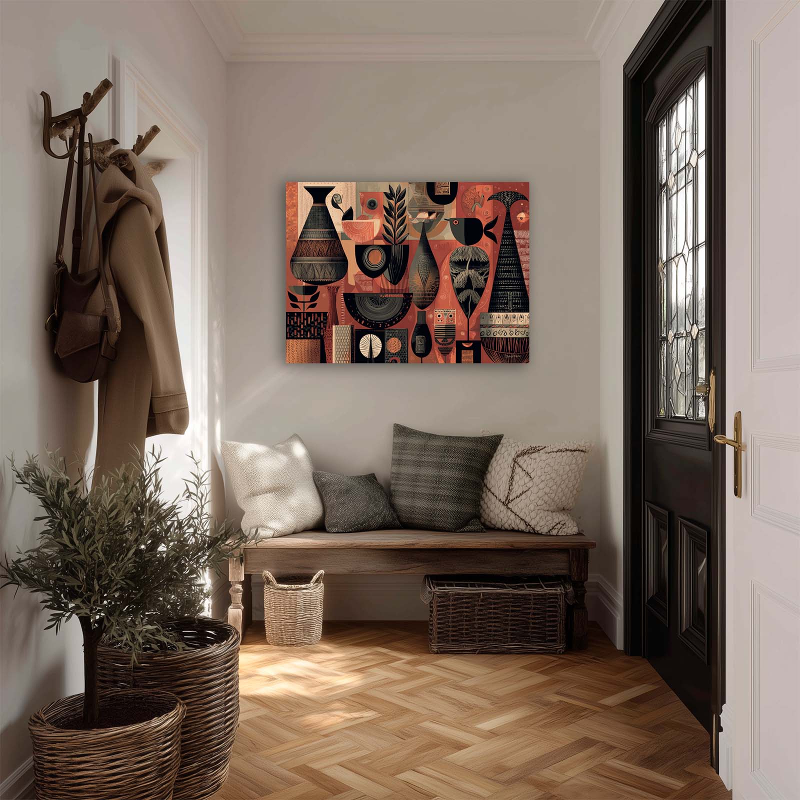 Bring warmth and character to your space with this stretched-canvas art print. Featuring a melange of pots in primitive yet sophisticated shapes with earthy tones, this piece adds organic charm and refined style to any home or office décor. Printed on premium giclée canvas, it complements almost any design aesthetic while enhancing your walls with texture and visual interest.