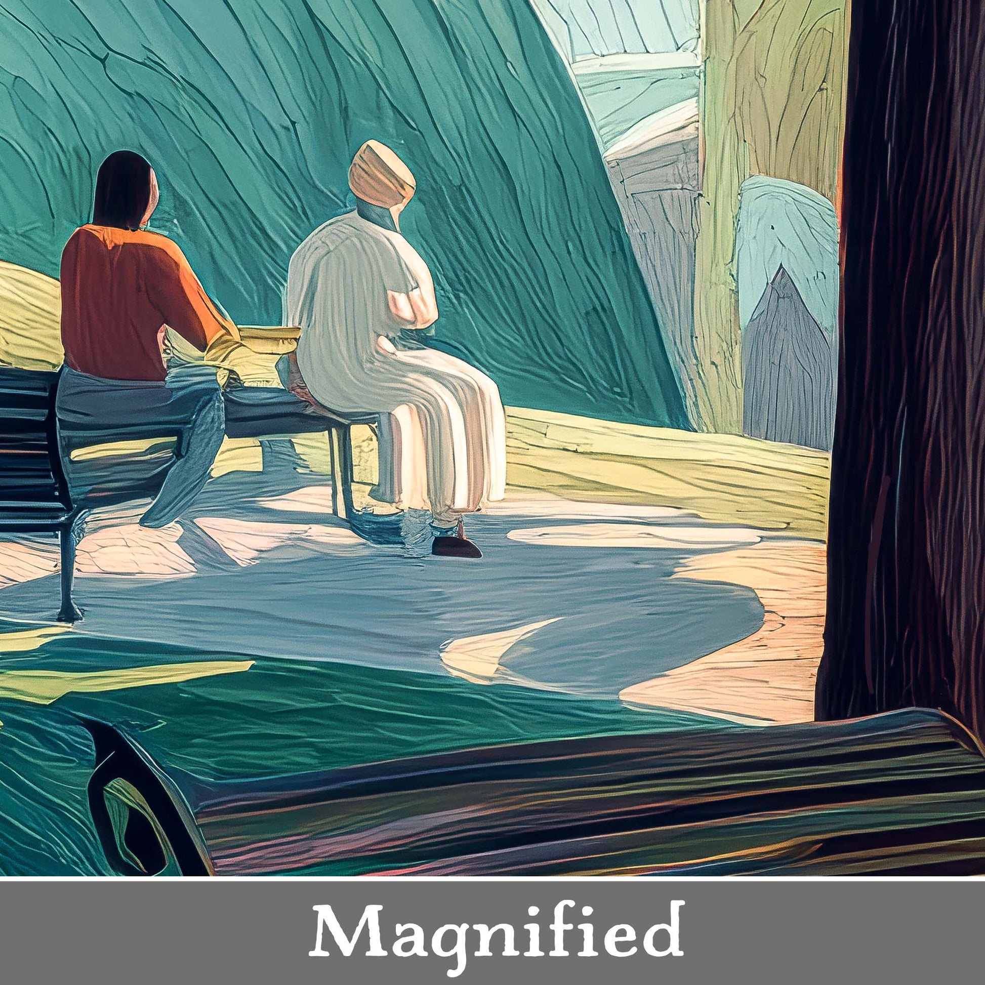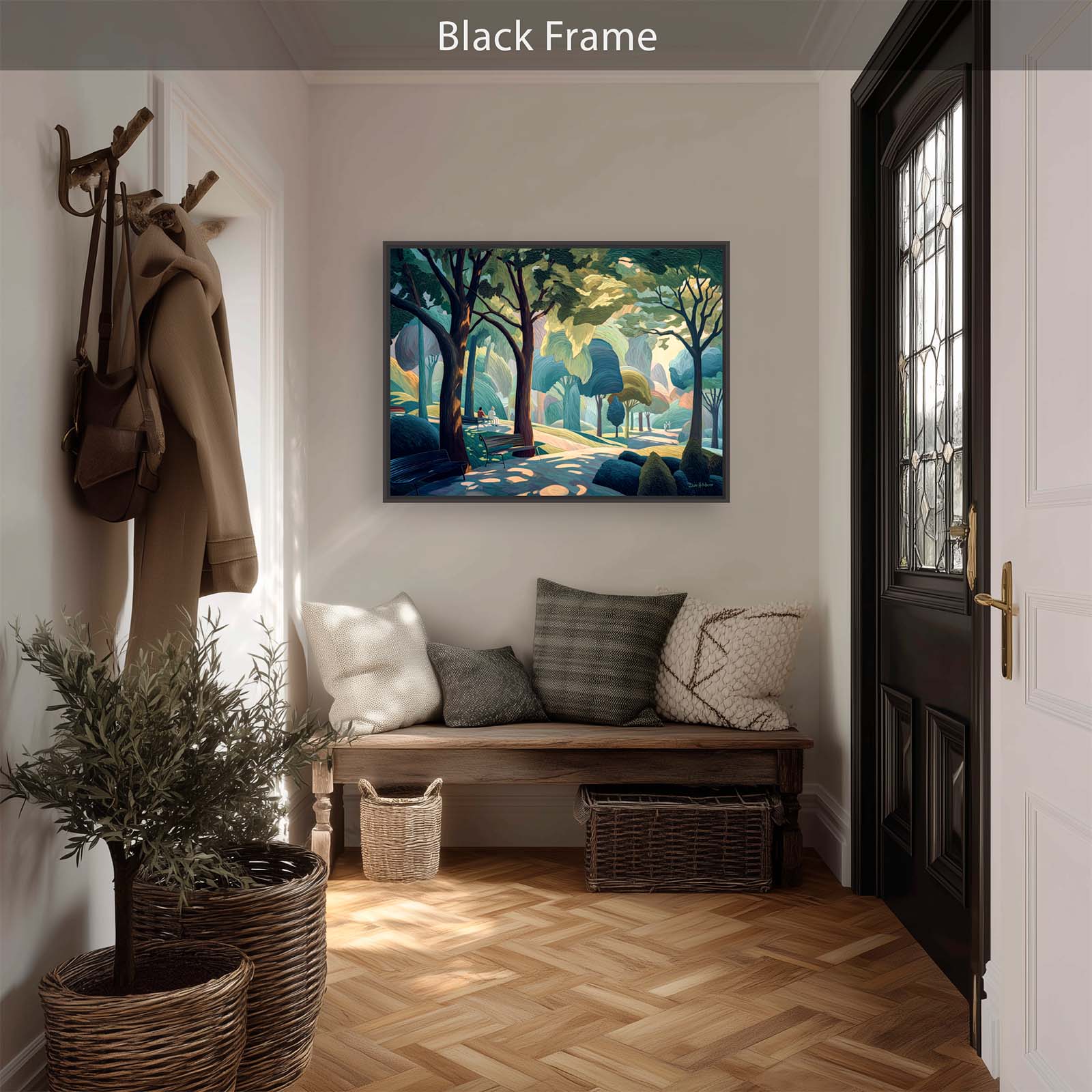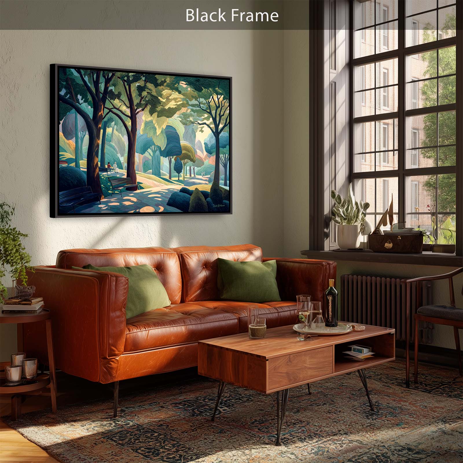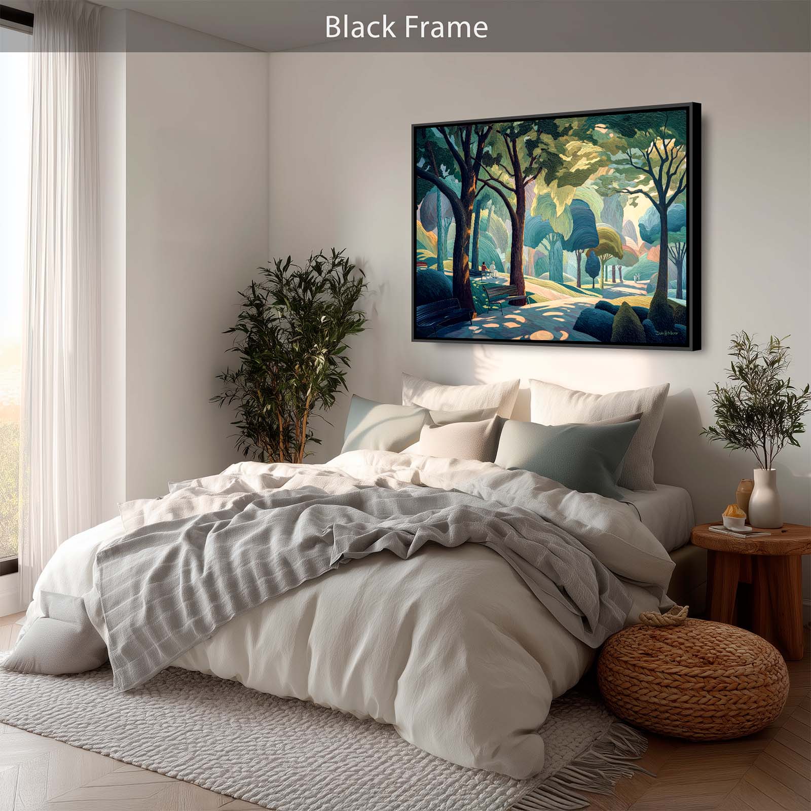 The serene scene captures a sunny day in the park, with winding paths, soft tree forms, and dappled sunlight filtering through the canopy above. Delicate tones and thoughtful composition create an atmosphere that’s both calming and visually engaging—full of delightful shapes and subtle contrasts. It’s a piece that complements almost any interior, from modern minimalism to warm traditional decor.