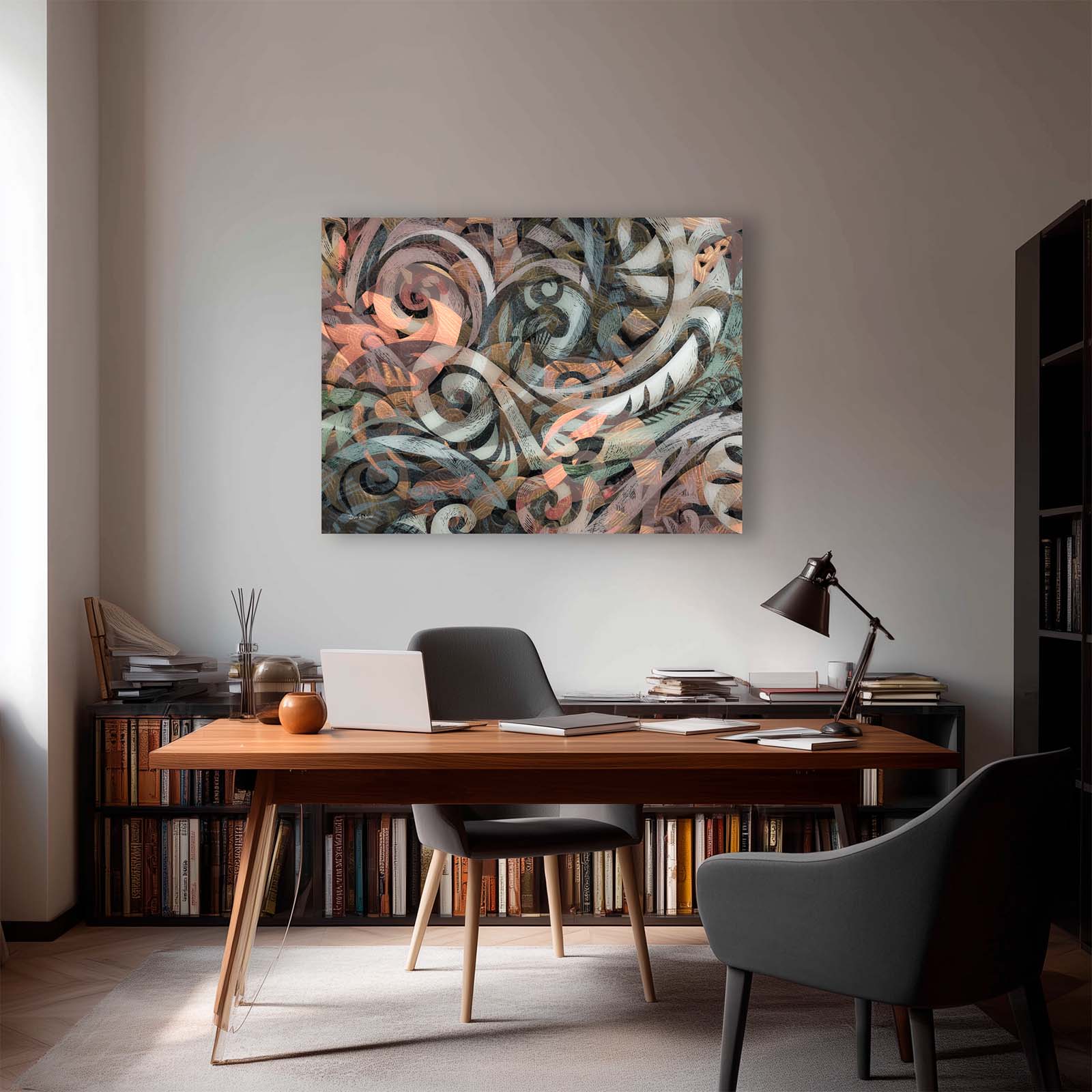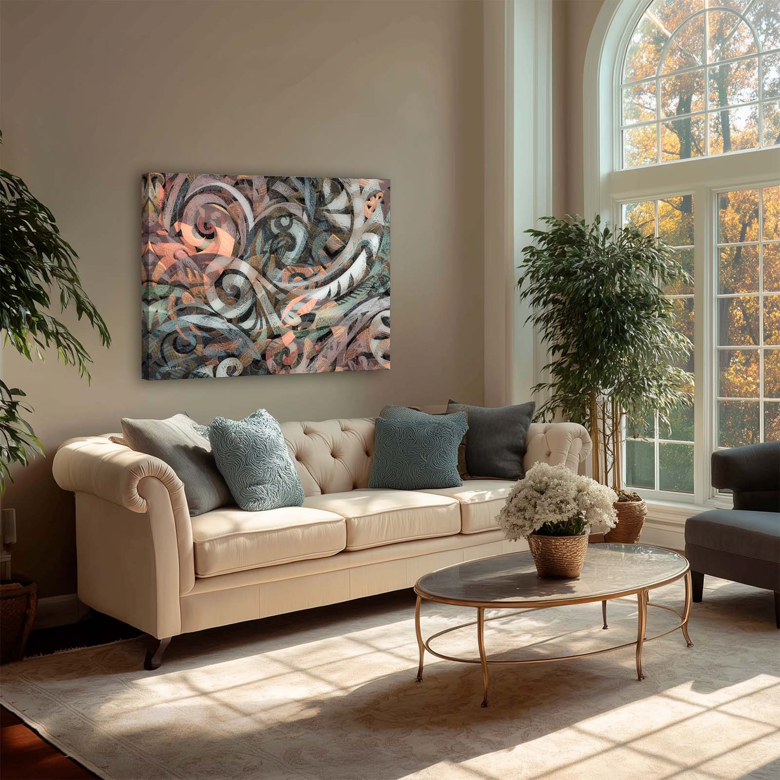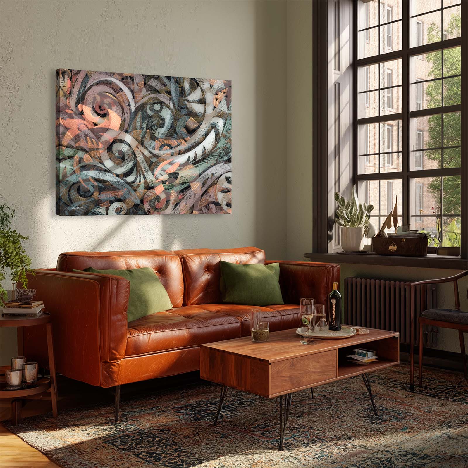 Transform your space with this dynamic yet subtle abstract stretched-canvas art print. Its balanced forms and muted tones add sophisticated interest to any room, seamlessly enhancing home or office decor.