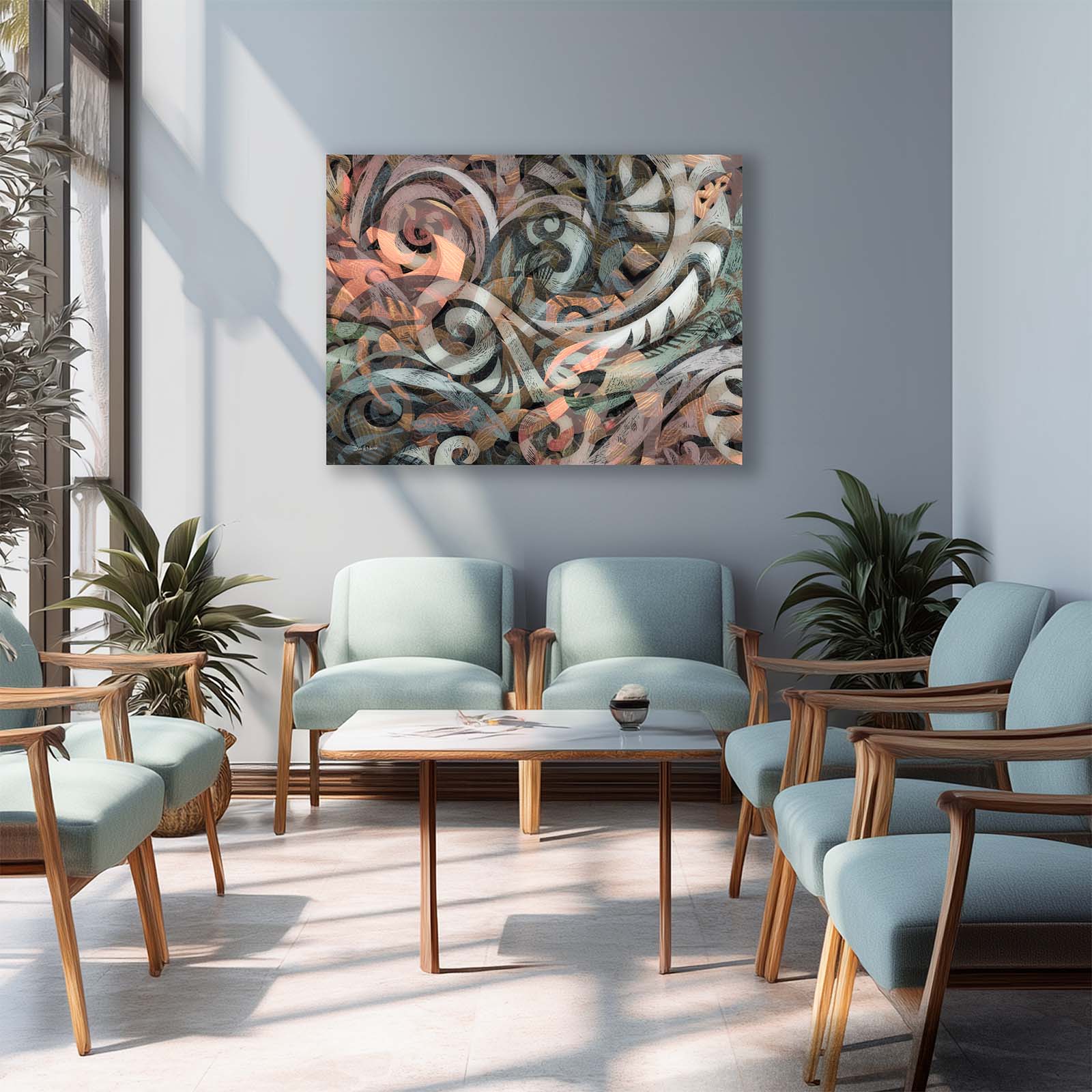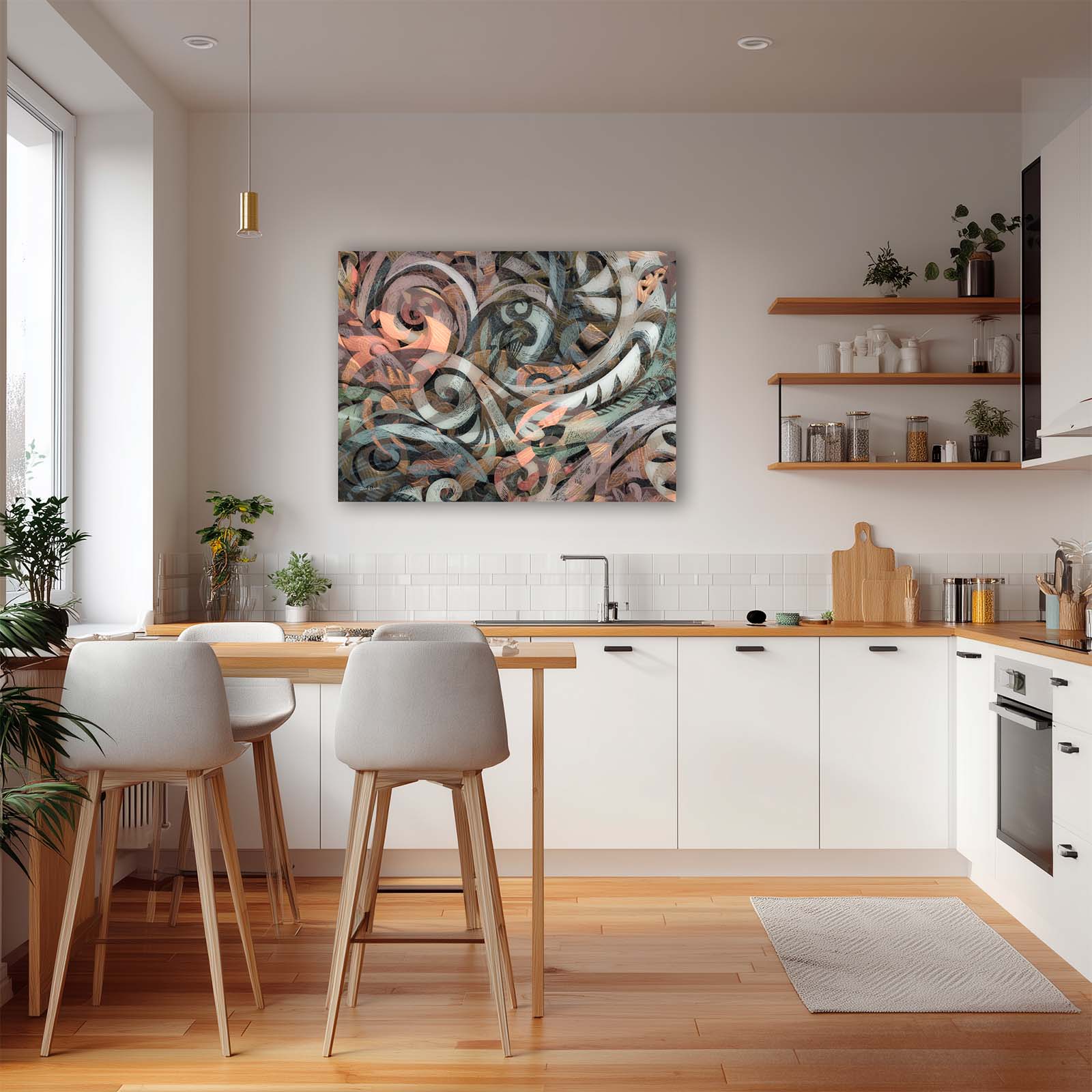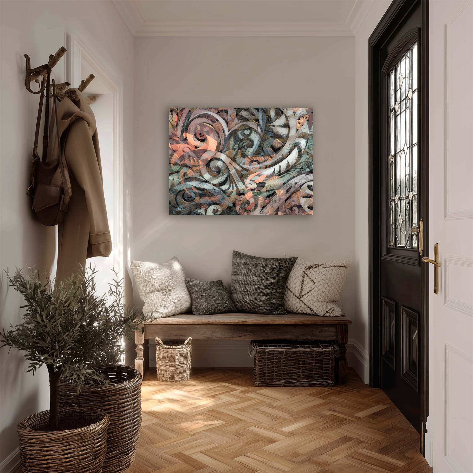 Transform your space with this dynamic yet subtle abstract stretched-canvas art print. Its balanced forms and muted tones add sophisticated interest to any room, seamlessly enhancing home or office decor.