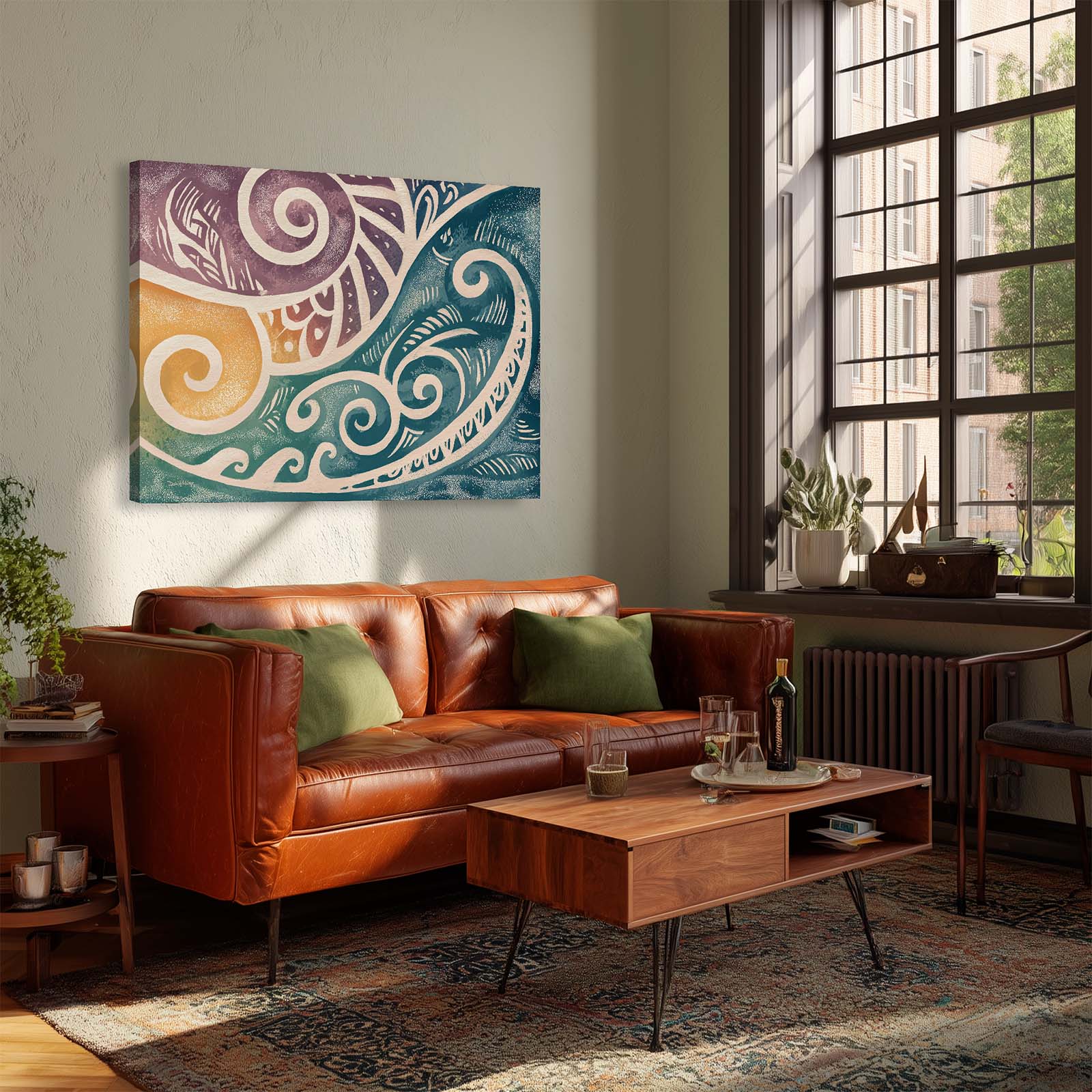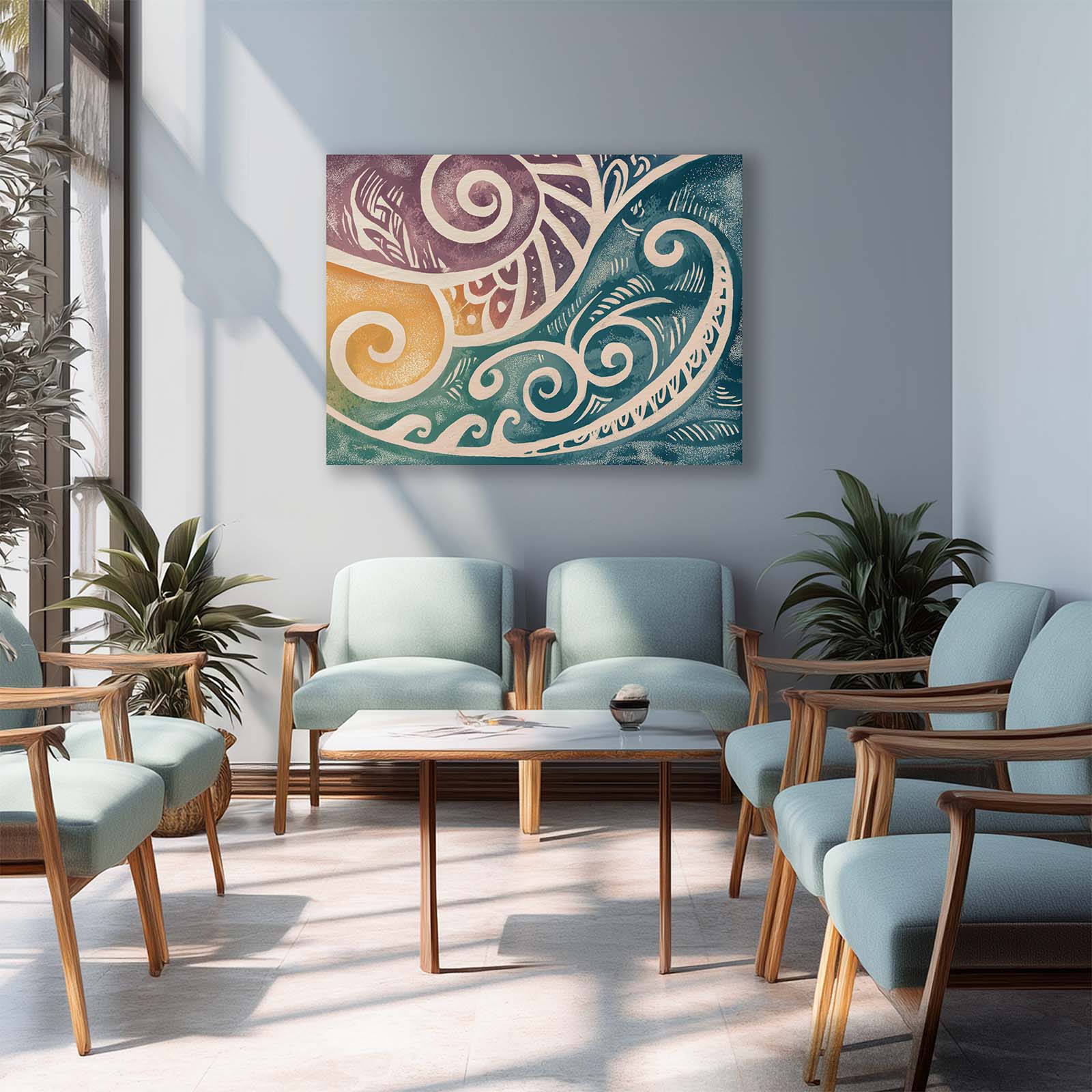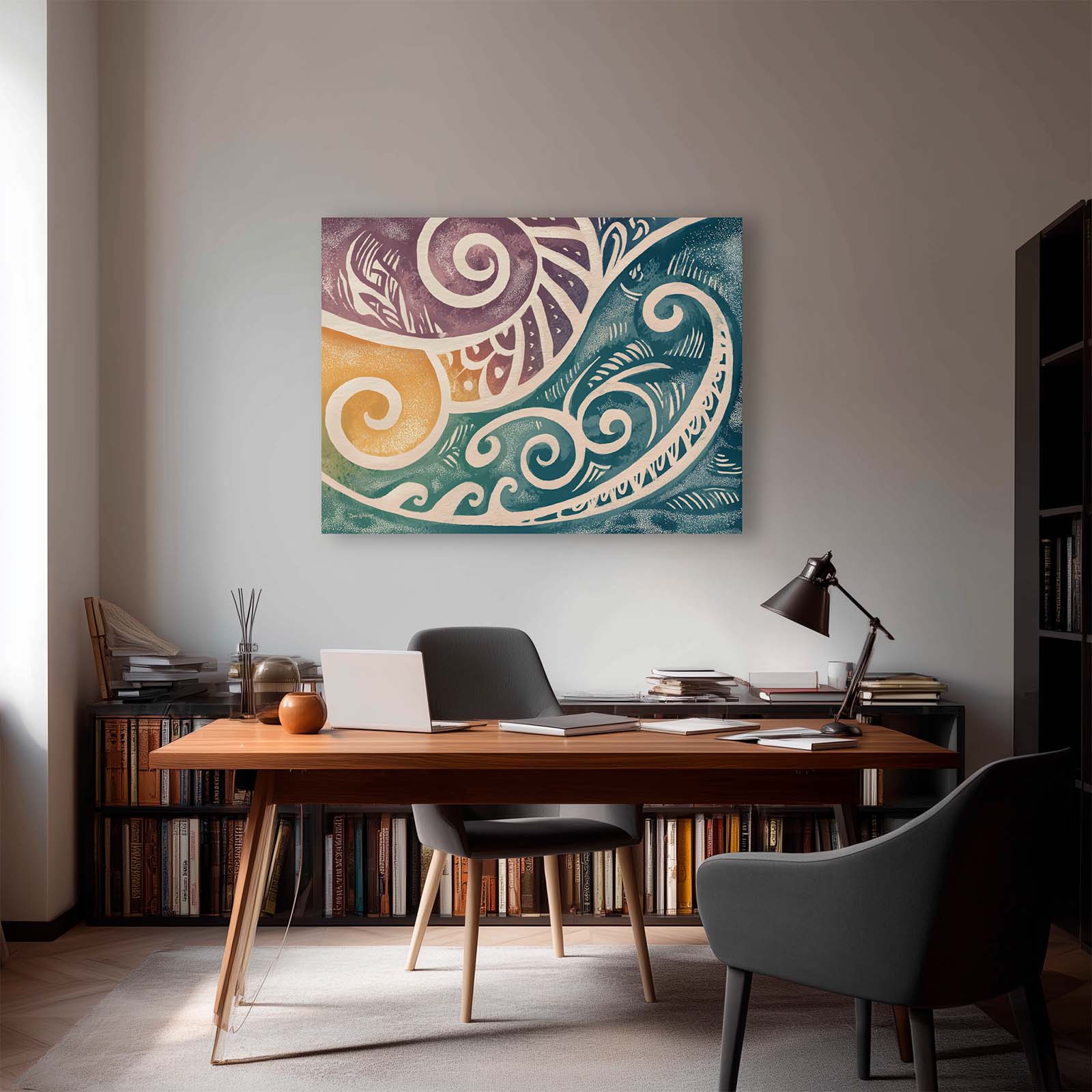 Bring a touch of the tropics to your space with this South Pacific motif stretched-canvas art print. Bold yet subtle graphic forms evoke island warmth and timeless design. It adds interest, rhythm and beauty to a home or office. Printed with rich giclée color on premium canvas for a lasting impression.
