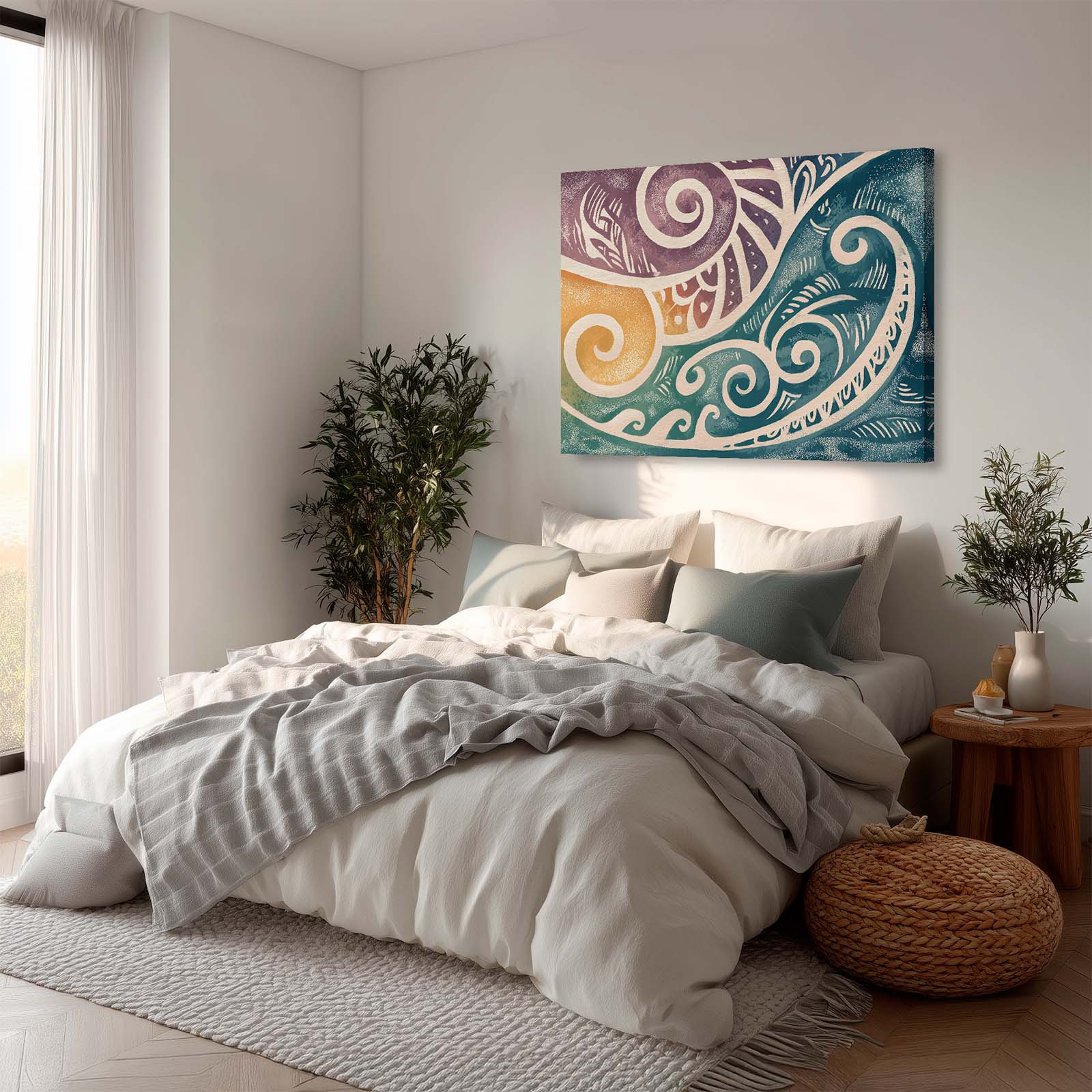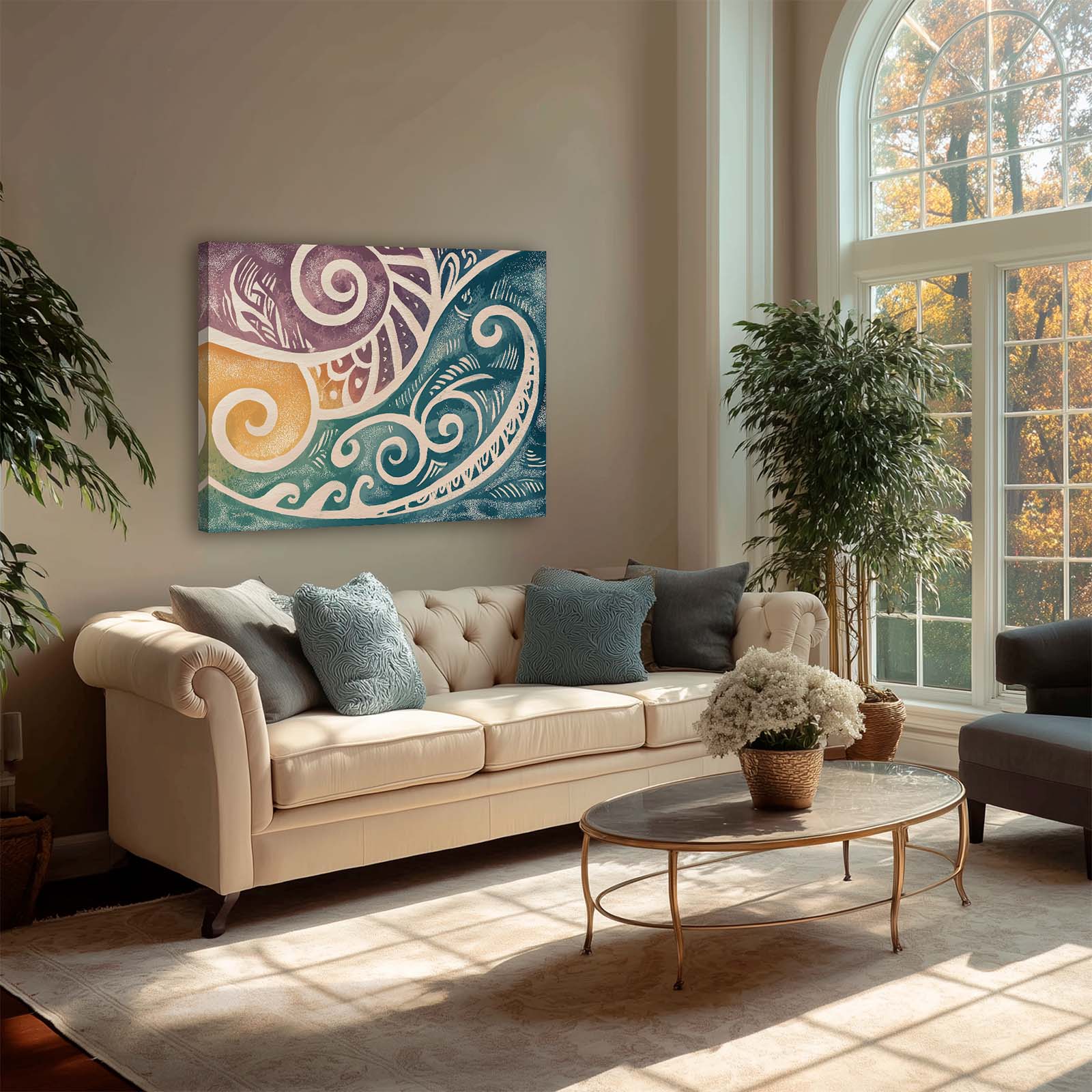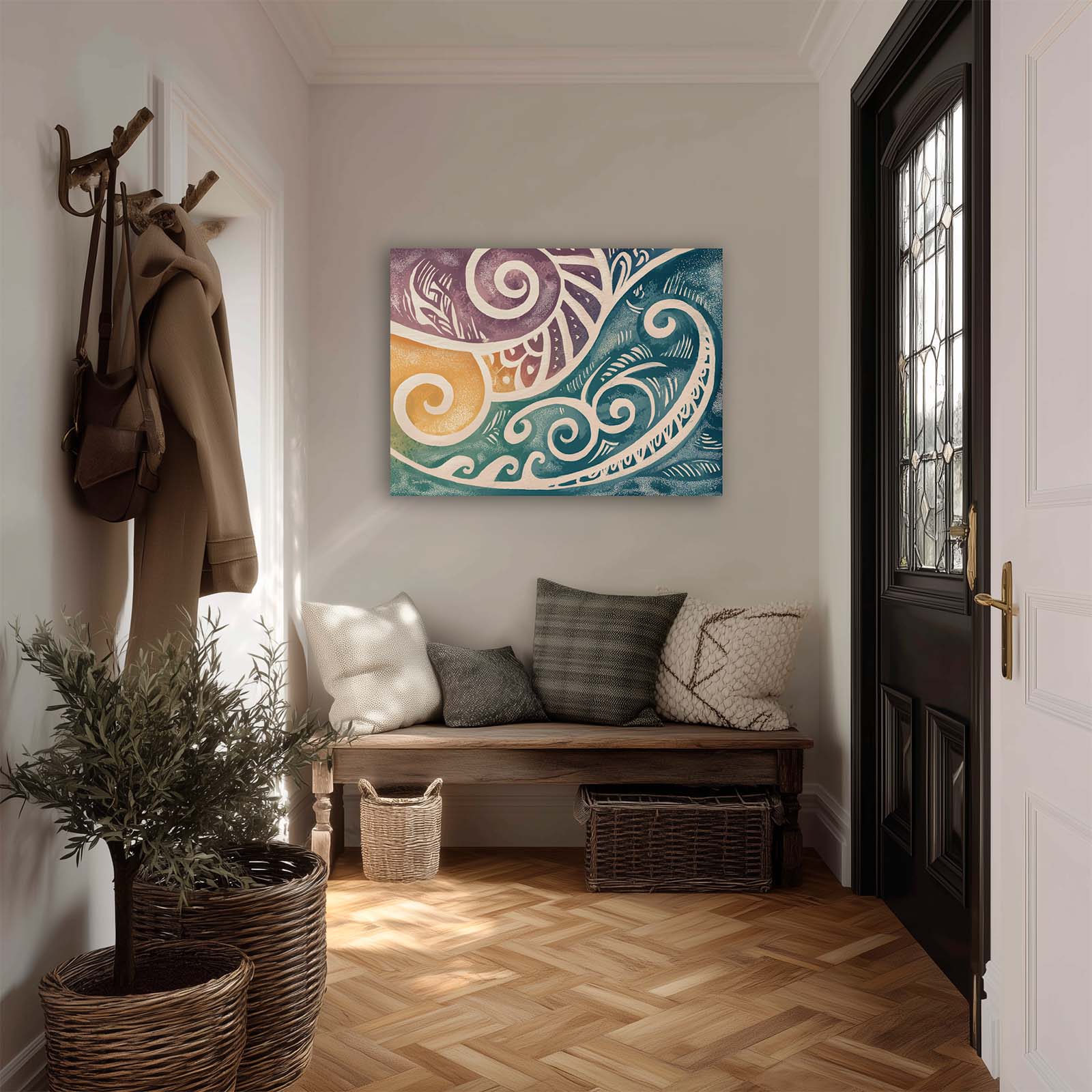 Bring a touch of the tropics to your space with this South Pacific motif stretched-canvas art print. Bold yet subtle graphic forms evoke island warmth and timeless design. It adds interest, rhythm and beauty to a home or office. Printed with rich giclée color on premium canvas for a lasting impression.