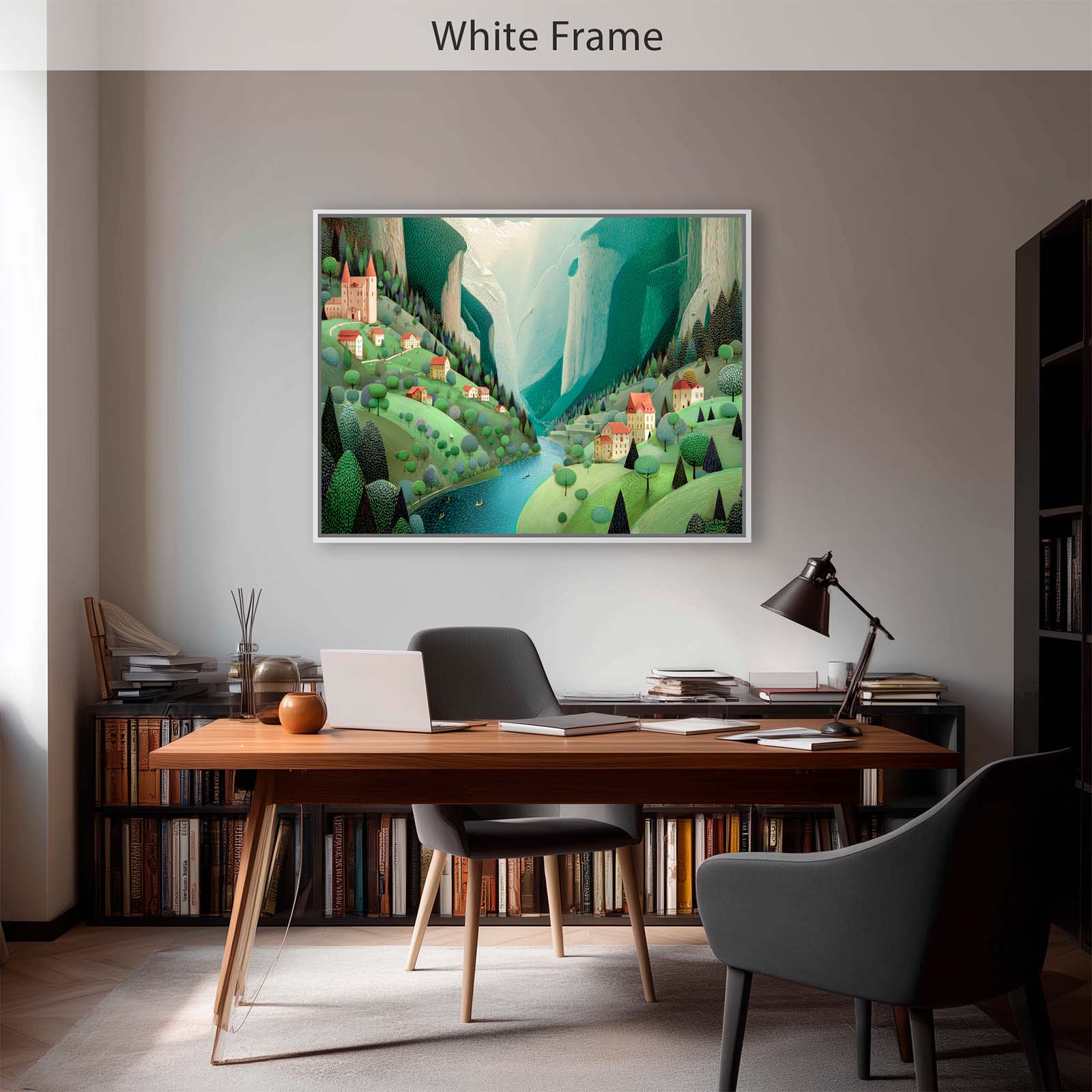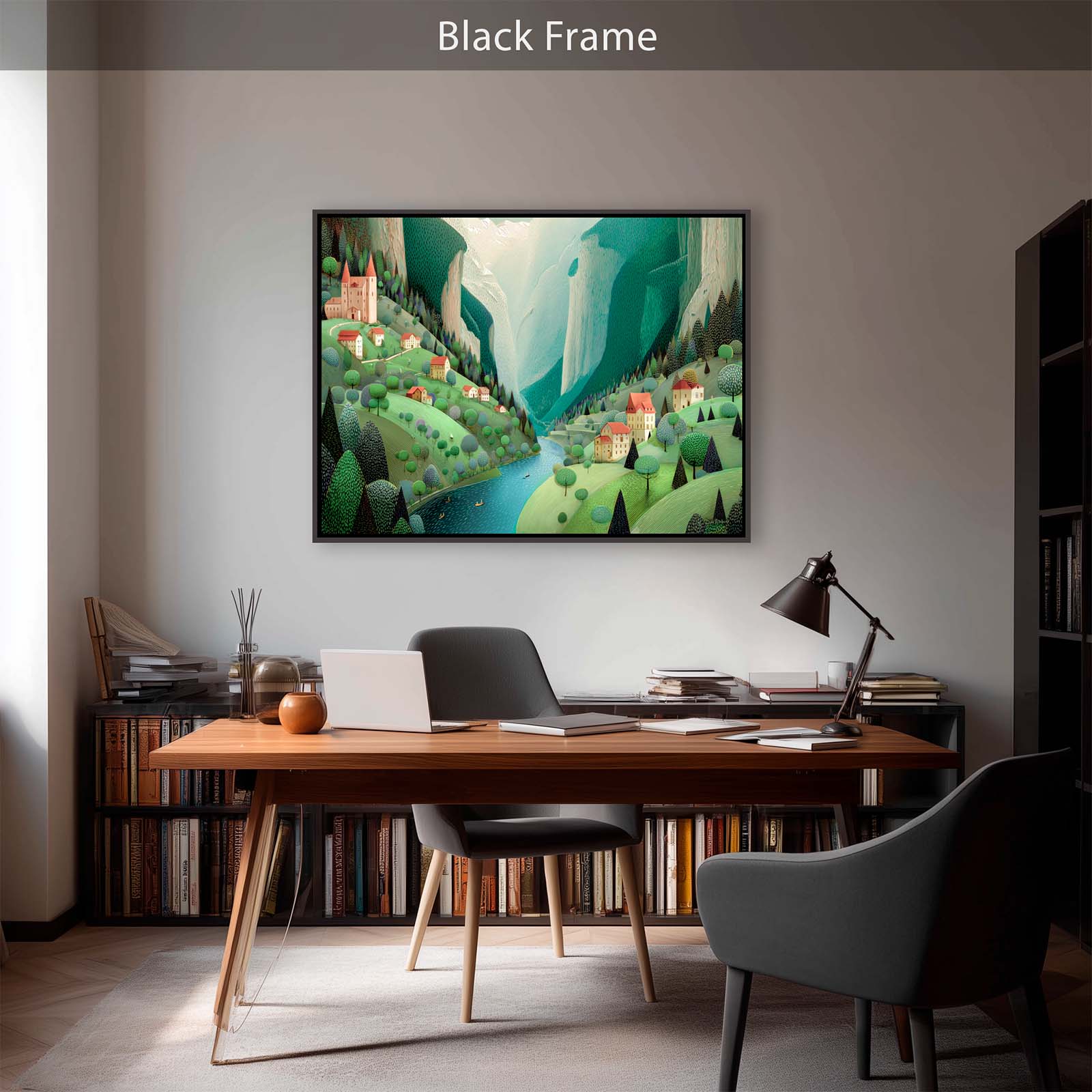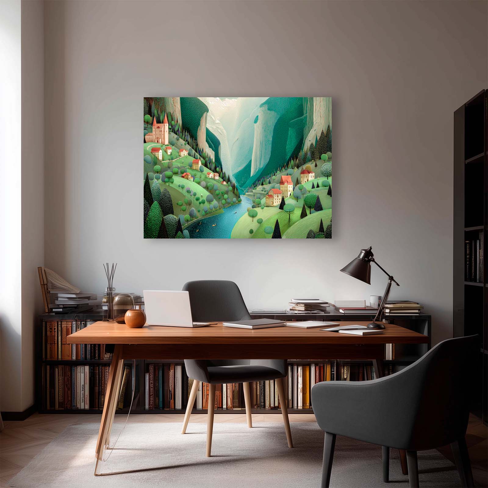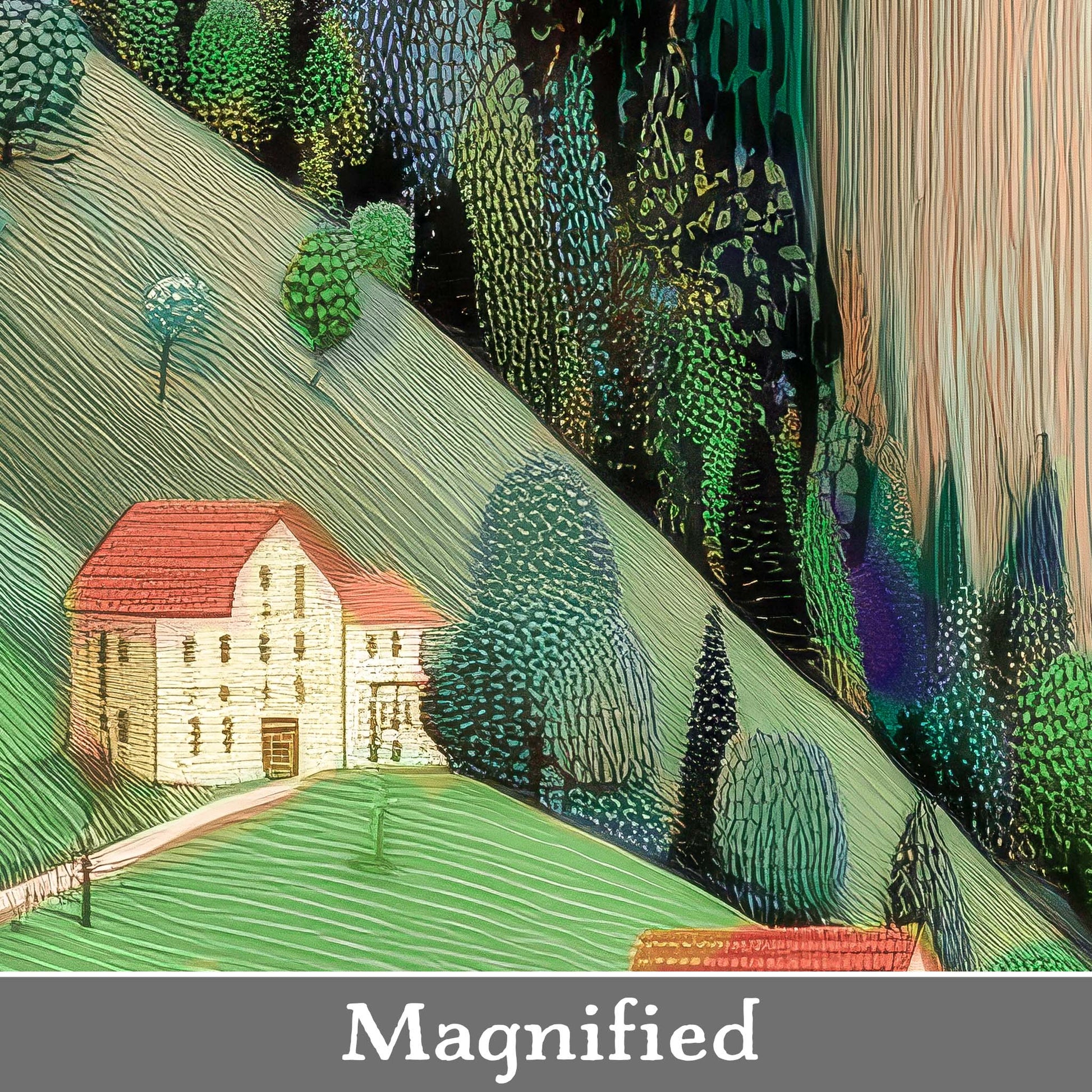 Capture the charm of the Alps with this playful portrayal of Swiss mountainsides embracing a cozy valley village. The scene blends grandeur and warmth, bringing a sense of peaceful escape to your space. Printed on premium stretched canvas (giclée), it complements nearly any décor—modern, rustic, or traditional—adding depth, beauty, and a touch of wonder to any room.