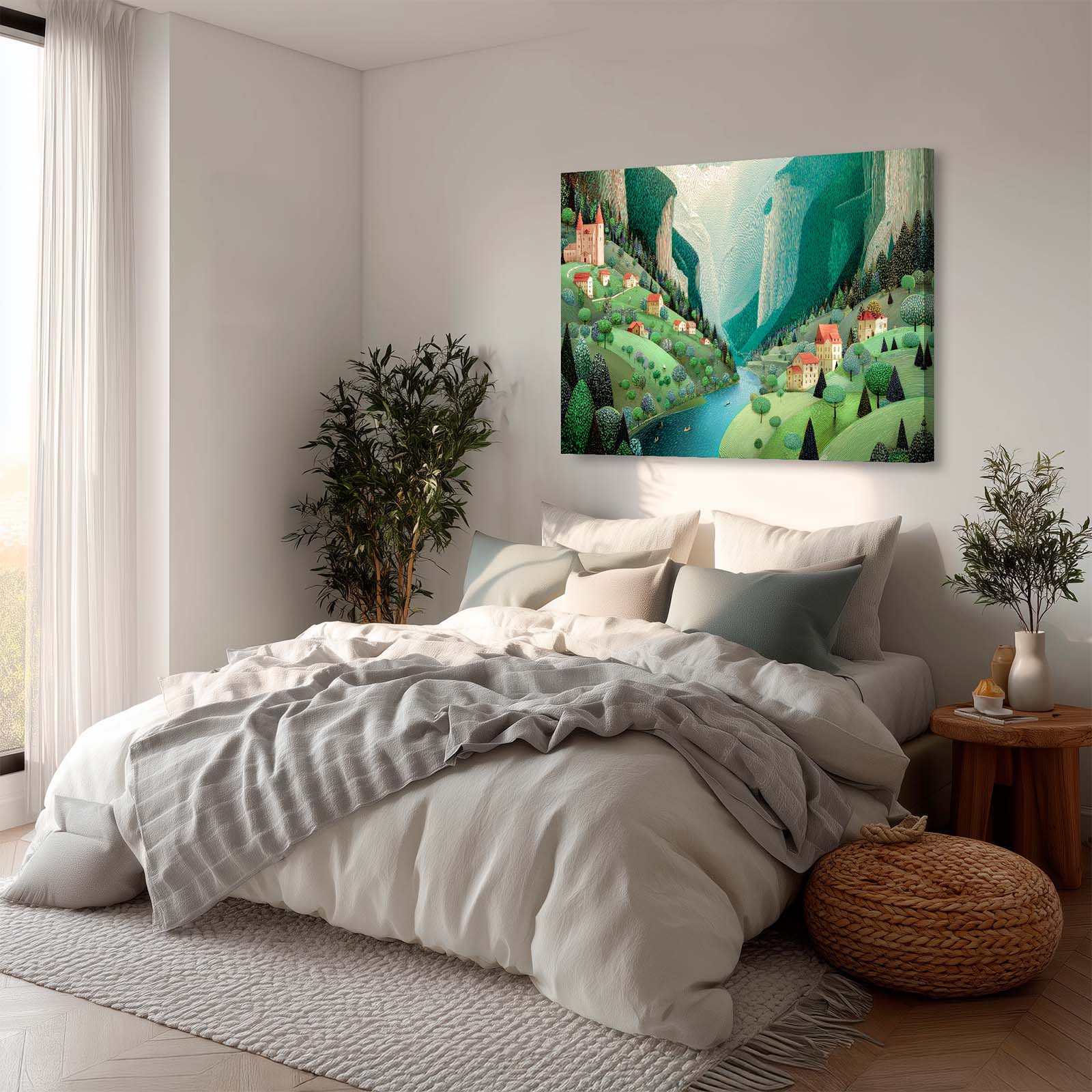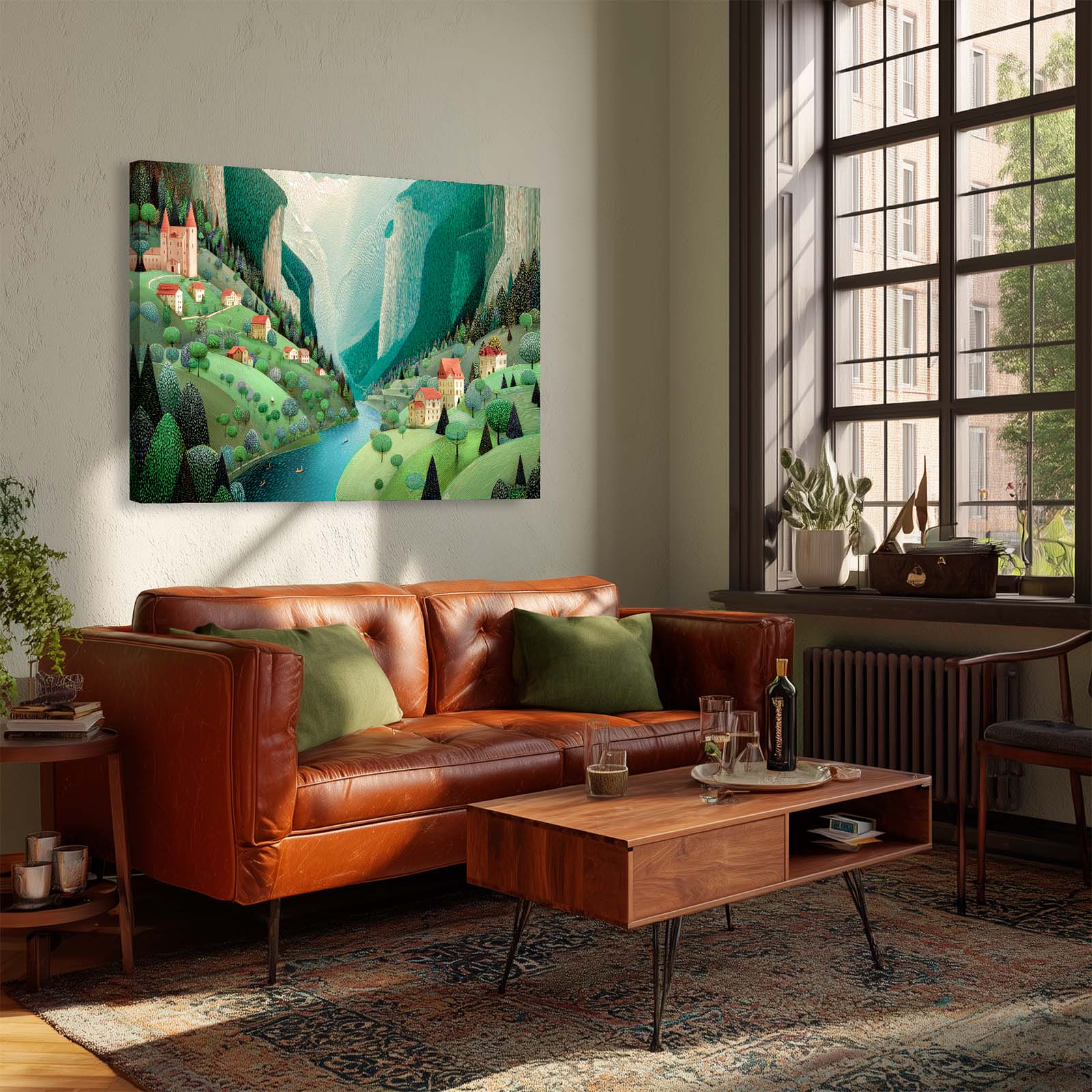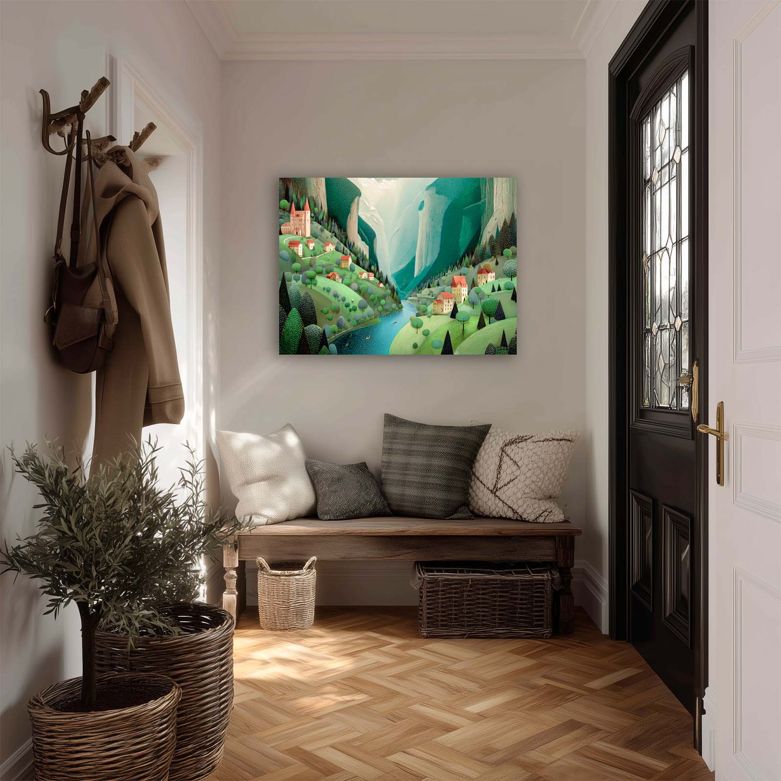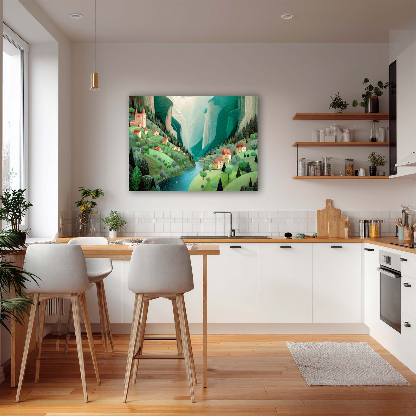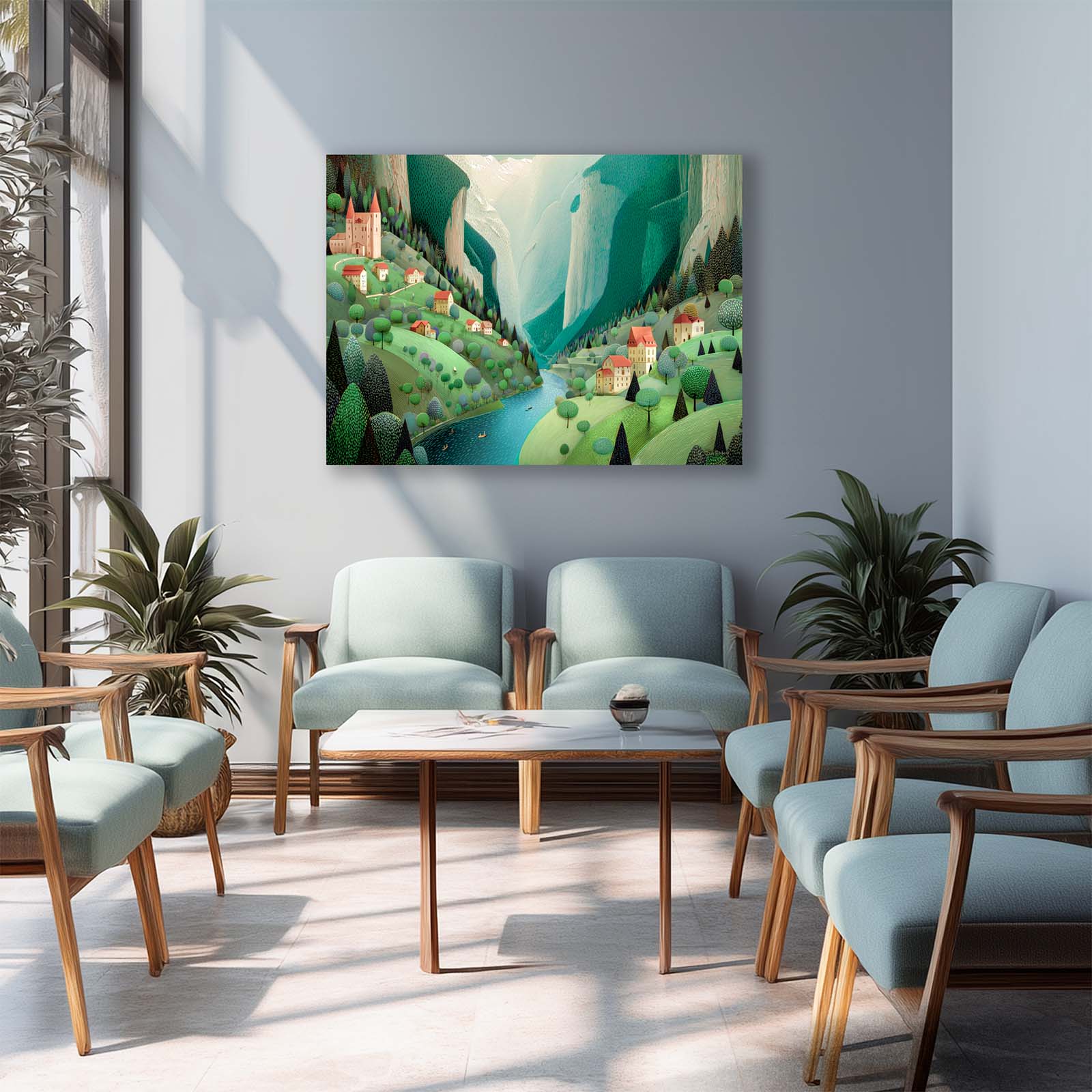 Capture the charm of the Alps with this playful portrayal of Swiss mountainsides embracing a cozy valley village. The scene blends grandeur and warmth, bringing a sense of peaceful escape to your space. Printed on premium stretched canvas (giclée), it complements nearly any décor—modern, rustic, or traditional—adding depth, beauty, and a touch of wonder to any room.