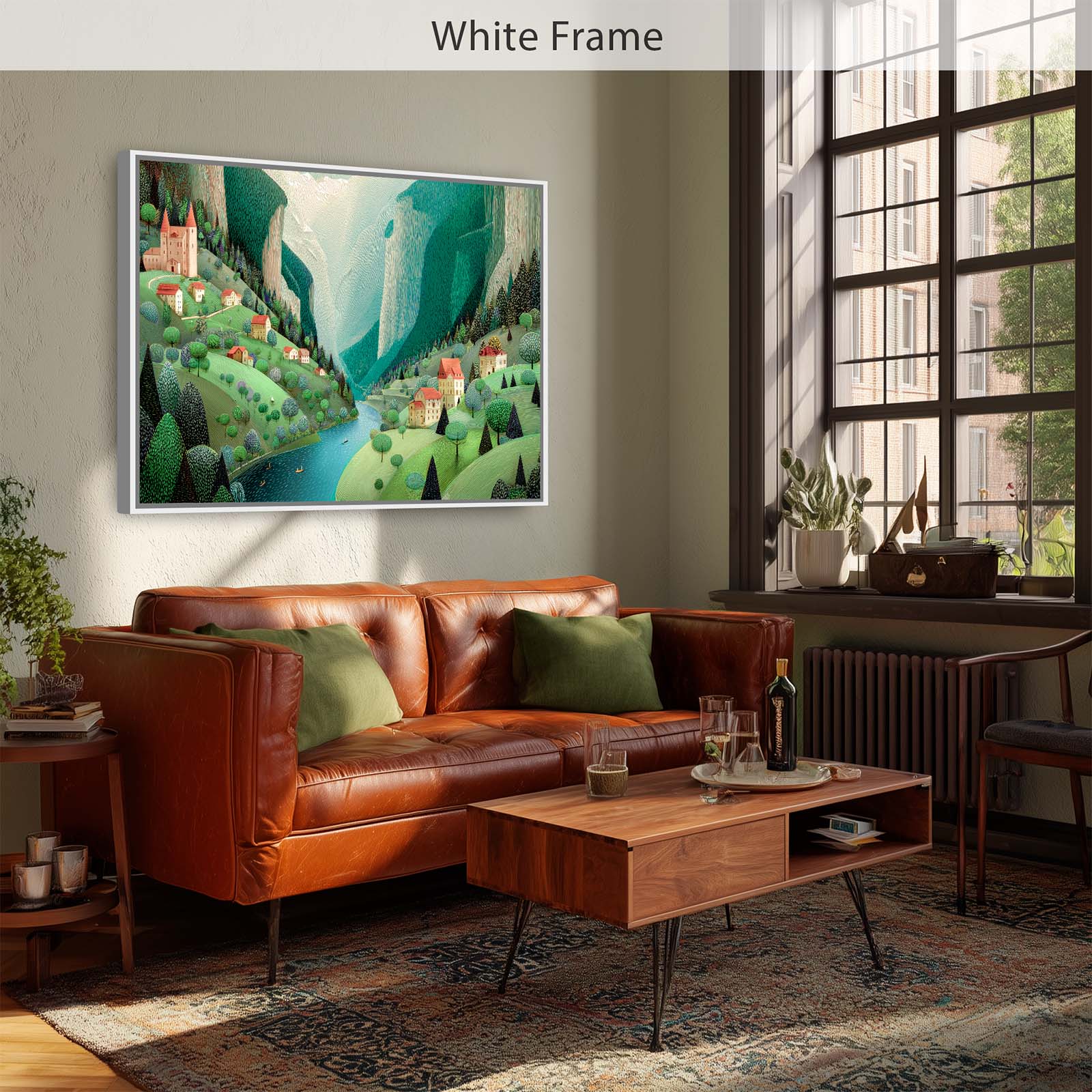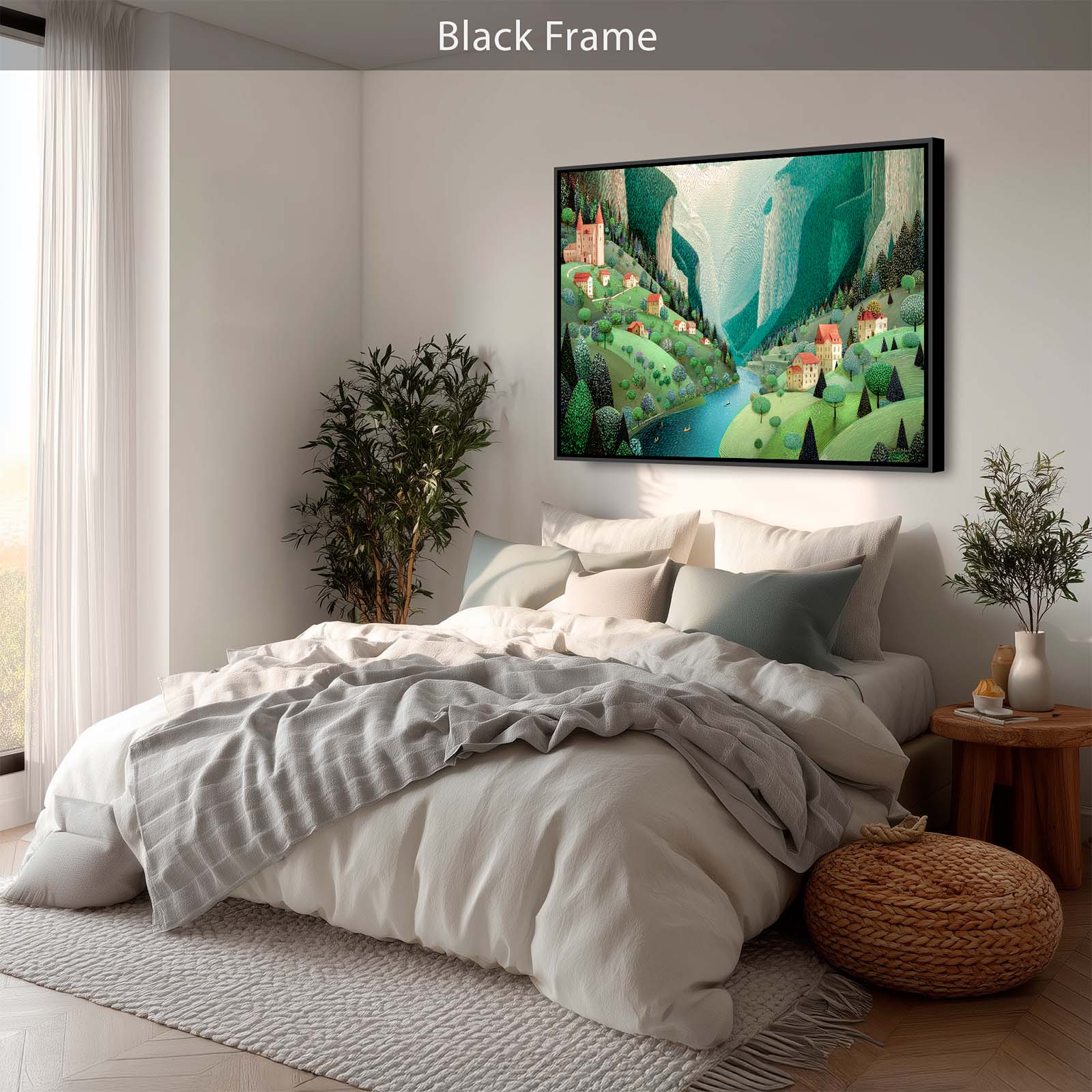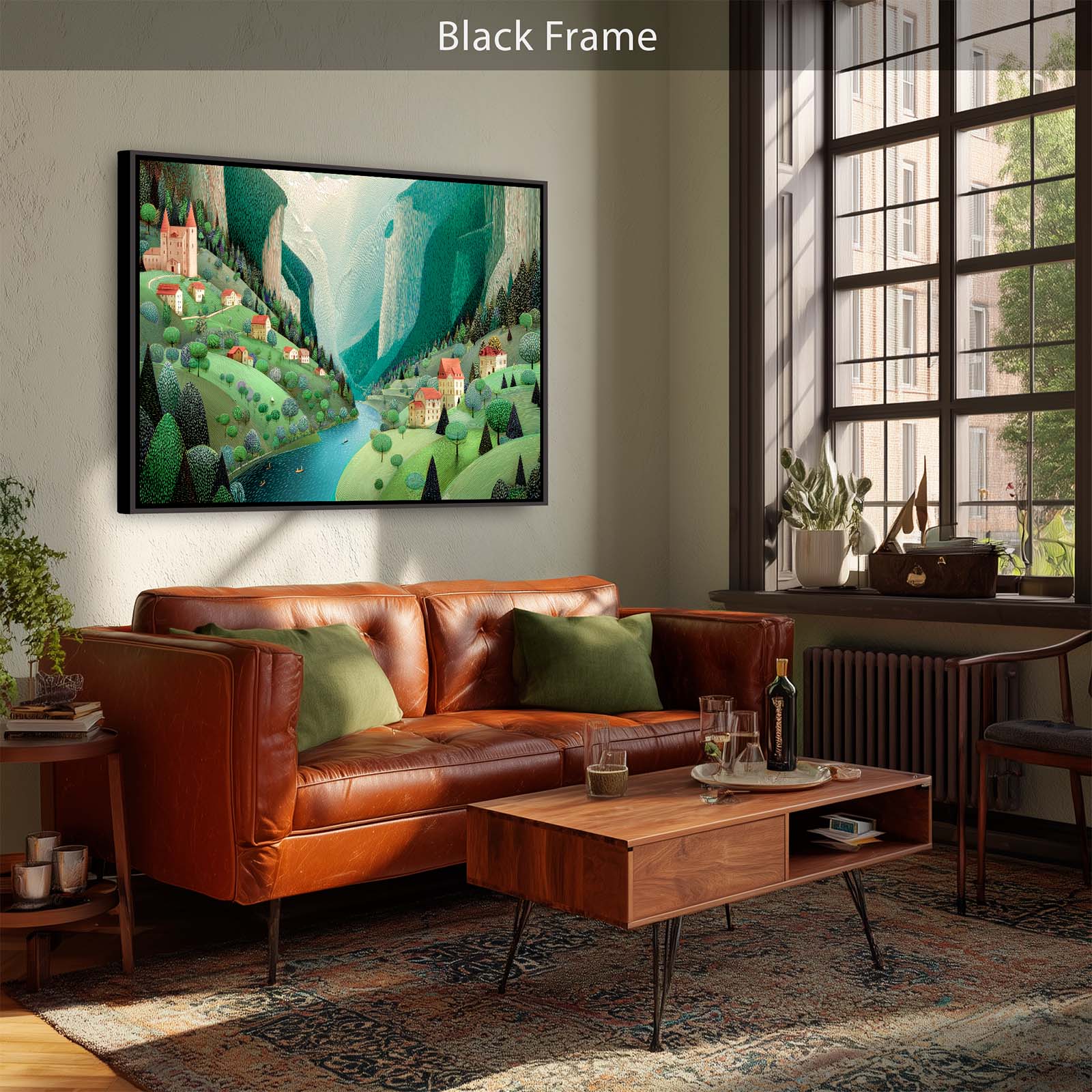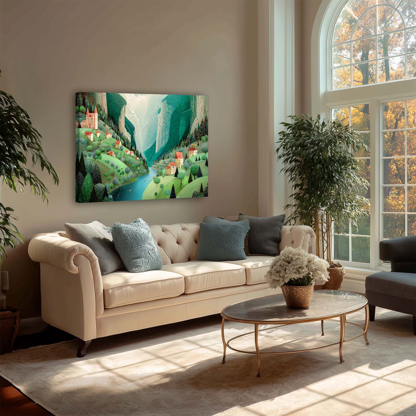 Capture the charm of the Alps with this playful portrayal of Swiss mountainsides embracing a cozy valley village. The scene blends grandeur and warmth, bringing a sense of peaceful escape to your space. Printed on premium stretched canvas (giclée), it complements nearly any décor—modern, rustic, or traditional—adding depth, beauty, and a touch of wonder to any room.