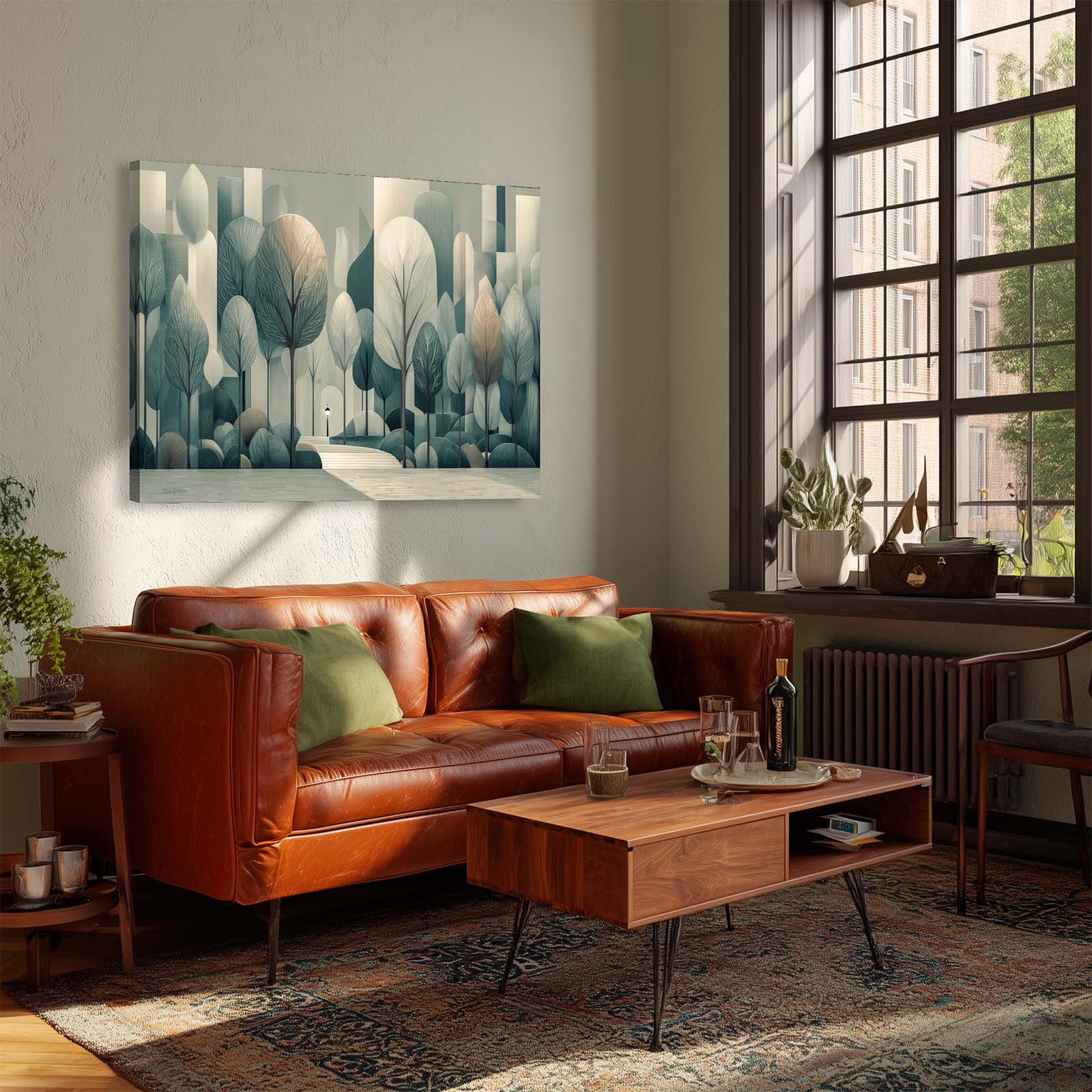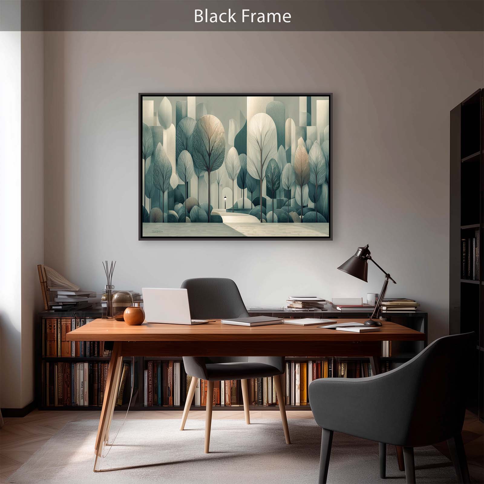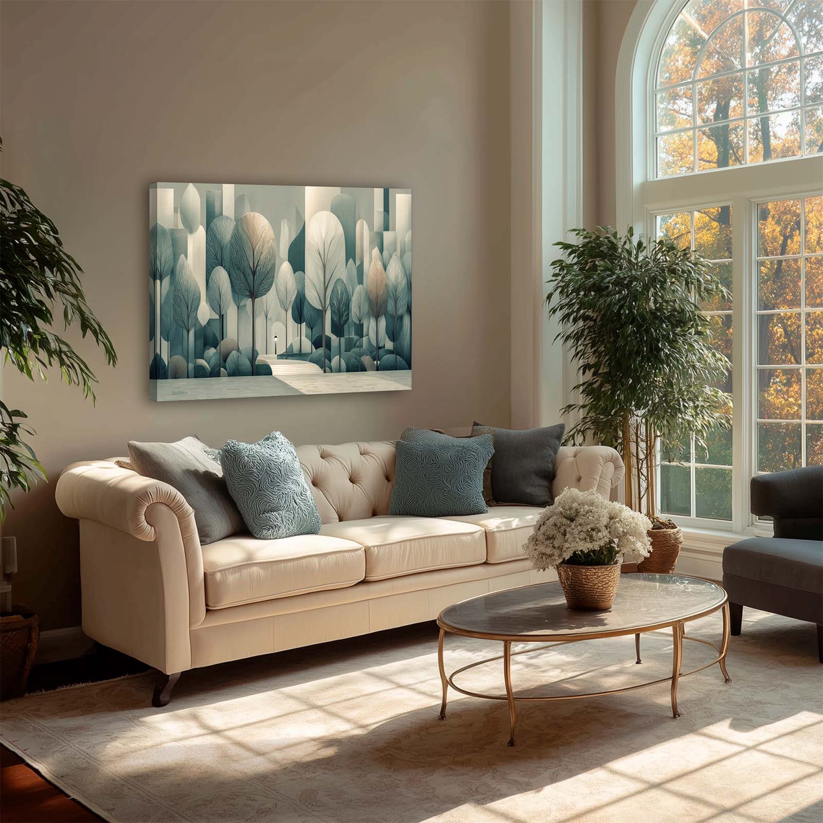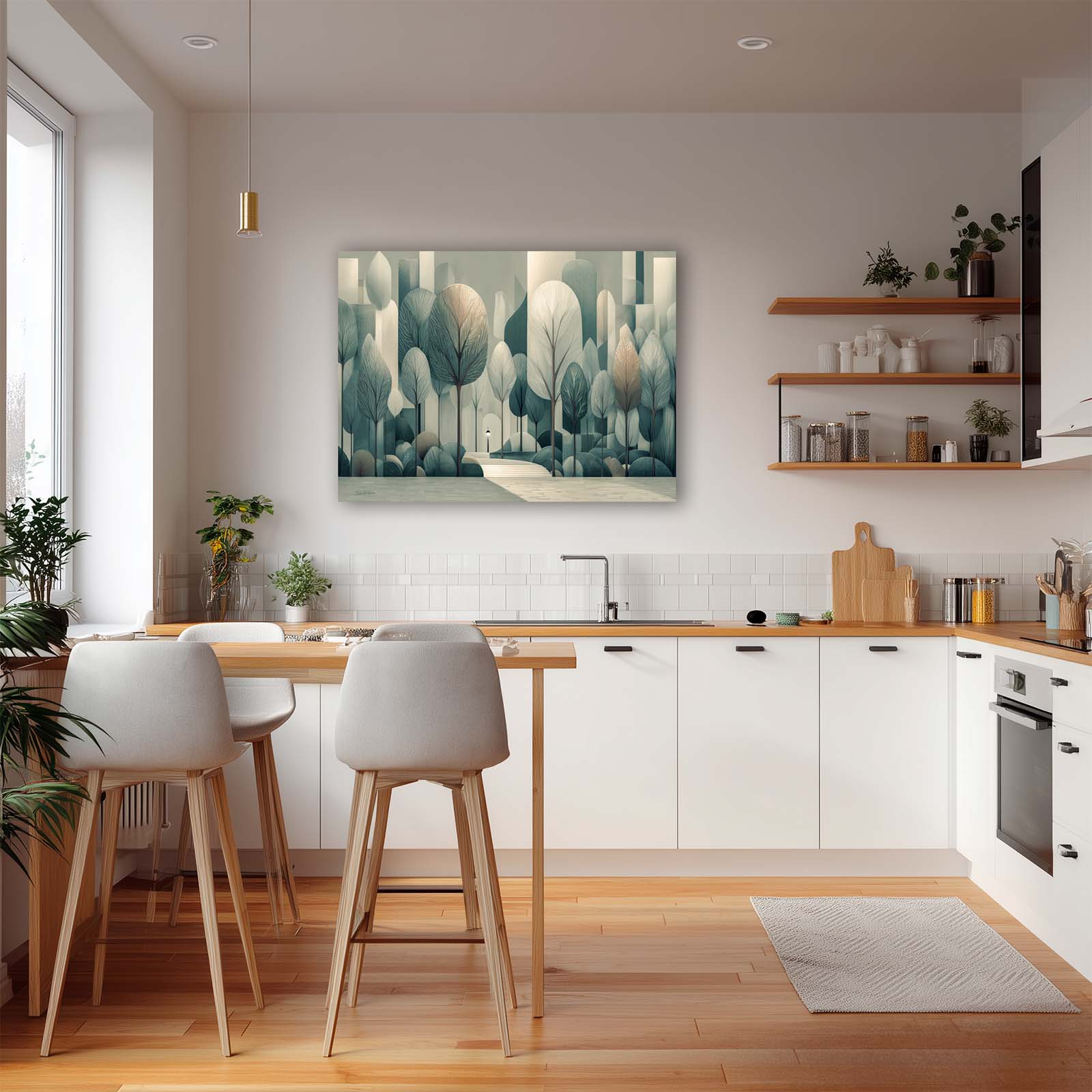 Step into serenity with this semi-cubist canvas print, capturing silvery trees and city steps in a subtle, enchanting scene. Perfect for adding refined beauty to a room.