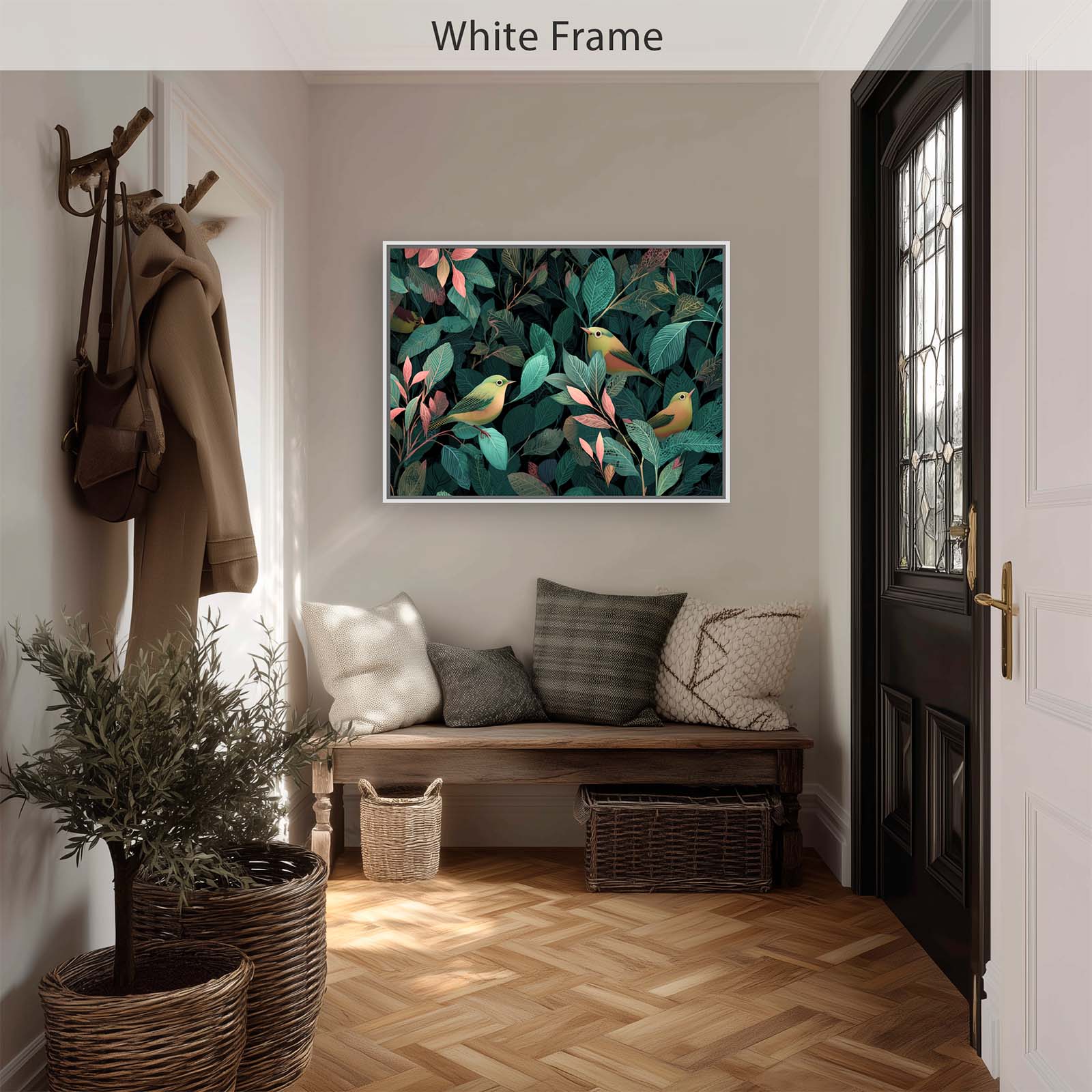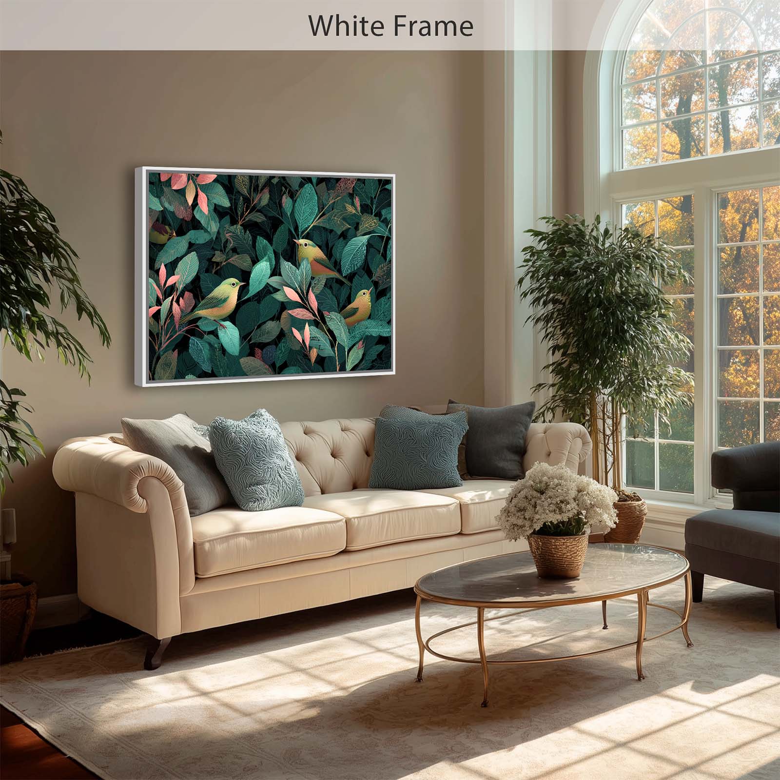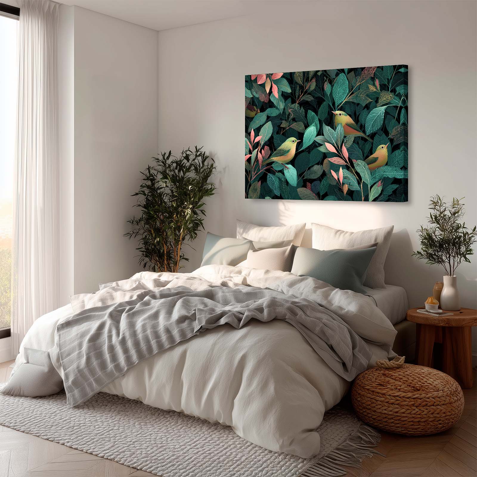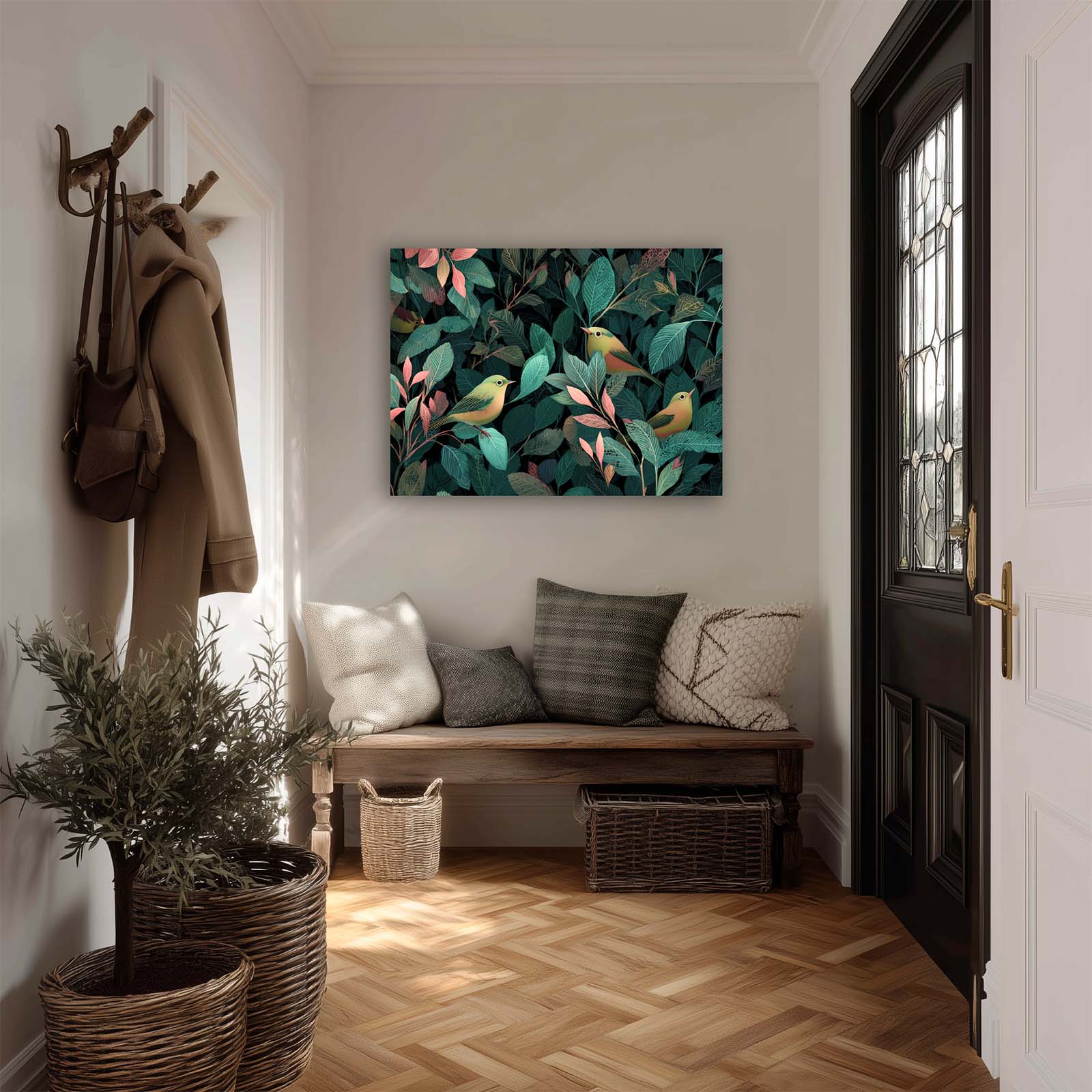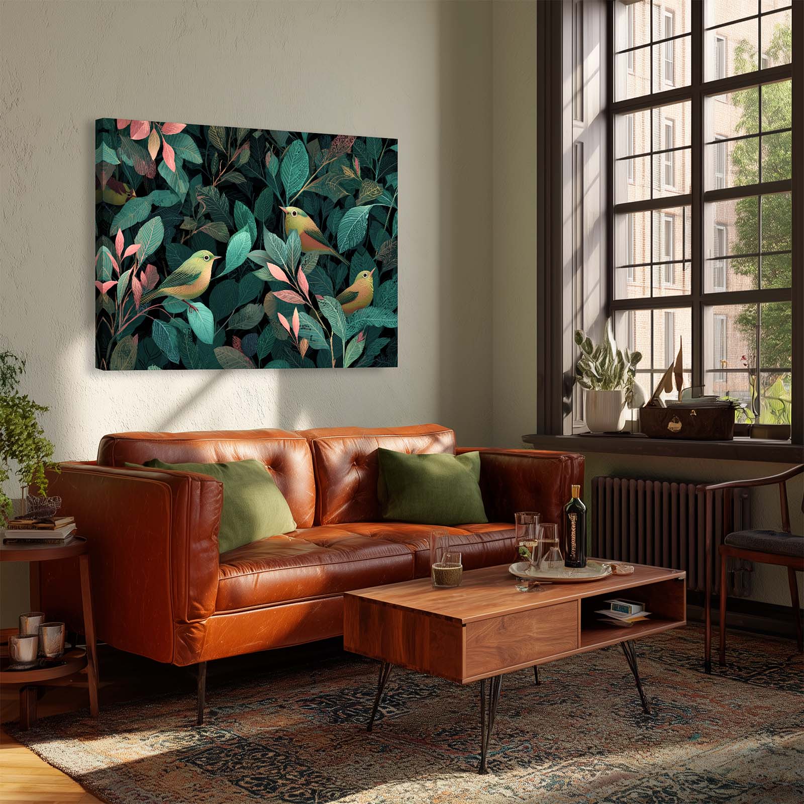 Delight in the charm of nature with this whimsical canvas print featuring three playful birds nestled in lush tree foliage. Its joyful colors and lighthearted style bring warmth, personality, and a touch of enchantment to any room, perfectly complementing a variety of decor styles. Printed on premium giclée canvas, it’s a timeless piece that brightens your home or office