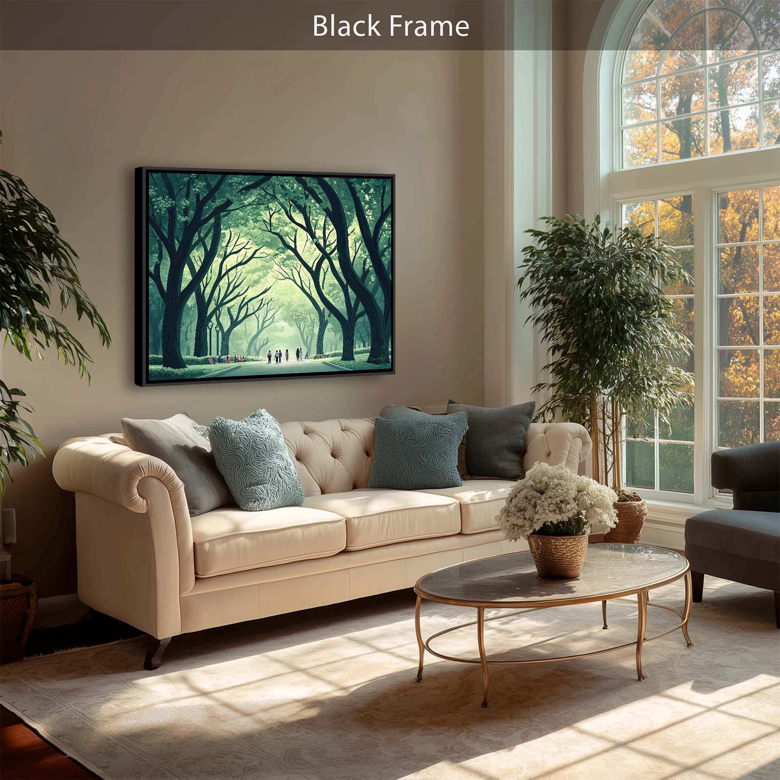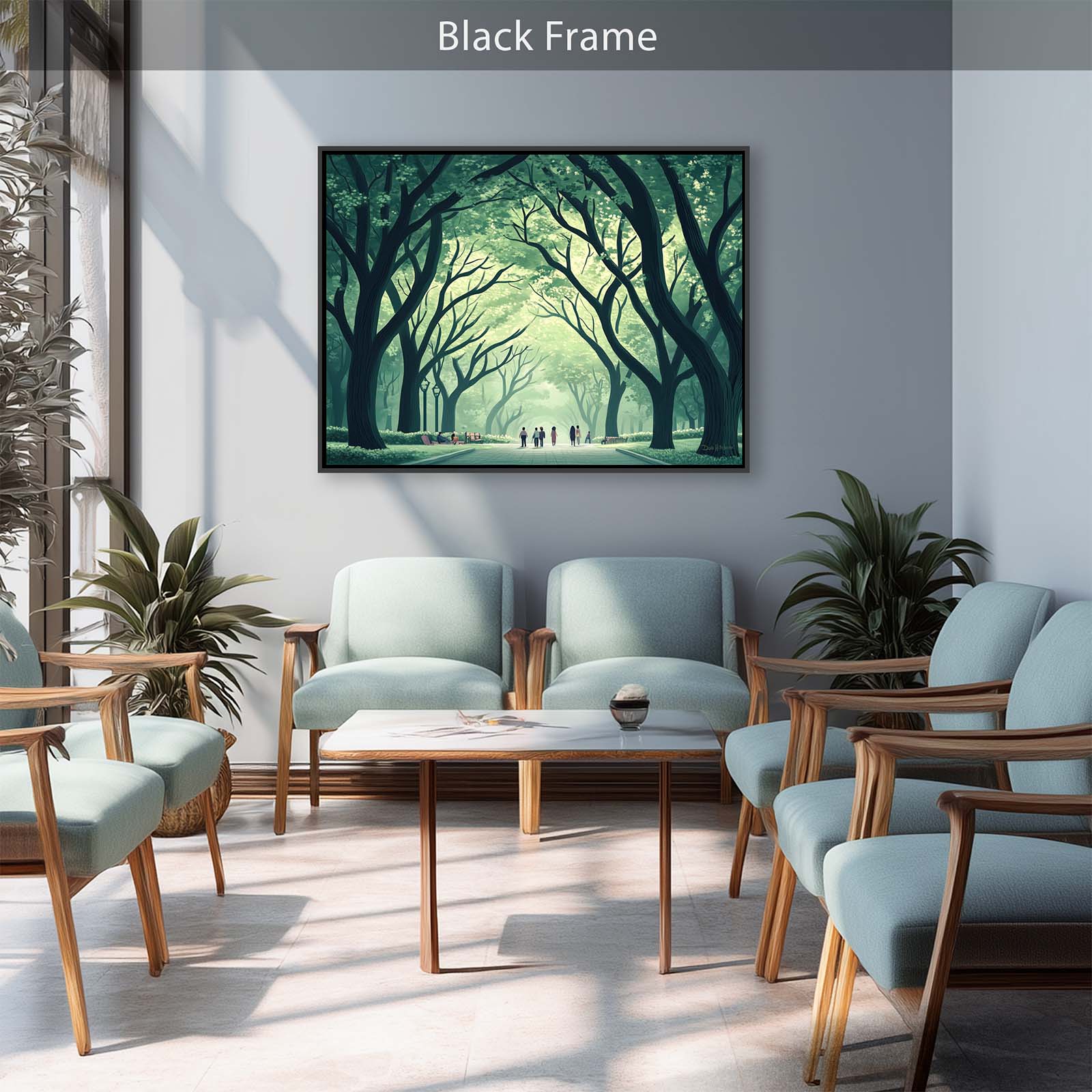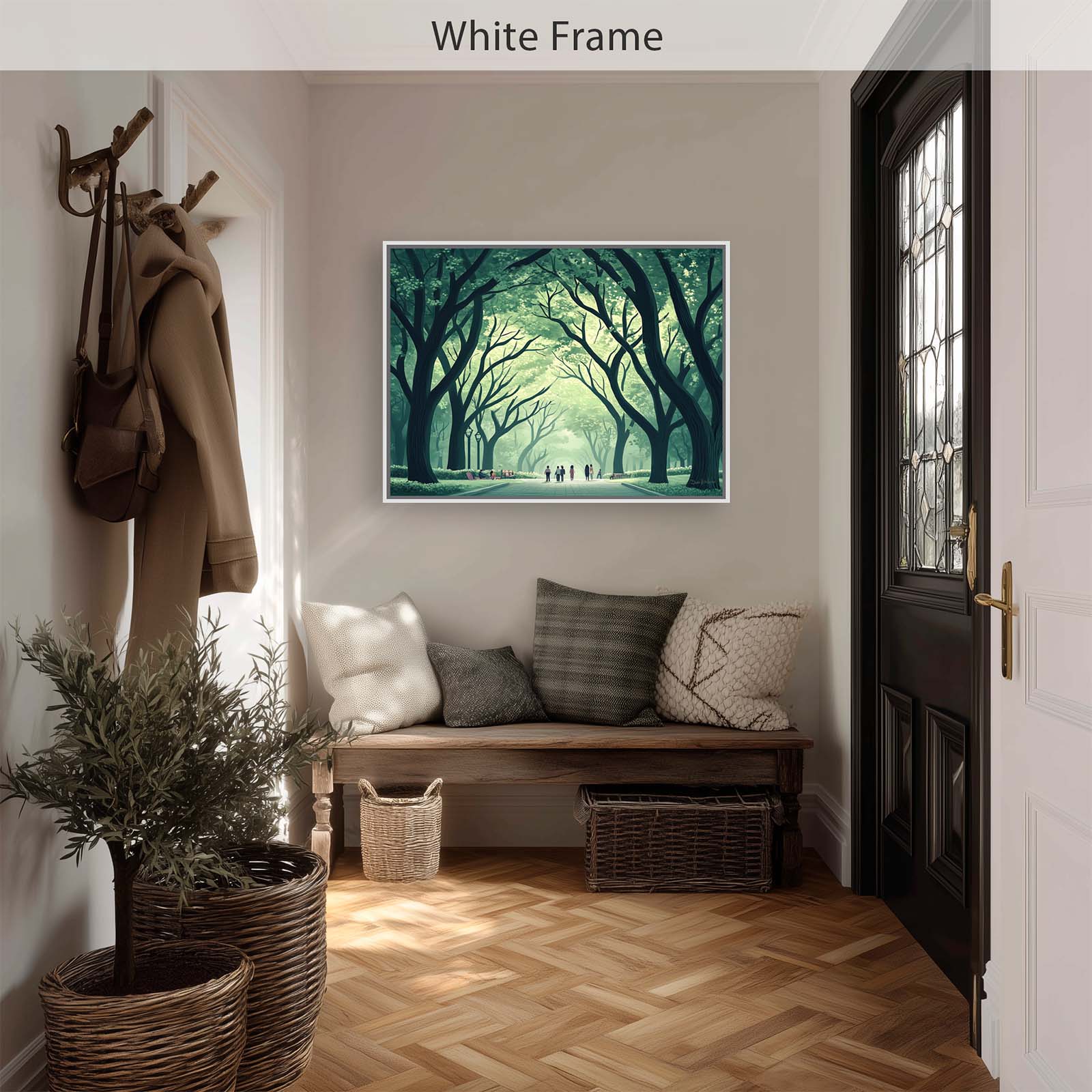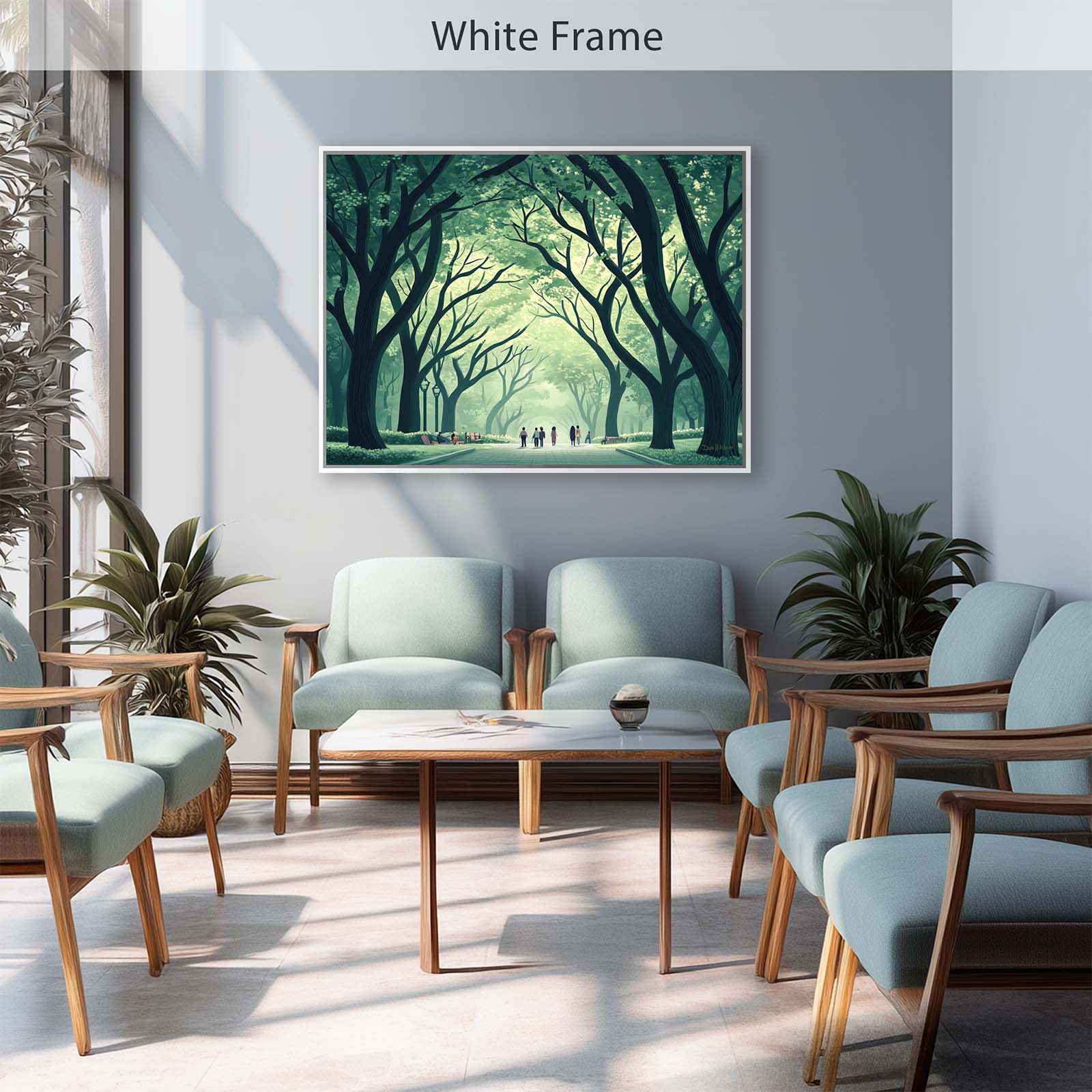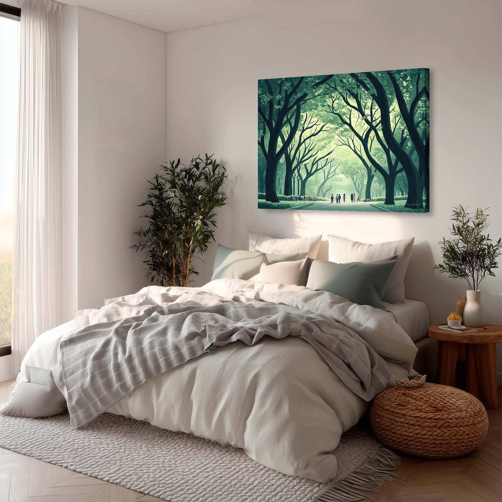 Capture the quiet joy of friendship and nature with this serene scene of friends walking through a lush city park. The towering trees and rich greenery create a sense of scale and calm that draws the viewer in. Printed with archival giclée inks on premium stretched canvas, this artwork enhances any home or office décor with its blend of warmth, harmony, and timeless beauty.